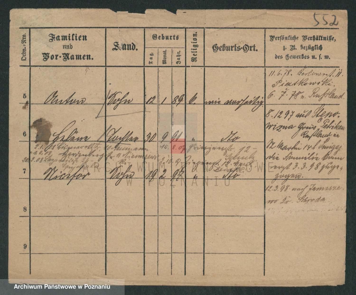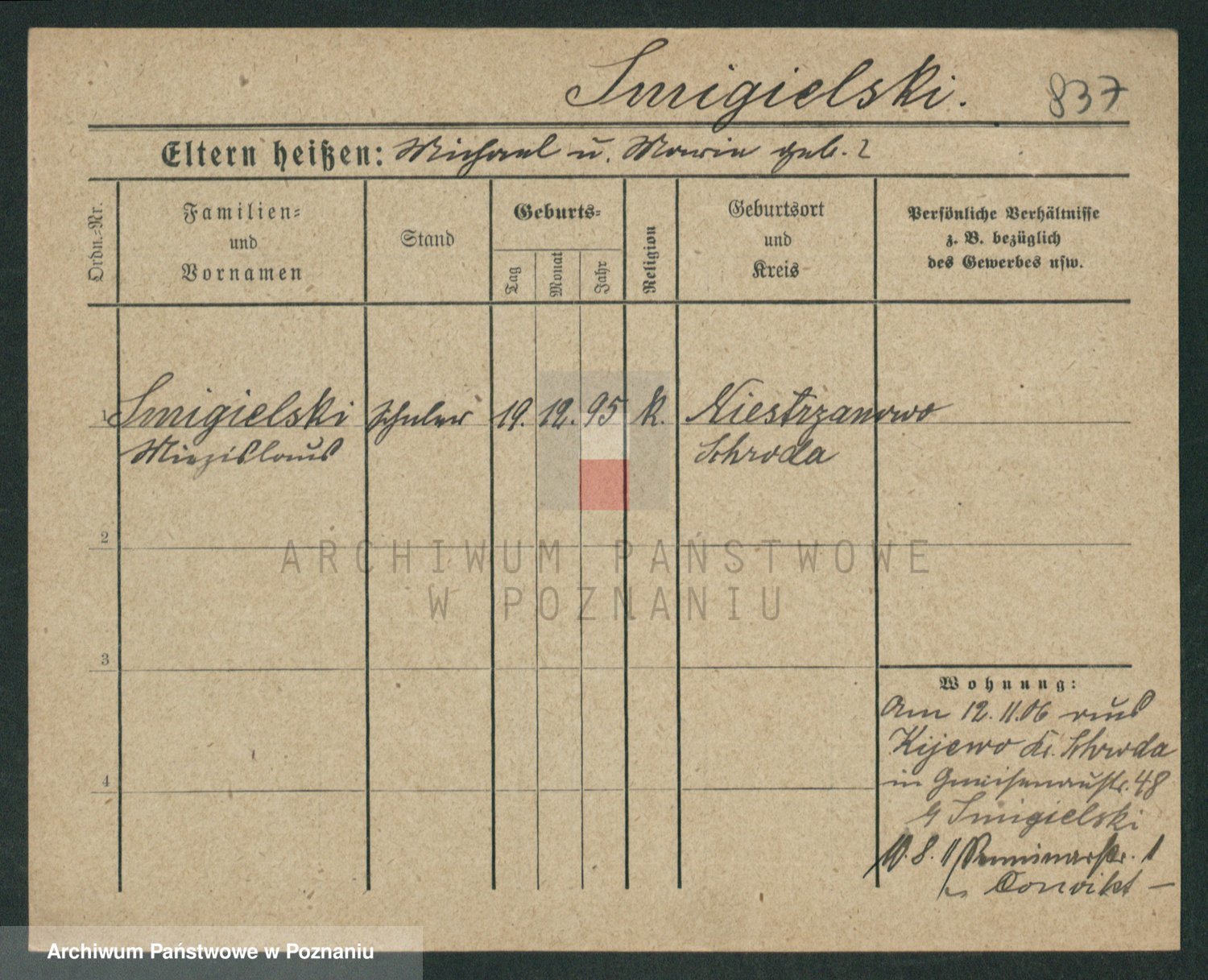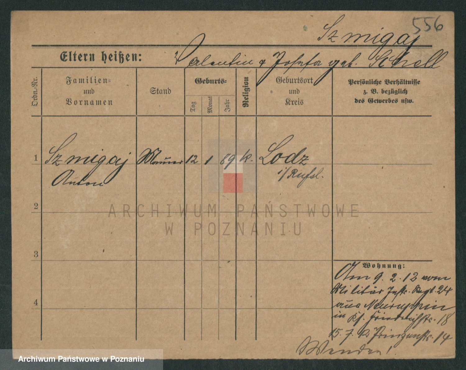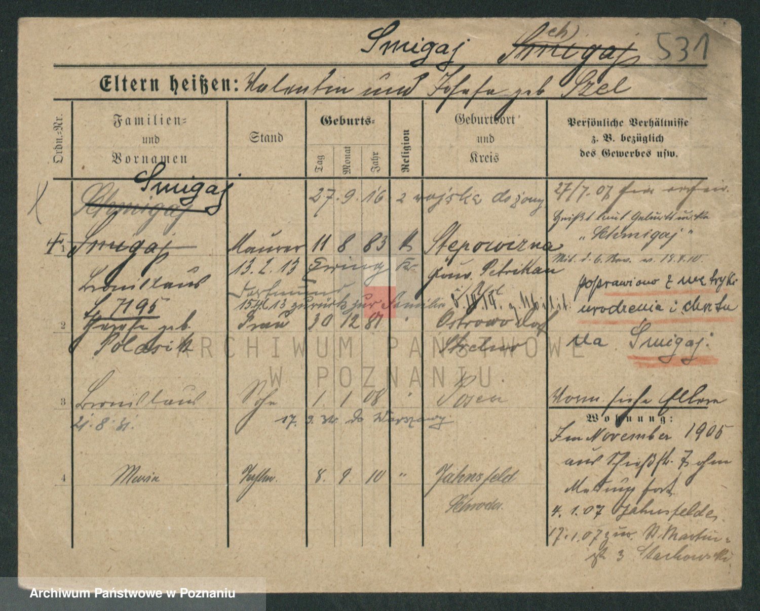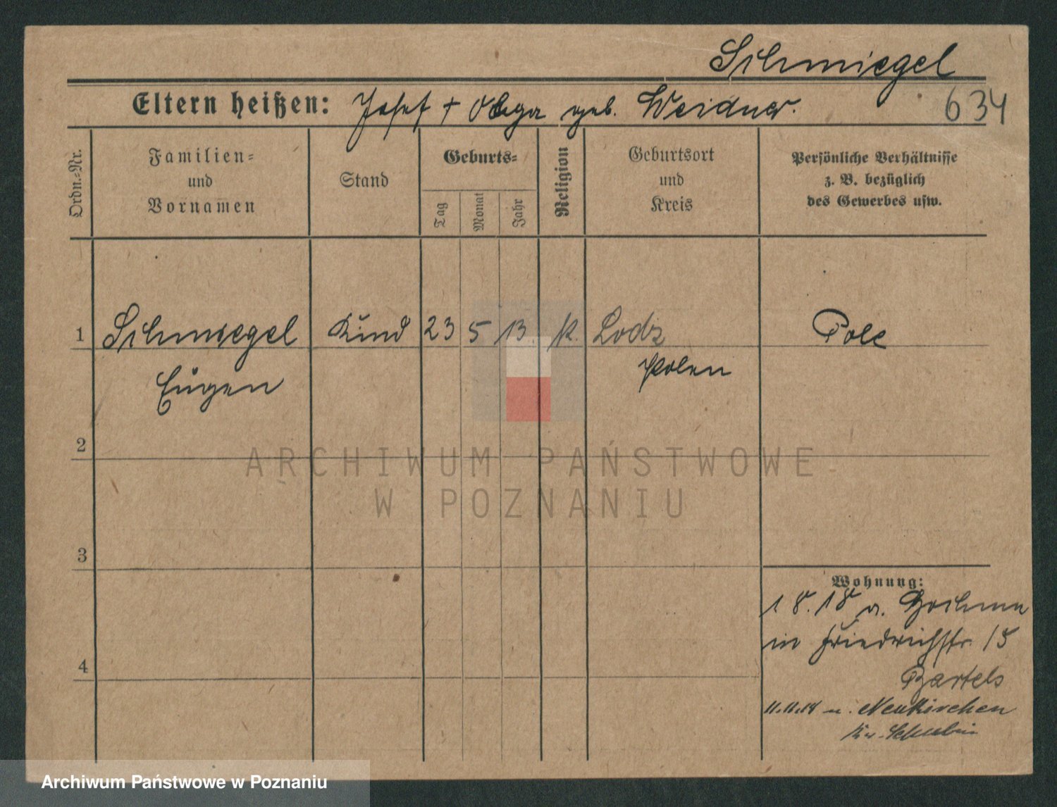 Podgląd karty osobowej dostępny jest po kliknięciu na nazwisko lub ikonkę karty. Można dokonywać powiększenia (ikony na górze) lub przechodzić między kolejnymi skanami (strzałki po bokach).