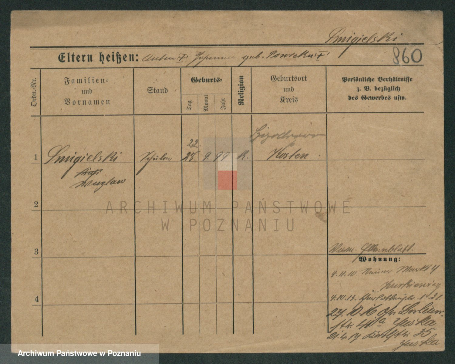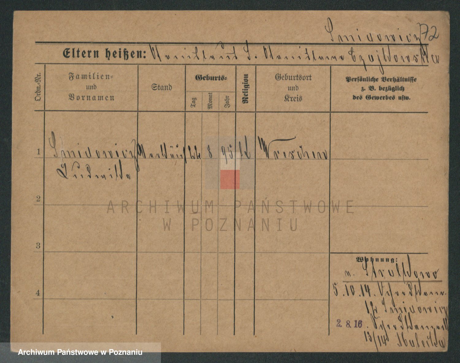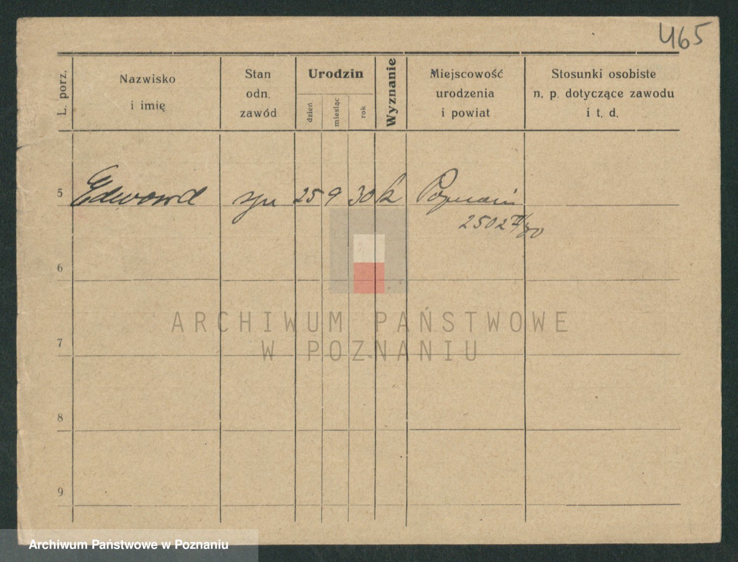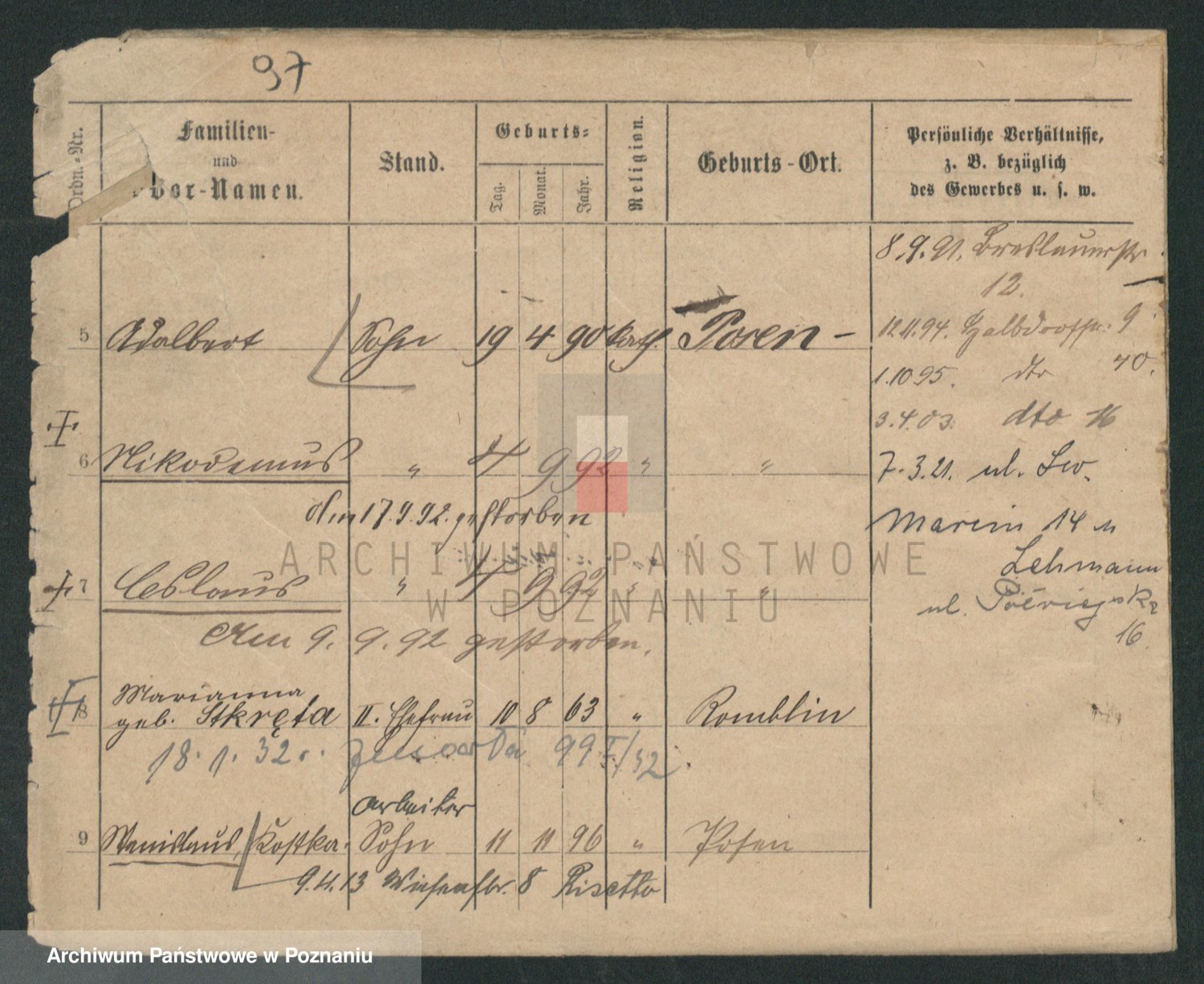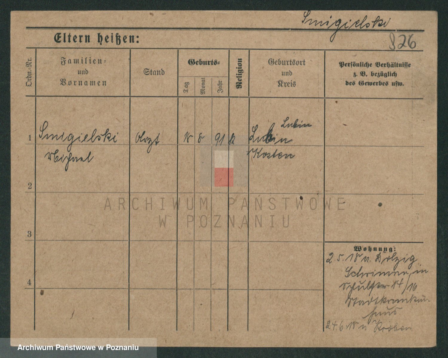 Podgląd karty osobowej dostępny jest po kliknięciu na nazwisko lub ikonkę karty. Można dokonywać powiększenia (ikony na górze) lub przechodzić między kolejnymi skanami (strzałki po bokach).