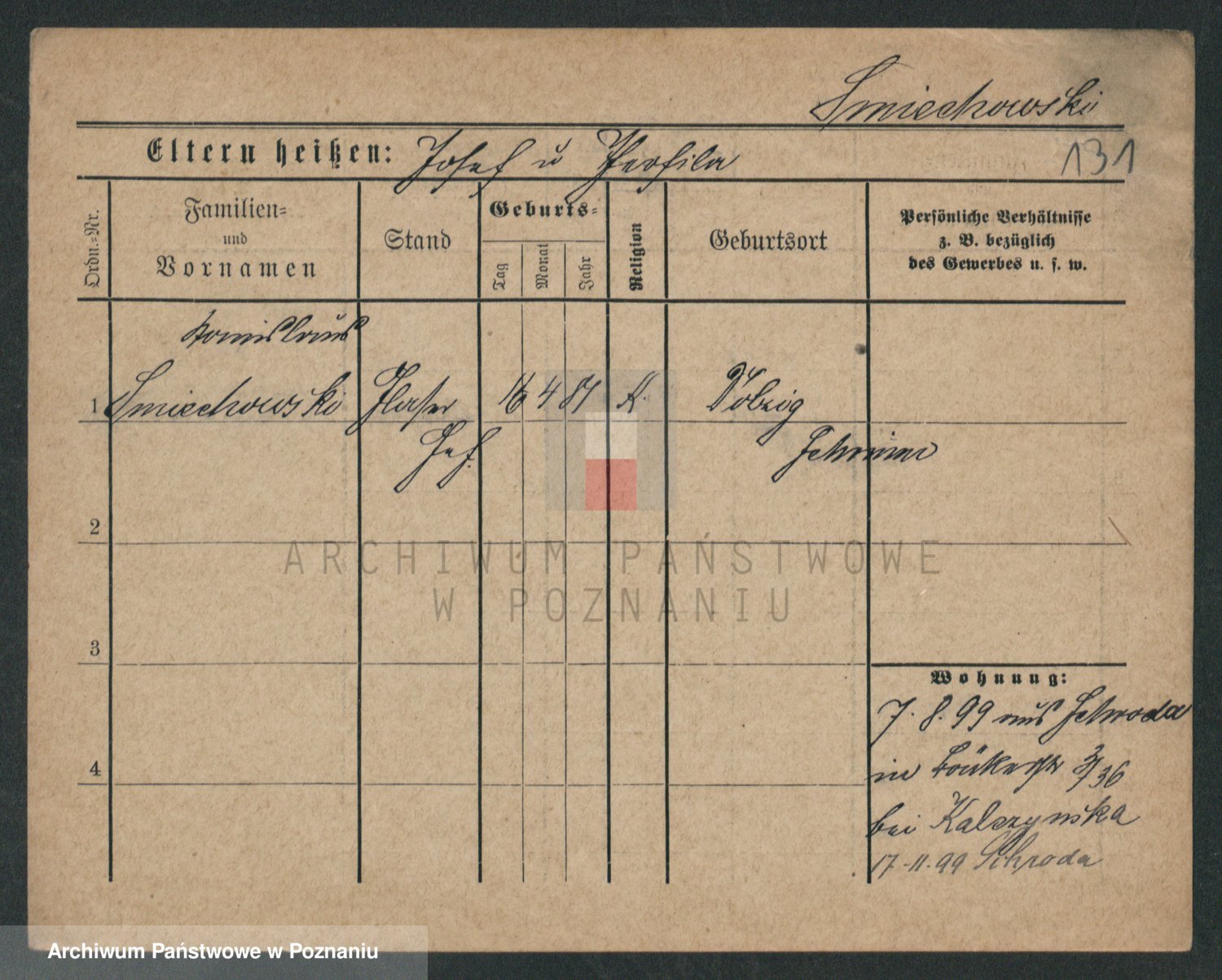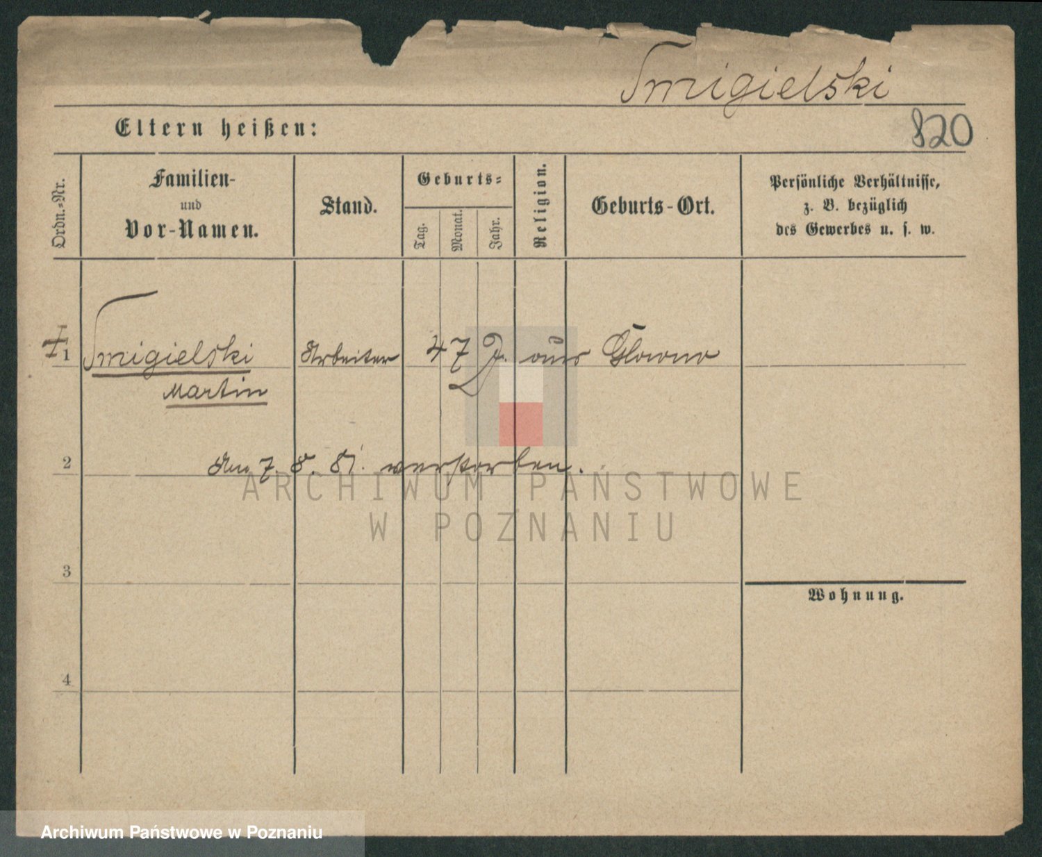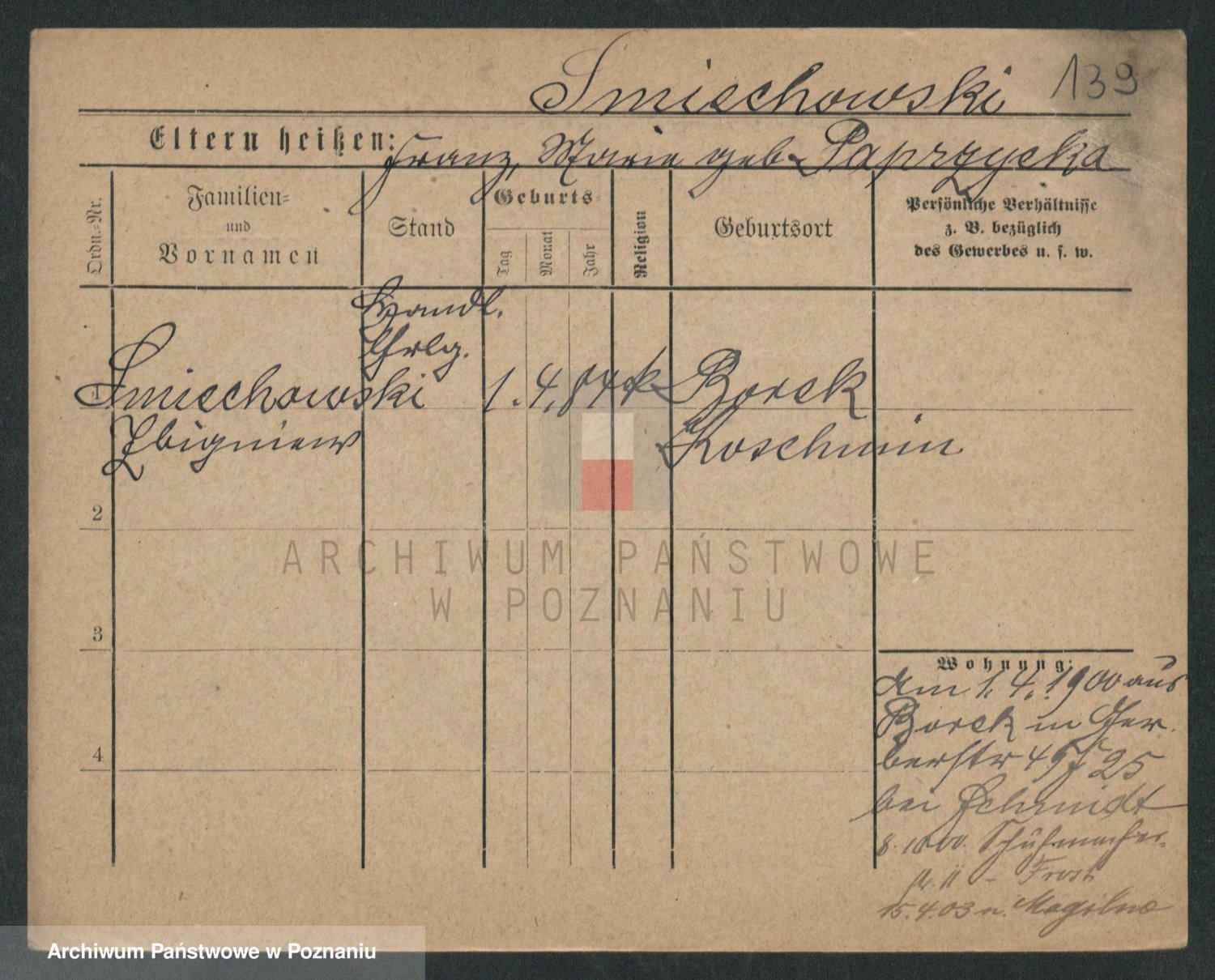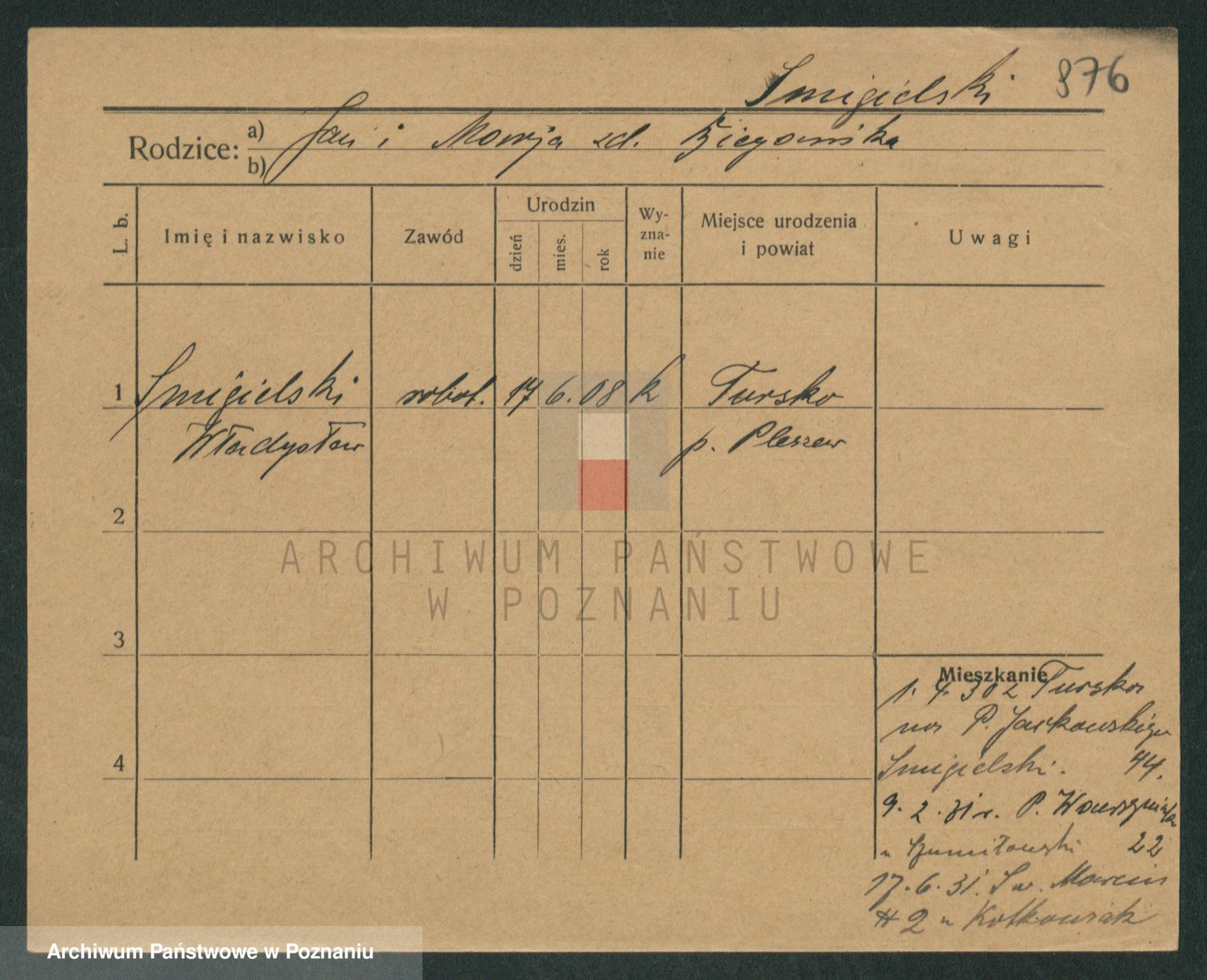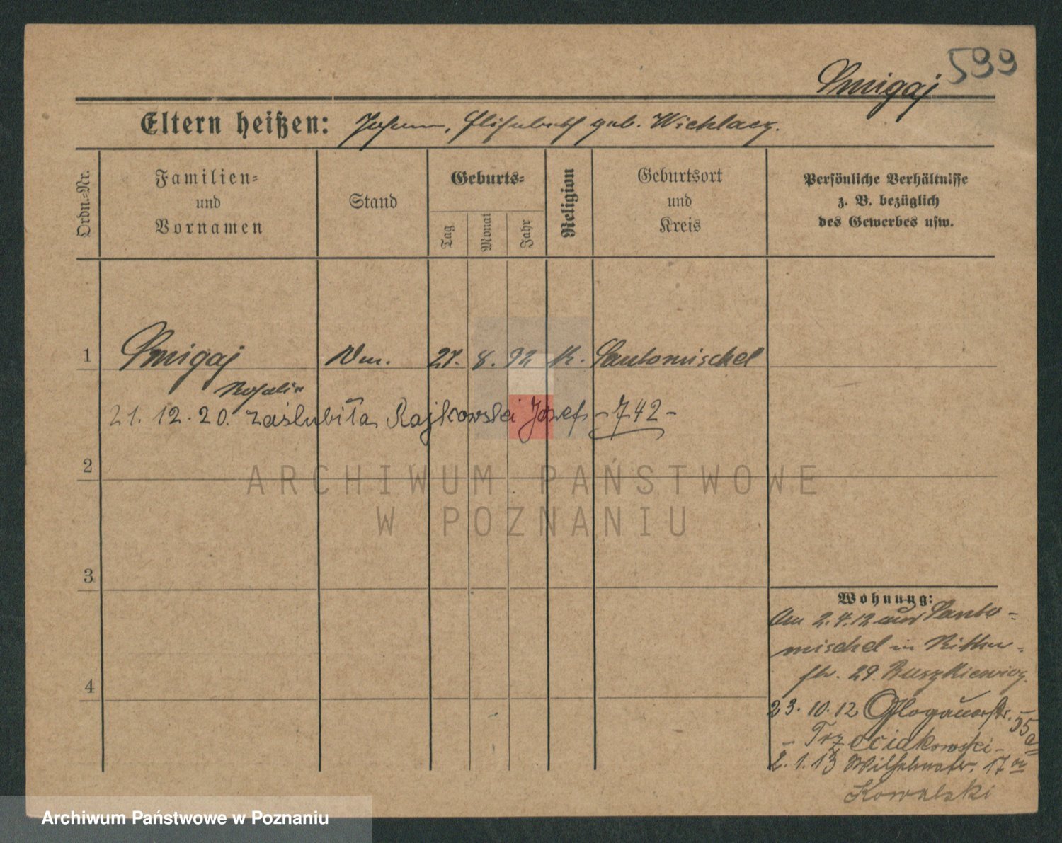 Podgląd karty osobowej dostępny jest po kliknięciu na nazwisko lub ikonkę karty. Można dokonywać powiększenia (ikony na górze) lub przechodzić między kolejnymi skanami (strzałki po bokach).