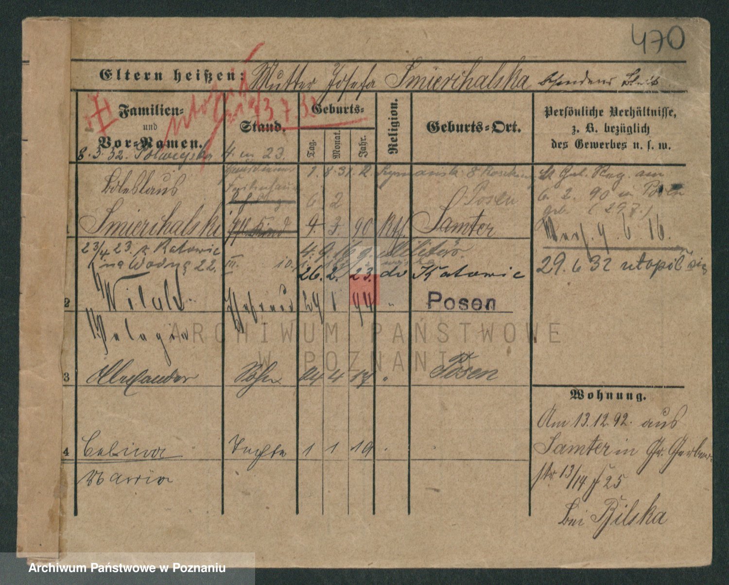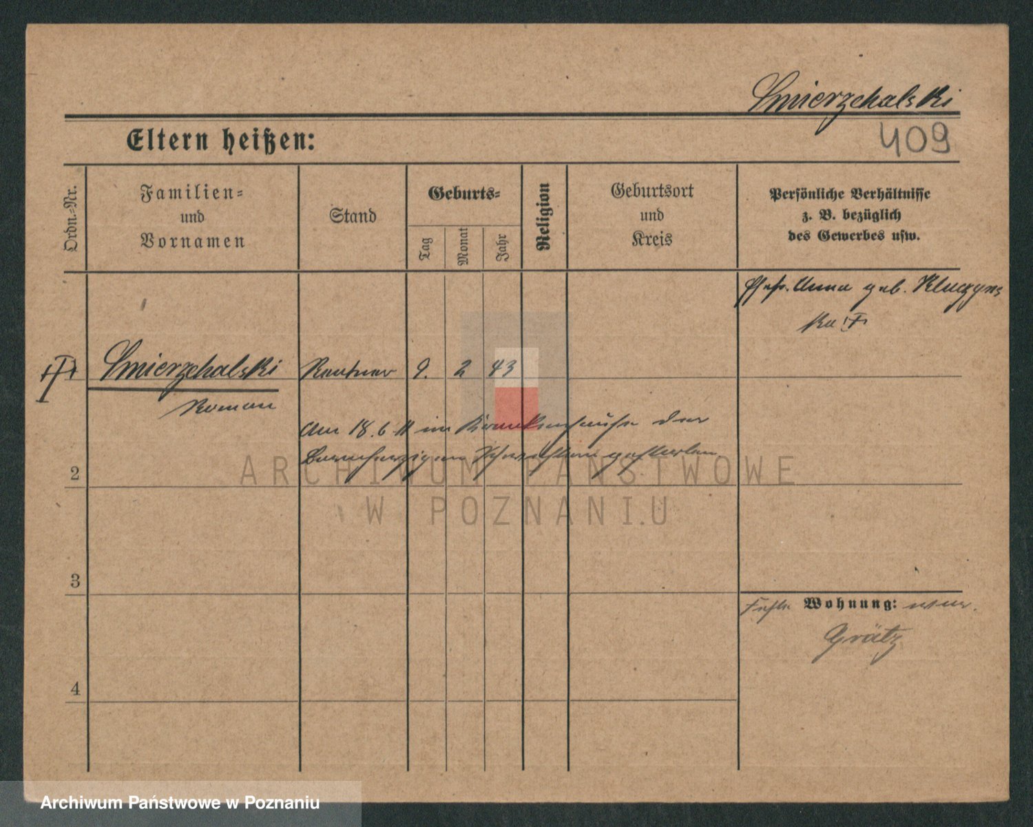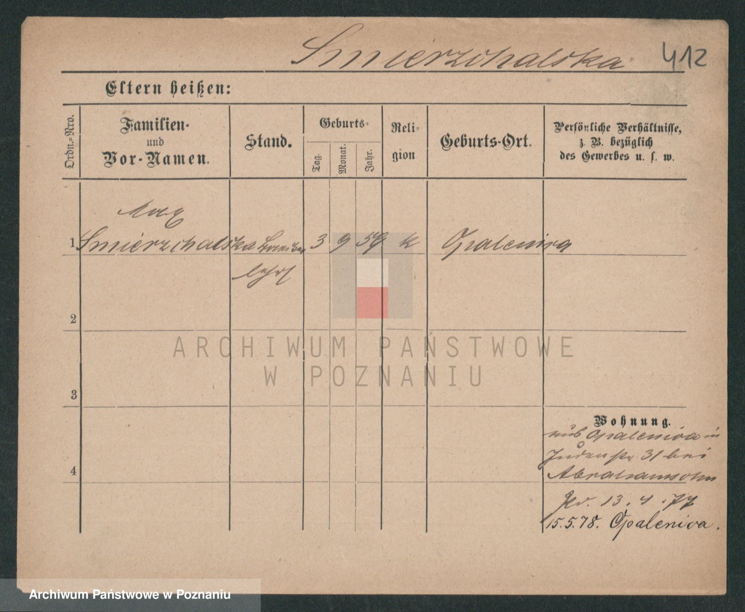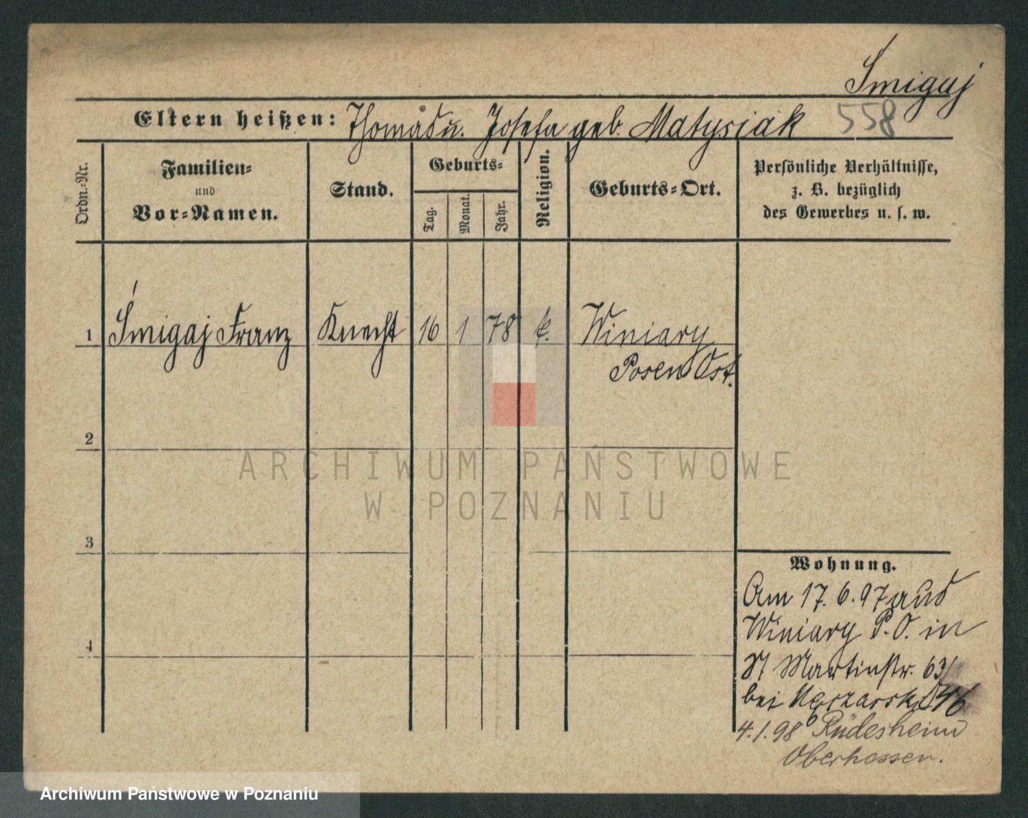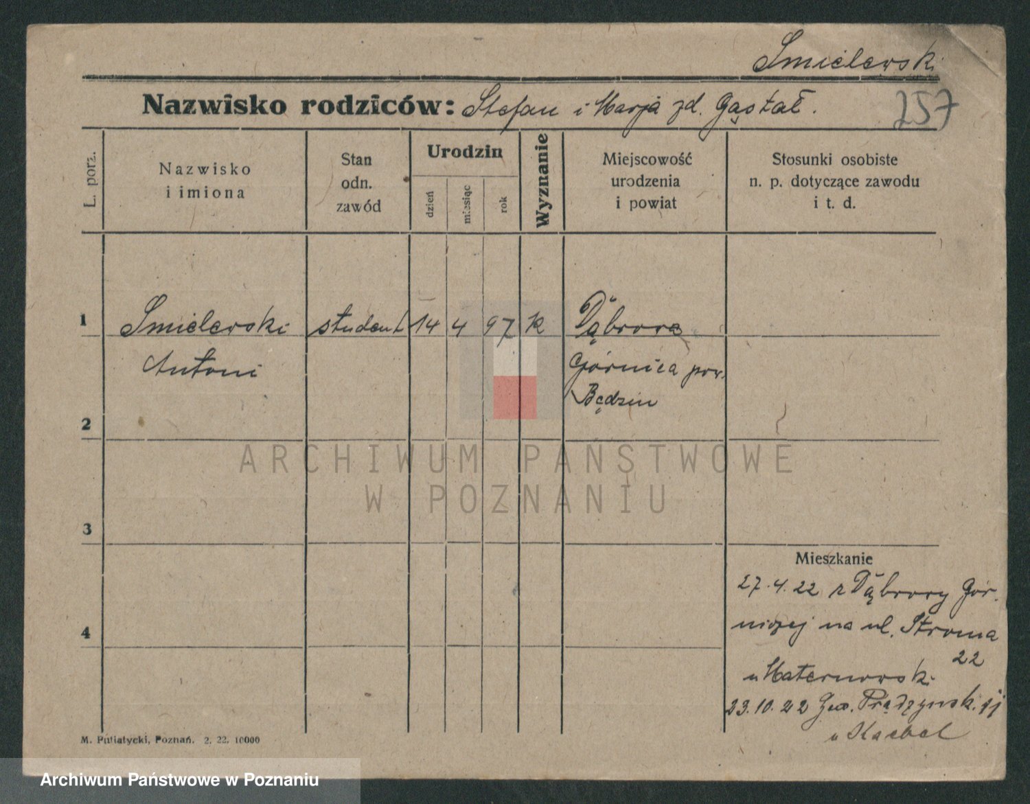 Podgląd karty osobowej dostępny jest po kliknięciu na nazwisko lub ikonkę karty. Można dokonywać powiększenia (ikony na górze) lub przechodzić między kolejnymi skanami (strzałki po bokach).