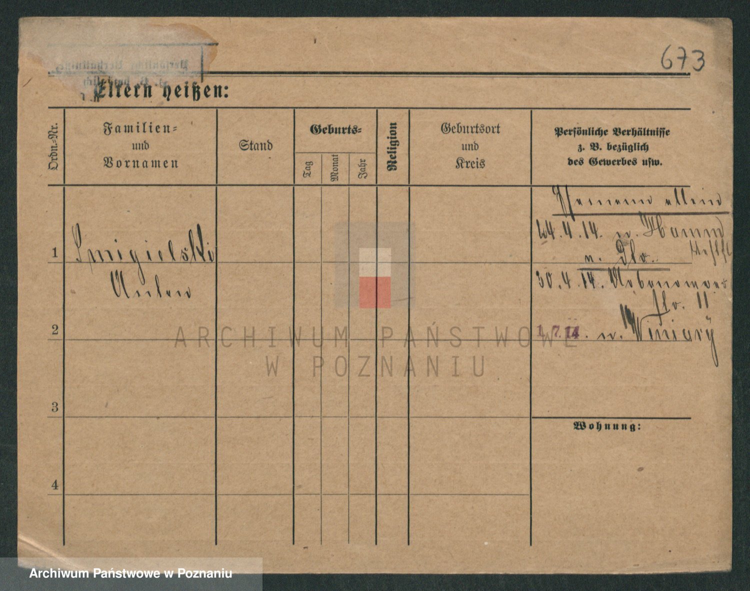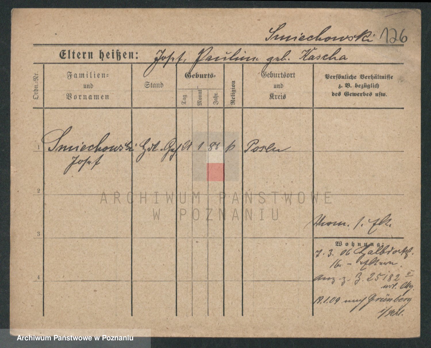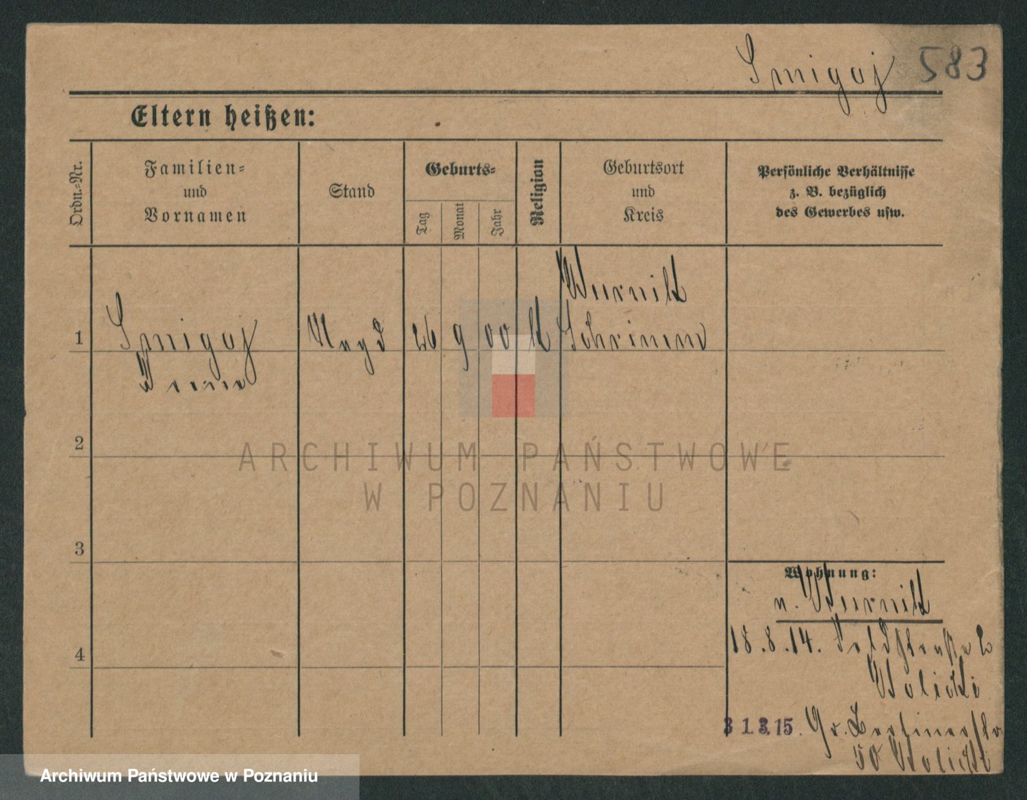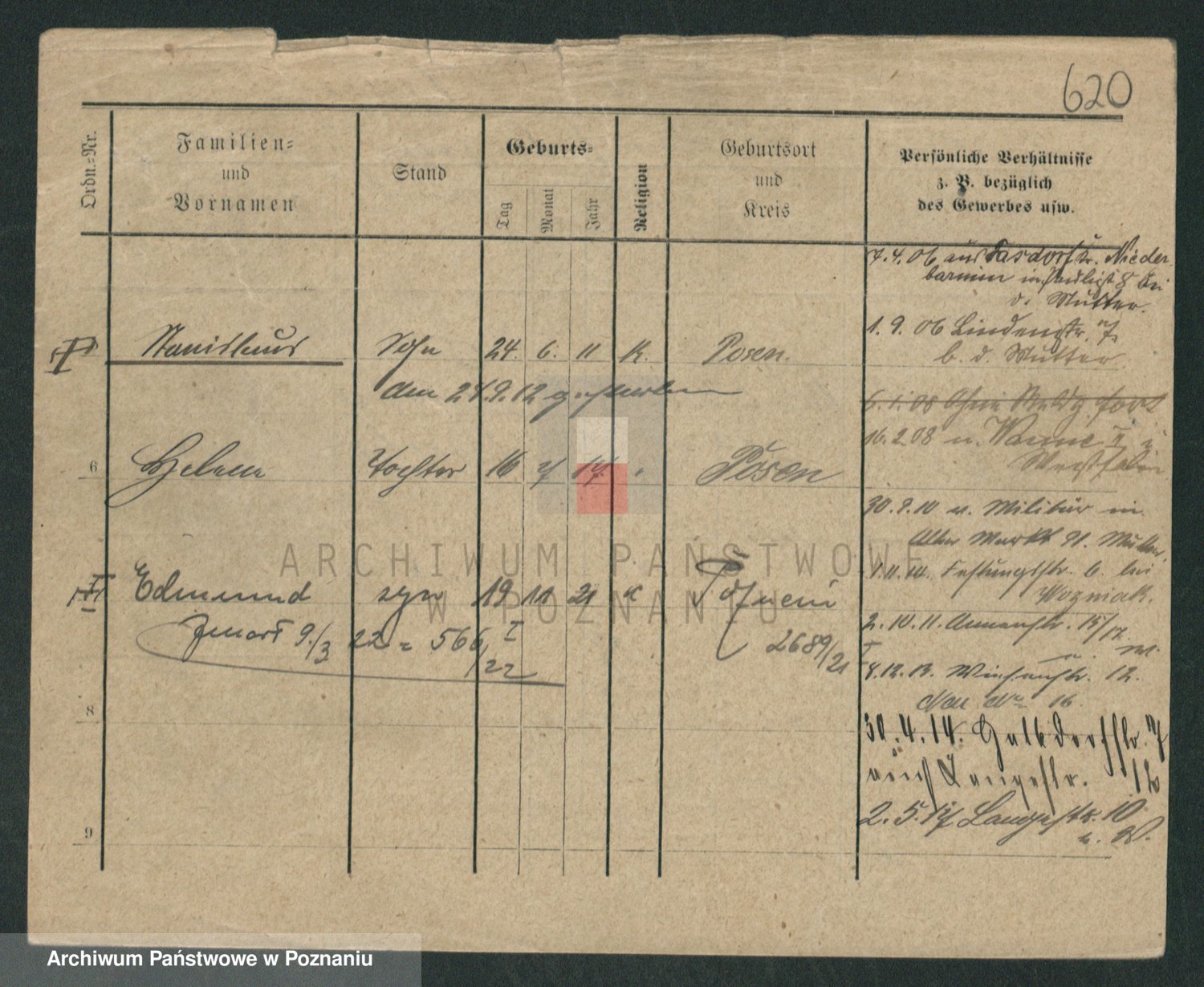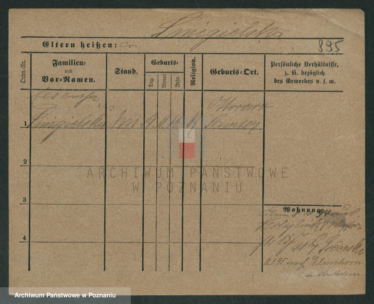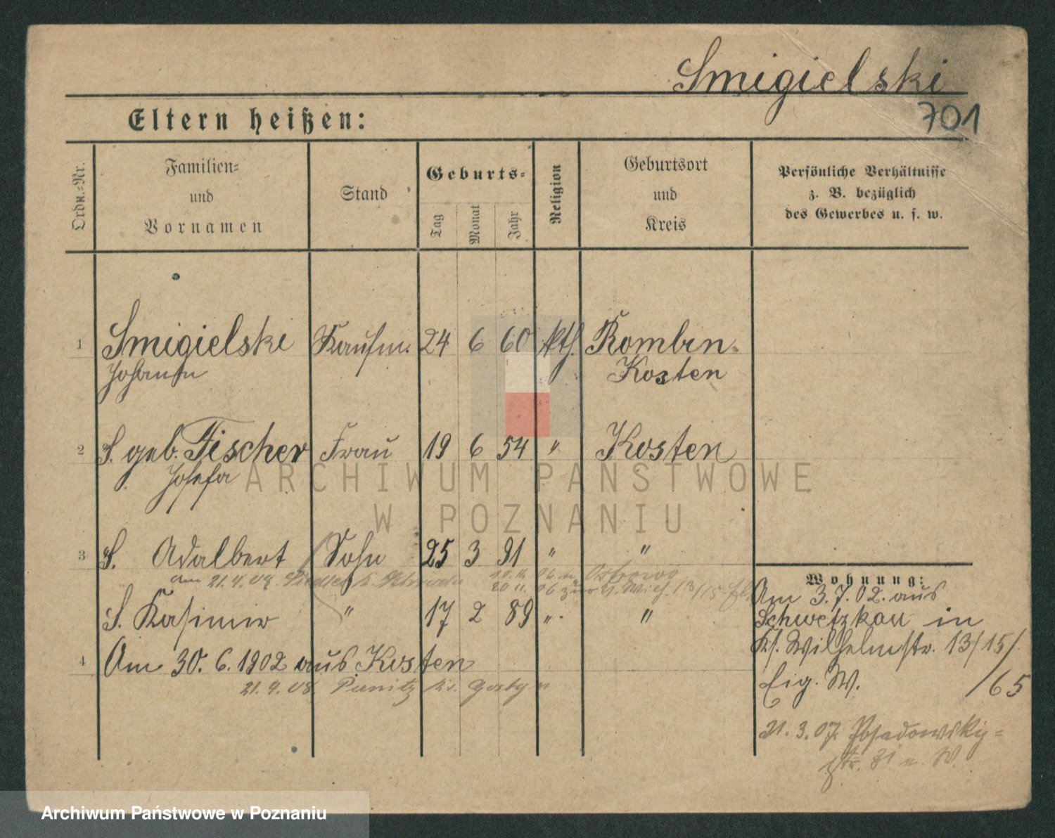 Podgląd karty osobowej dostępny jest po kliknięciu na nazwisko lub ikonkę karty. Można dokonywać powiększenia (ikony na górze) lub przechodzić między kolejnymi skanami (strzałki po bokach).