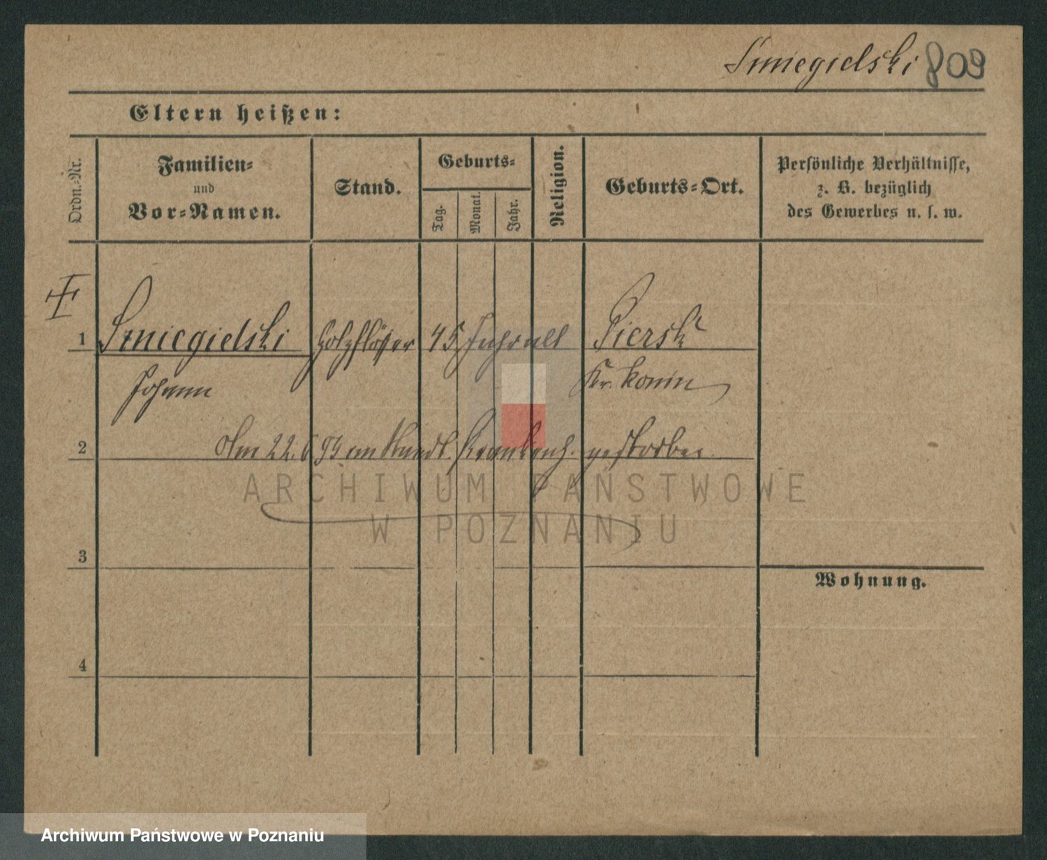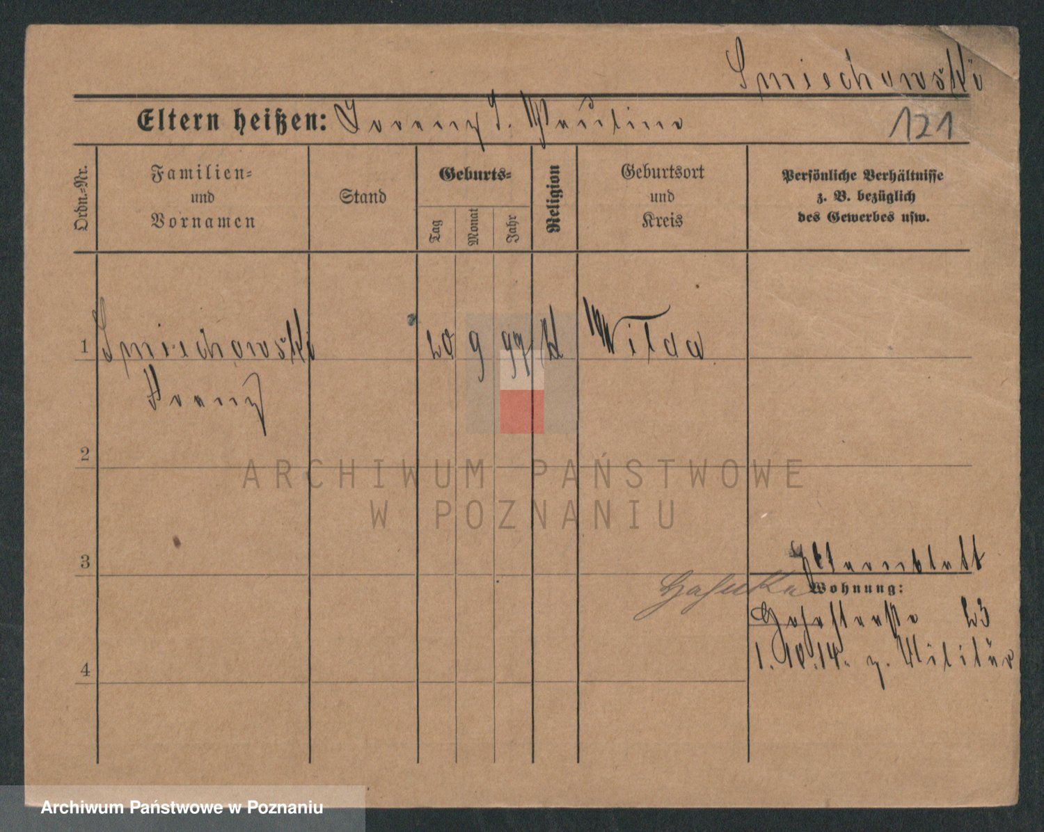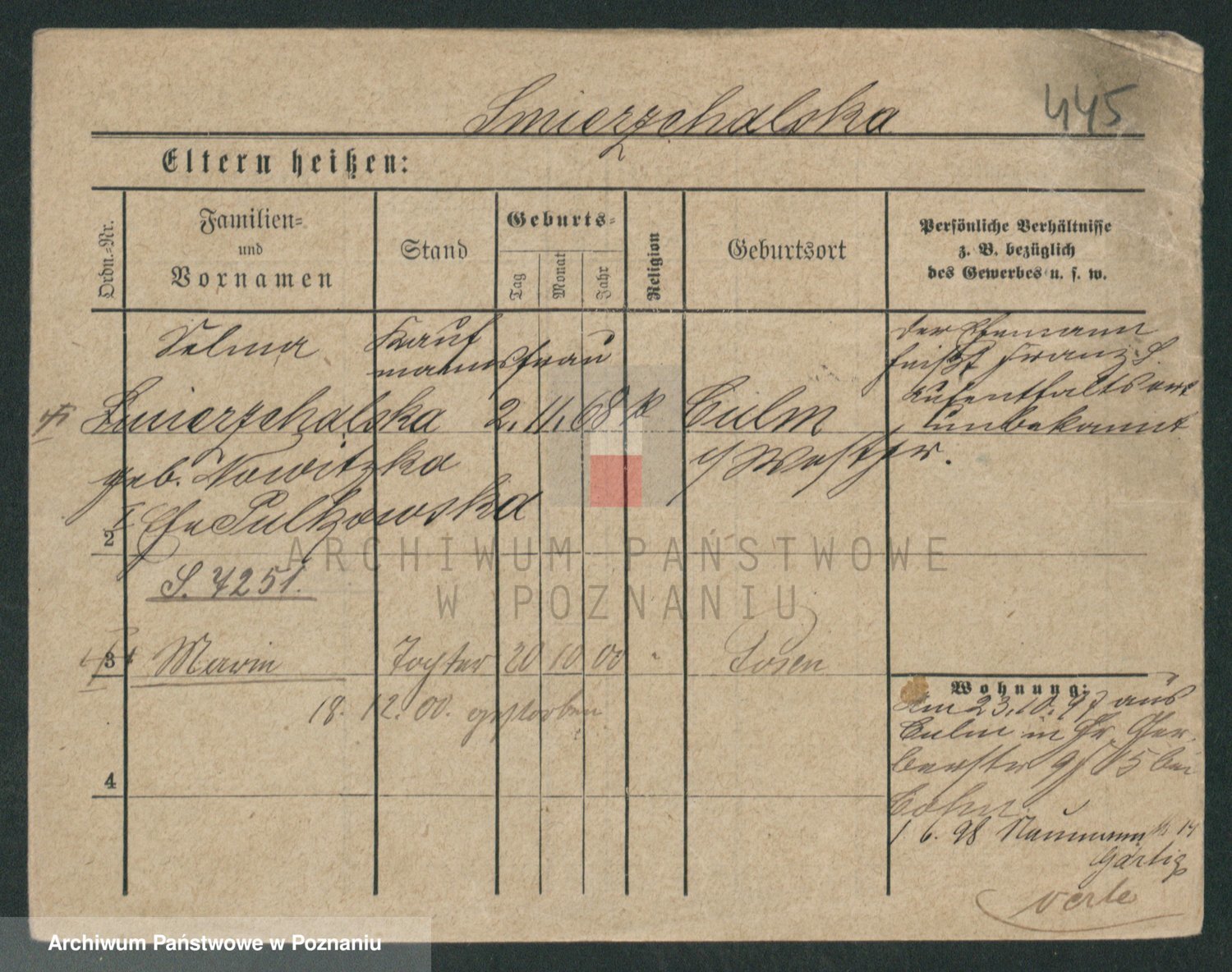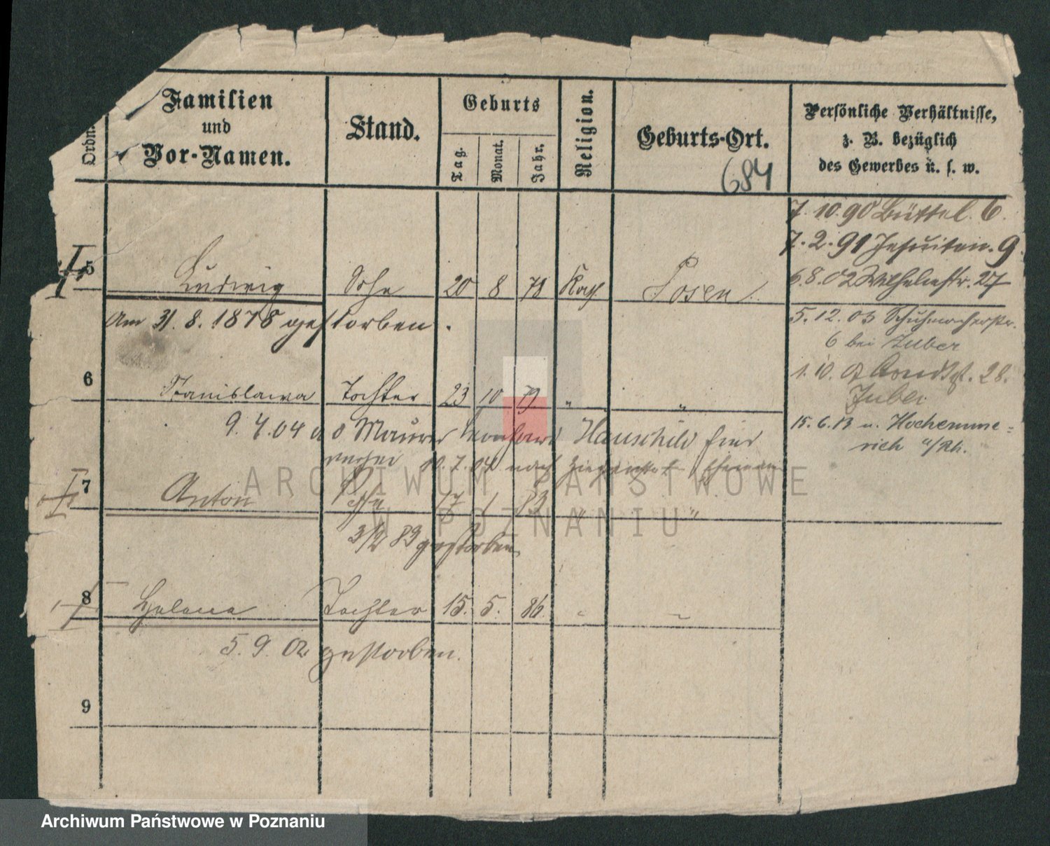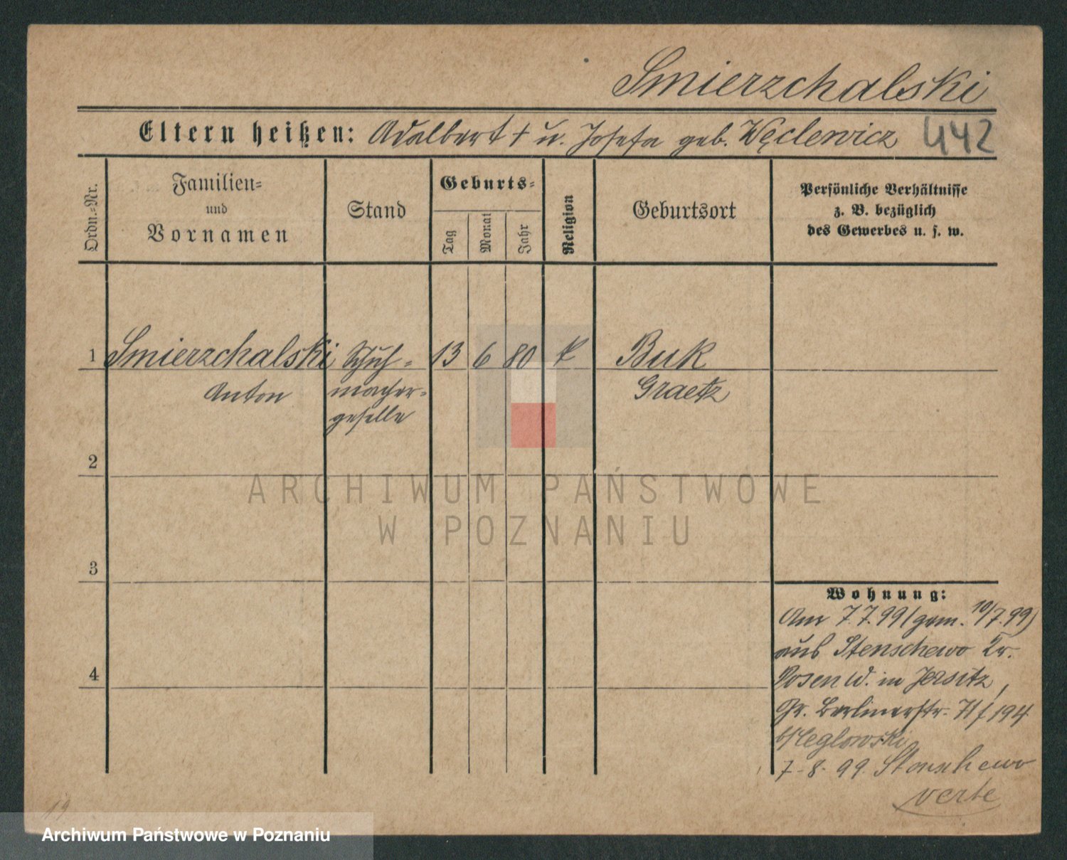 Podgląd karty osobowej dostępny jest po kliknięciu na nazwisko lub ikonkę karty. Można dokonywać powiększenia (ikony na górze) lub przechodzić między kolejnymi skanami (strzałki po bokach).