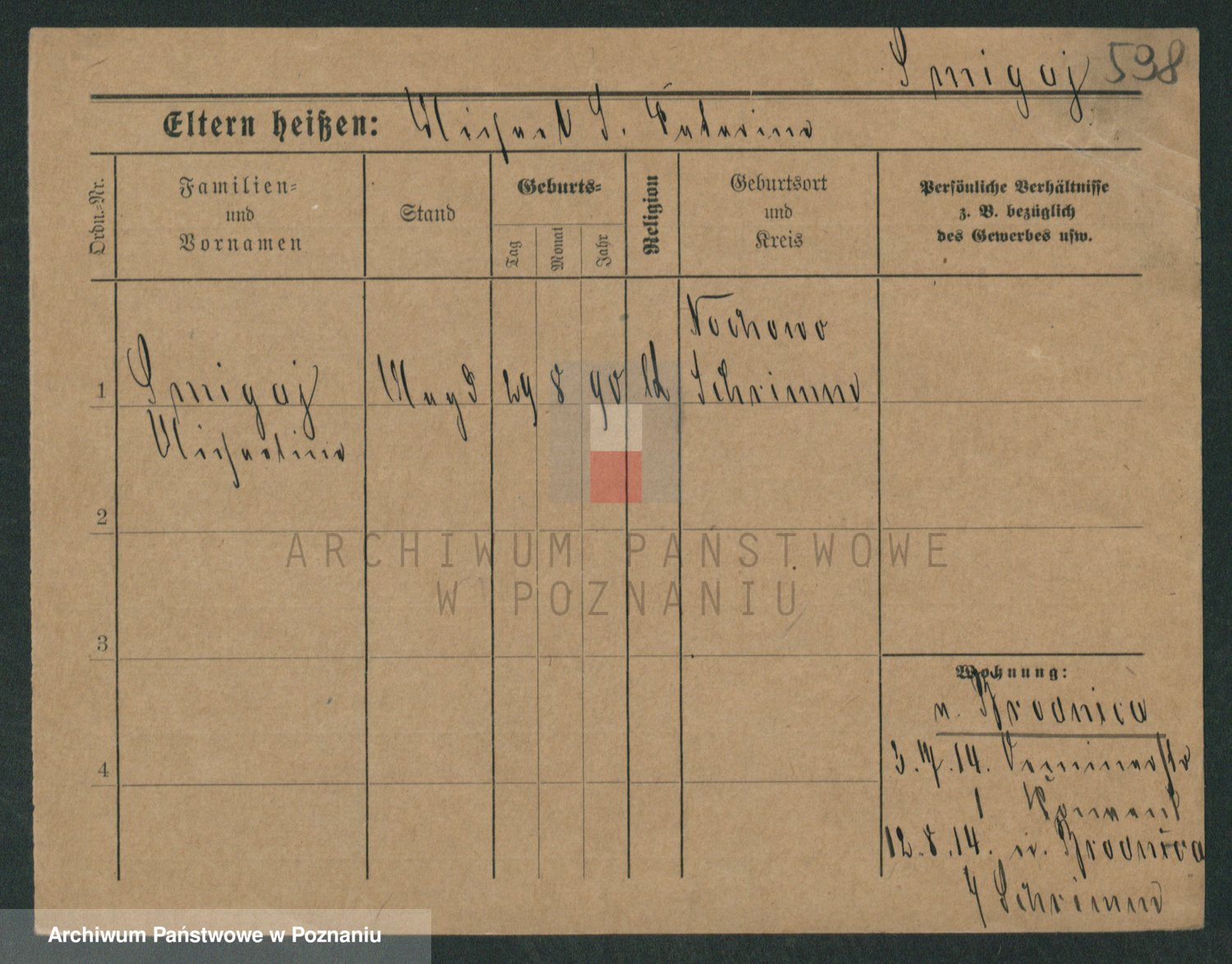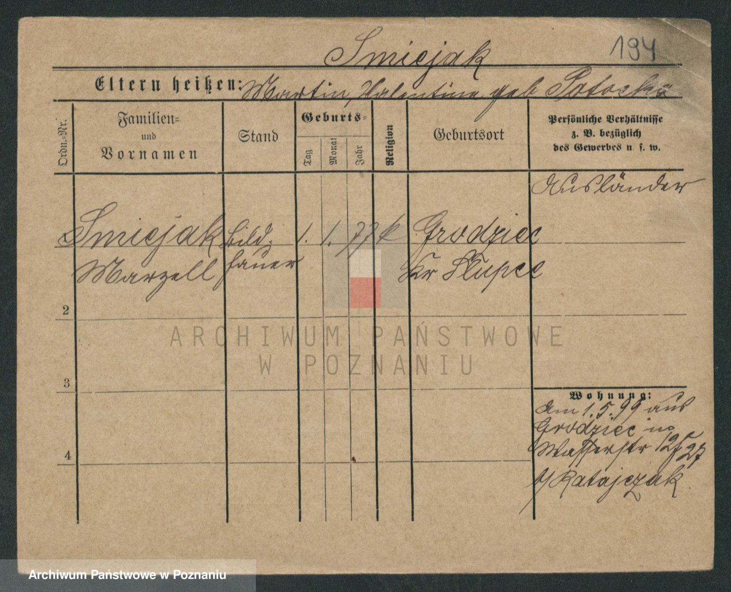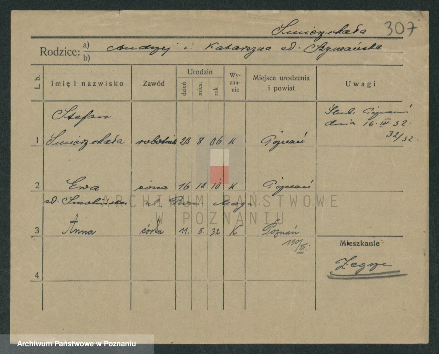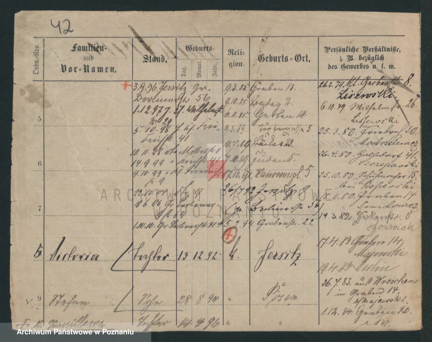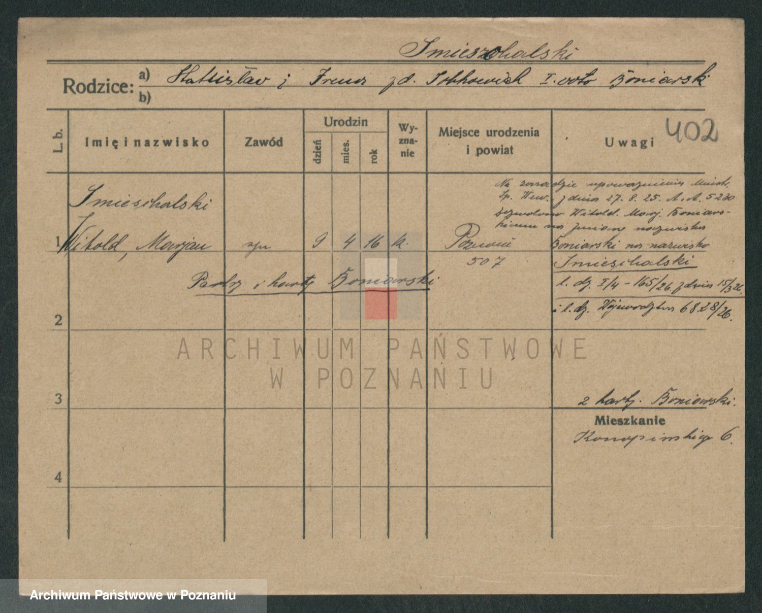 Podgląd karty osobowej dostępny jest po kliknięciu na nazwisko lub ikonkę karty. Można dokonywać powiększenia (ikony na górze) lub przechodzić między kolejnymi skanami (strzałki po bokach).