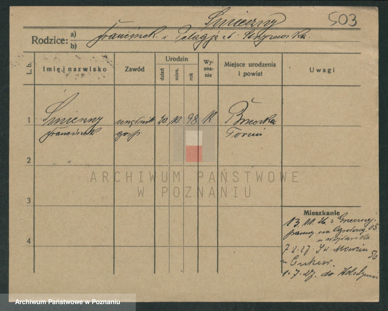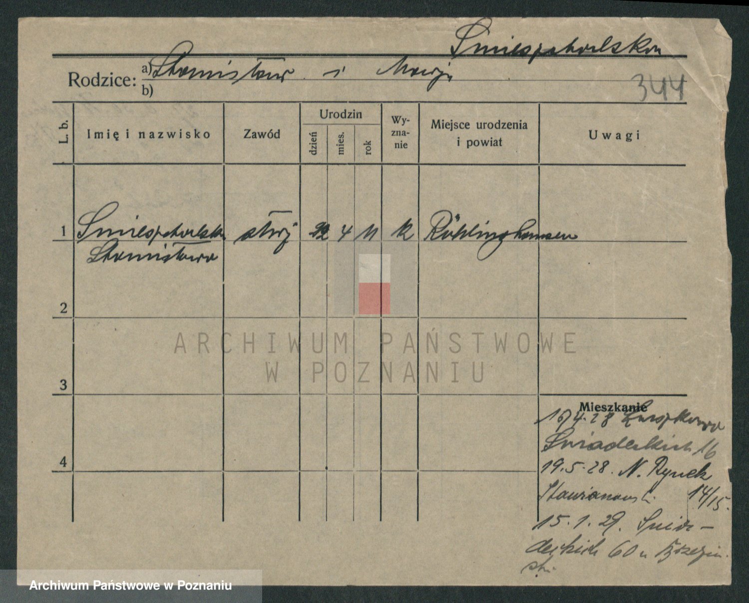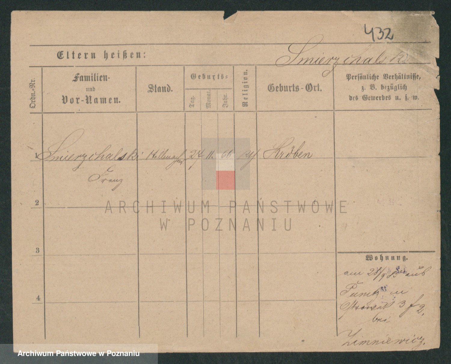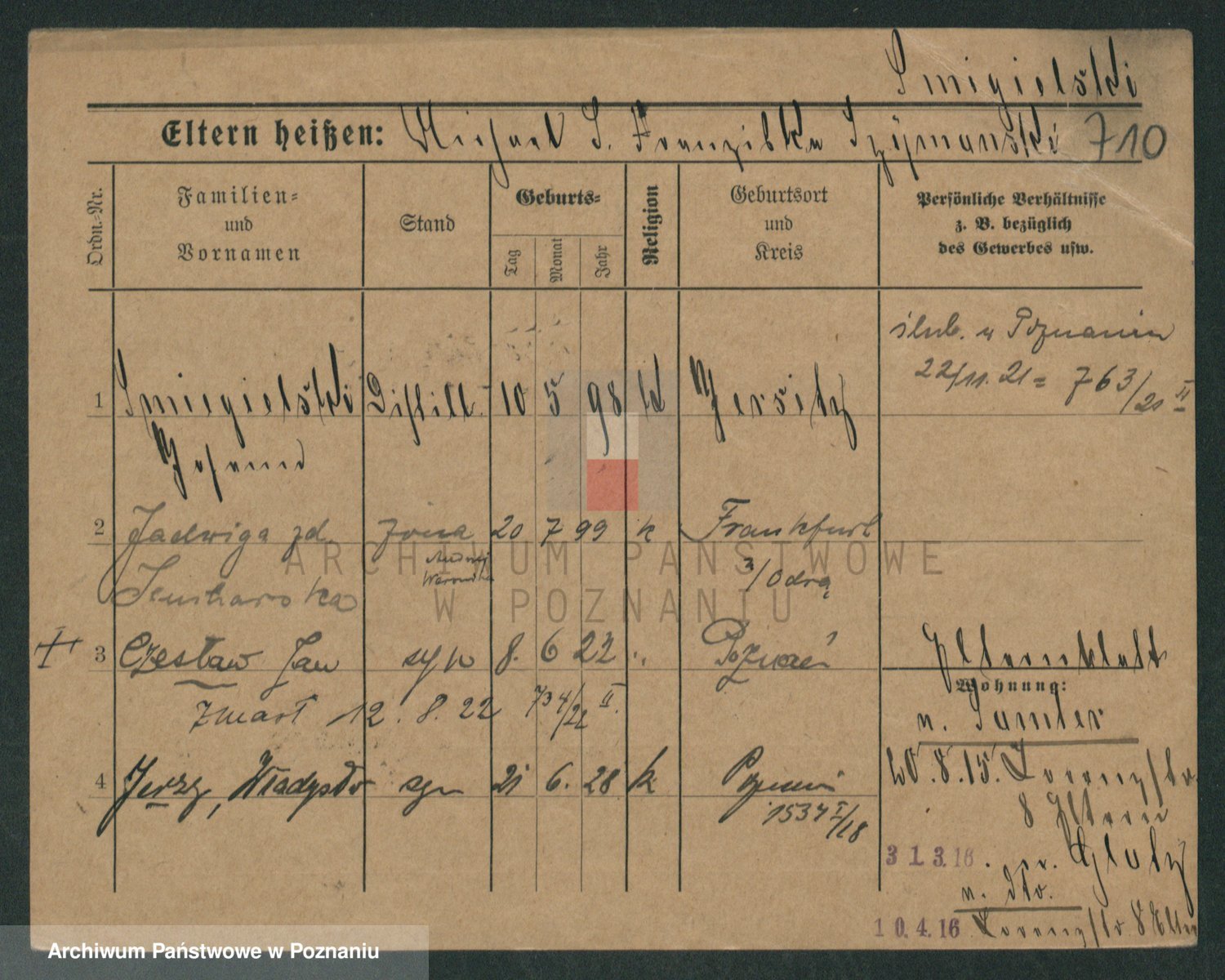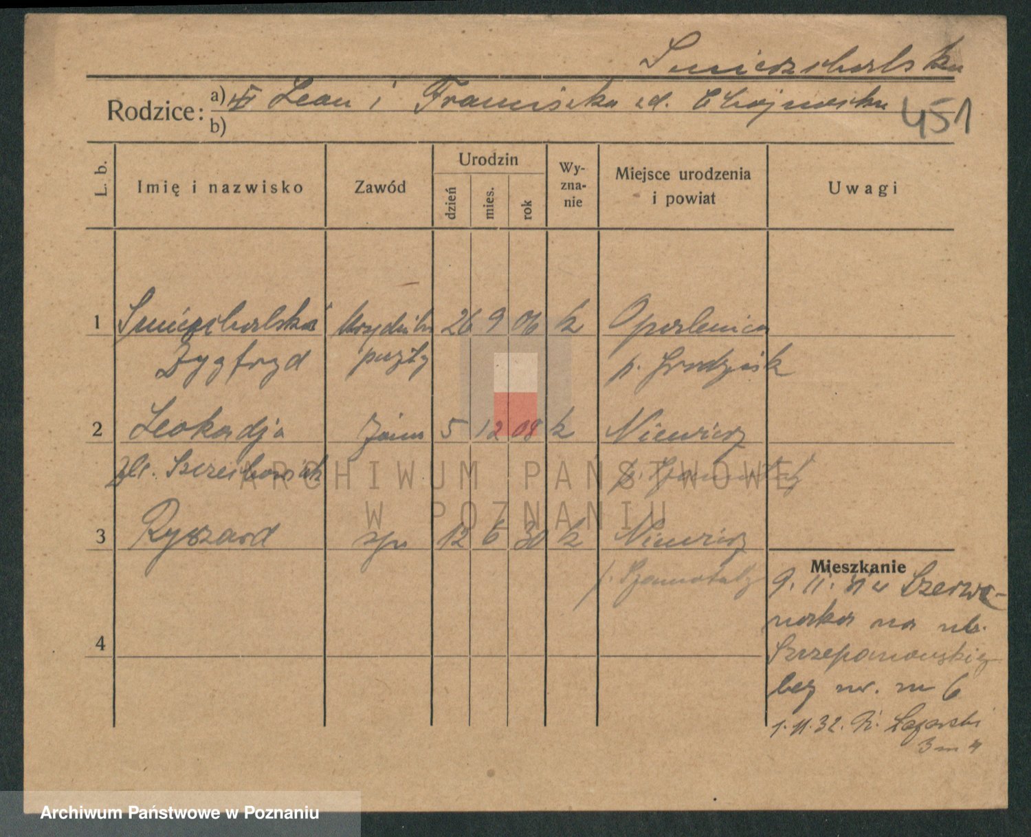 Podgląd karty osobowej dostępny jest po kliknięciu na nazwisko lub ikonkę karty. Można dokonywać powiększenia (ikony na górze) lub przechodzić między kolejnymi skanami (strzałki po bokach).