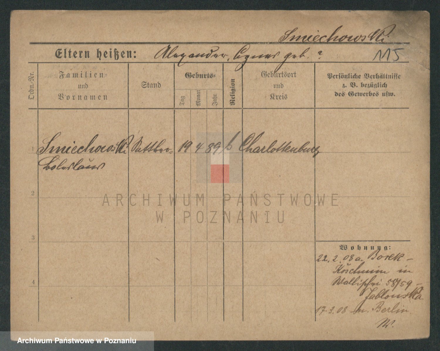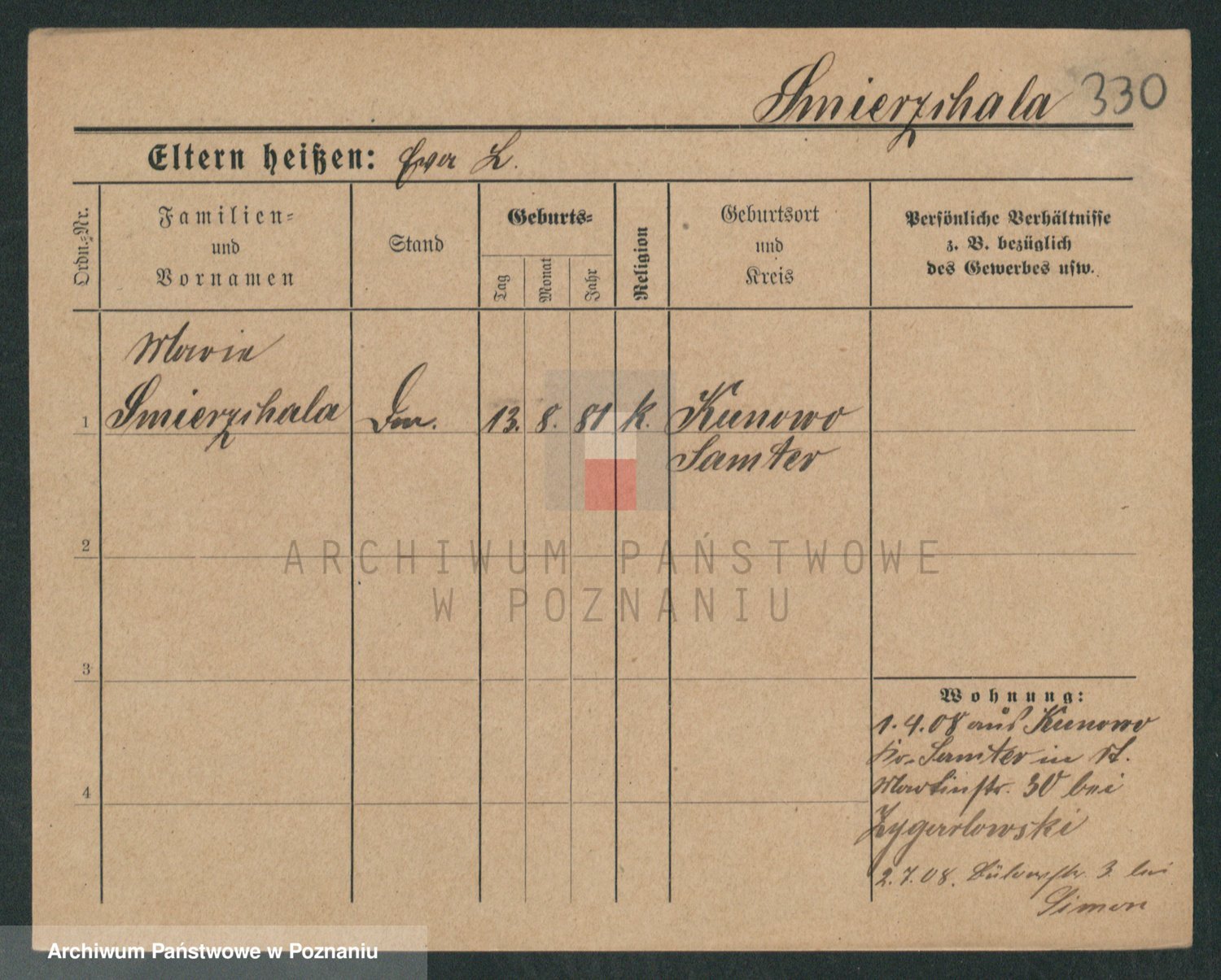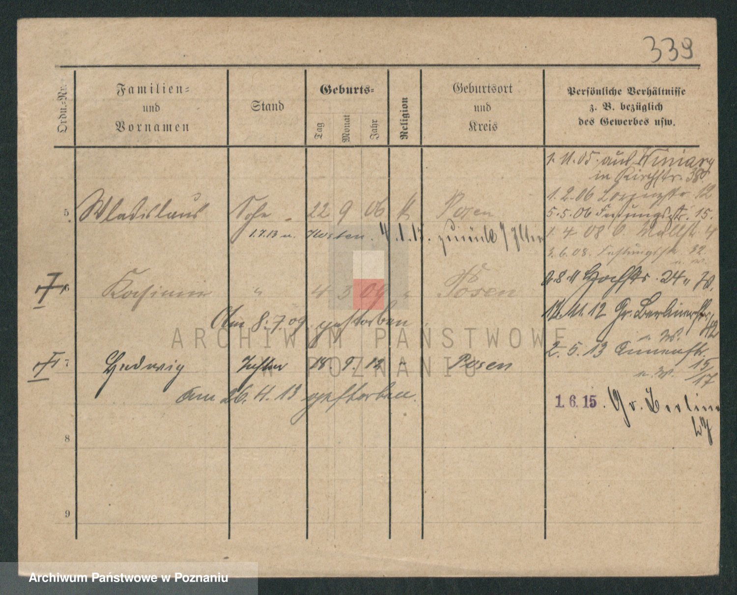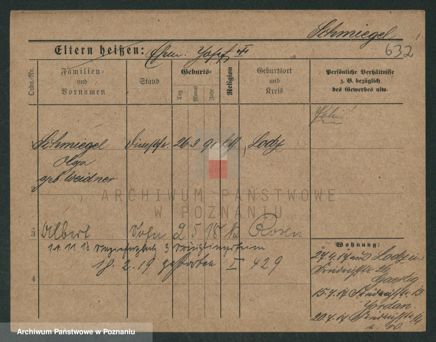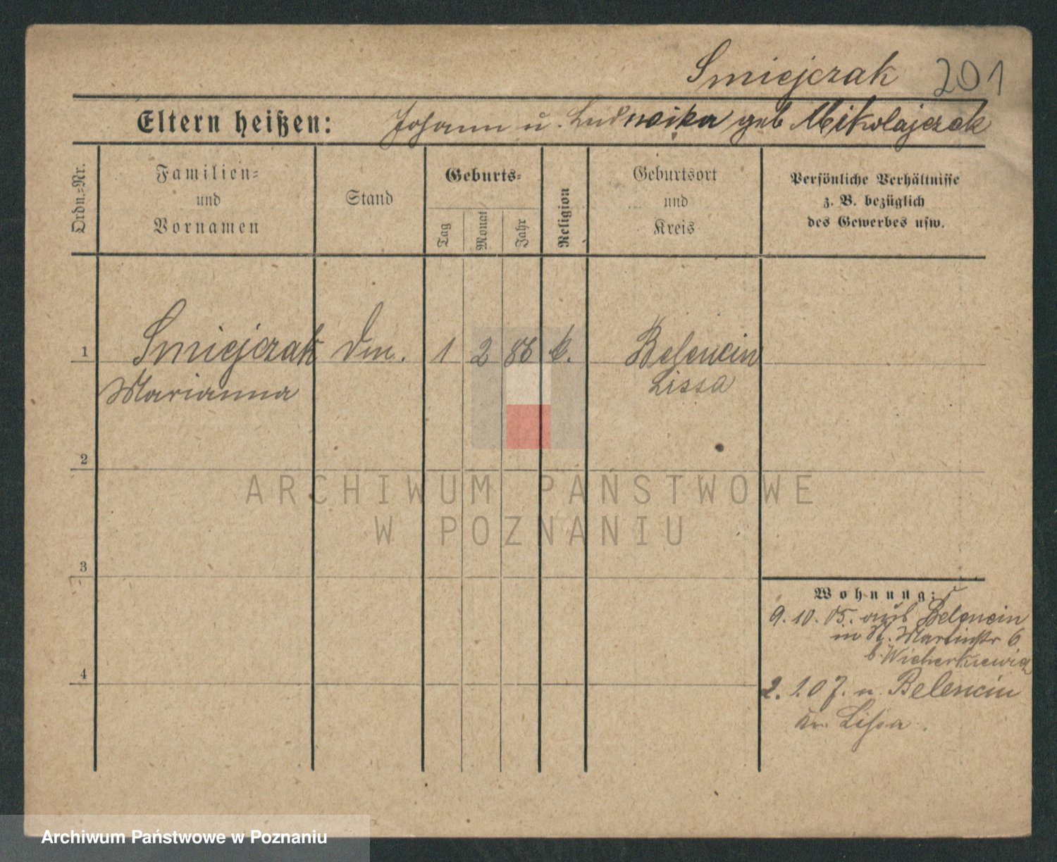 Podgląd karty osobowej dostępny jest po kliknięciu na nazwisko lub ikonkę karty. Można dokonywać powiększenia (ikony na górze) lub przechodzić między kolejnymi skanami (strzałki po bokach).