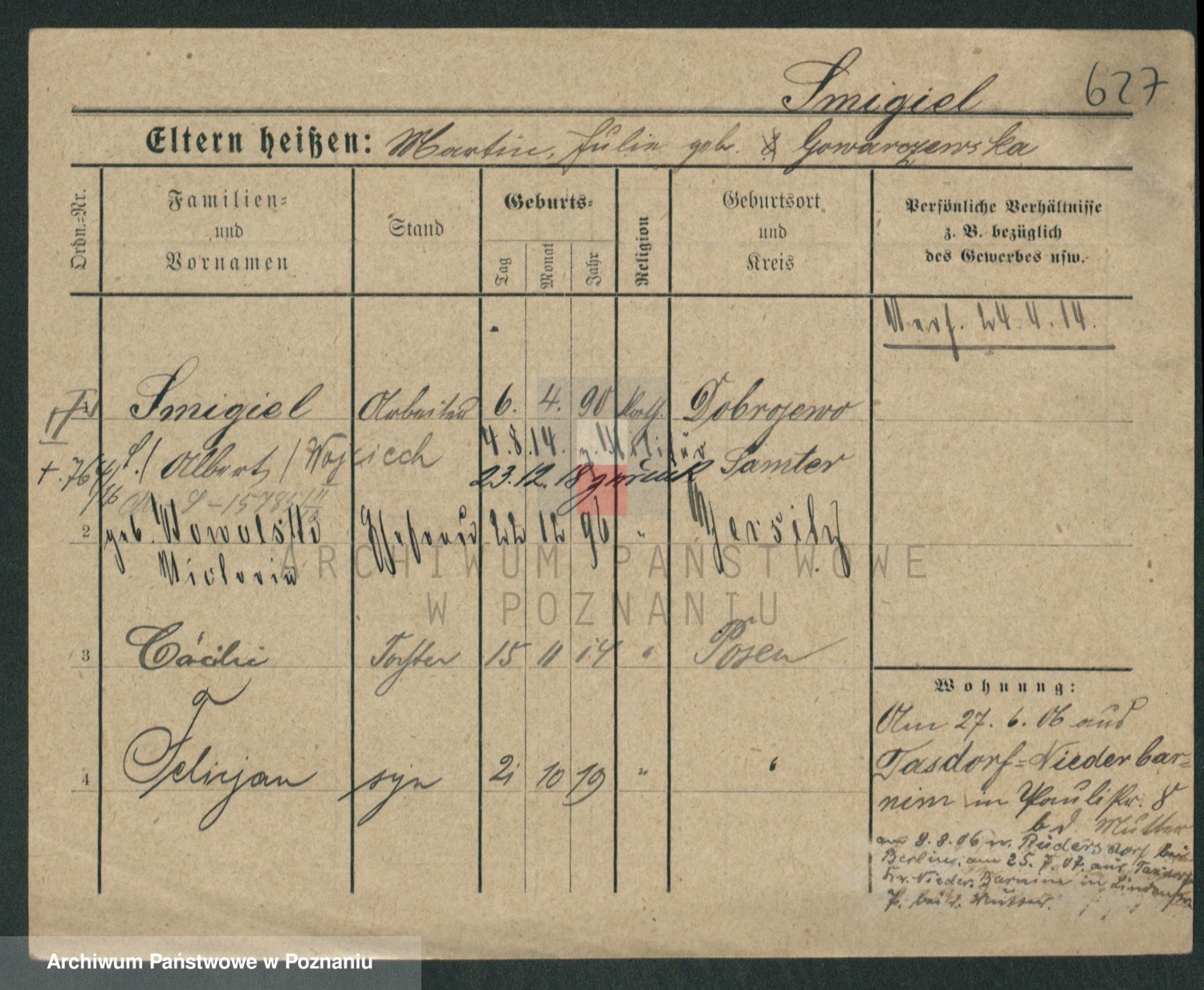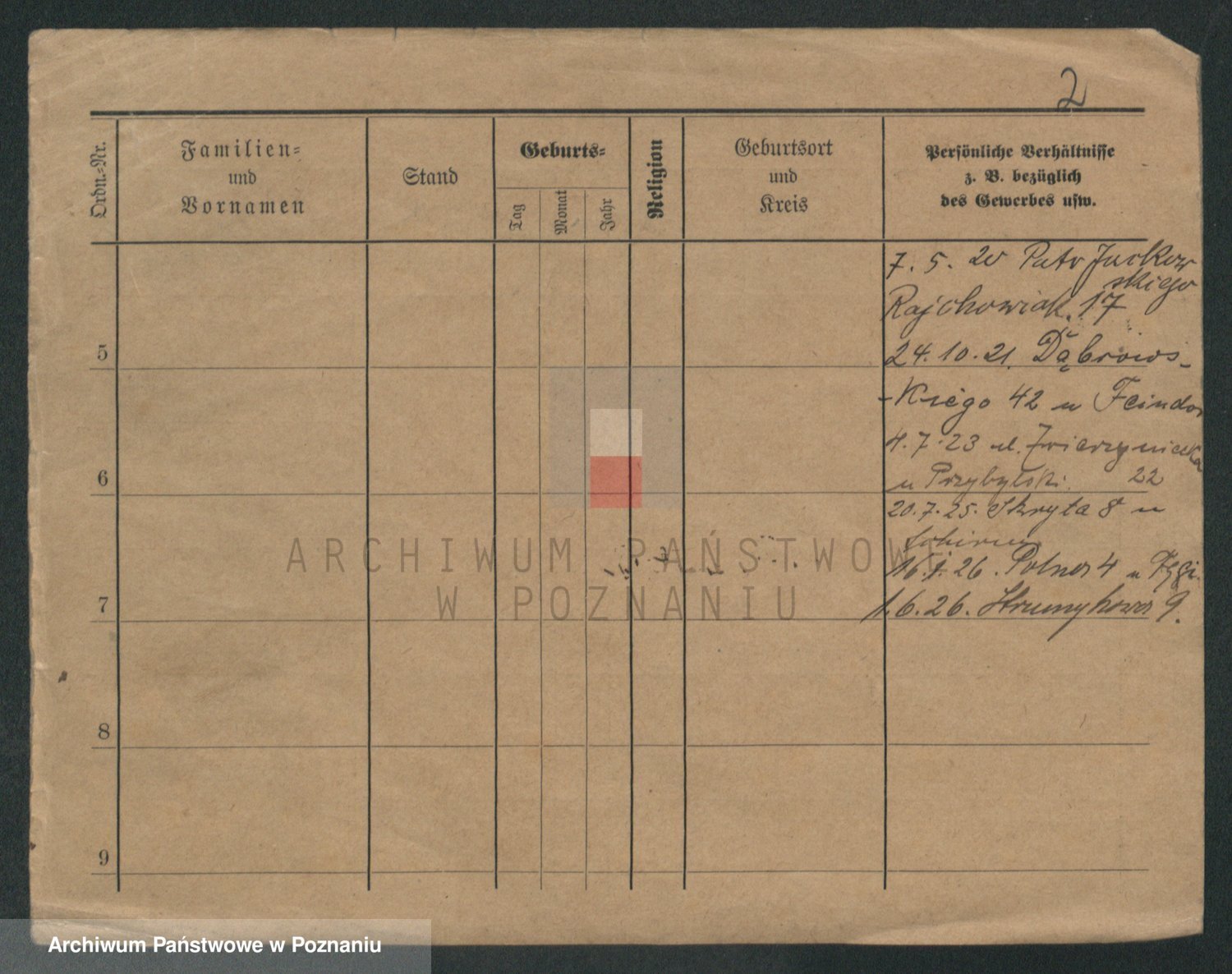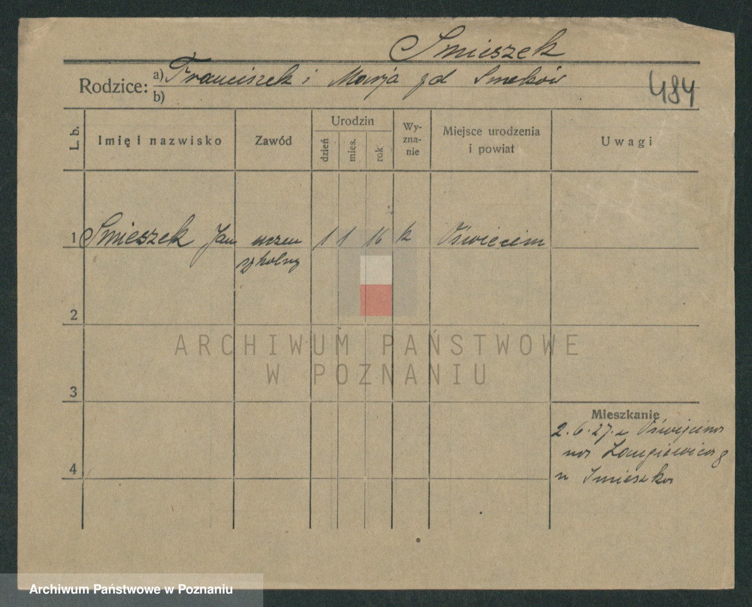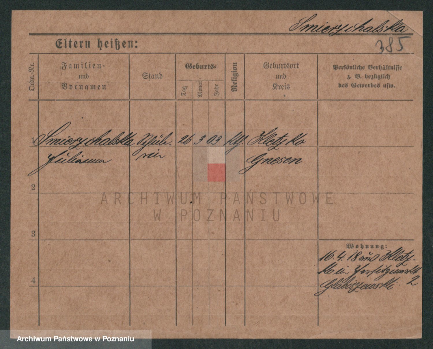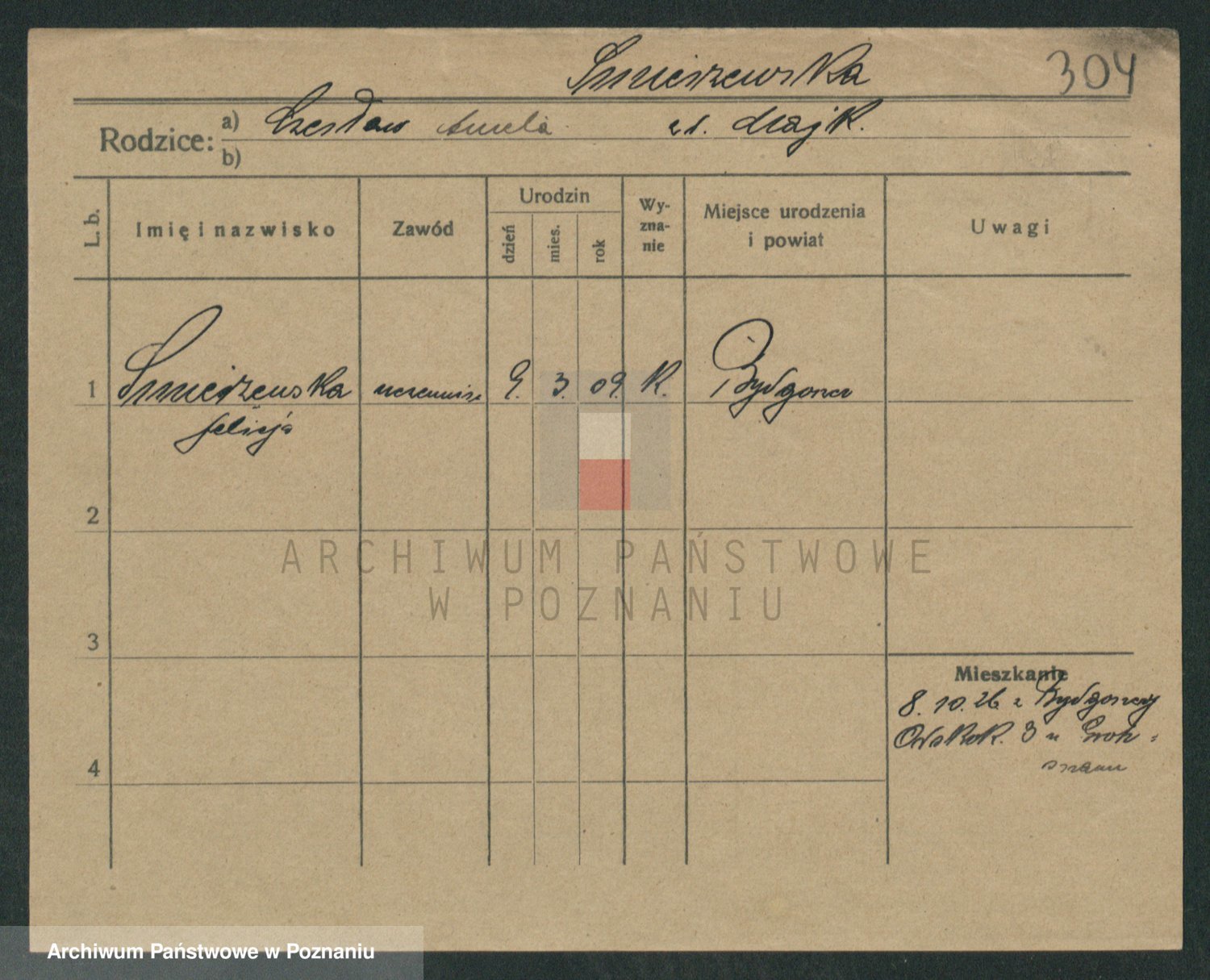 Podgląd karty osobowej dostępny jest po kliknięciu na nazwisko lub ikonkę karty. Można dokonywać powiększenia (ikony na górze) lub przechodzić między kolejnymi skanami (strzałki po bokach).
