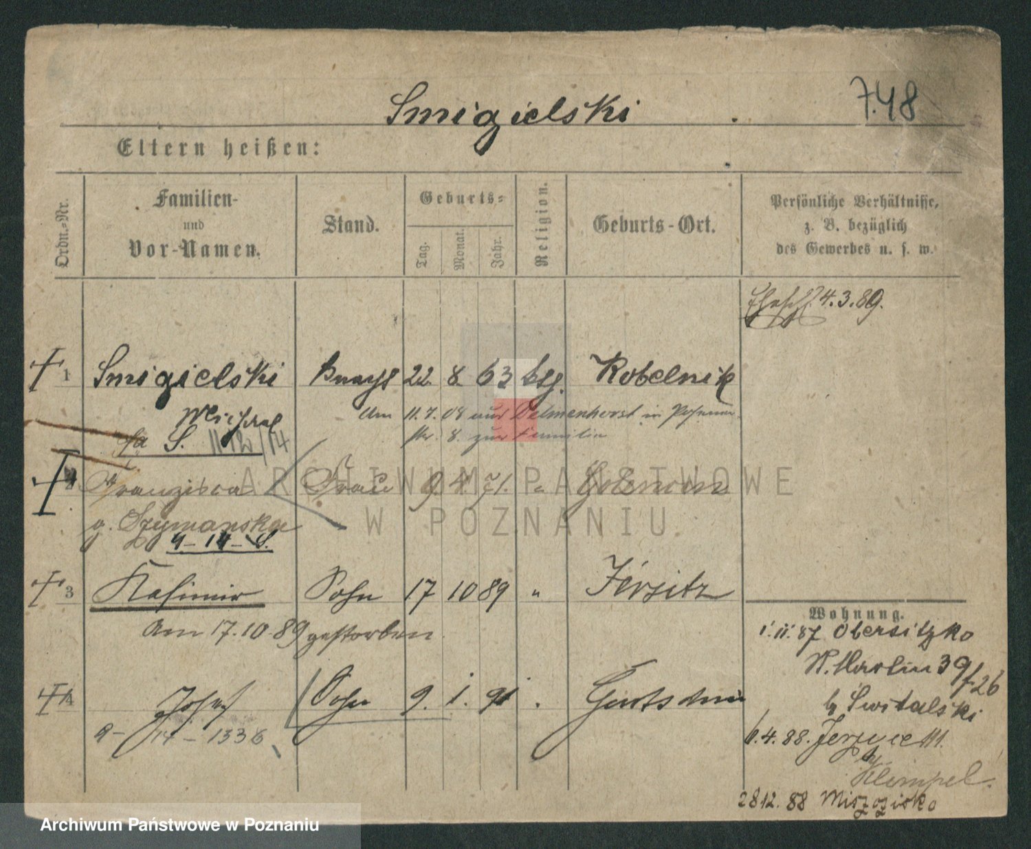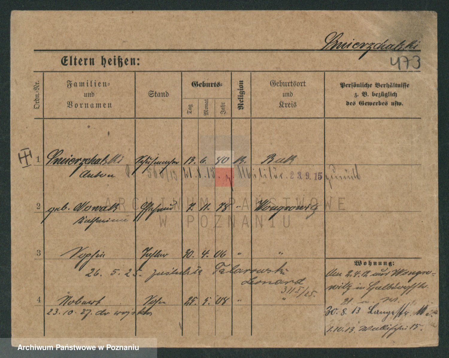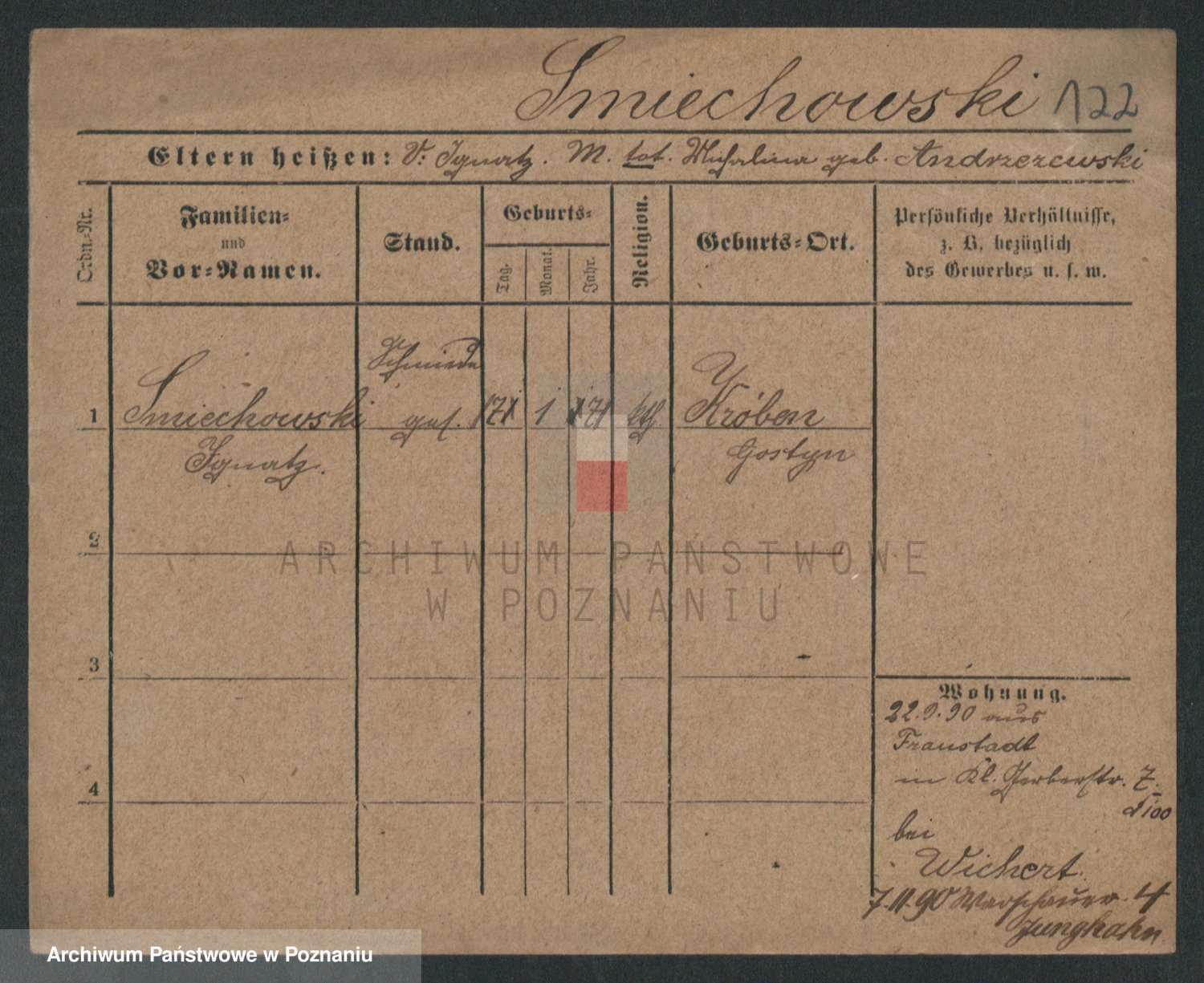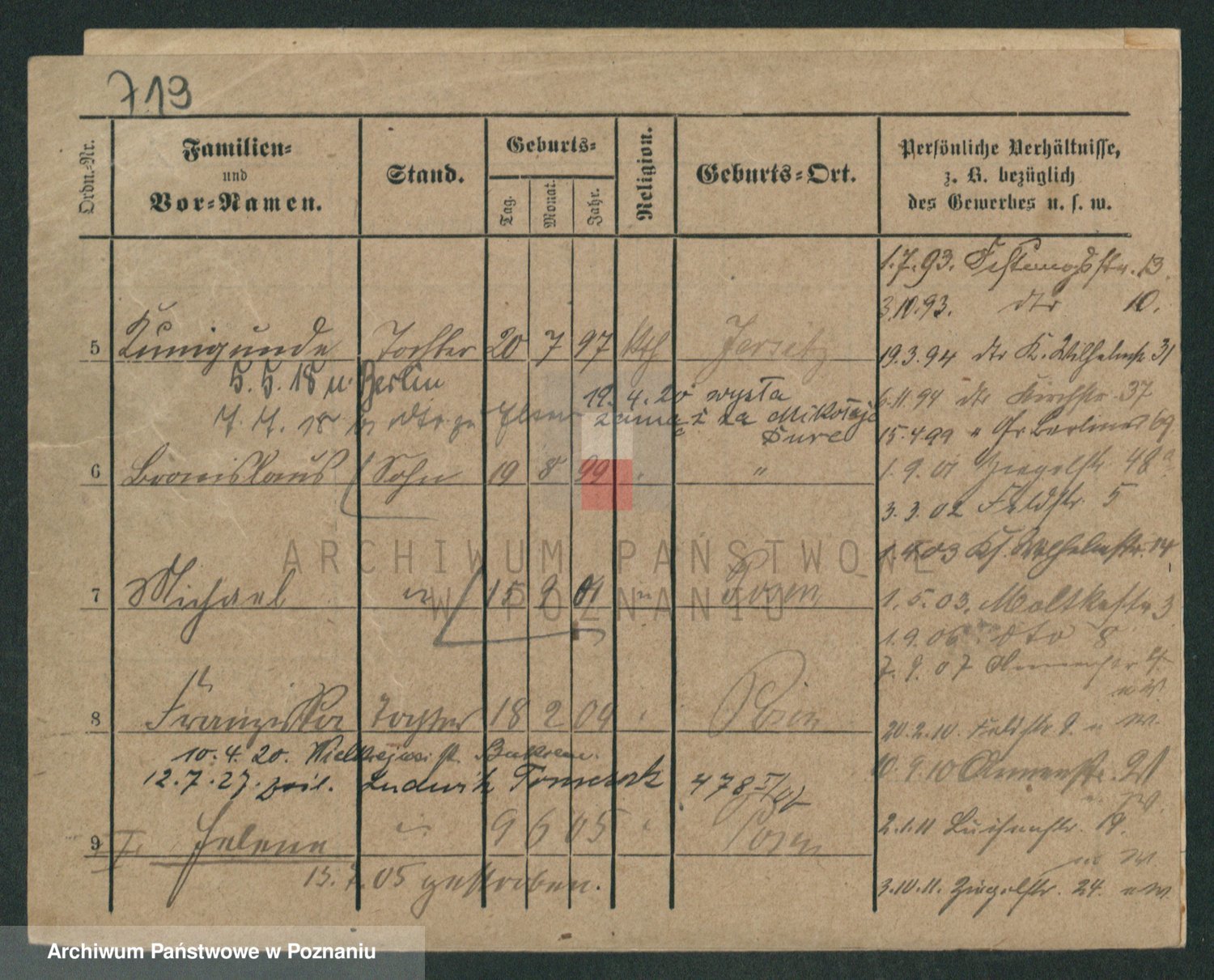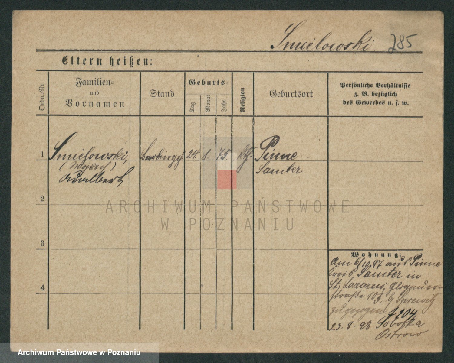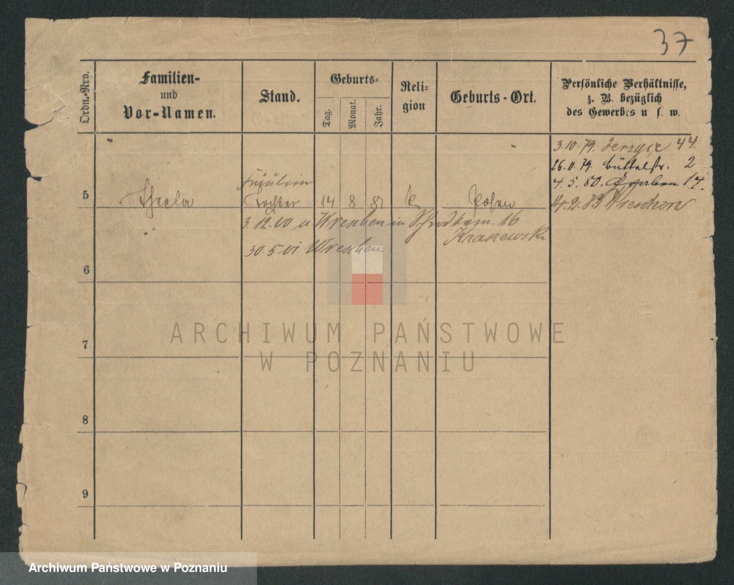 Podgląd karty osobowej dostępny jest po kliknięciu na nazwisko lub ikonkę karty. Można dokonywać powiększenia (ikony na górze) lub przechodzić między kolejnymi skanami (strzałki po bokach).