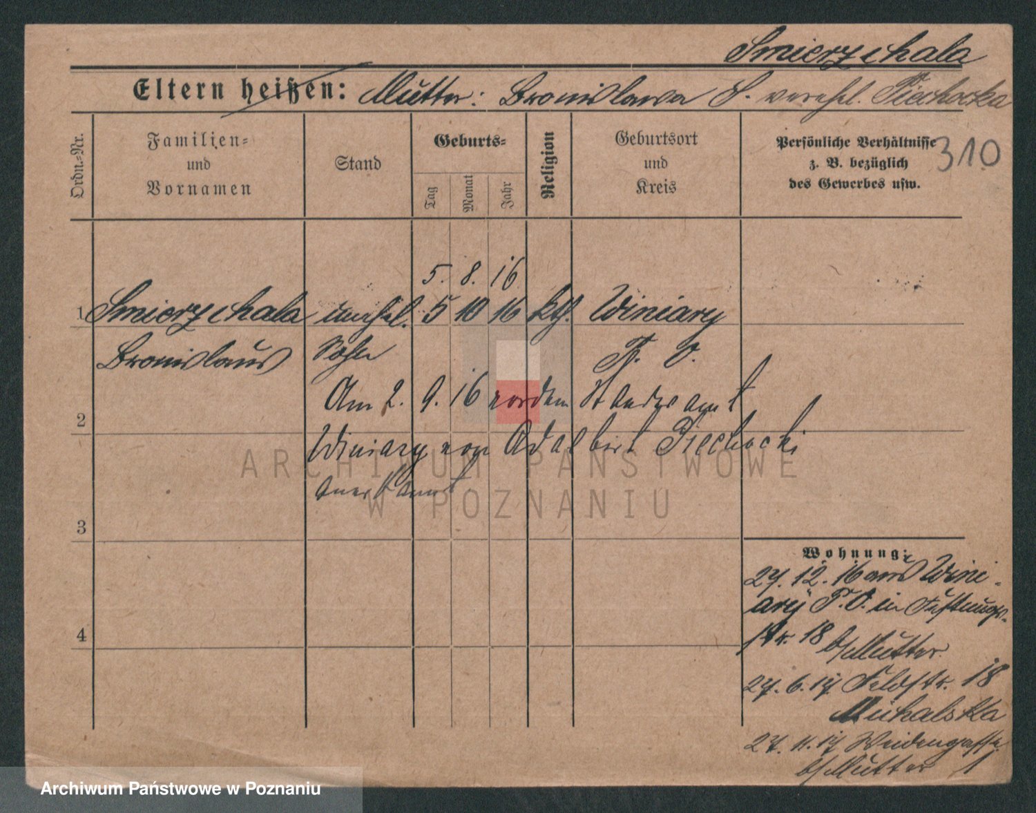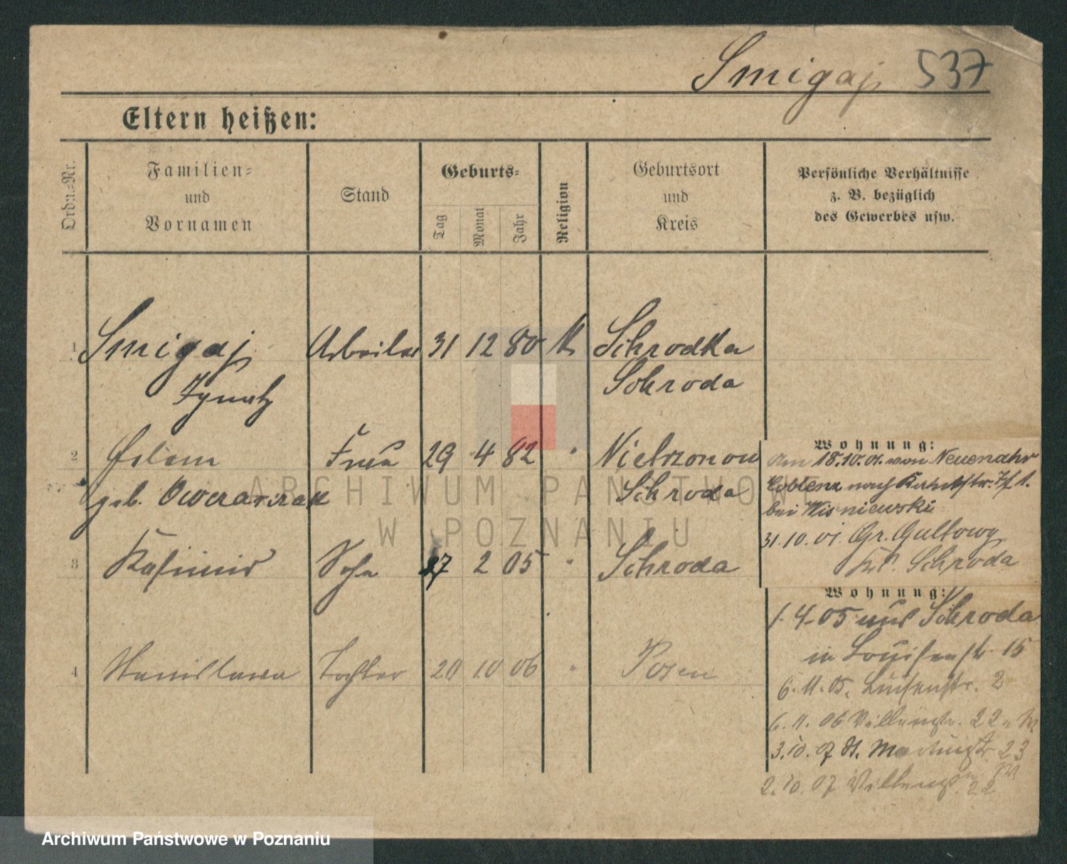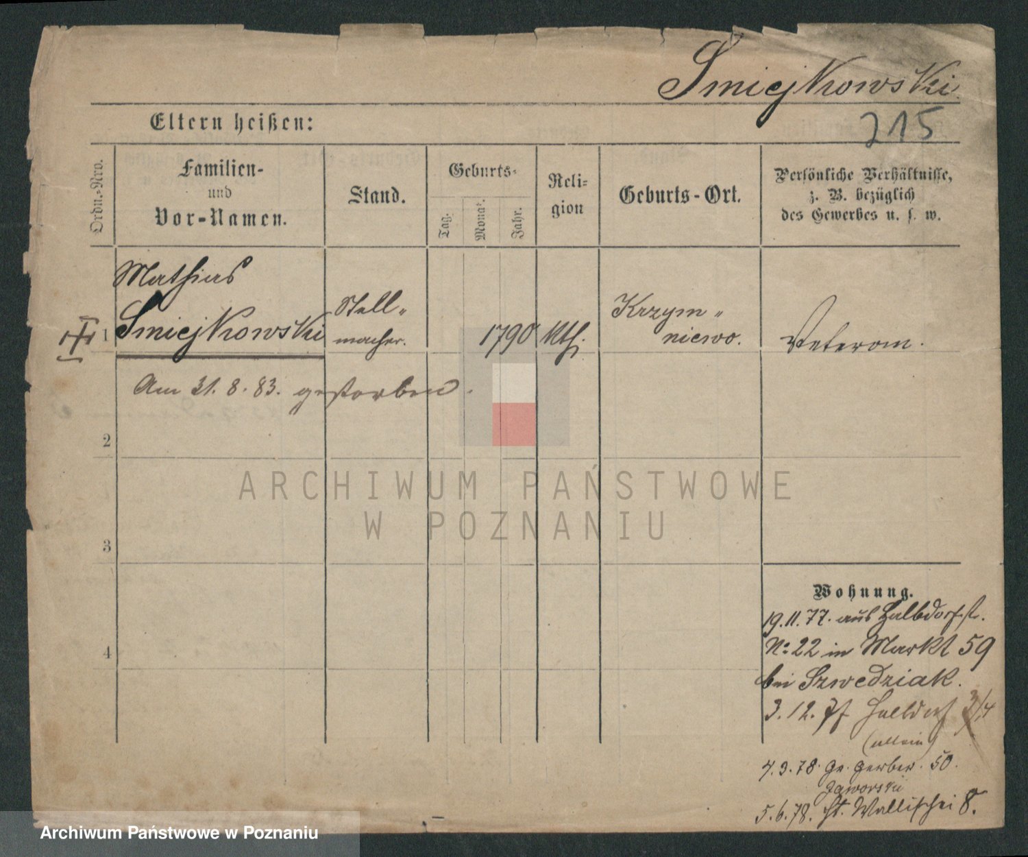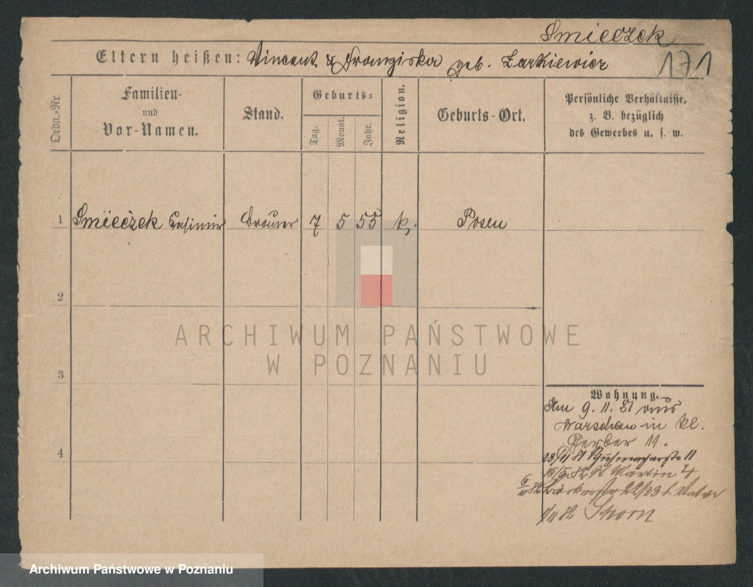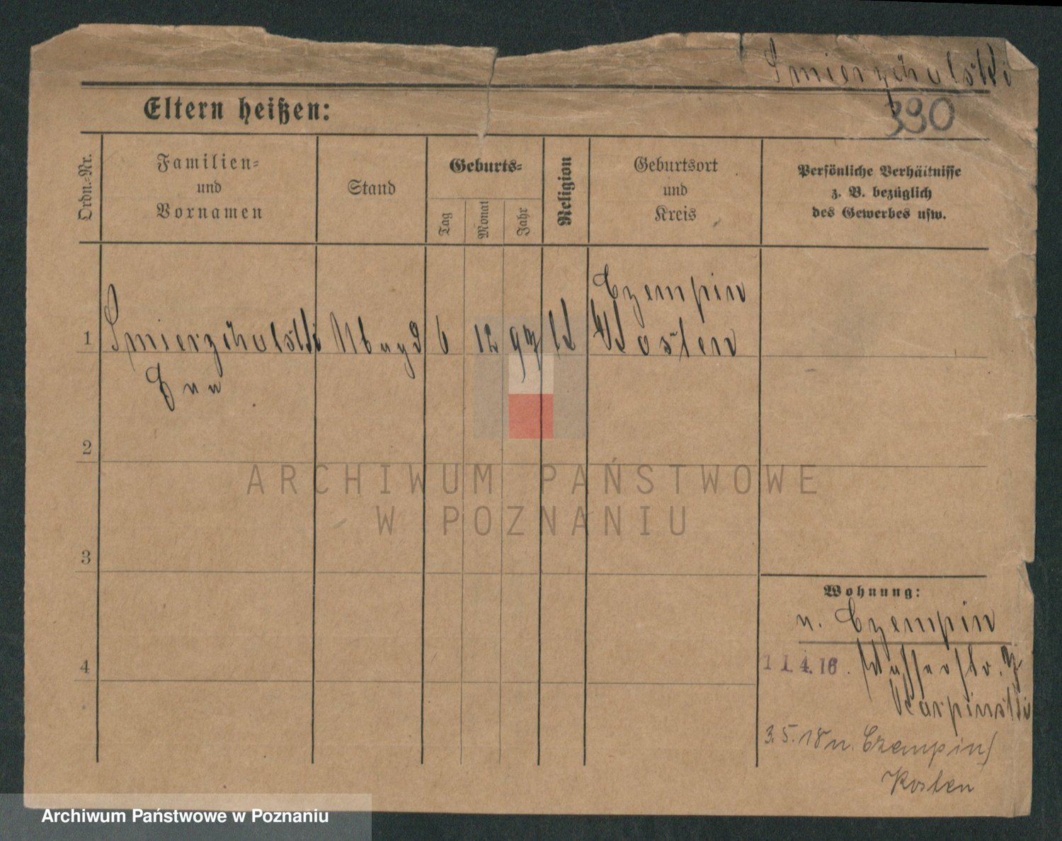Podgląd karty osobowej dostępny jest po kliknięciu na nazwisko lub ikonkę karty. Można dokonywać powiększenia (ikony na górze) lub przechodzić między kolejnymi skanami (strzałki po bokach).