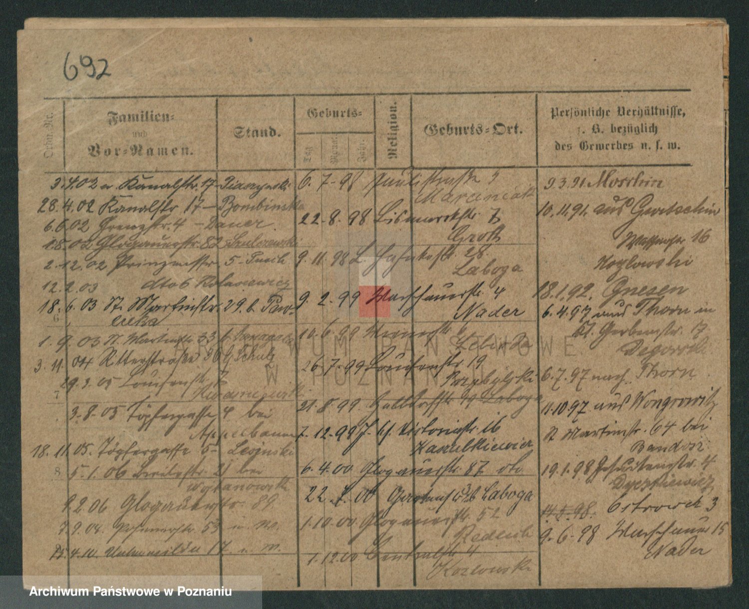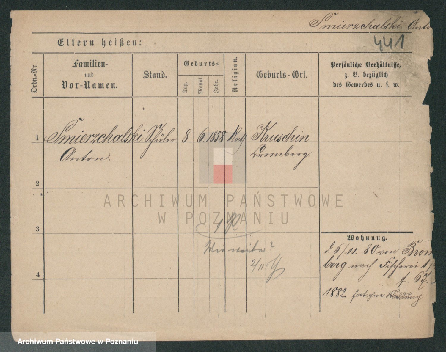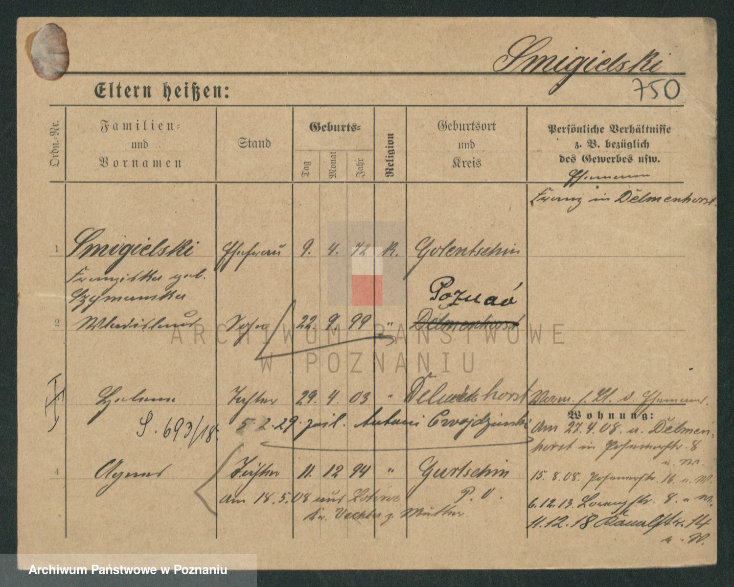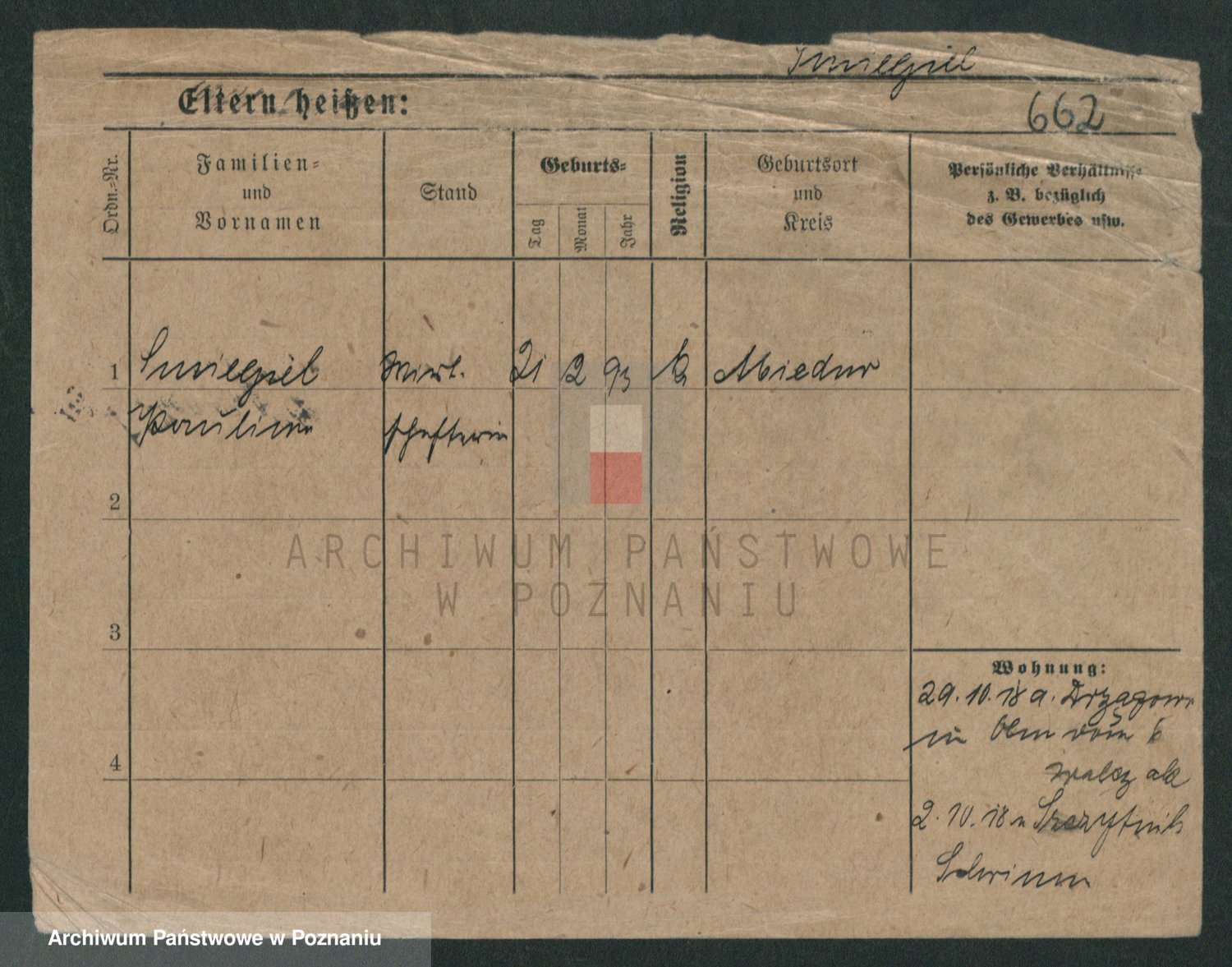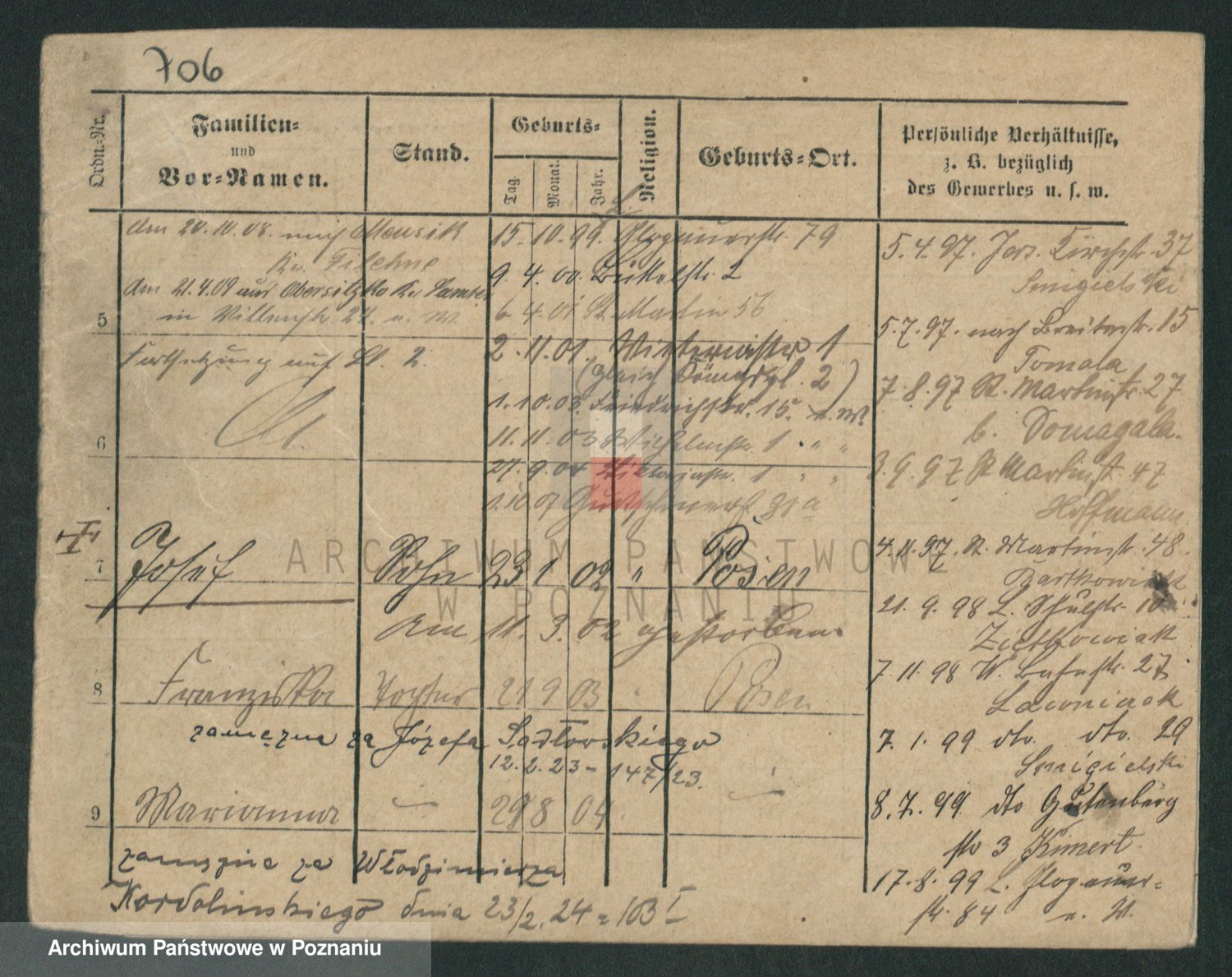 Podgląd karty osobowej dostępny jest po kliknięciu na nazwisko lub ikonkę karty. Można dokonywać powiększenia (ikony na górze) lub przechodzić między kolejnymi skanami (strzałki po bokach).