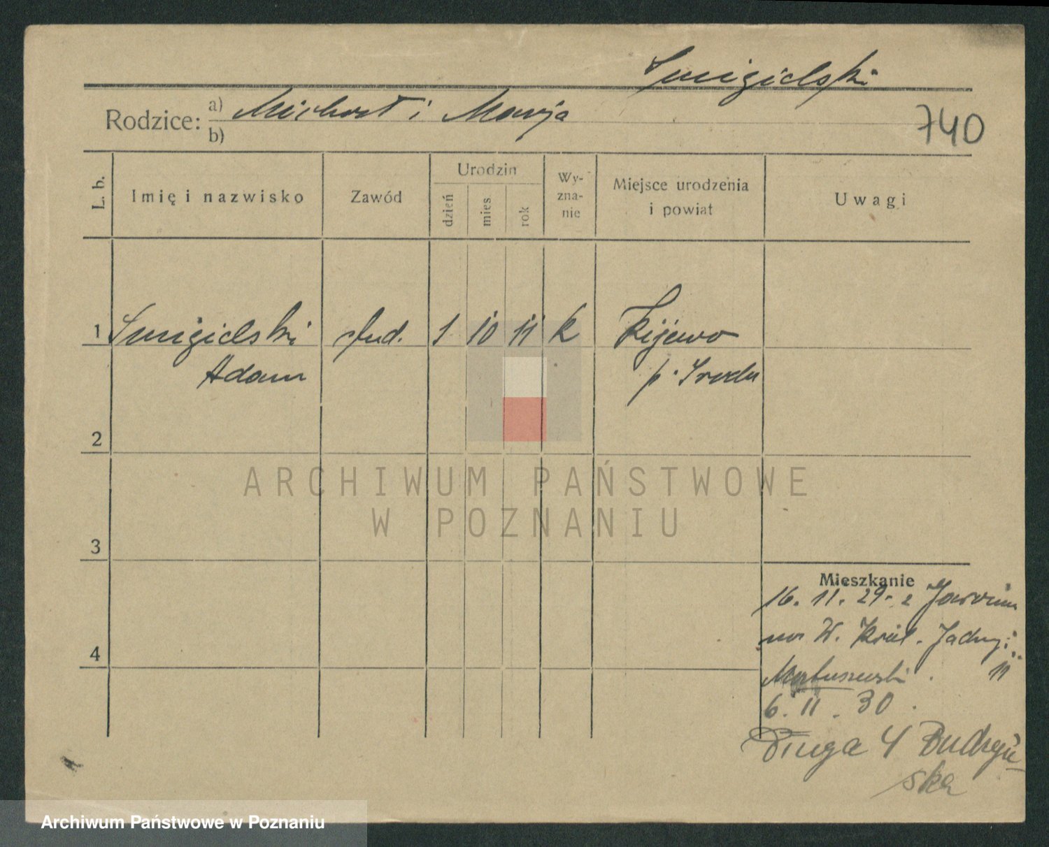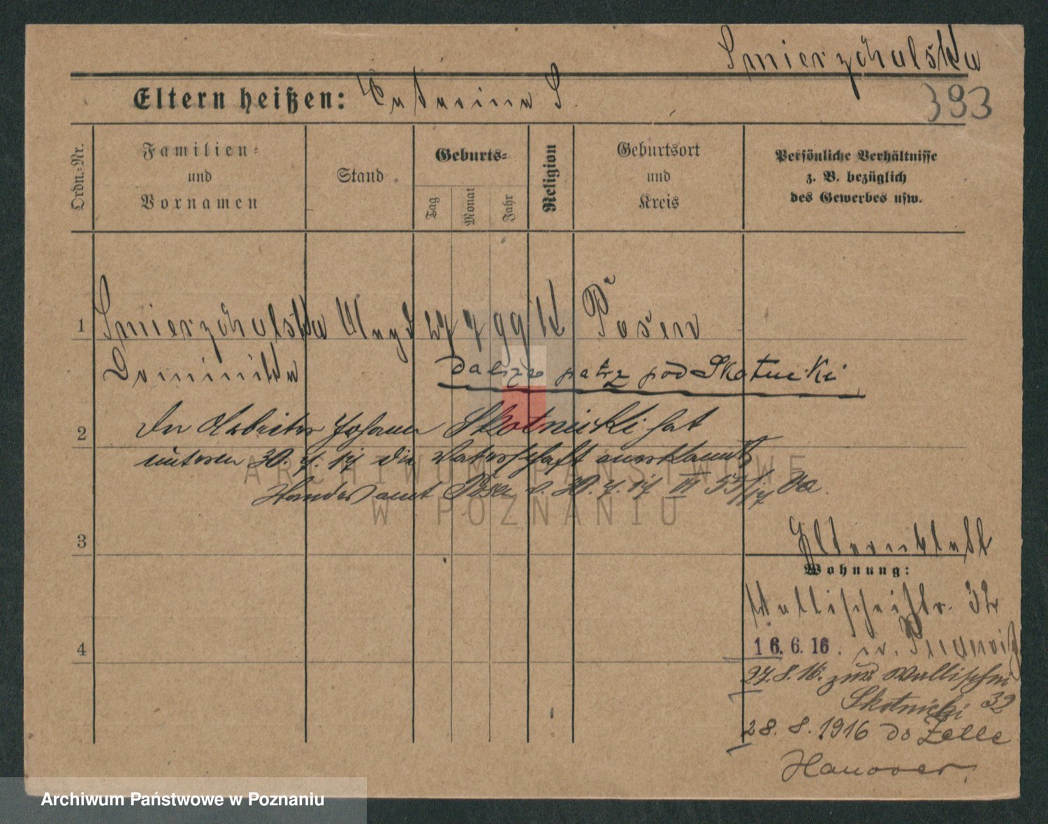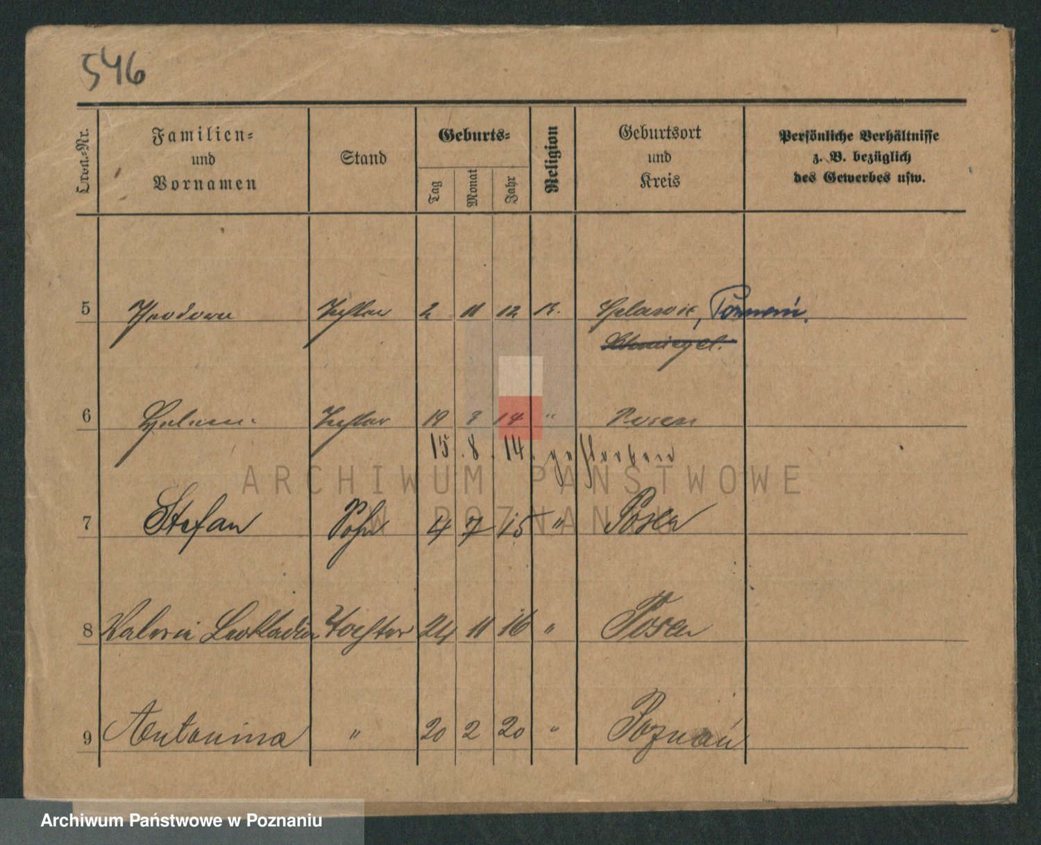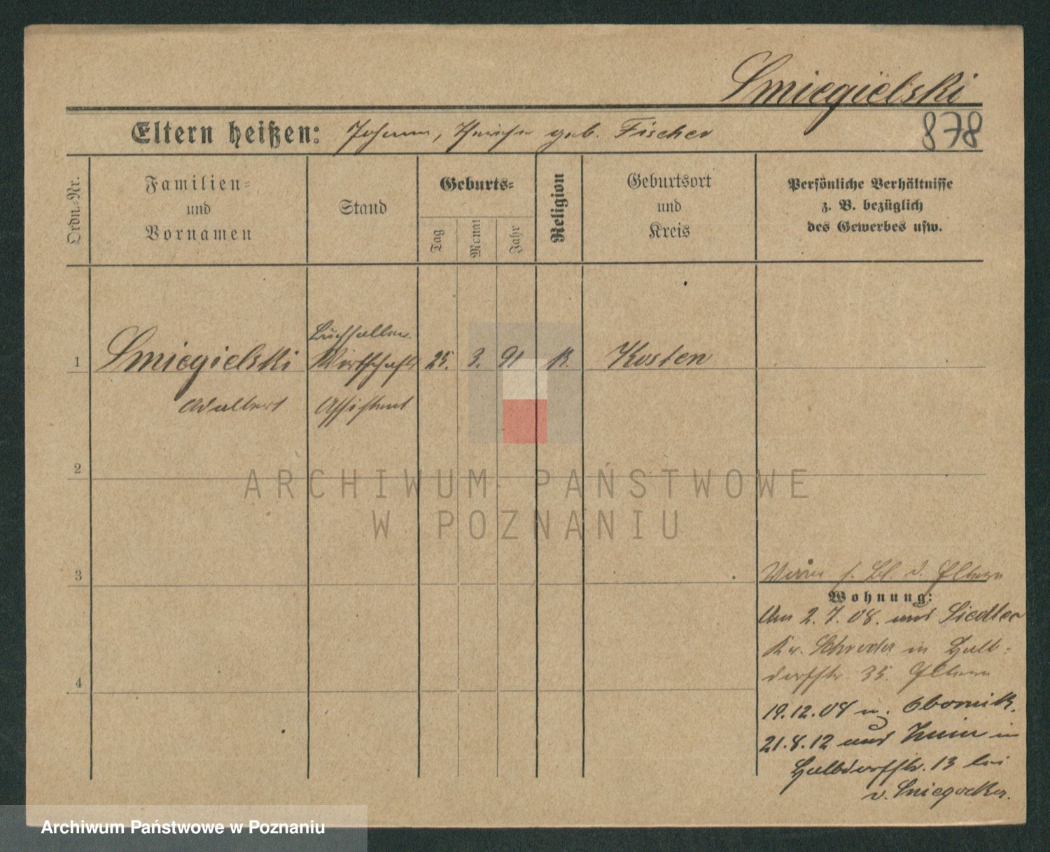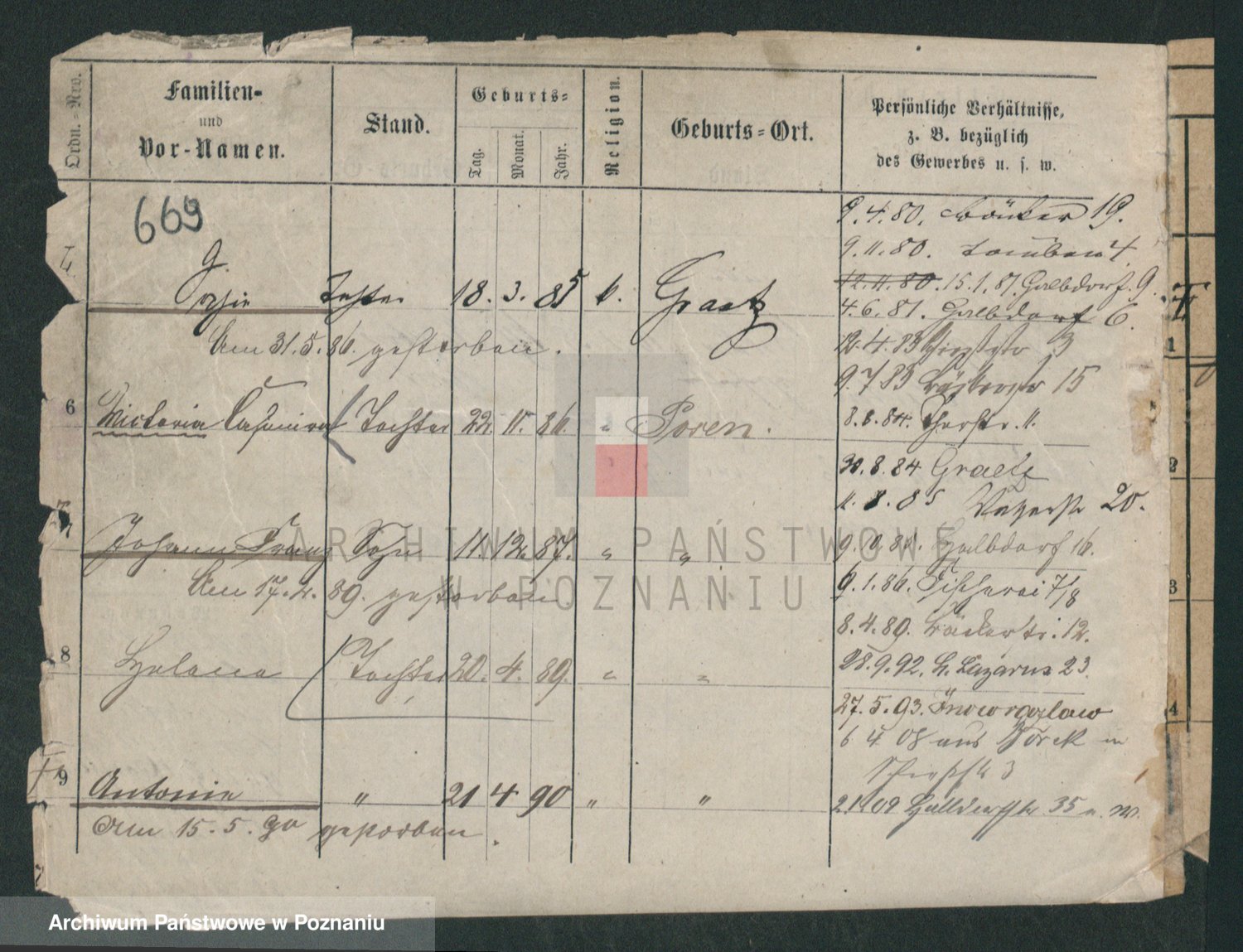 Podgląd karty osobowej dostępny jest po kliknięciu na nazwisko lub ikonkę karty. Można dokonywać powiększenia (ikony na górze) lub przechodzić między kolejnymi skanami (strzałki po bokach).