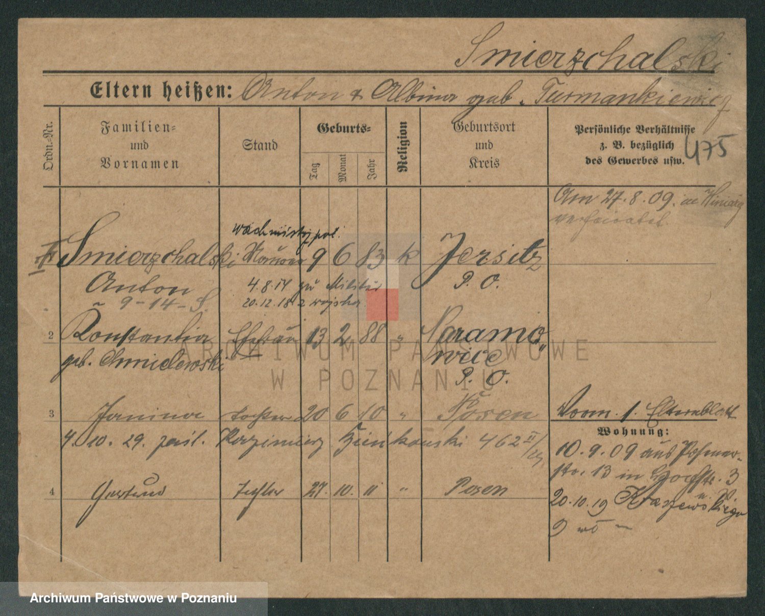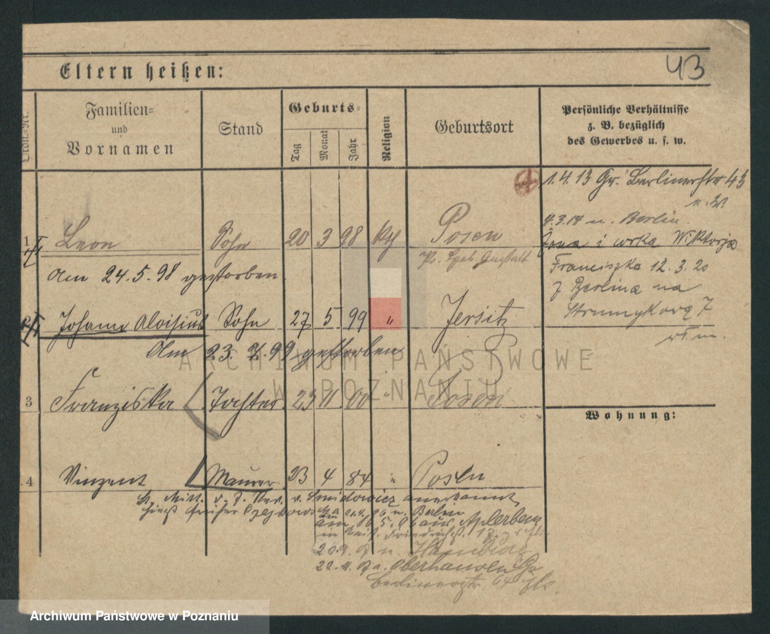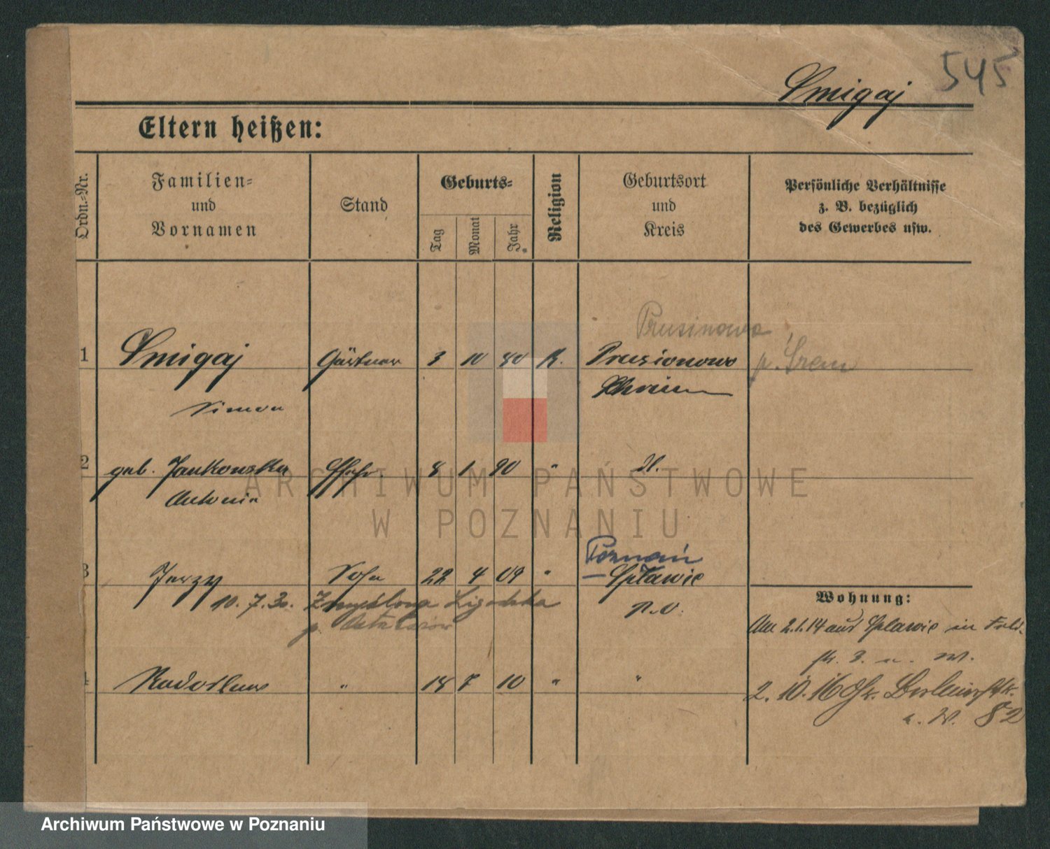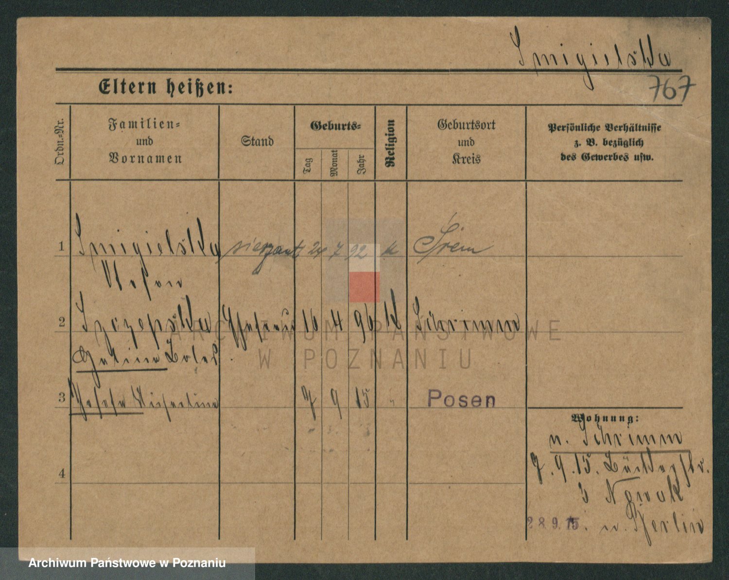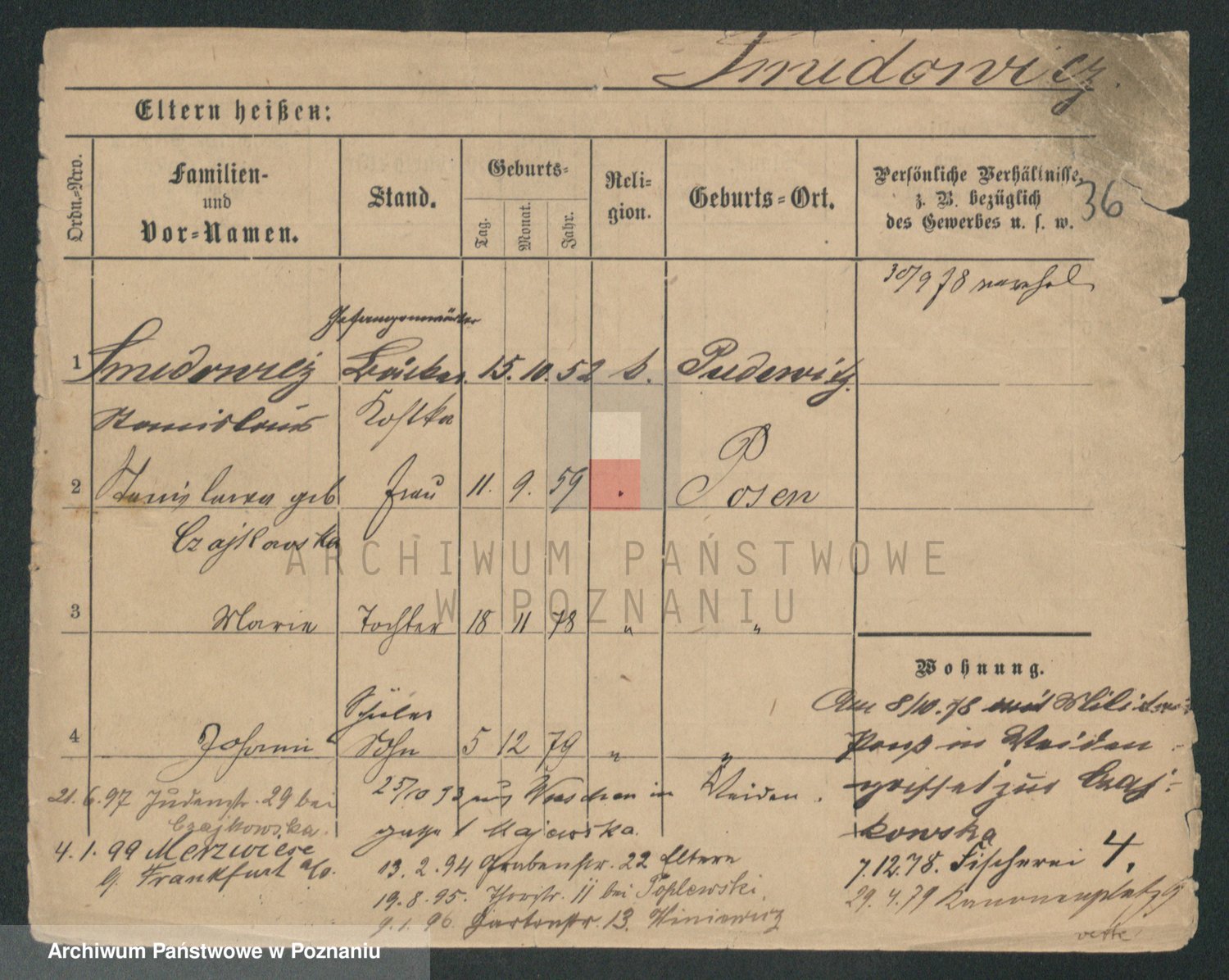 Podgląd karty osobowej dostępny jest po kliknięciu na nazwisko lub ikonkę karty. Można dokonywać powiększenia (ikony na górze) lub przechodzić między kolejnymi skanami (strzałki po bokach).
