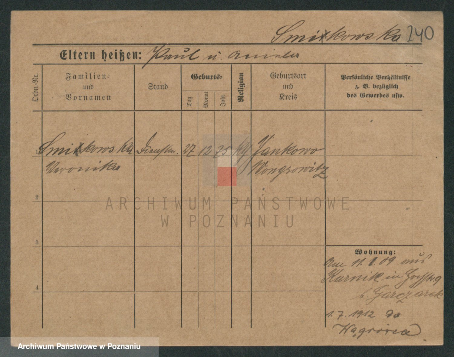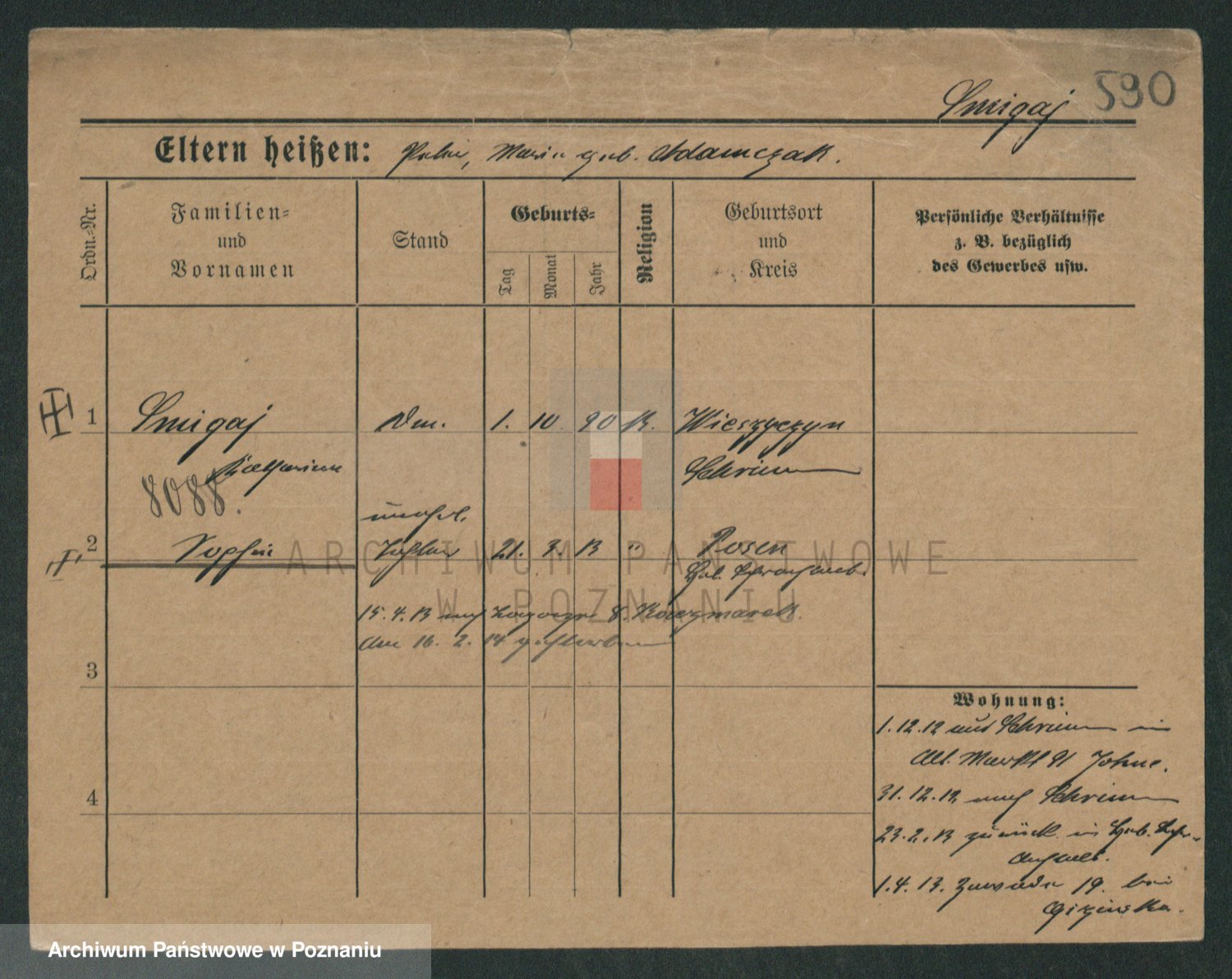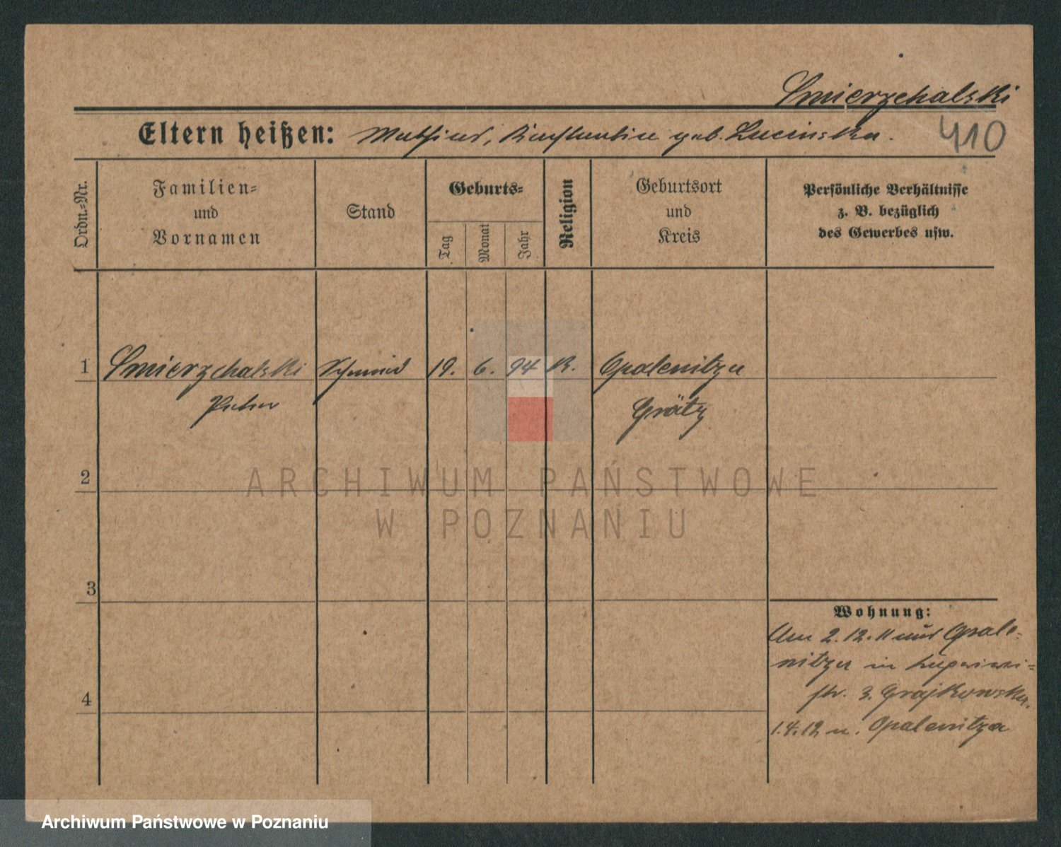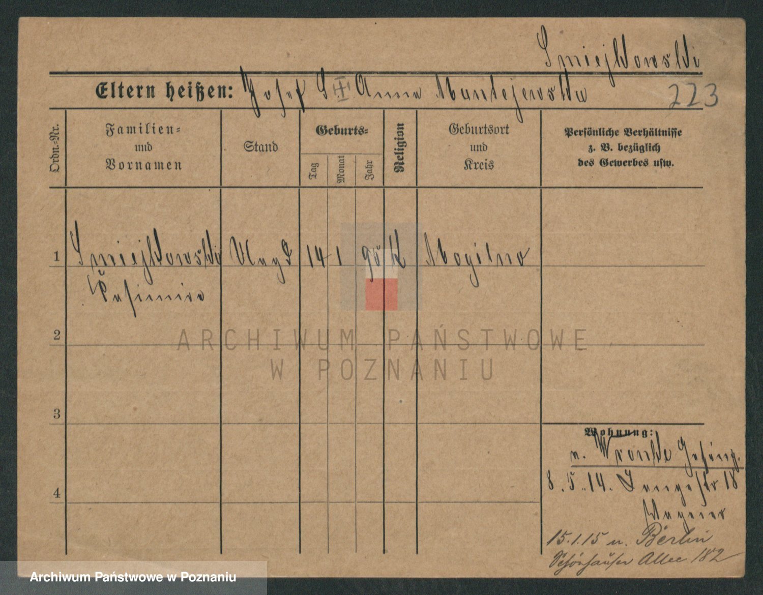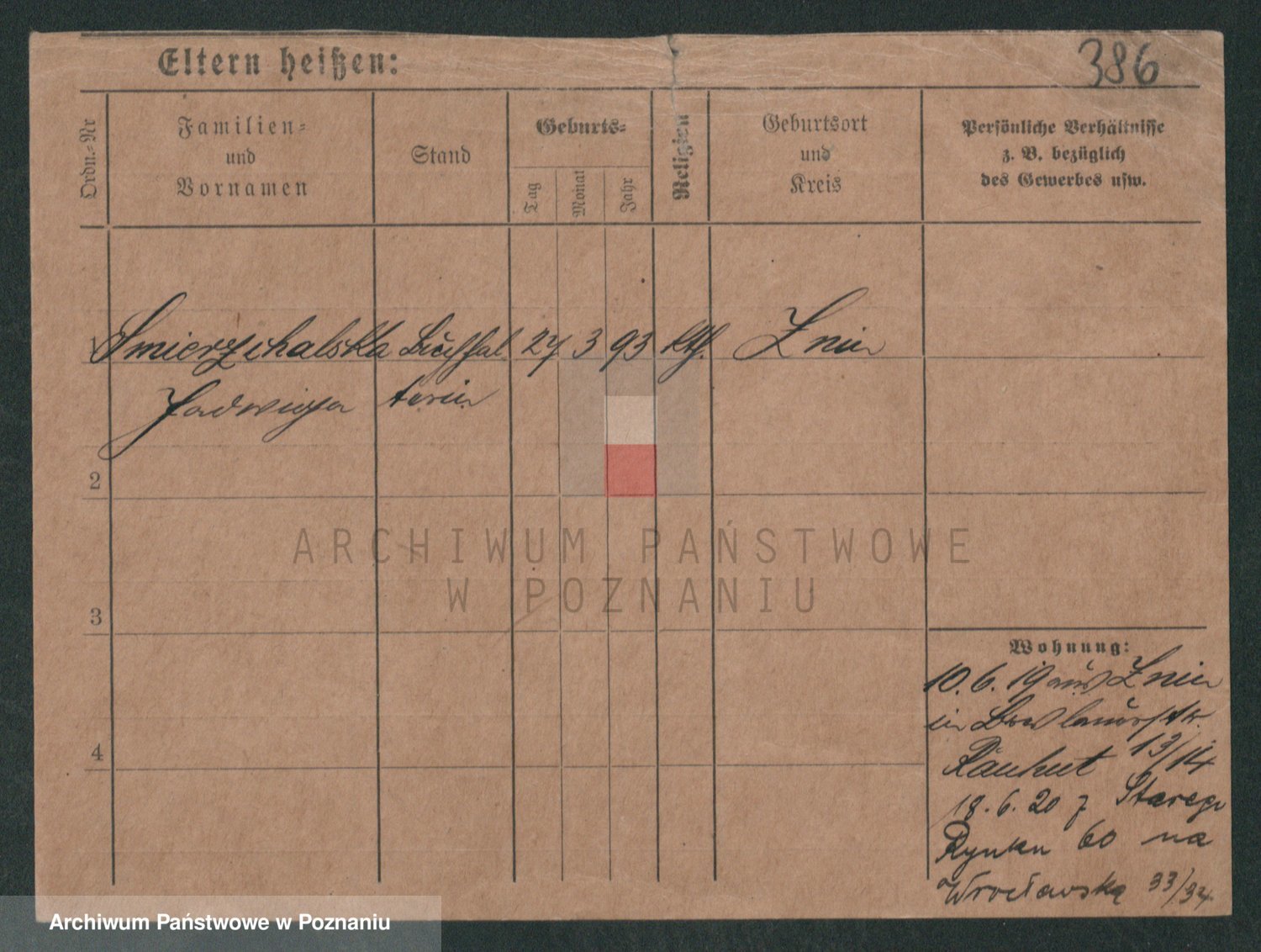 Podgląd karty osobowej dostępny jest po kliknięciu na nazwisko lub ikonkę karty. Można dokonywać powiększenia (ikony na górze) lub przechodzić między kolejnymi skanami (strzałki po bokach).
