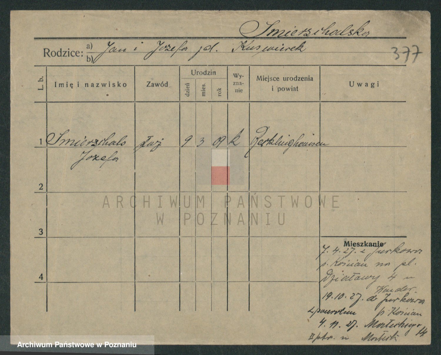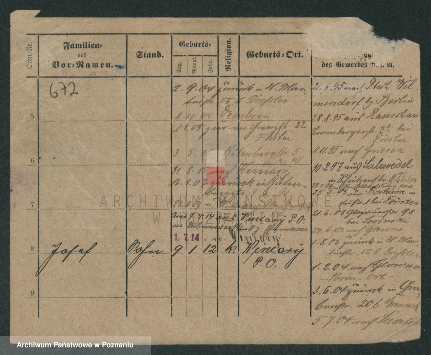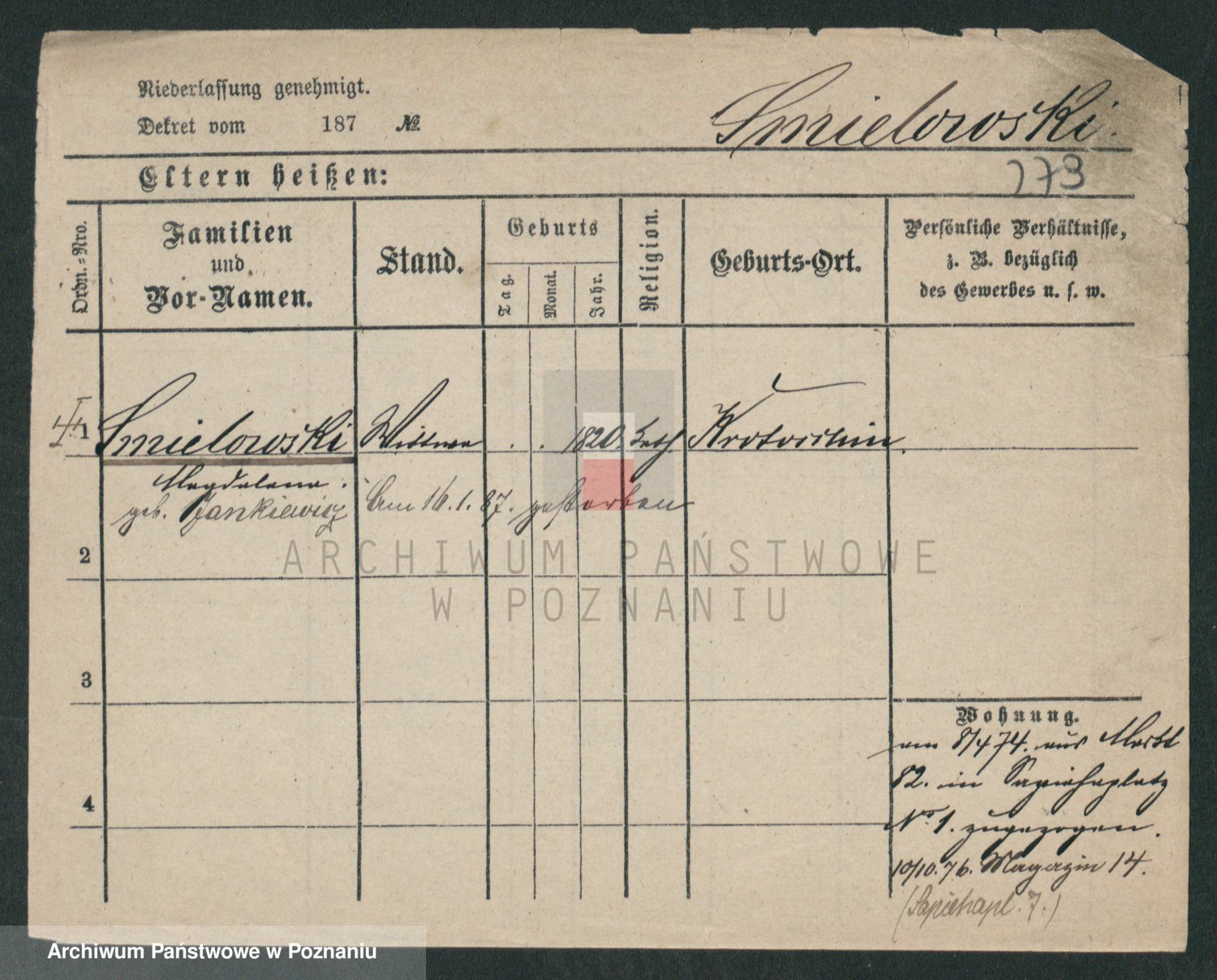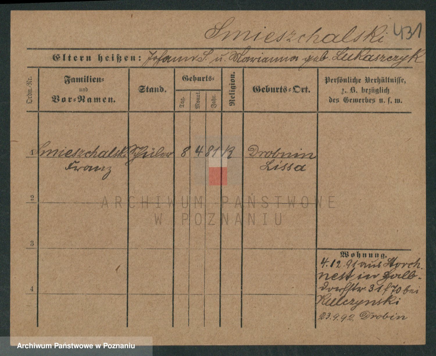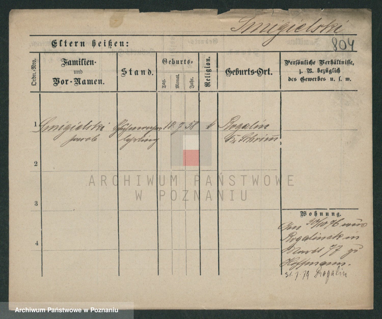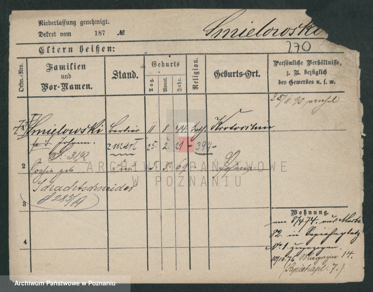 Podgląd karty osobowej dostępny jest po kliknięciu na nazwisko lub ikonkę karty. Można dokonywać powiększenia (ikony na górze) lub przechodzić między kolejnymi skanami (strzałki po bokach).