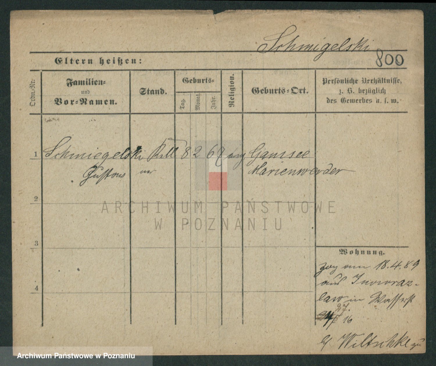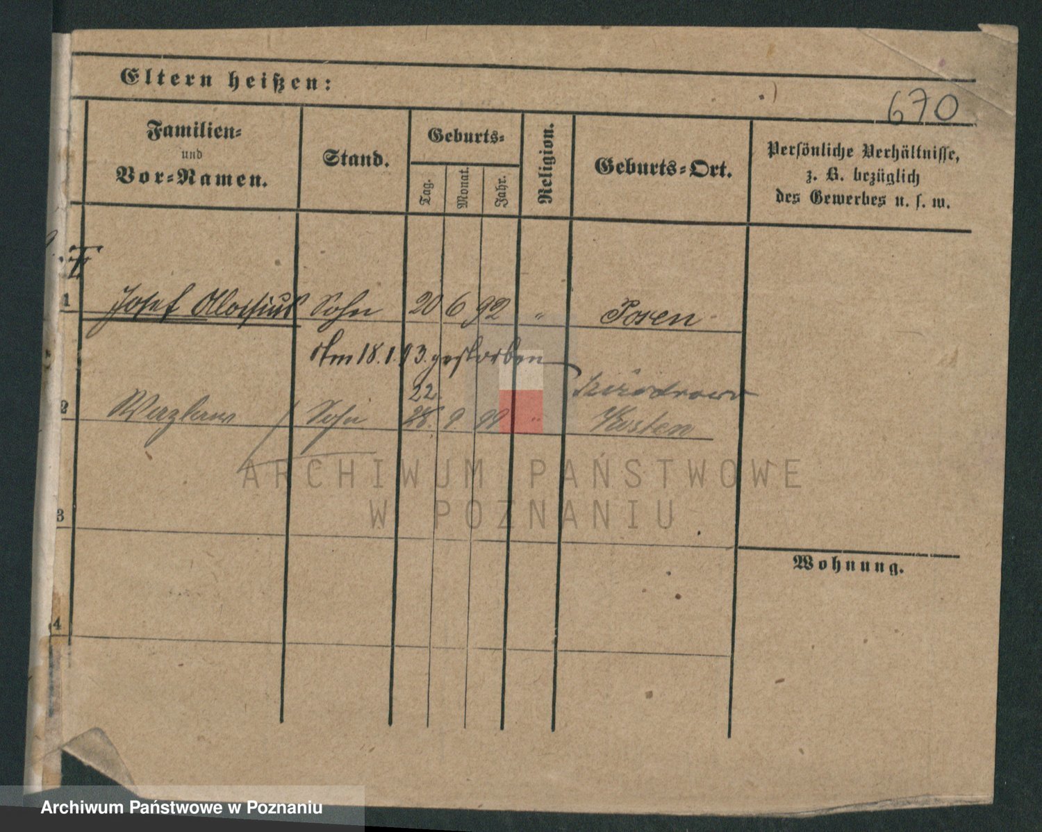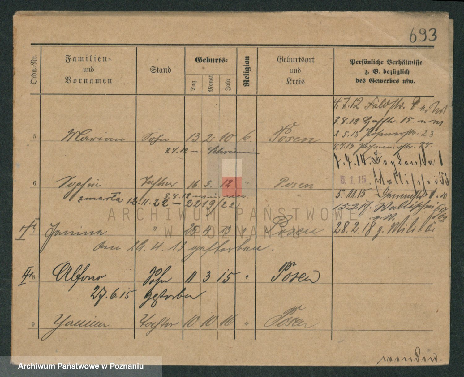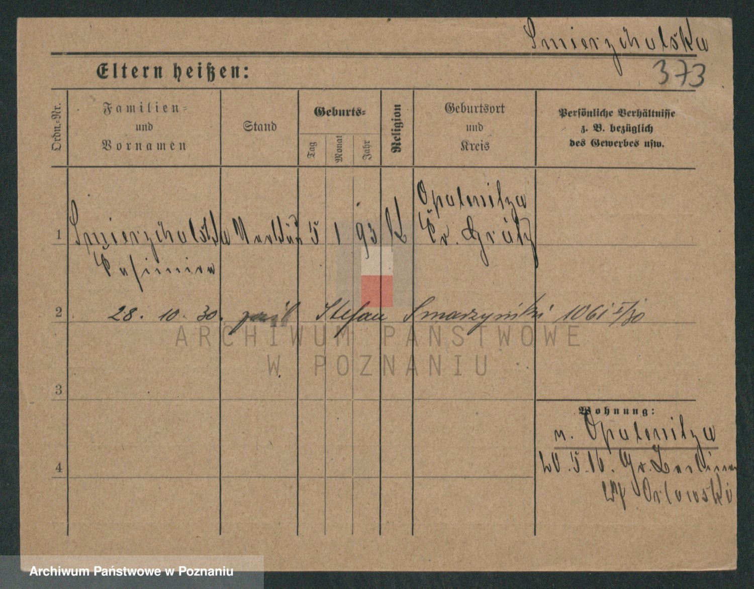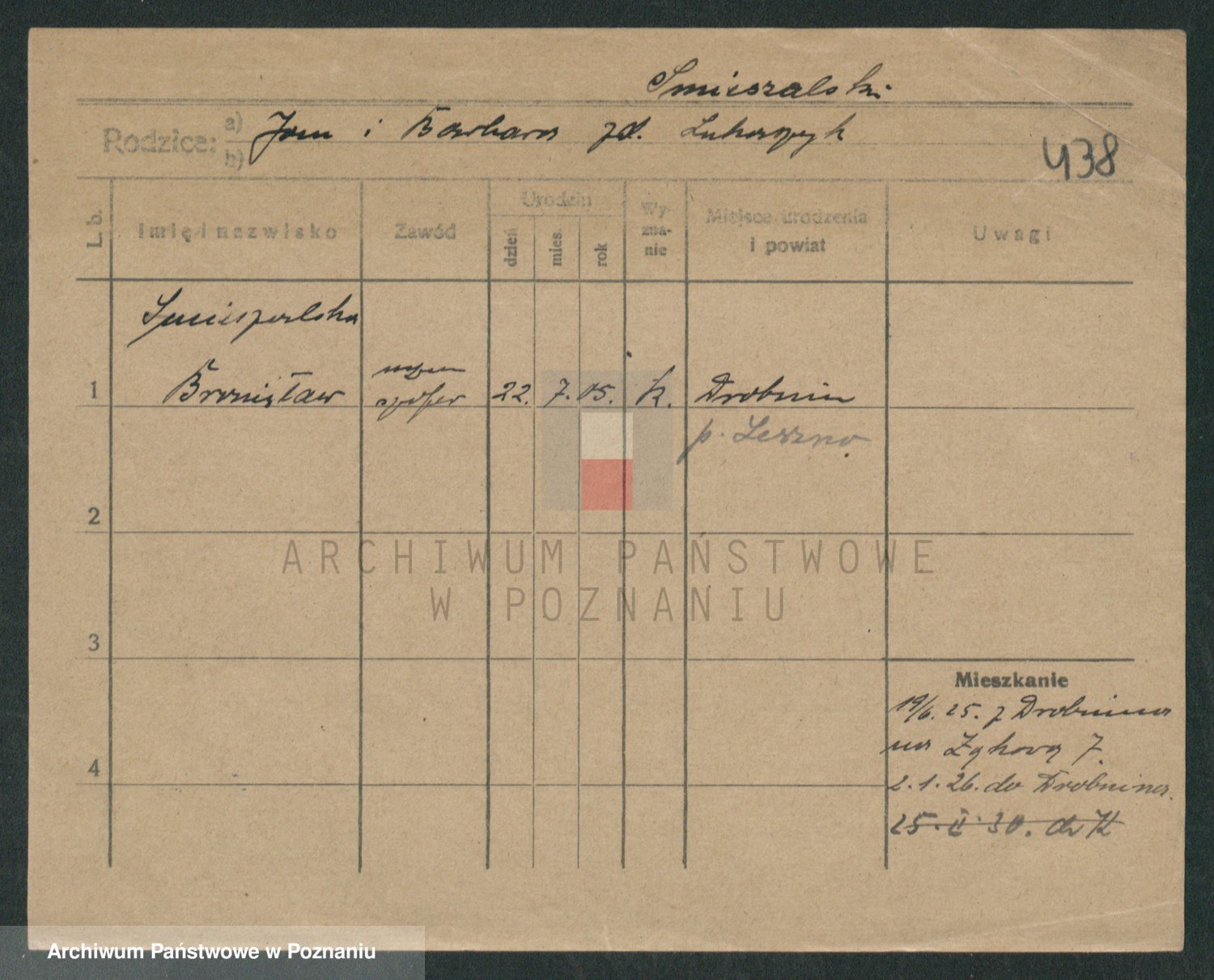 Podgląd karty osobowej dostępny jest po kliknięciu na nazwisko lub ikonkę karty. Można dokonywać powiększenia (ikony na górze) lub przechodzić między kolejnymi skanami (strzałki po bokach).