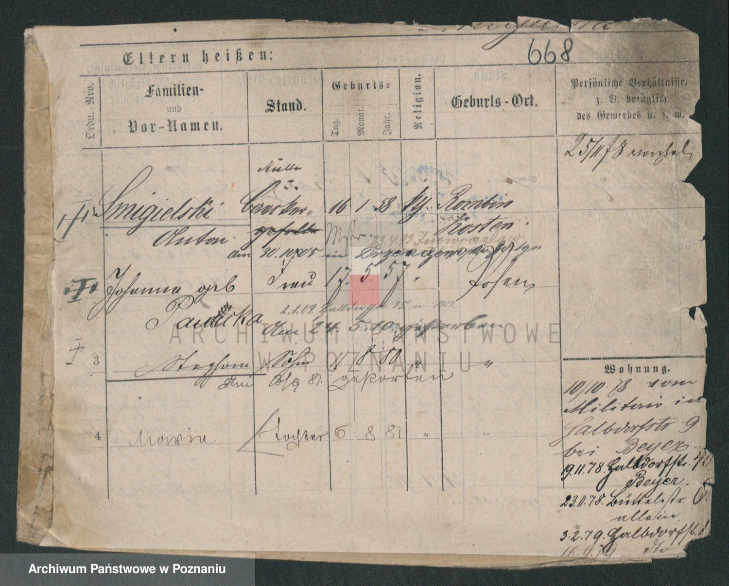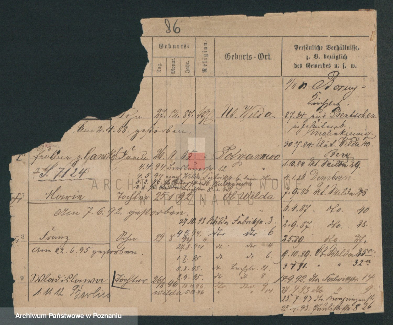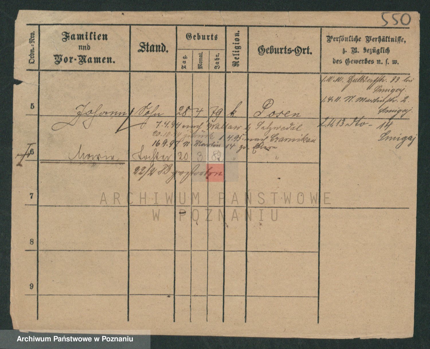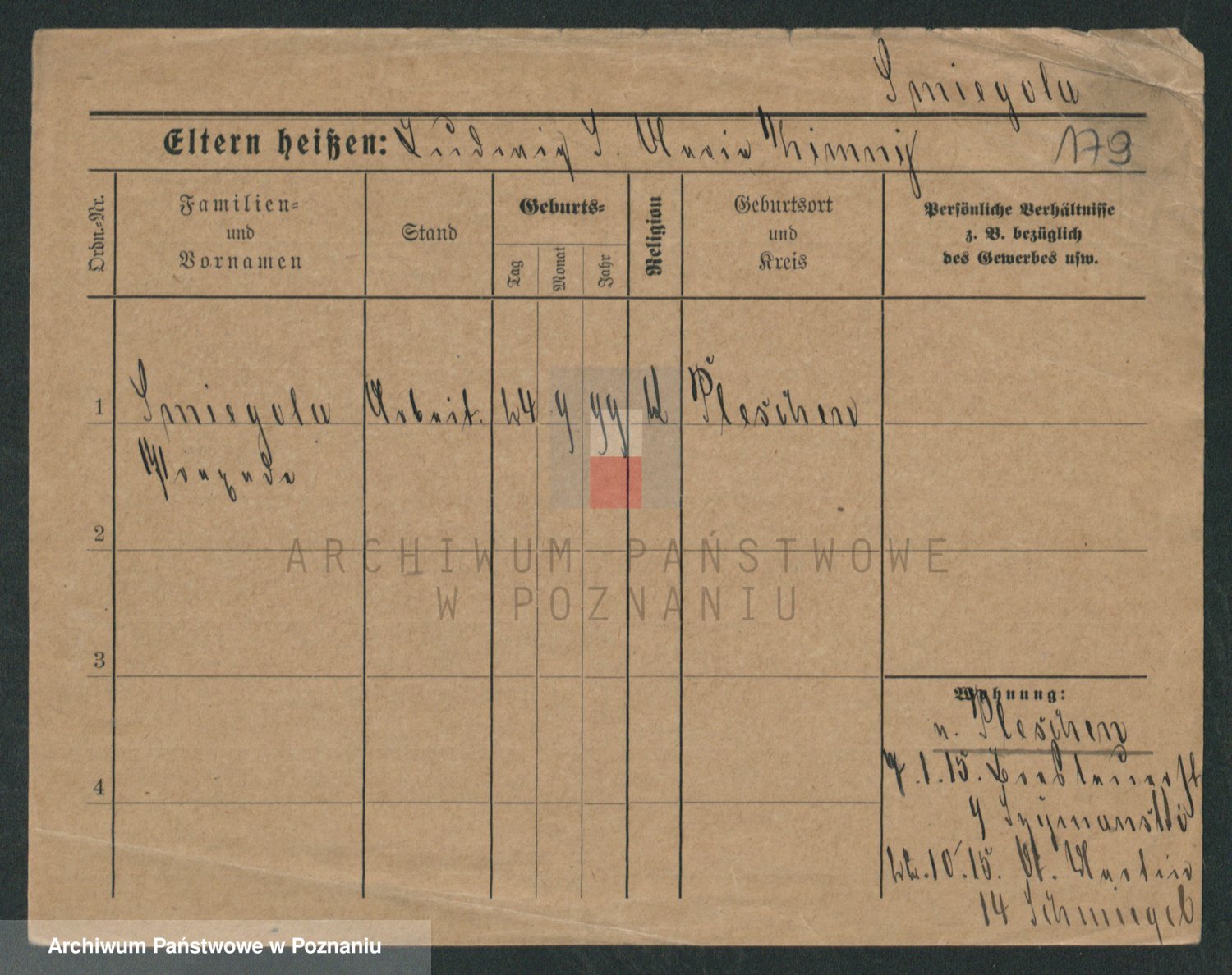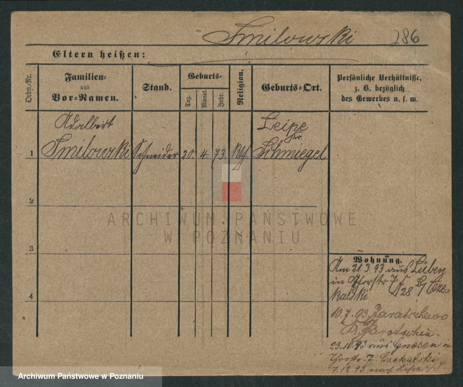 Podgląd karty osobowej dostępny jest po kliknięciu na nazwisko lub ikonkę karty. Można dokonywać powiększenia (ikony na górze) lub przechodzić między kolejnymi skanami (strzałki po bokach).