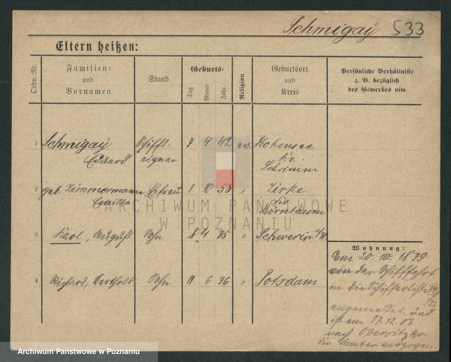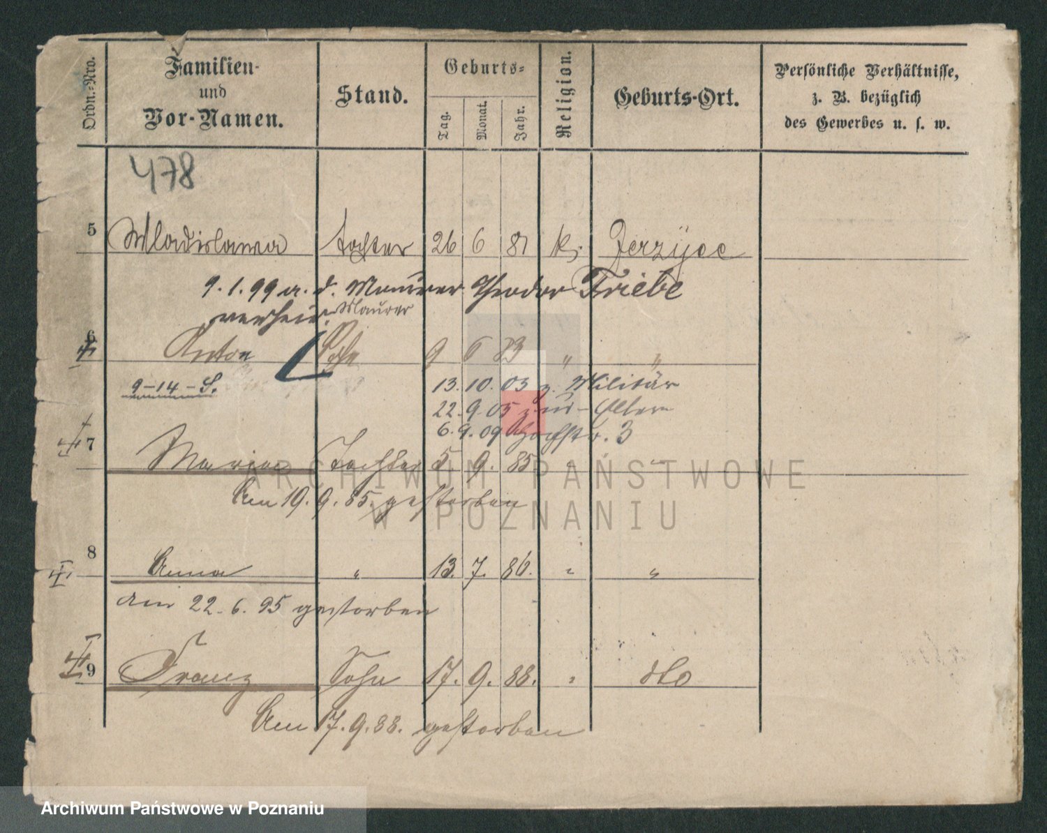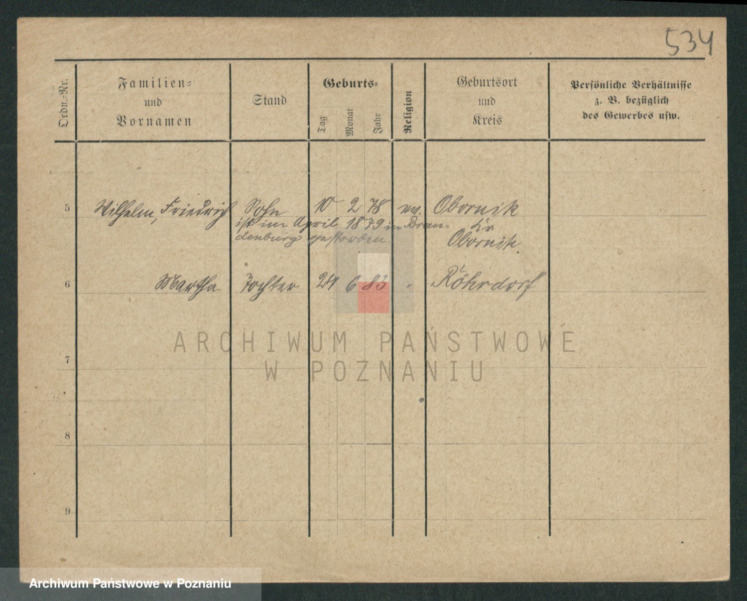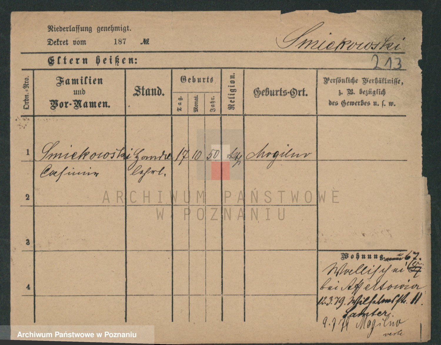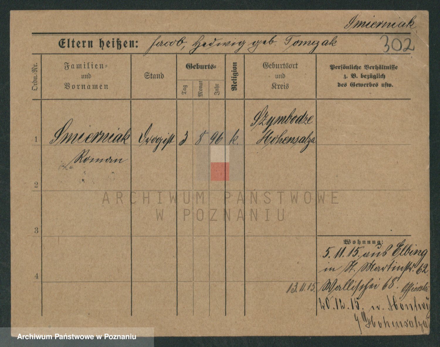 Podgląd karty osobowej dostępny jest po kliknięciu na nazwisko lub ikonkę karty. Można dokonywać powiększenia (ikony na górze) lub przechodzić między kolejnymi skanami (strzałki po bokach).