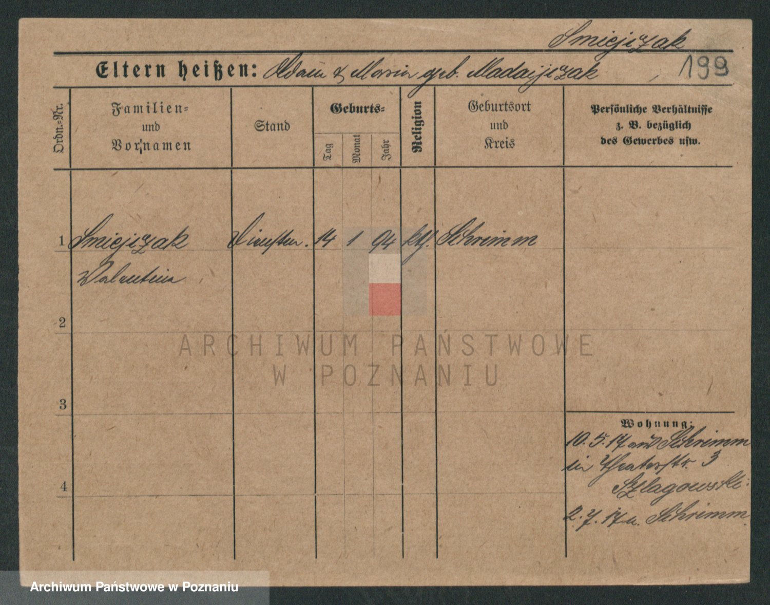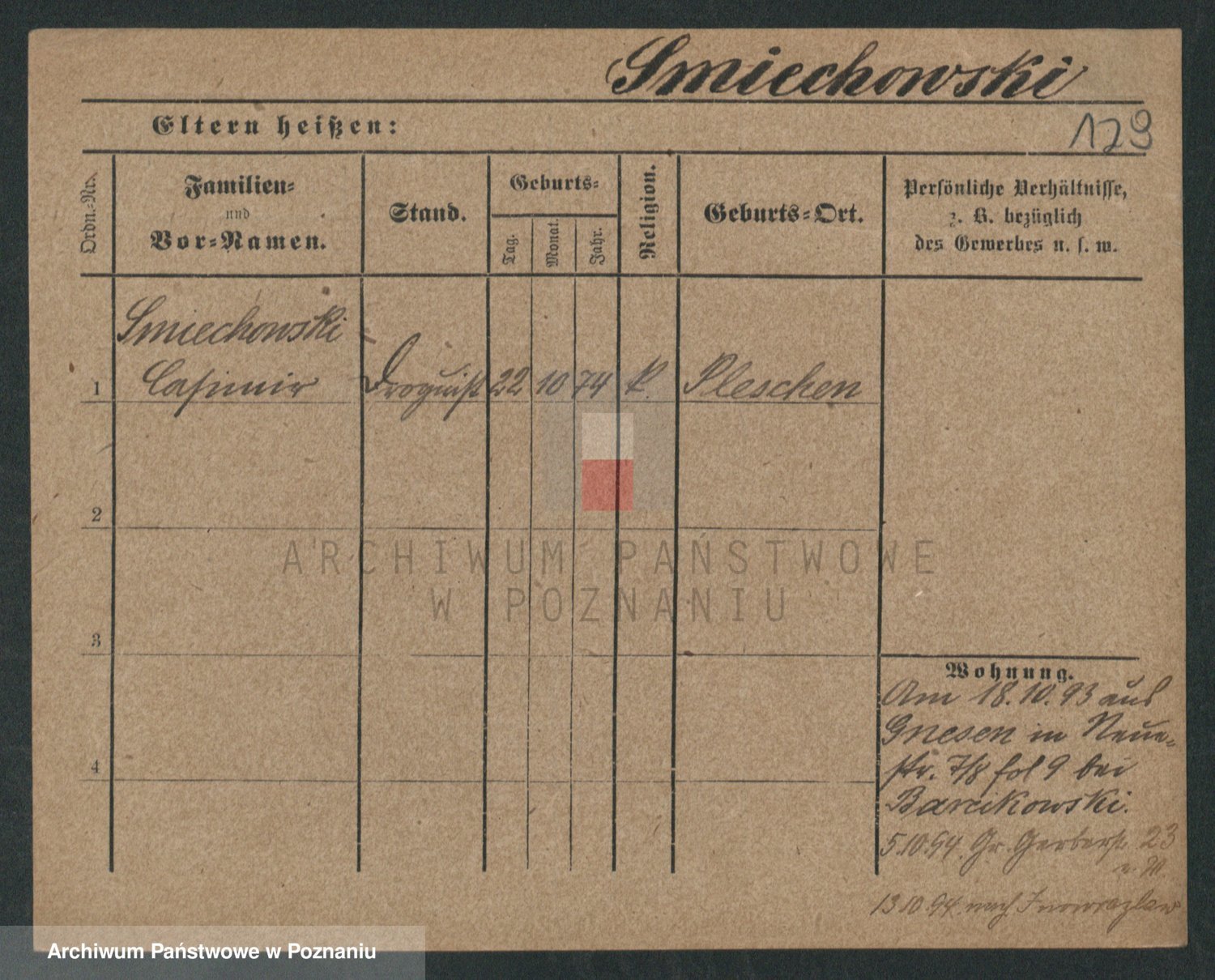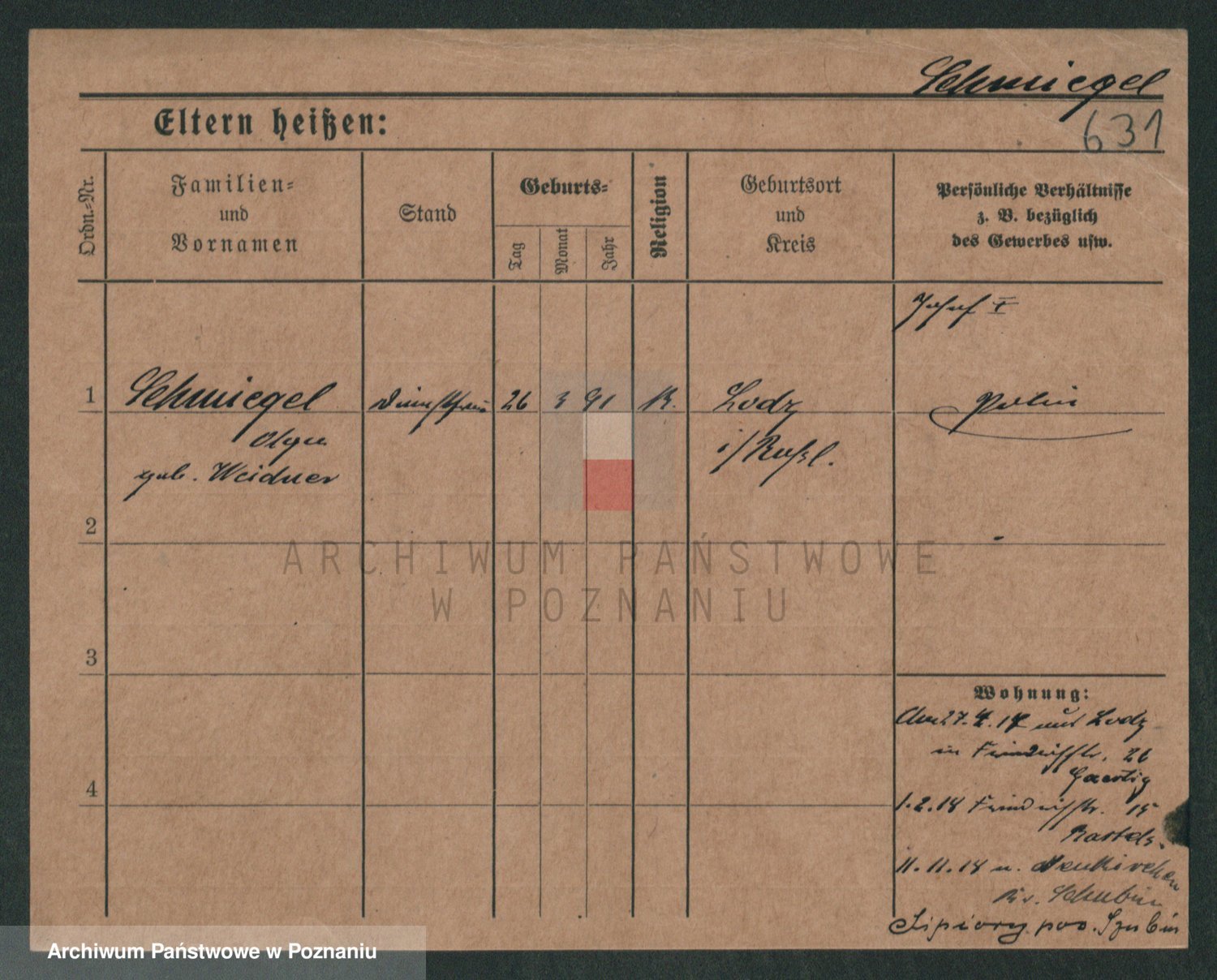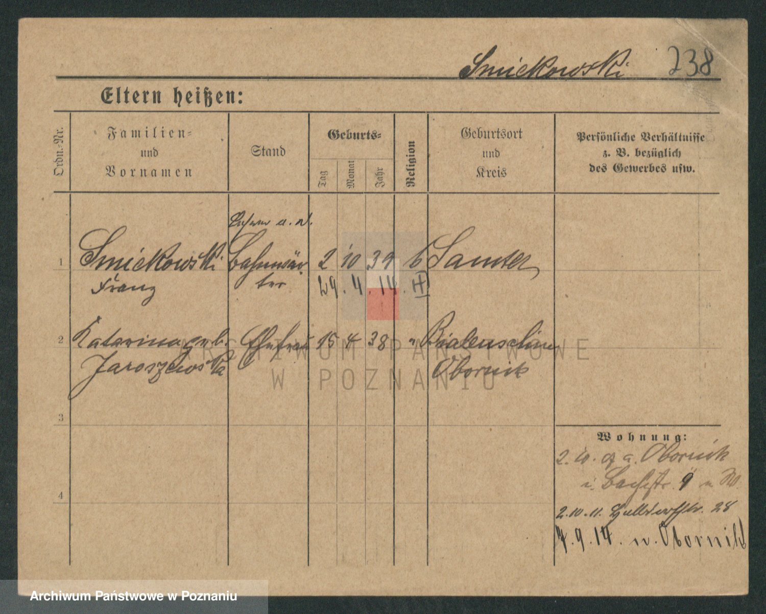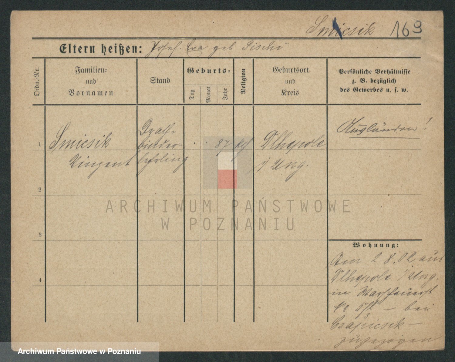 Podgląd karty osobowej dostępny jest po kliknięciu na nazwisko lub ikonkę karty. Można dokonywać powiększenia (ikony na górze) lub przechodzić między kolejnymi skanami (strzałki po bokach).