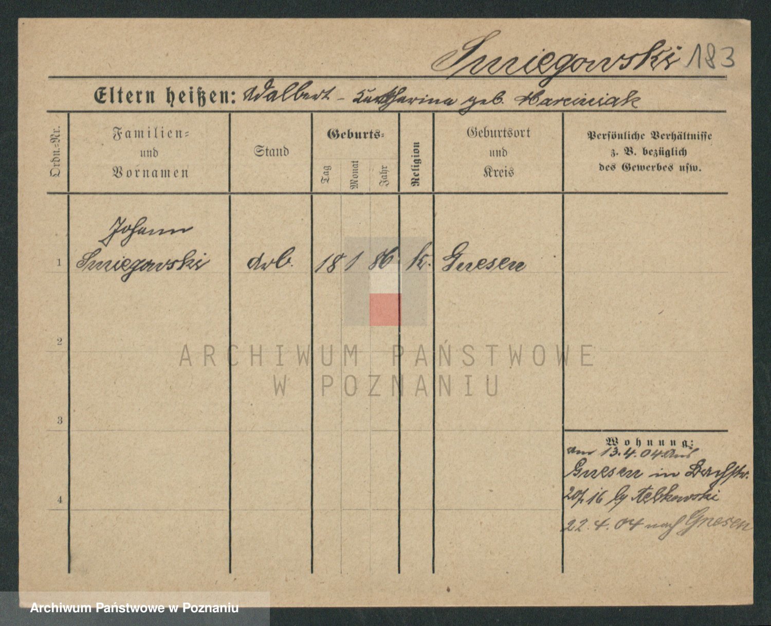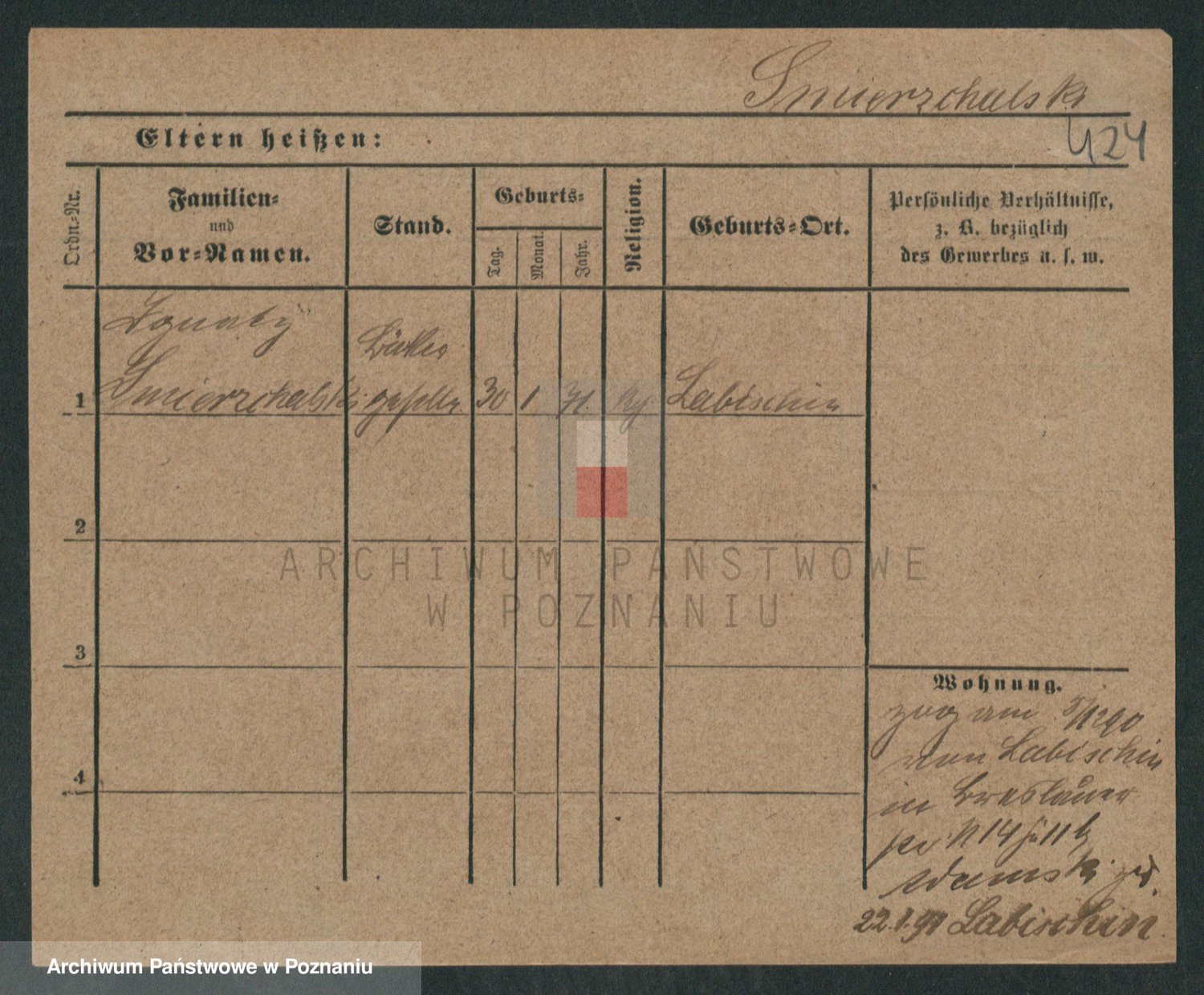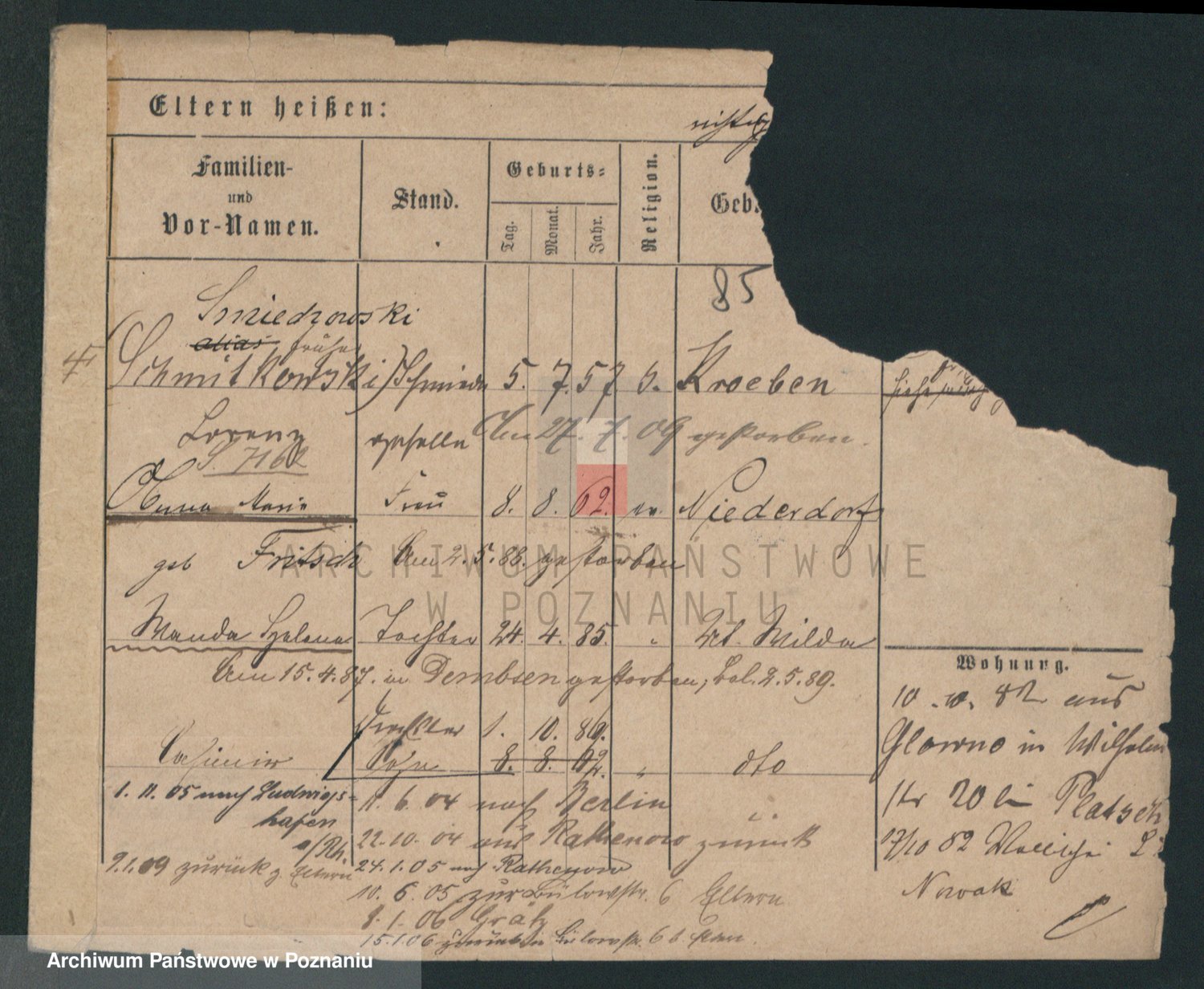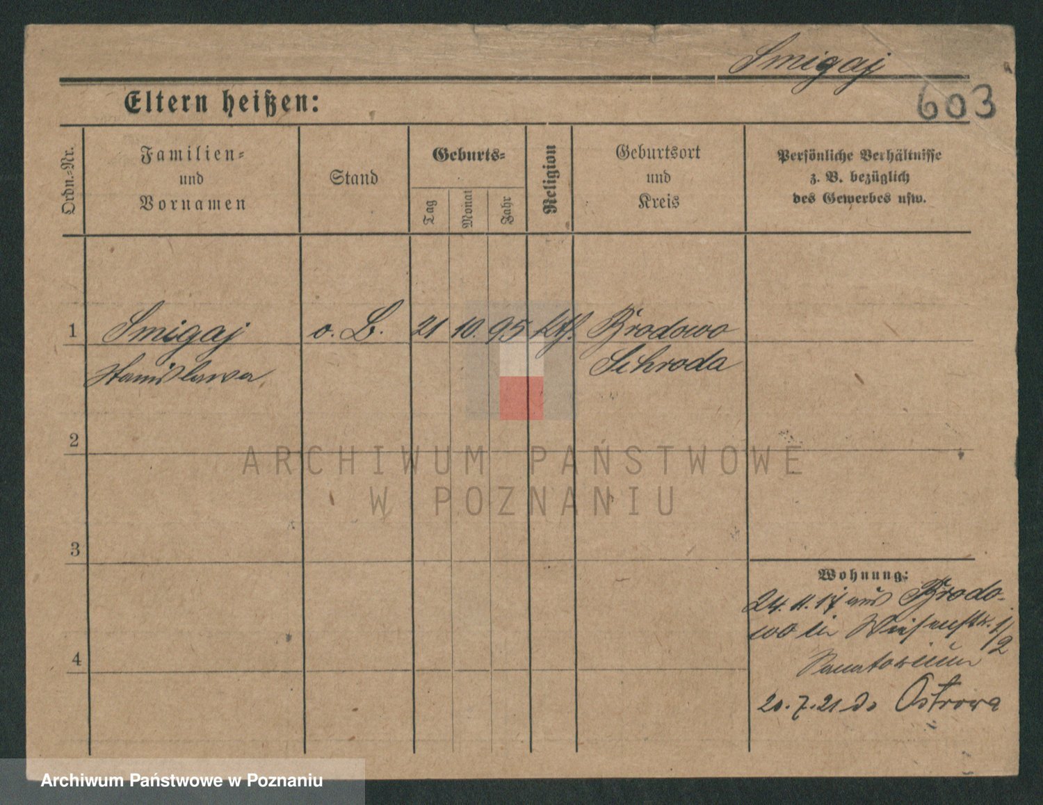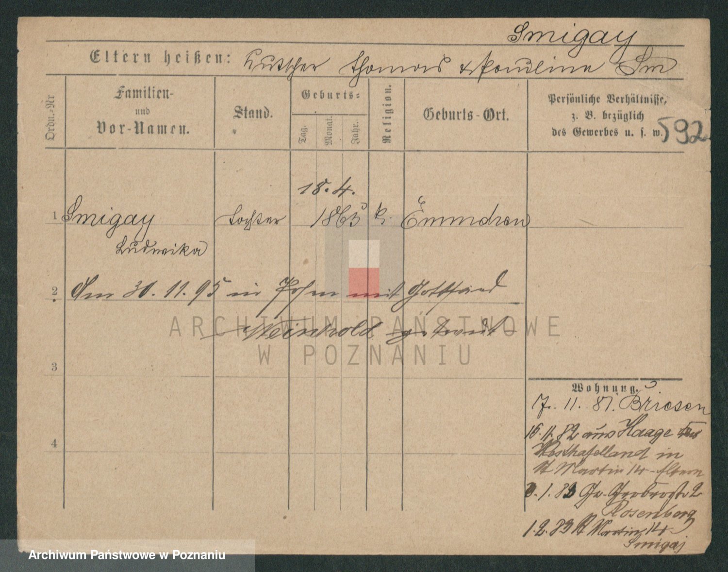 Podgląd karty osobowej dostępny jest po kliknięciu na nazwisko lub ikonkę karty. Można dokonywać powiększenia (ikony na górze) lub przechodzić między kolejnymi skanami (strzałki po bokach).