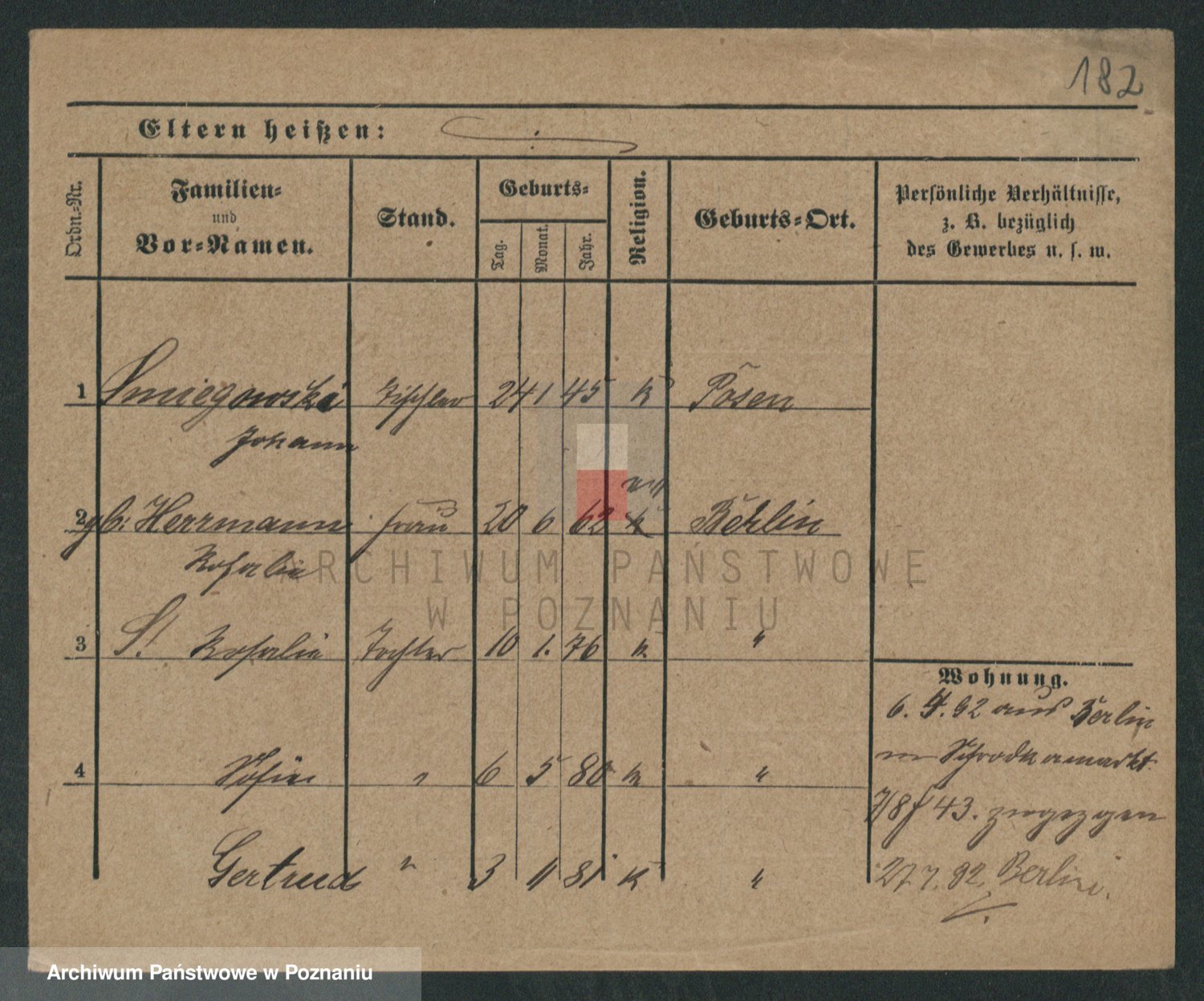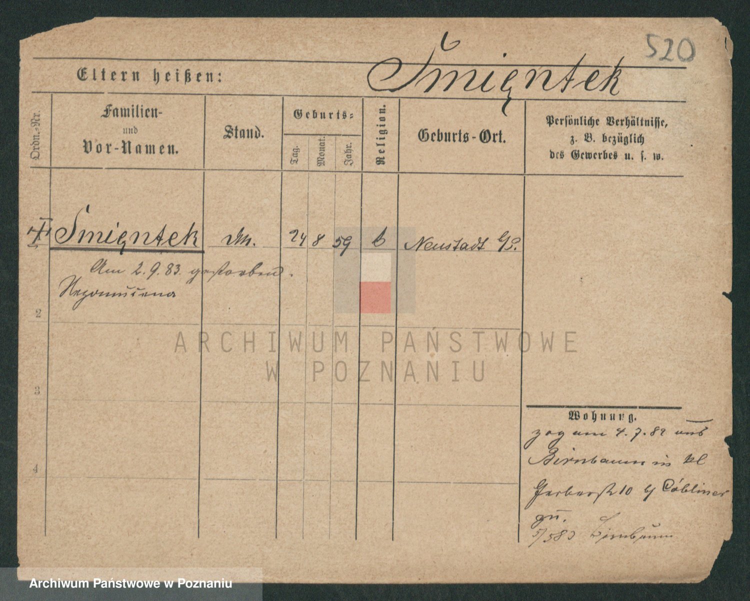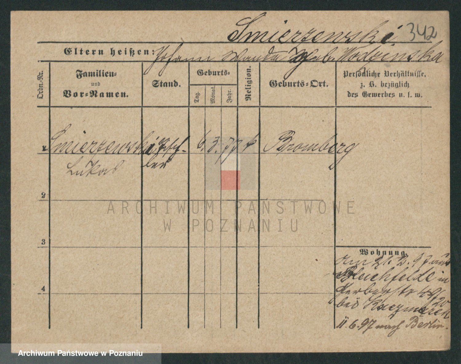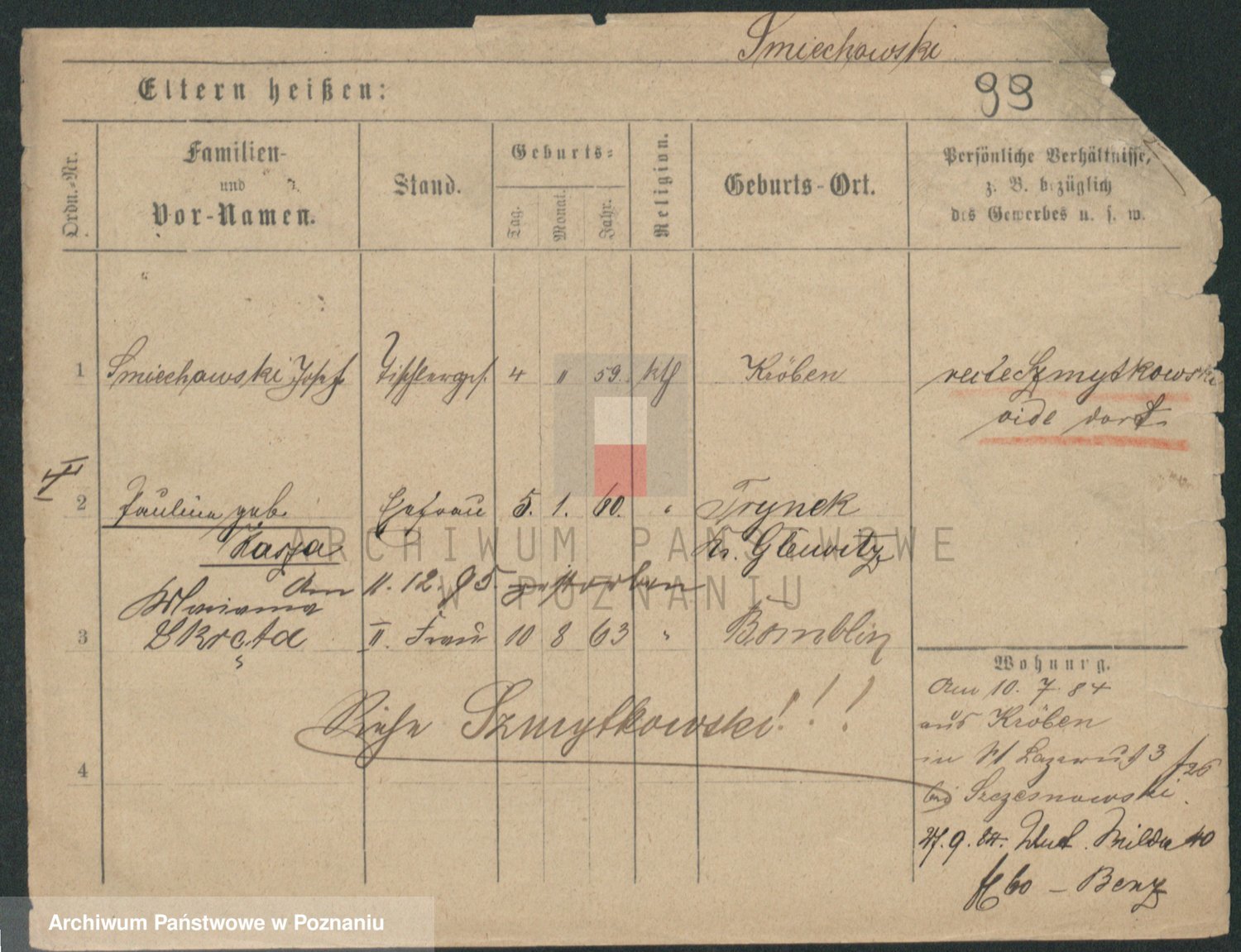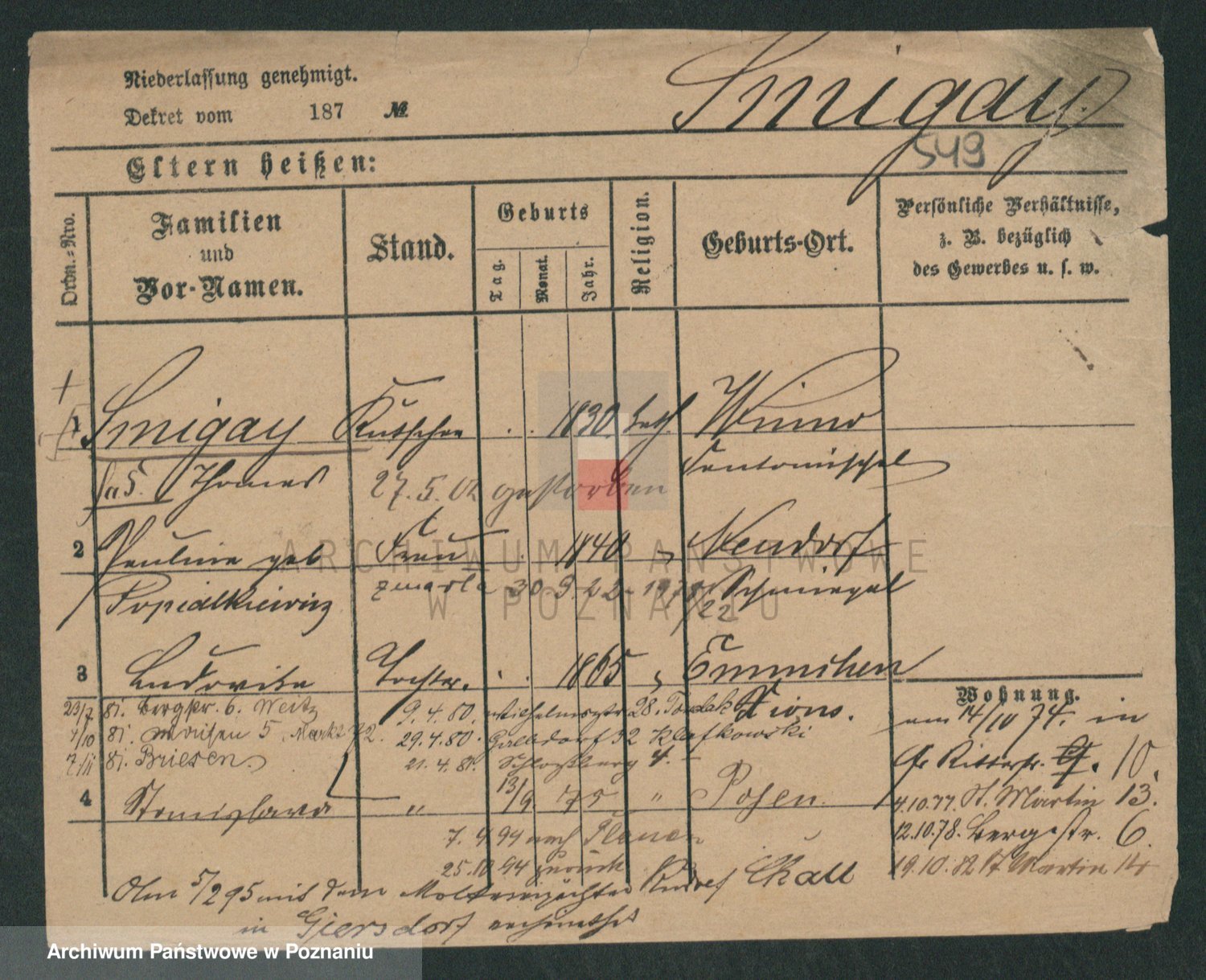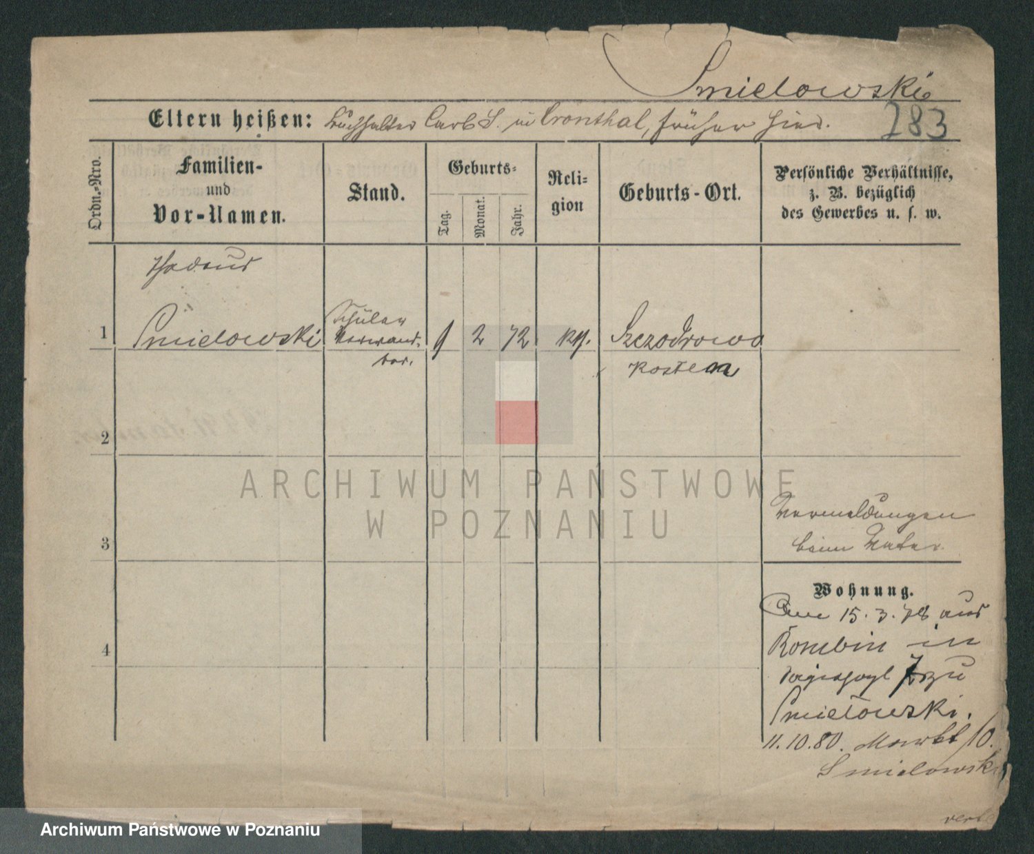 Podgląd karty osobowej dostępny jest po kliknięciu na nazwisko lub ikonkę karty. Można dokonywać powiększenia (ikony na górze) lub przechodzić między kolejnymi skanami (strzałki po bokach).