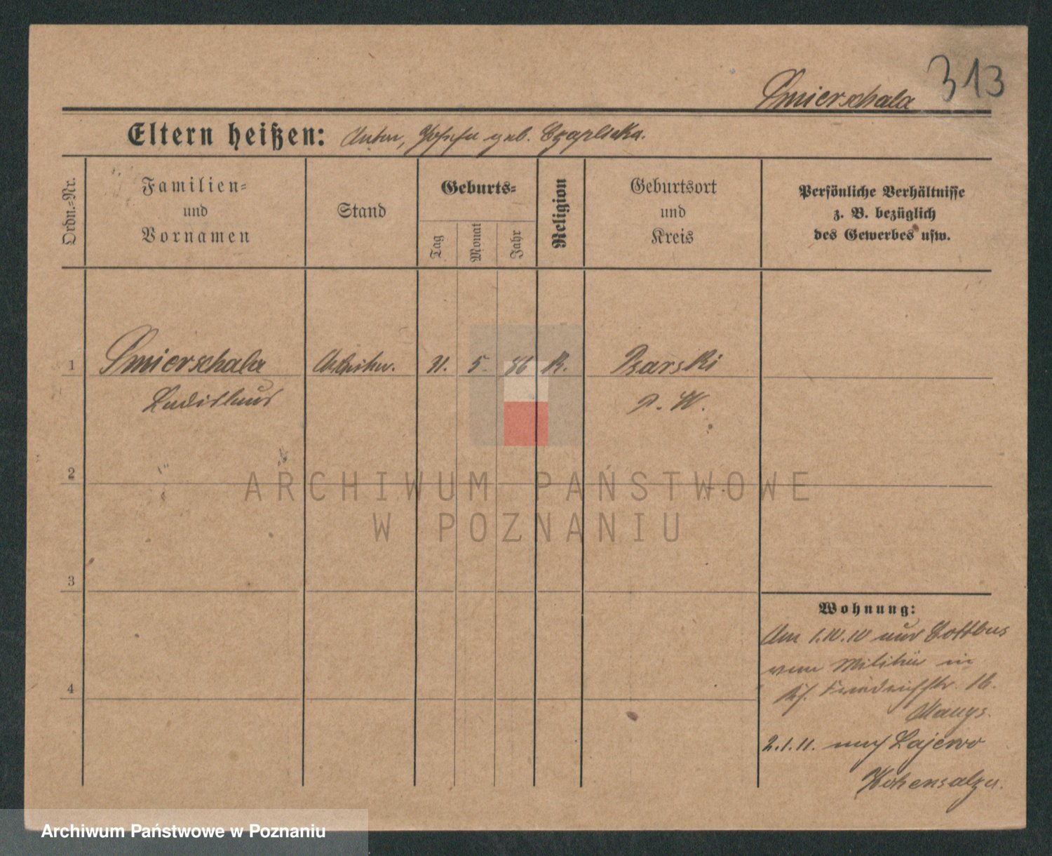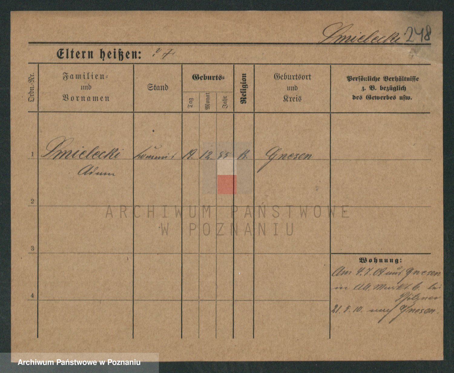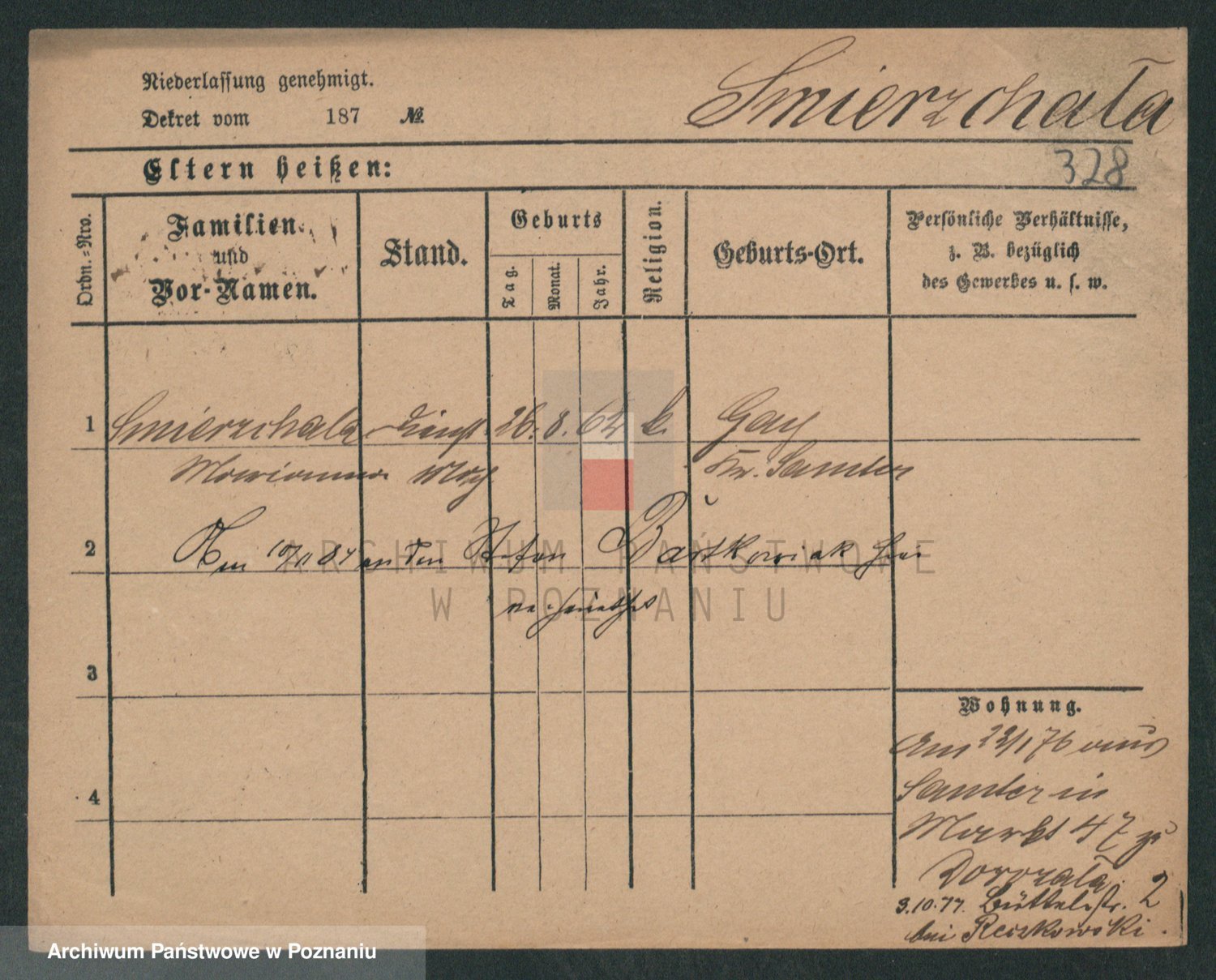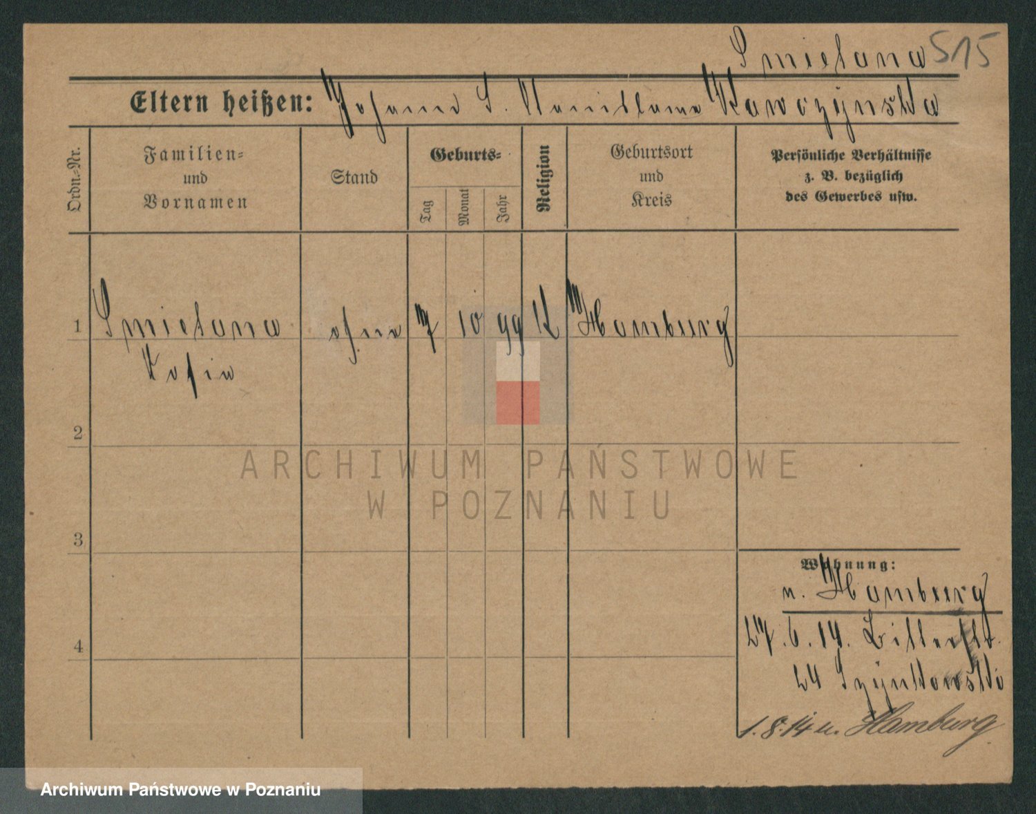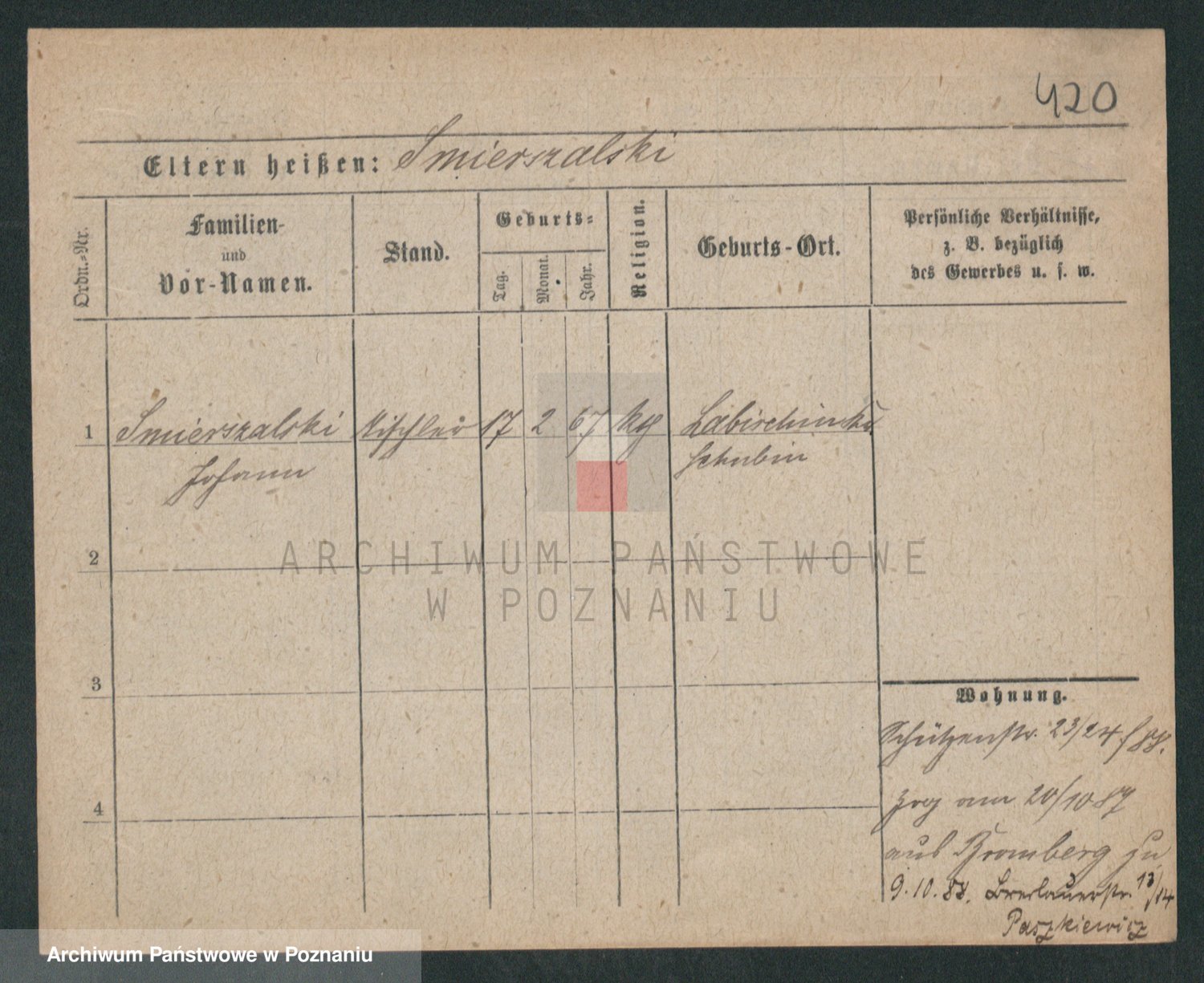 Podgląd karty osobowej dostępny jest po kliknięciu na nazwisko lub ikonkę karty. Można dokonywać powiększenia (ikony na górze) lub przechodzić między kolejnymi skanami (strzałki po bokach).