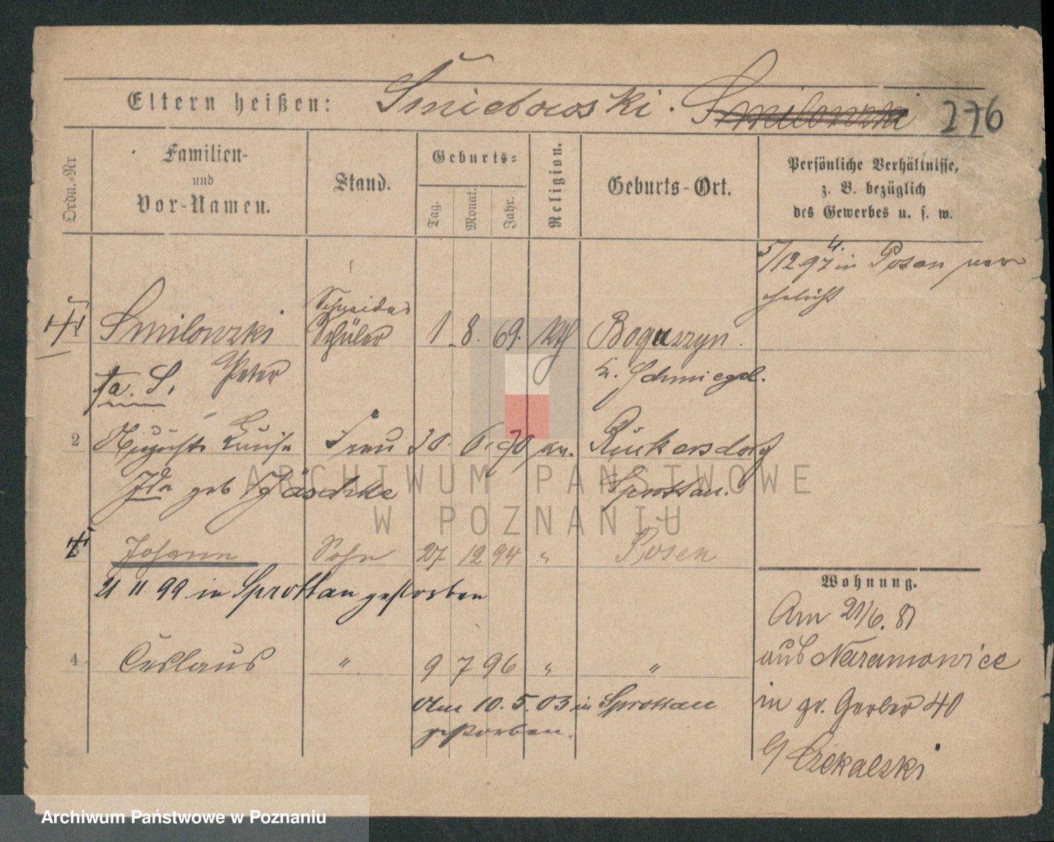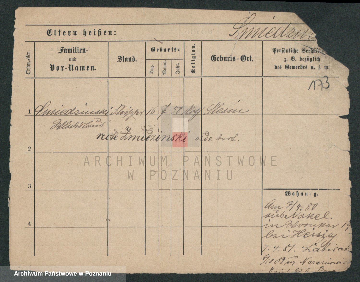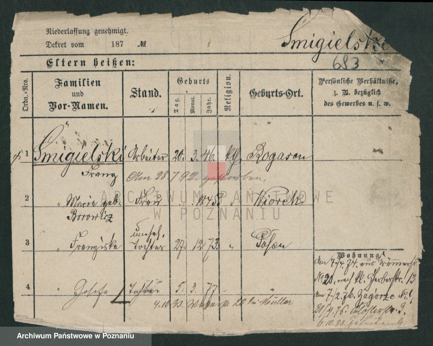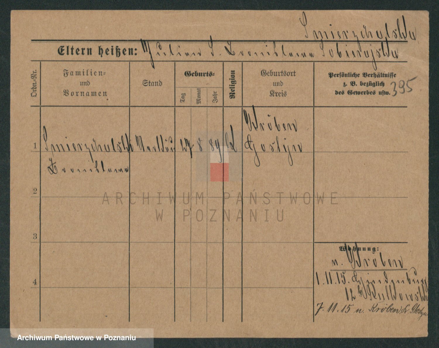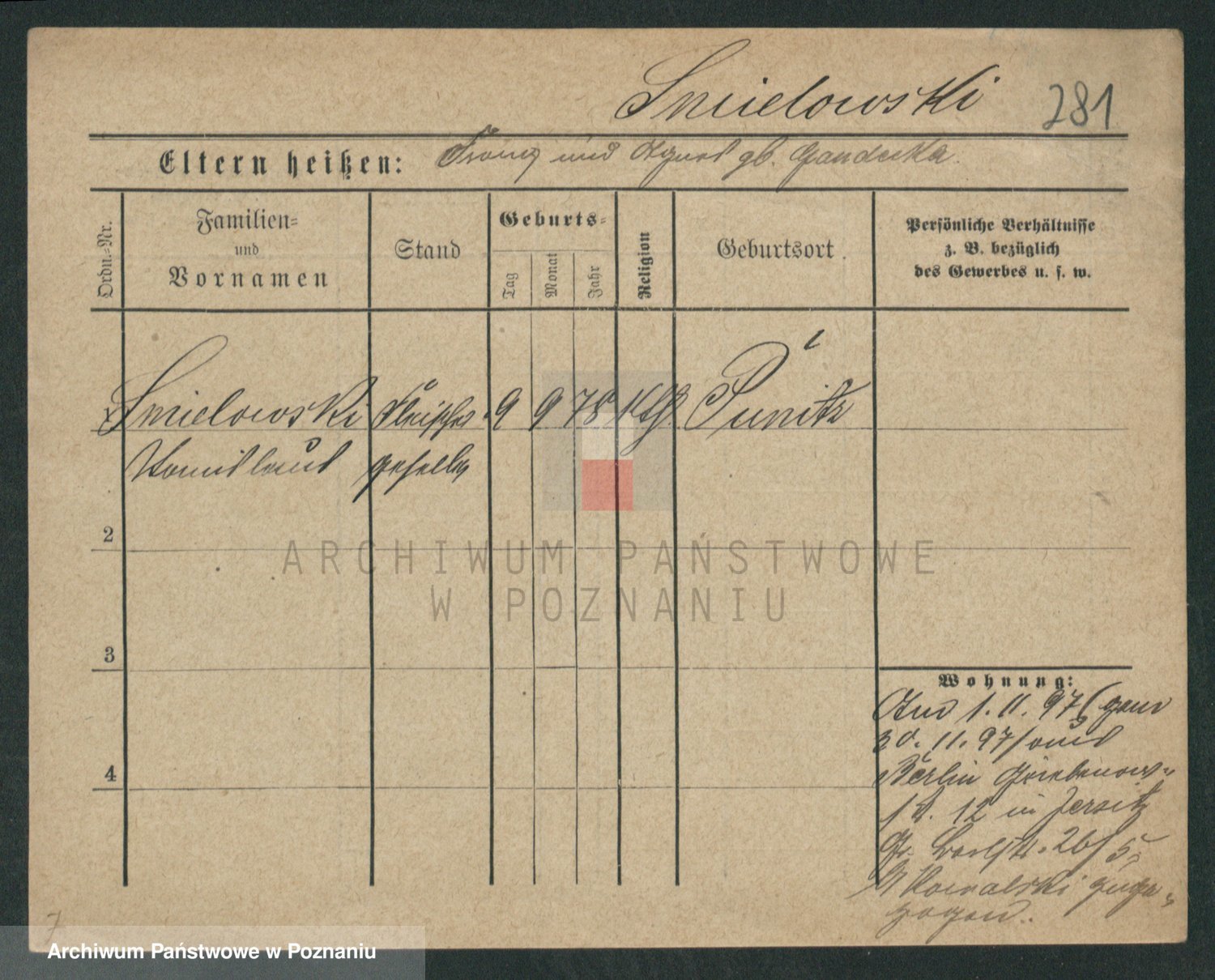 Podgląd karty osobowej dostępny jest po kliknięciu na nazwisko lub ikonkę karty. Można dokonywać powiększenia (ikony na górze) lub przechodzić między kolejnymi skanami (strzałki po bokach).