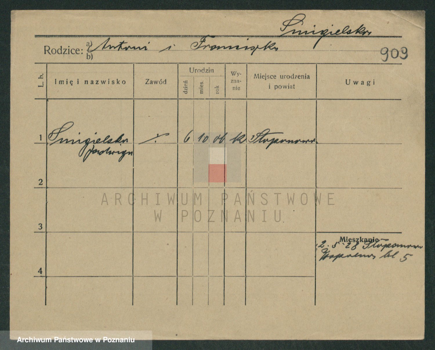 karta: 909