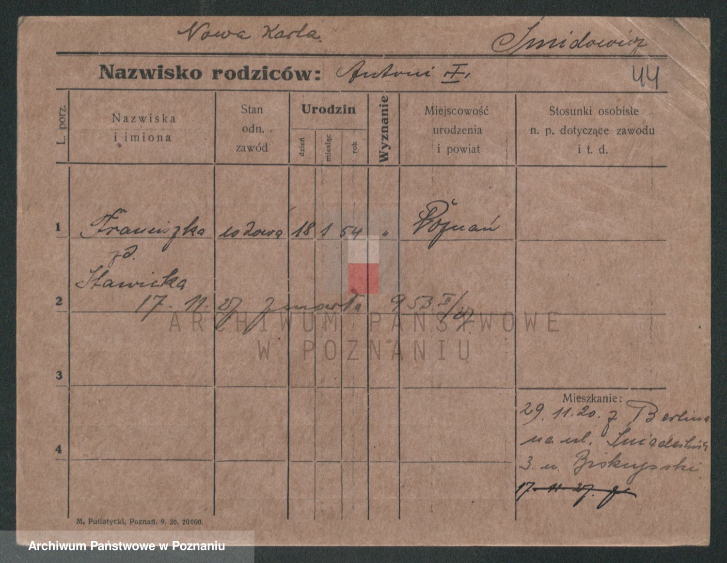 Smidowicz z d. Stawicka, Franziska
