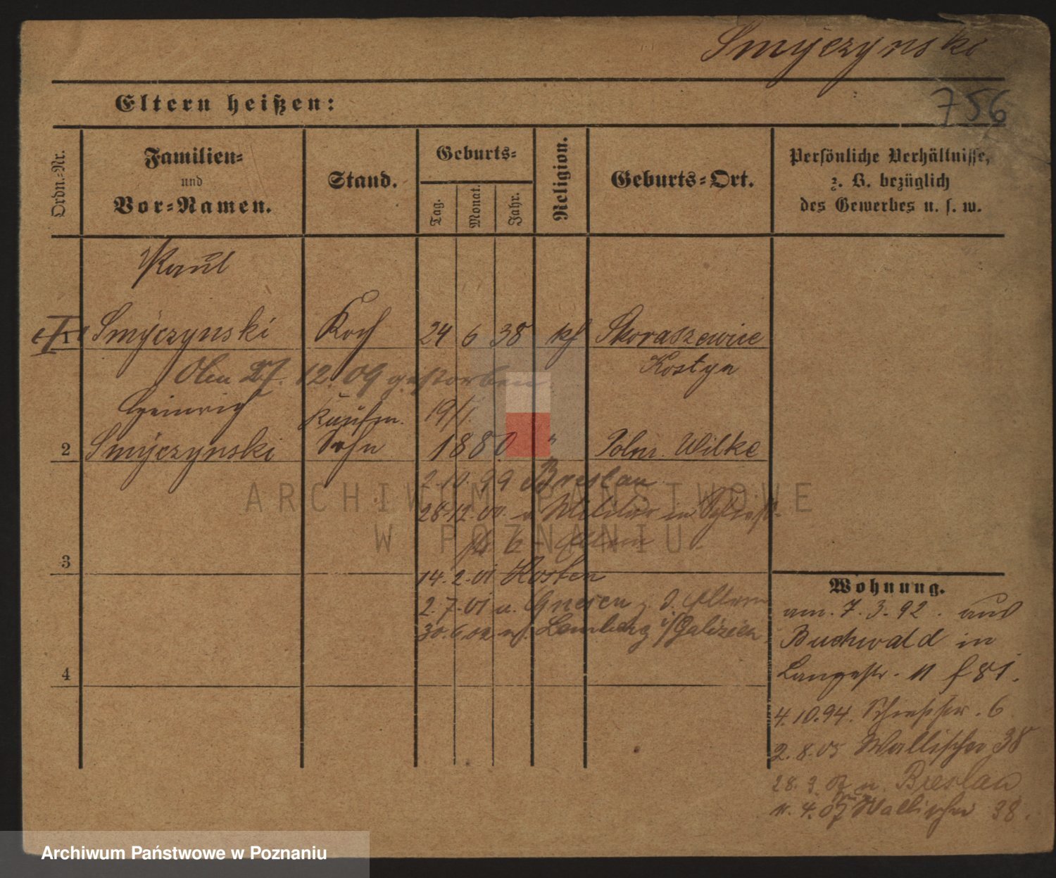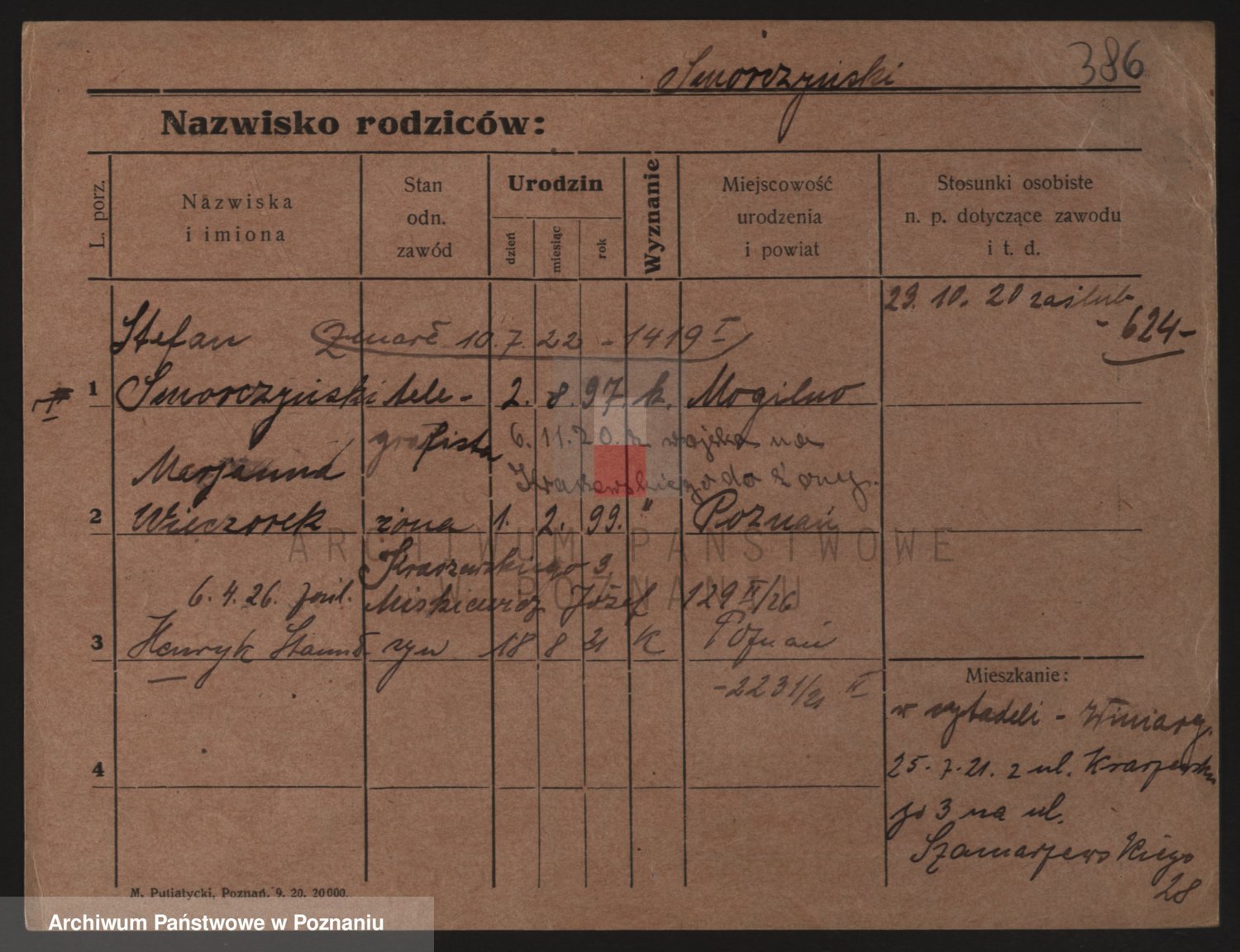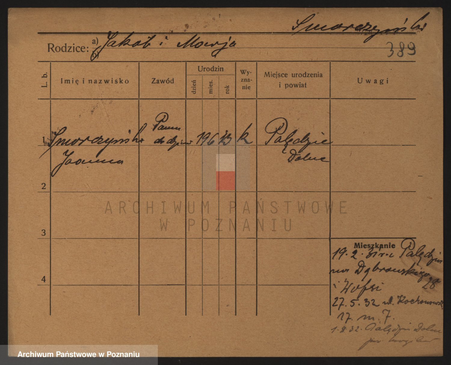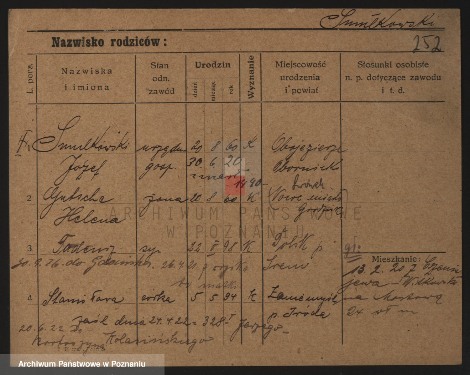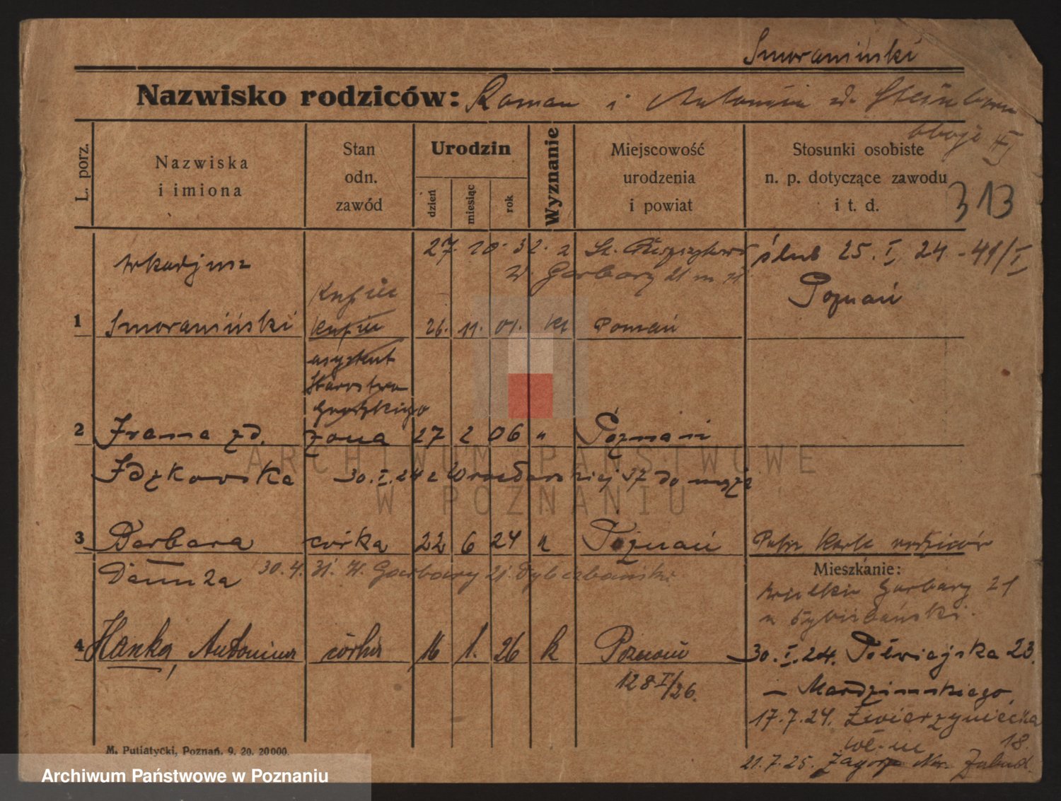 Podgląd karty osobowej dostępny jest po kliknięciu na nazwisko lub ikonkę karty. Można dokonywać powiększenia (ikony na górze) lub przechodzić między kolejnymi skanami (strzałki po bokach).