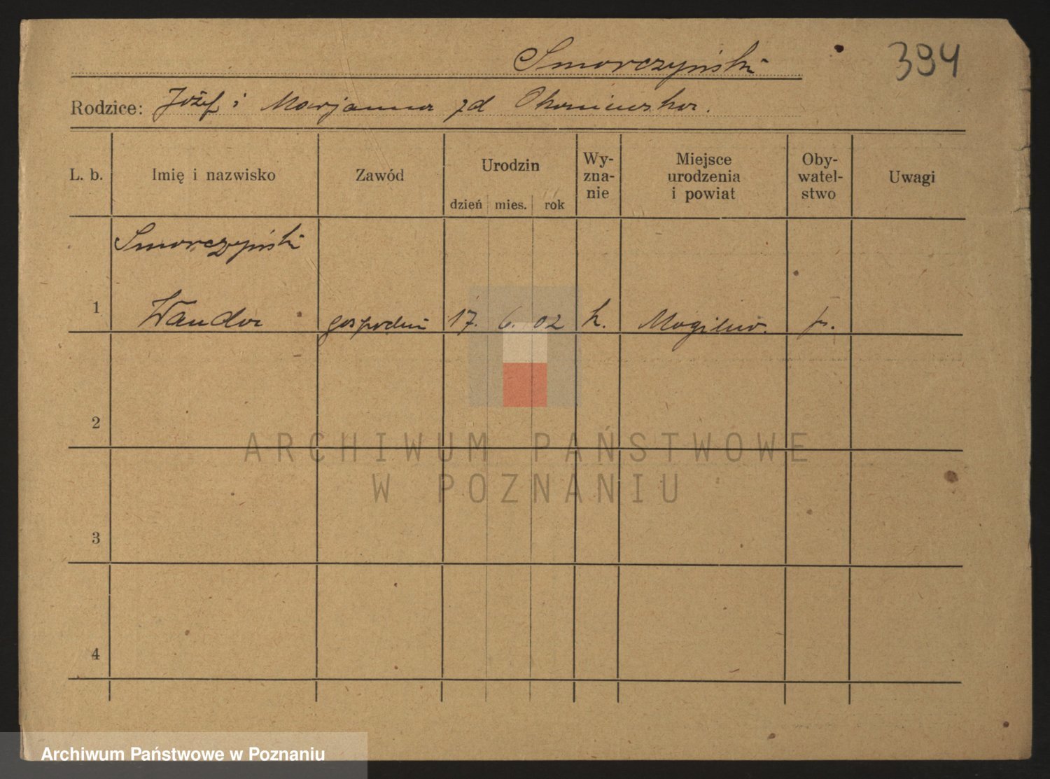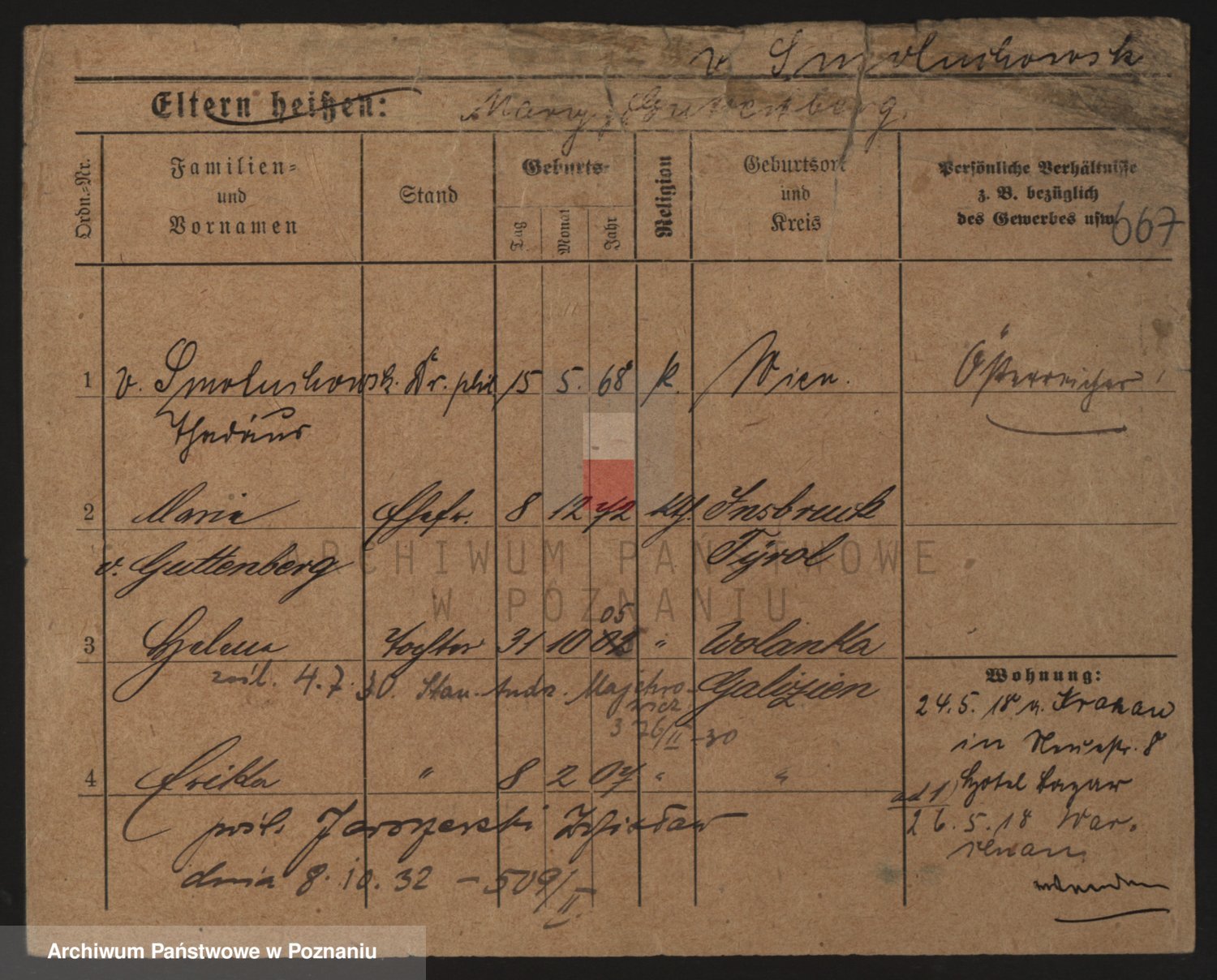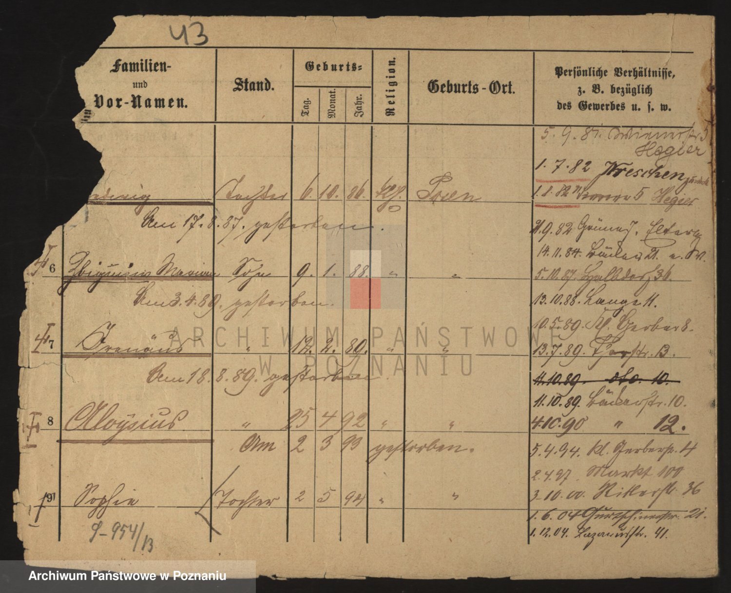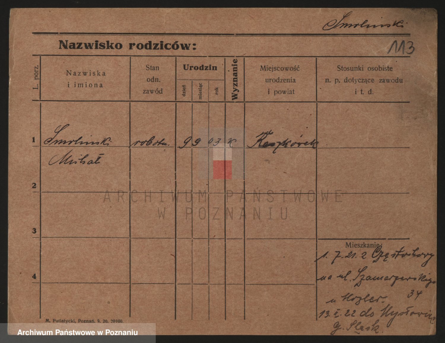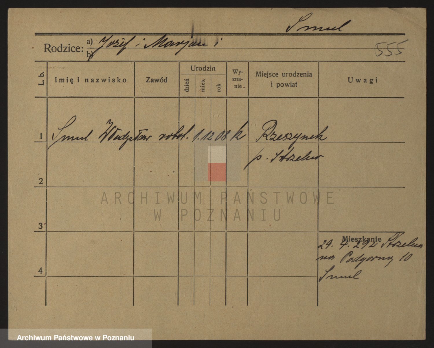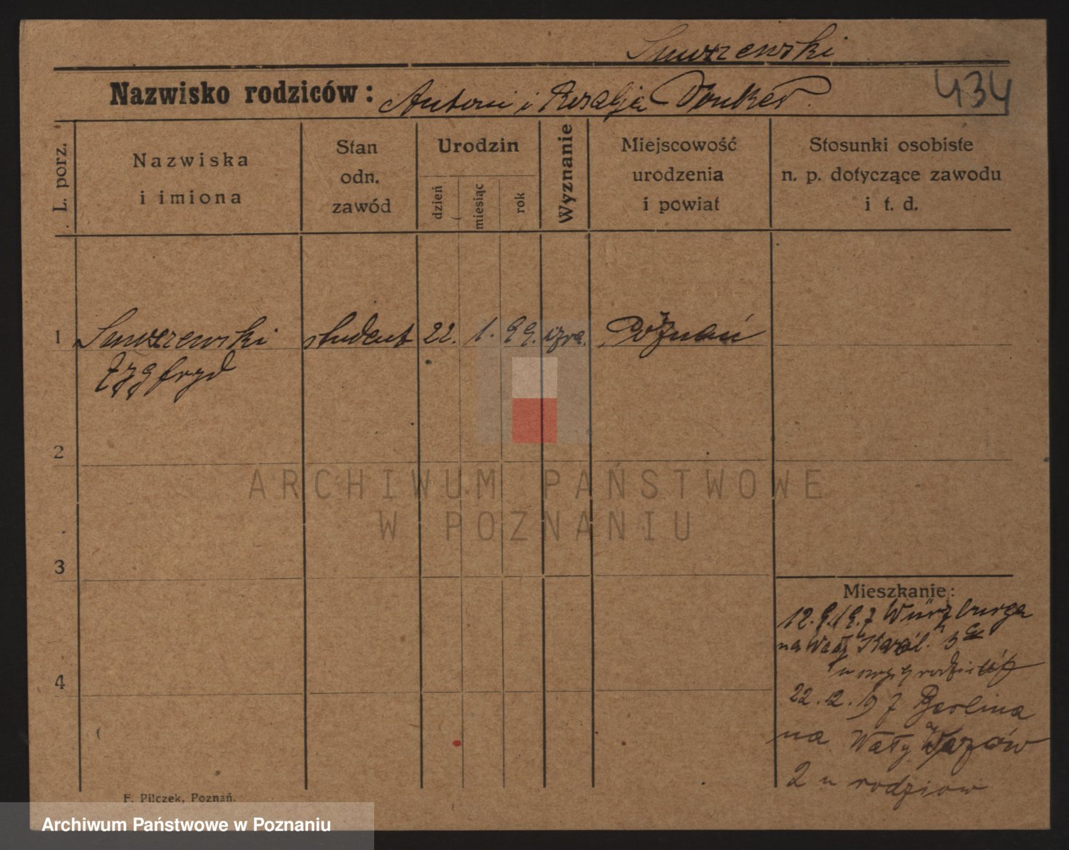 Podgląd karty osobowej dostępny jest po kliknięciu na nazwisko lub ikonkę karty. Można dokonywać powiększenia (ikony na górze) lub przechodzić między kolejnymi skanami (strzałki po bokach).