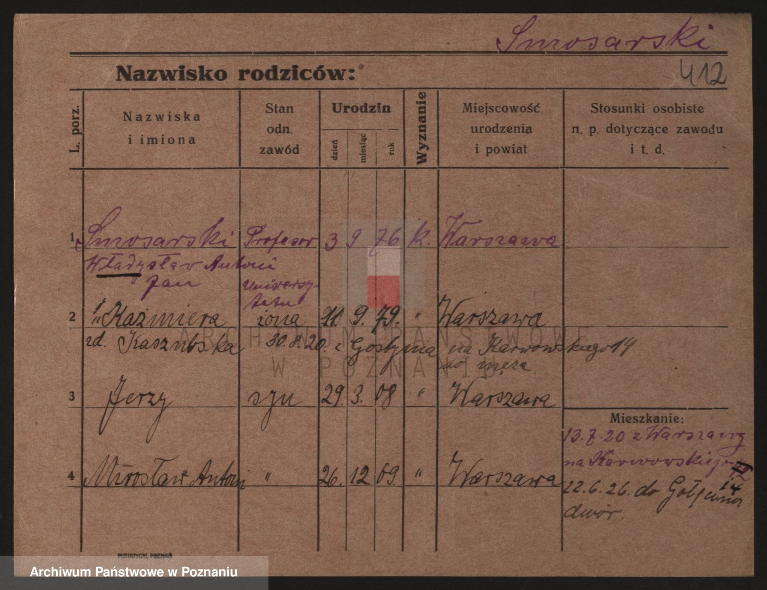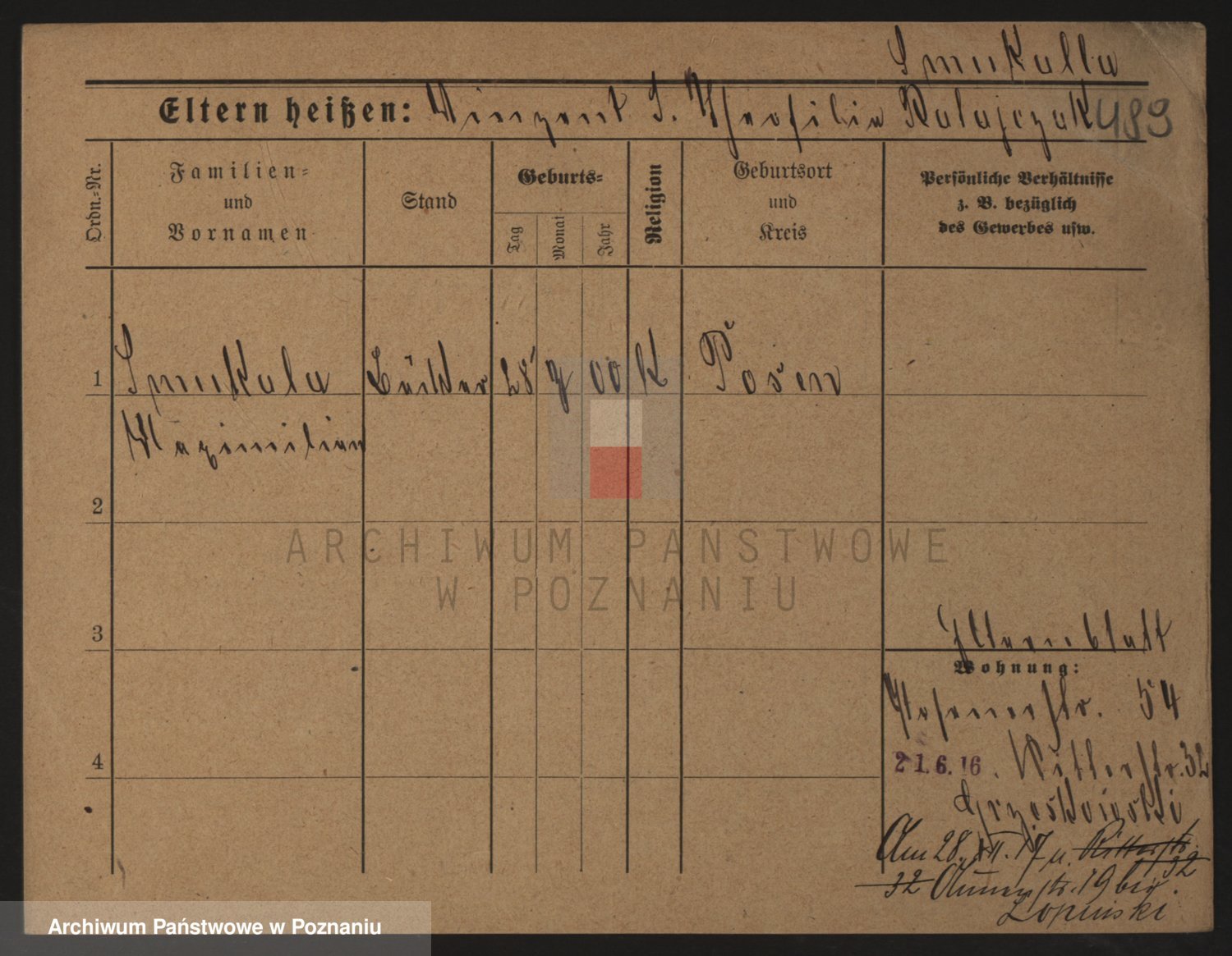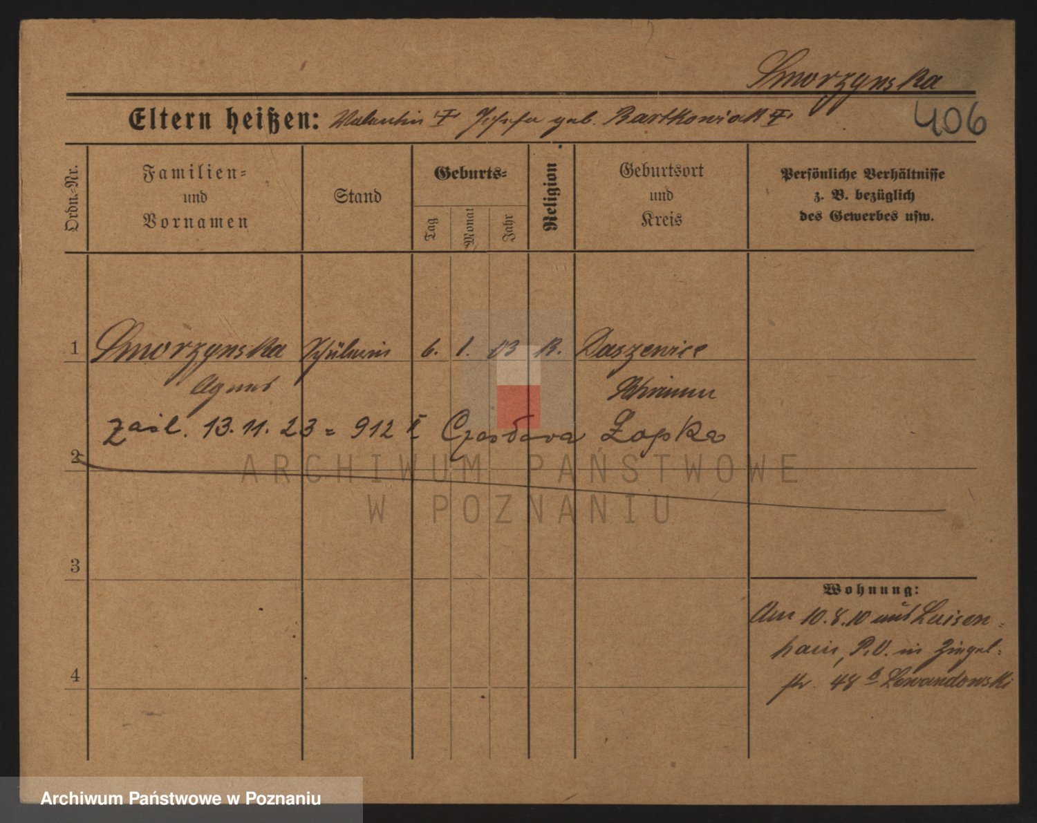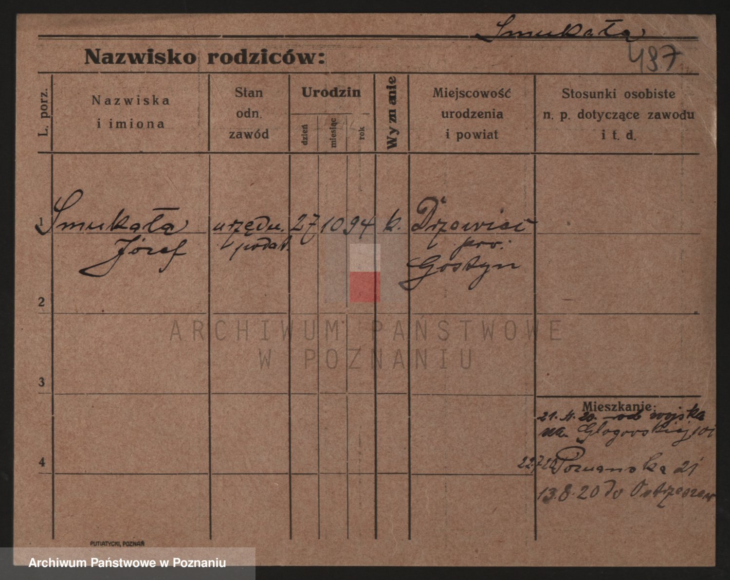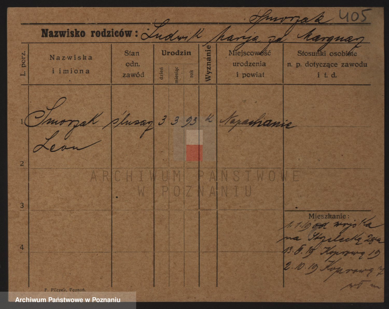 Podgląd karty osobowej dostępny jest po kliknięciu na nazwisko lub ikonkę karty. Można dokonywać powiększenia (ikony na górze) lub przechodzić między kolejnymi skanami (strzałki po bokach).