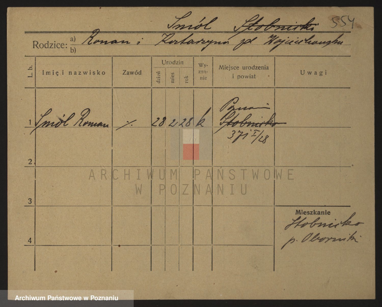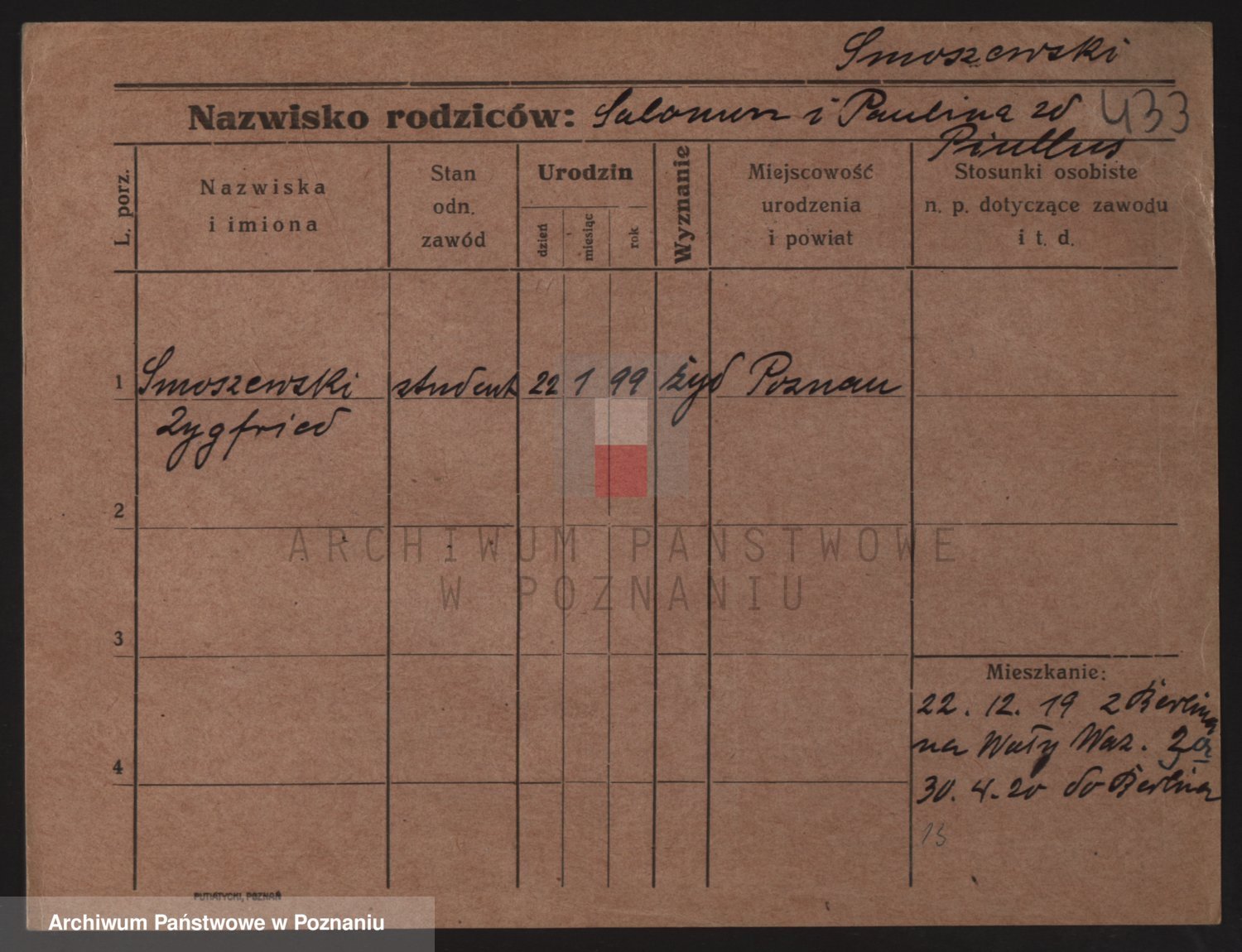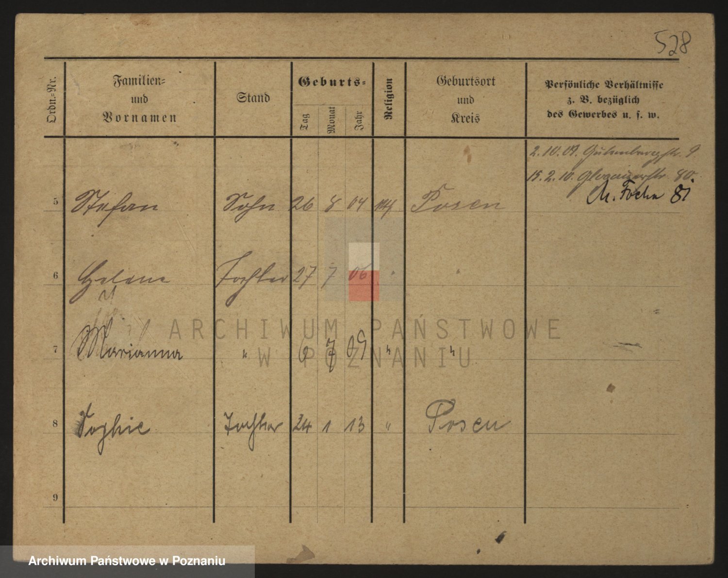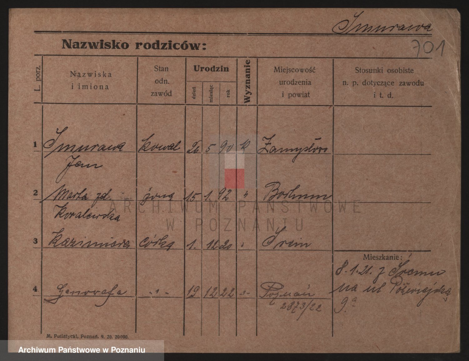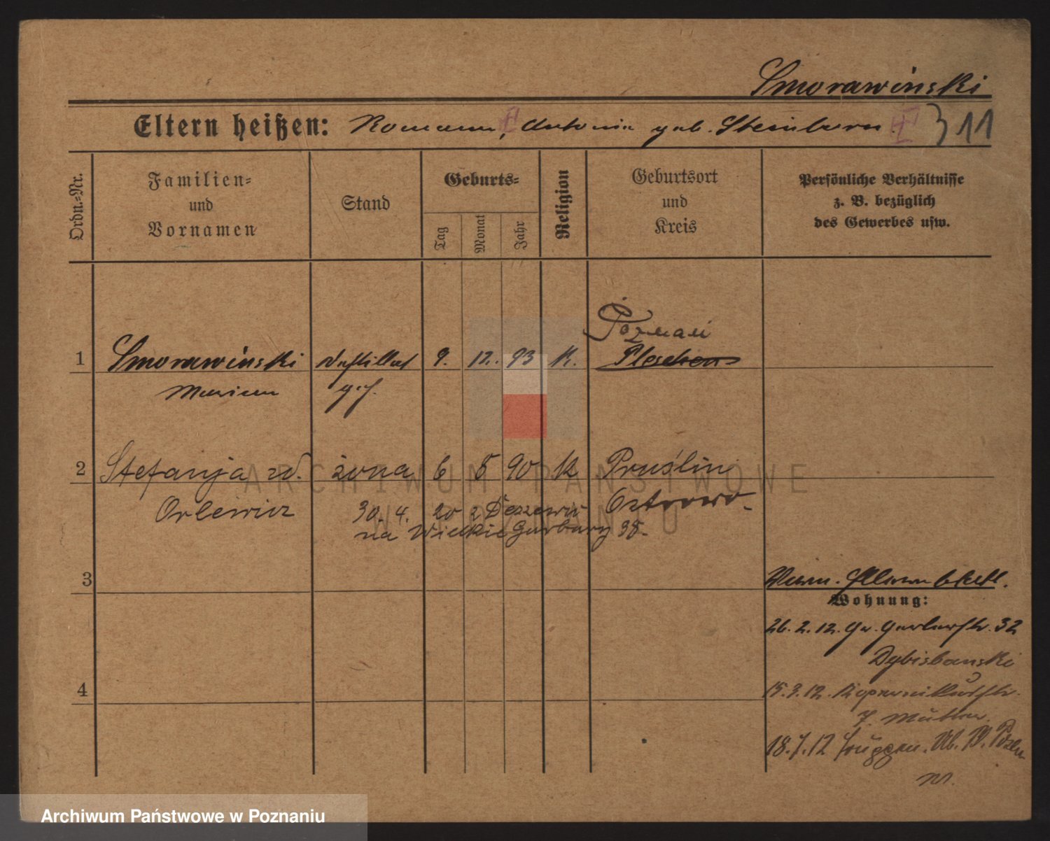 Podgląd karty osobowej dostępny jest po kliknięciu na nazwisko lub ikonkę karty. Można dokonywać powiększenia (ikony na górze) lub przechodzić między kolejnymi skanami (strzałki po bokach).