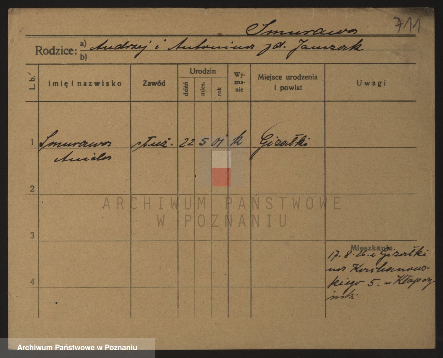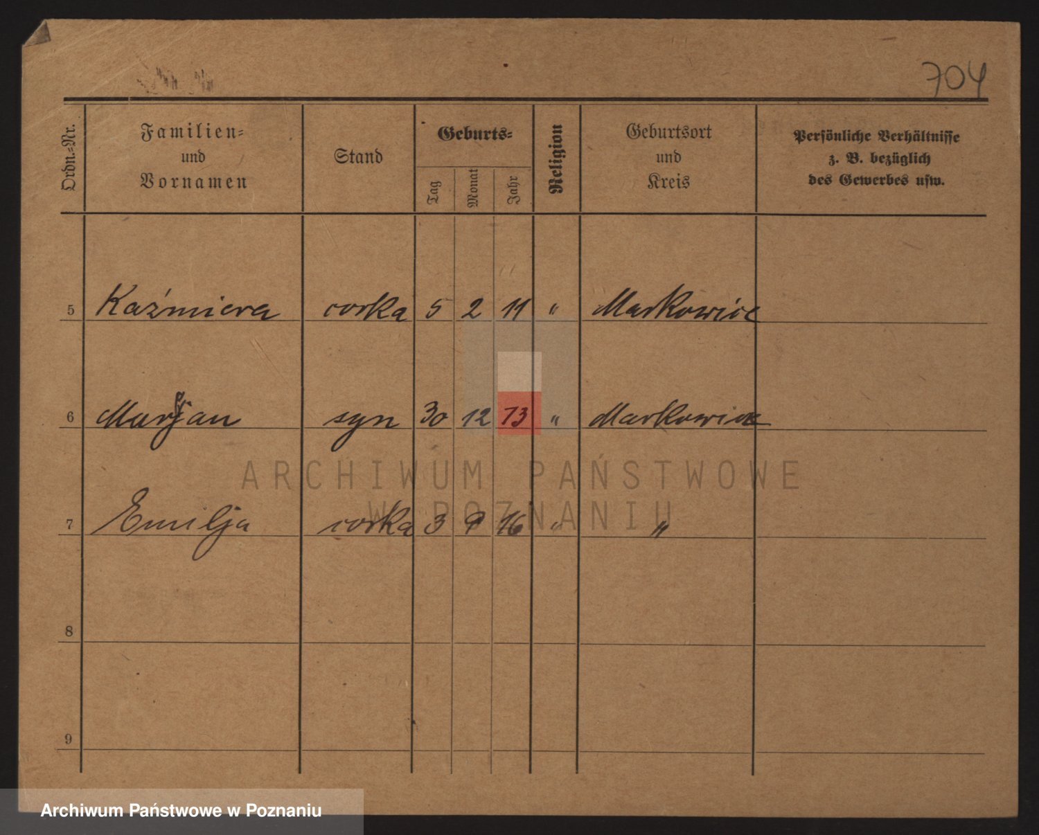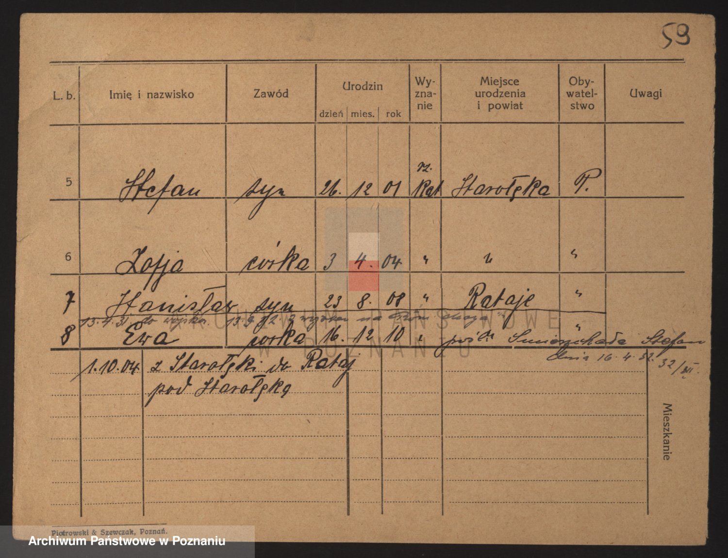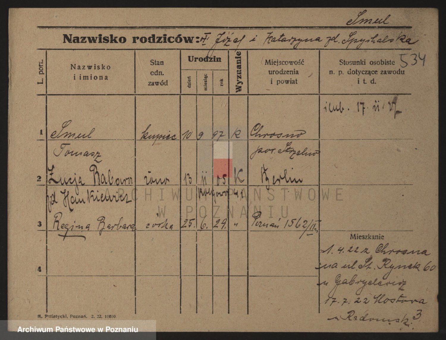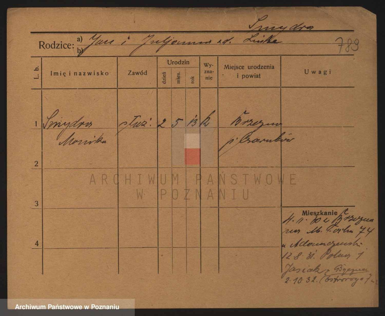 Podgląd karty osobowej dostępny jest po kliknięciu na nazwisko lub ikonkę karty. Można dokonywać powiększenia (ikony na górze) lub przechodzić między kolejnymi skanami (strzałki po bokach).
