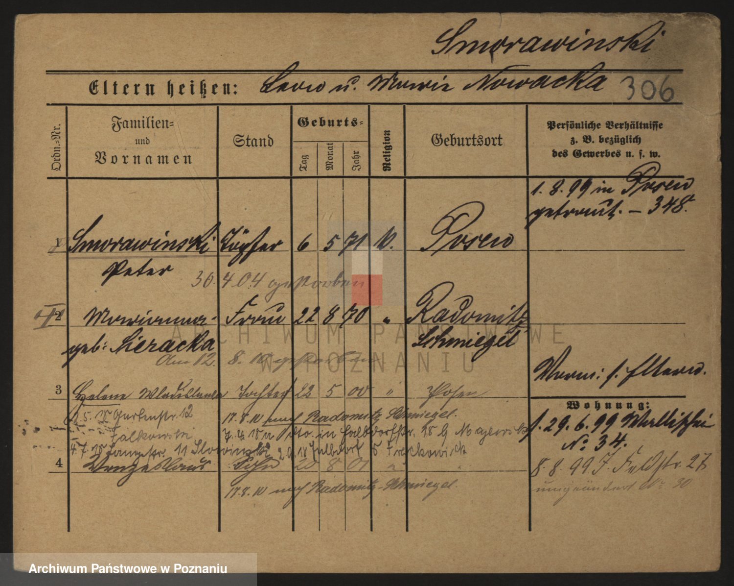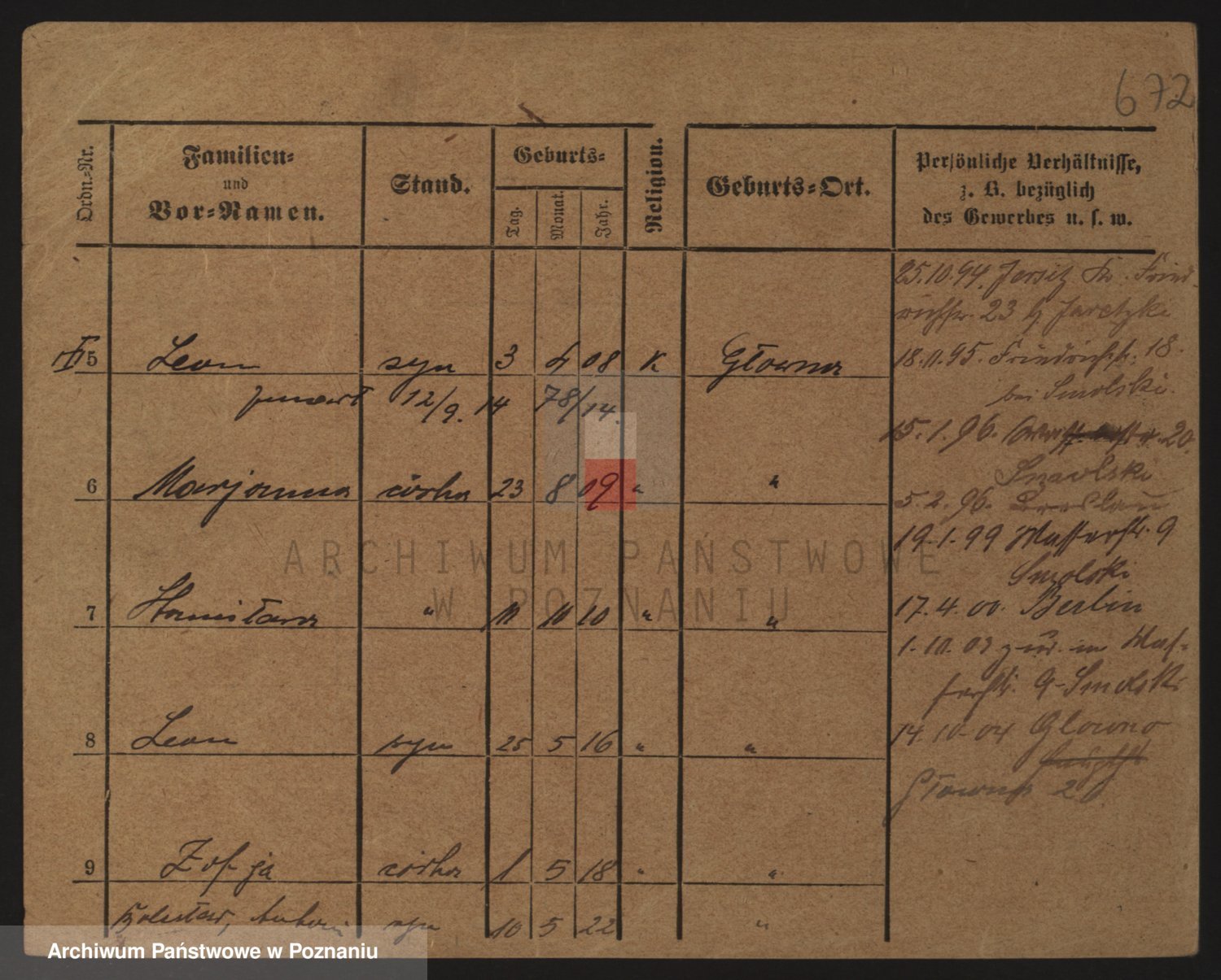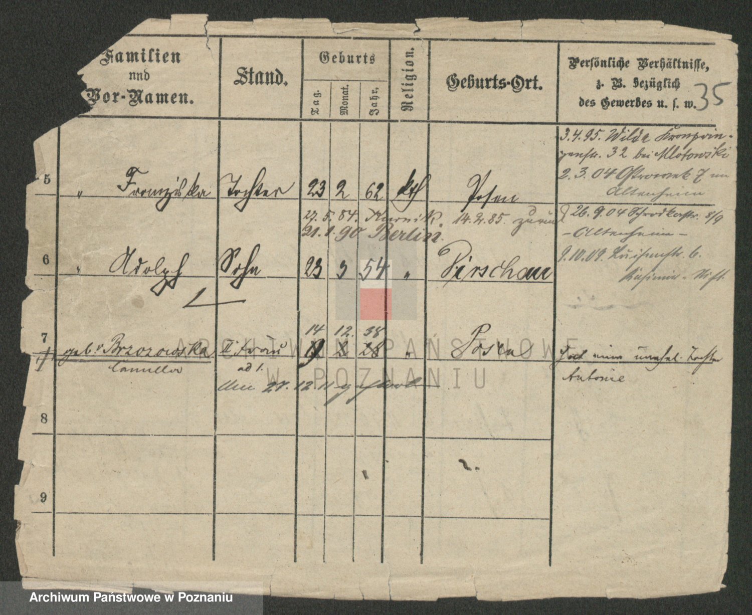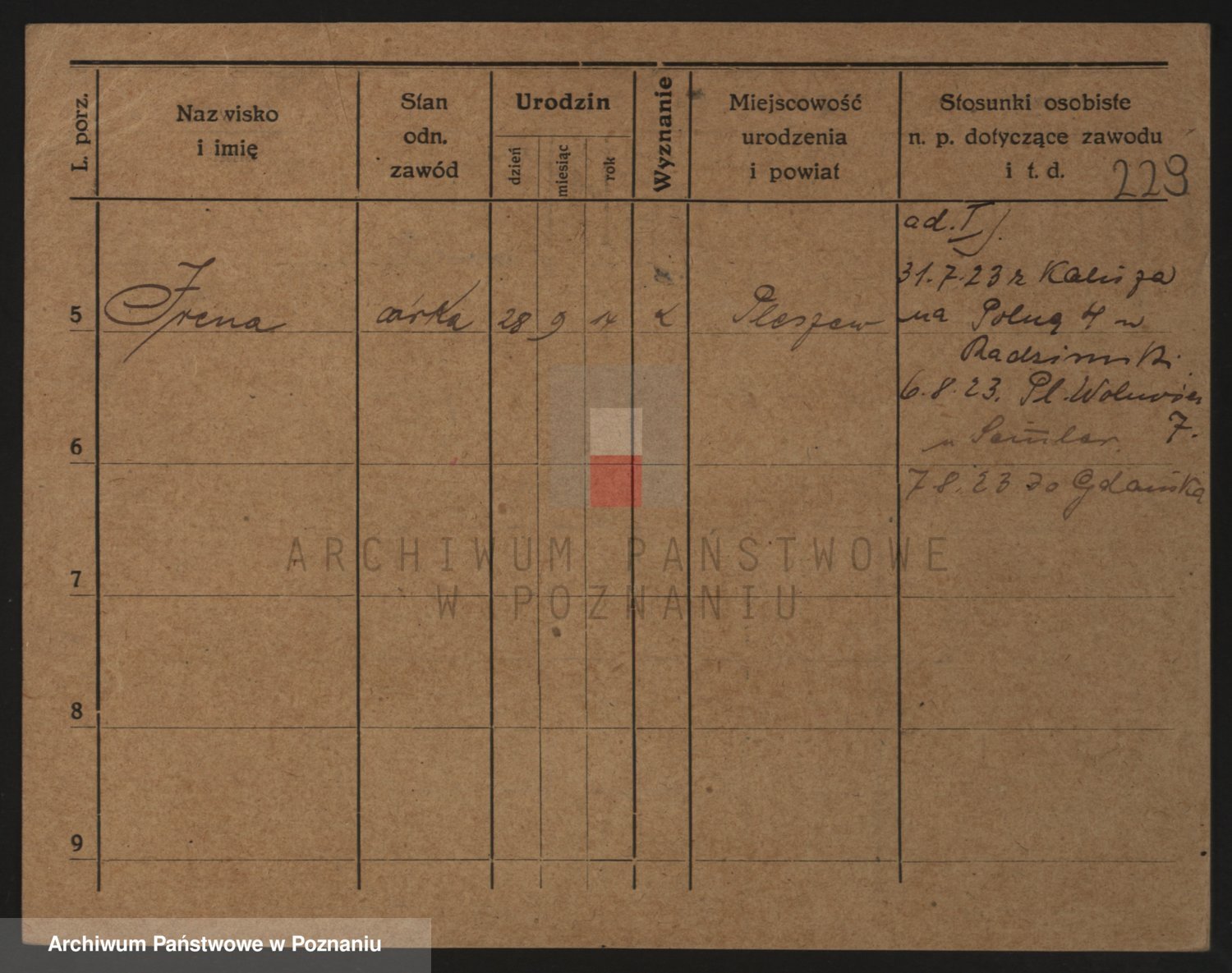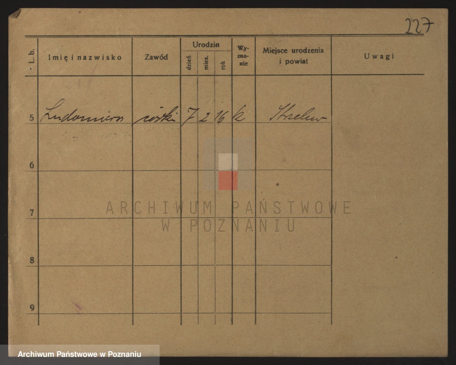 Podgląd karty osobowej dostępny jest po kliknięciu na nazwisko lub ikonkę karty. Można dokonywać powiększenia (ikony na górze) lub przechodzić między kolejnymi skanami (strzałki po bokach).