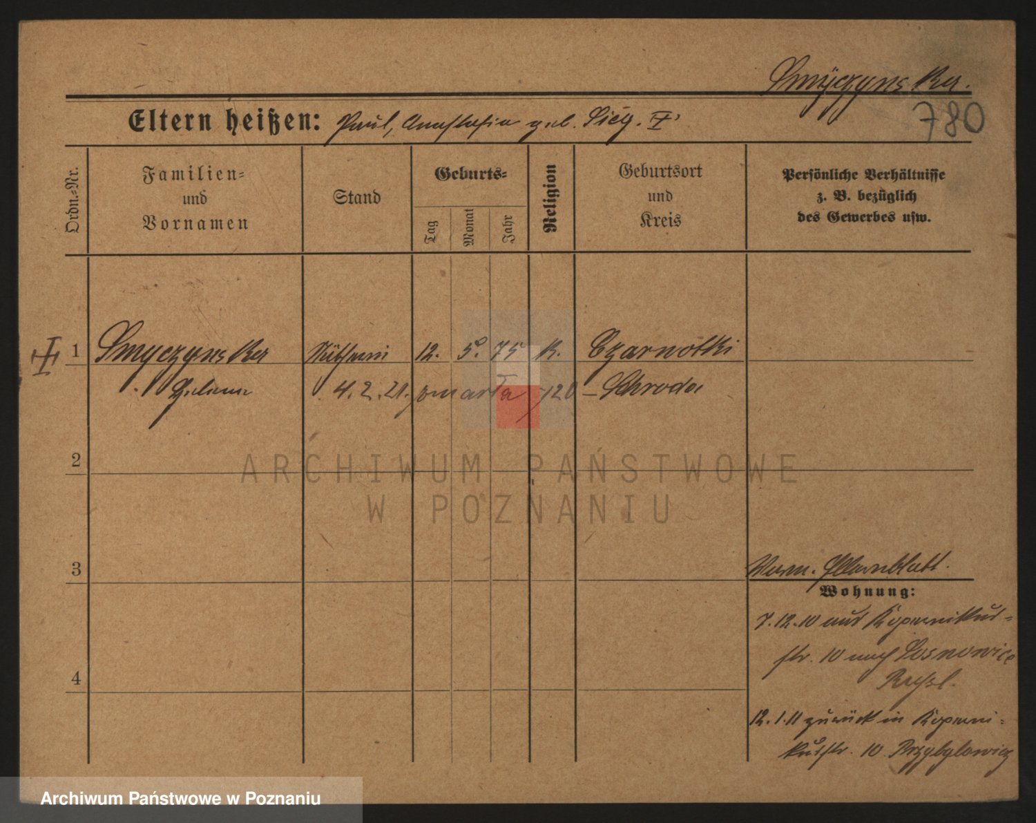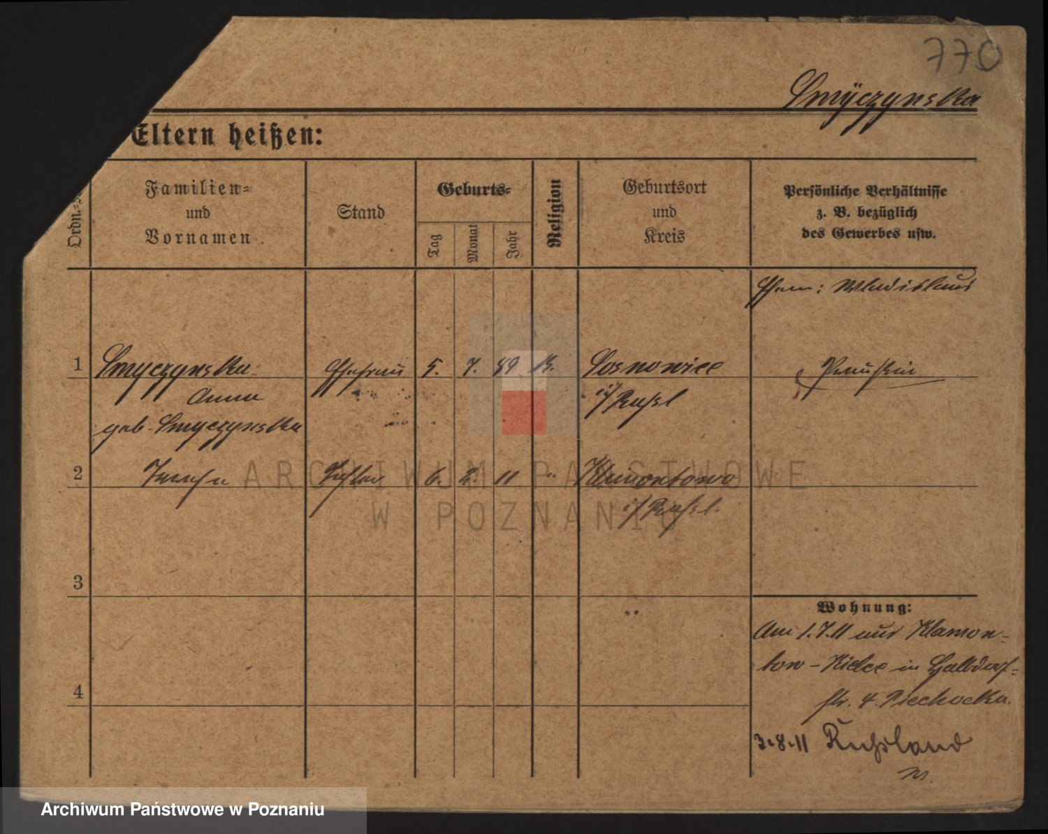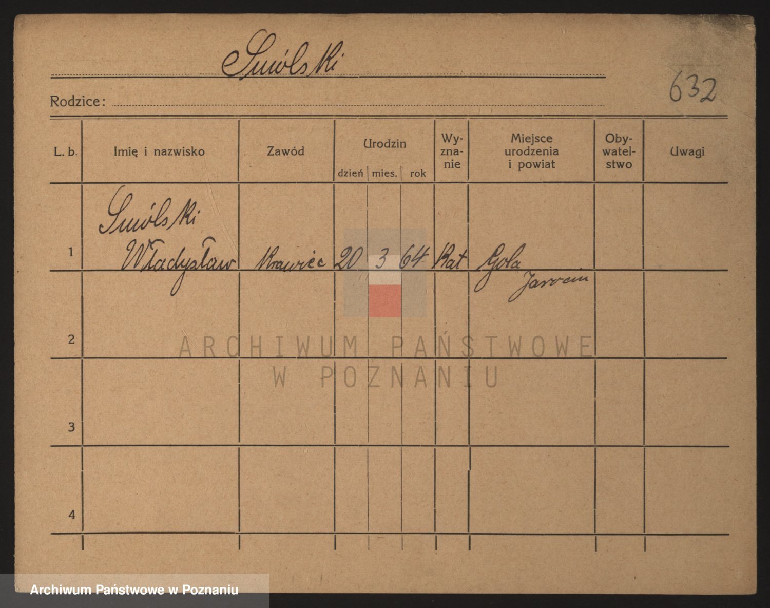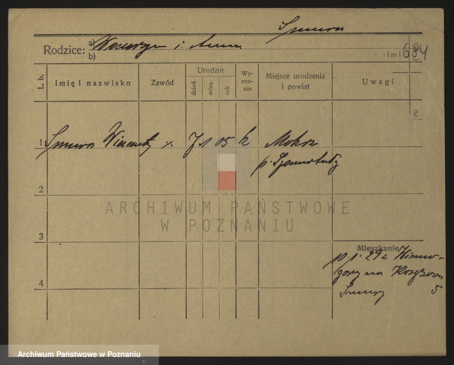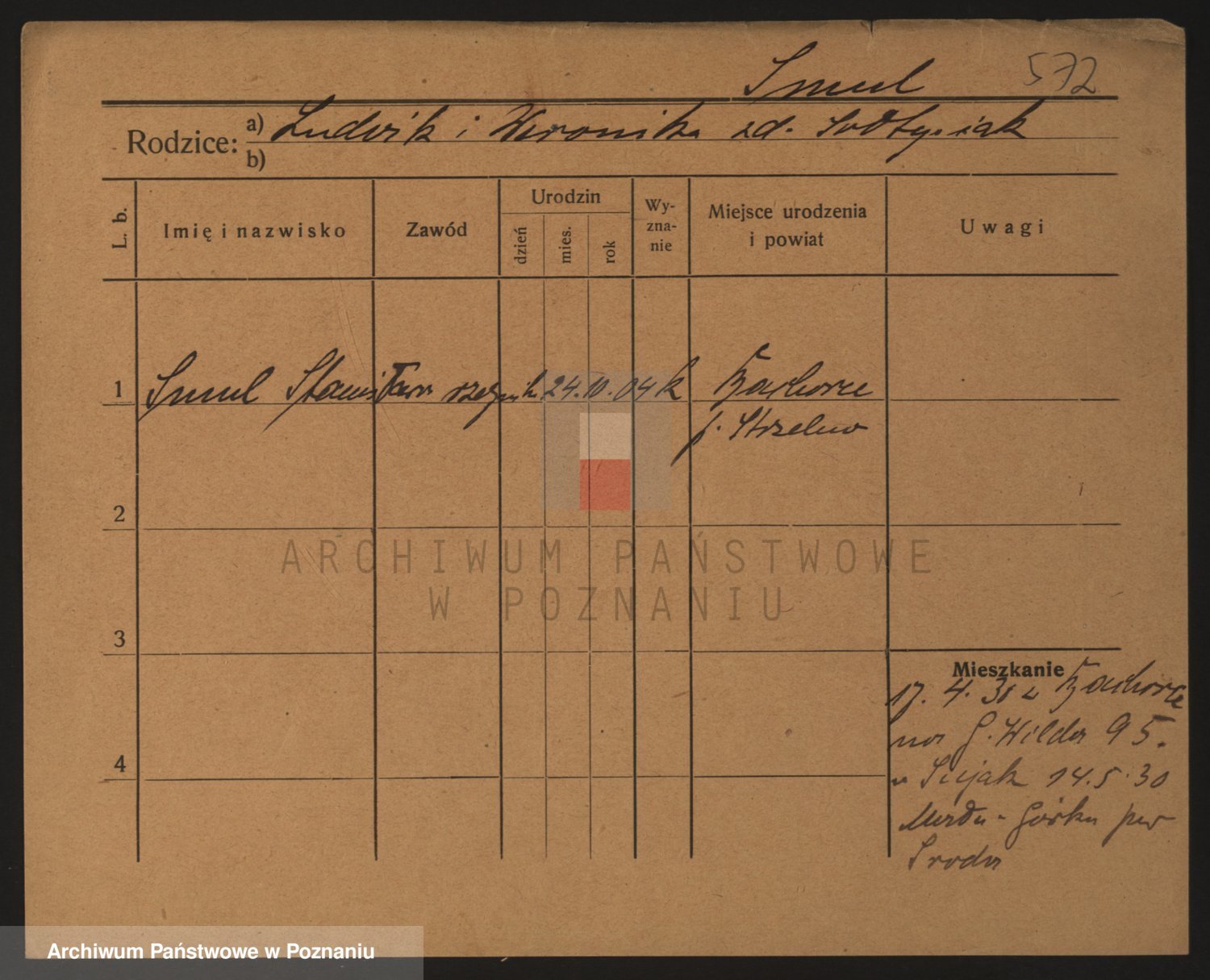 Podgląd karty osobowej dostępny jest po kliknięciu na nazwisko lub ikonkę karty. Można dokonywać powiększenia (ikony na górze) lub przechodzić między kolejnymi skanami (strzałki po bokach).