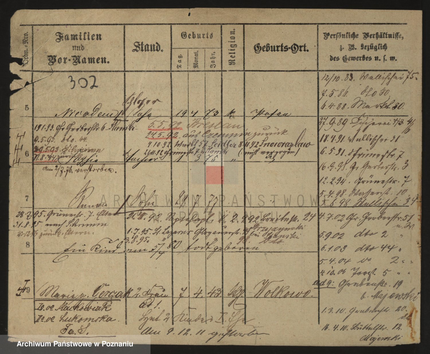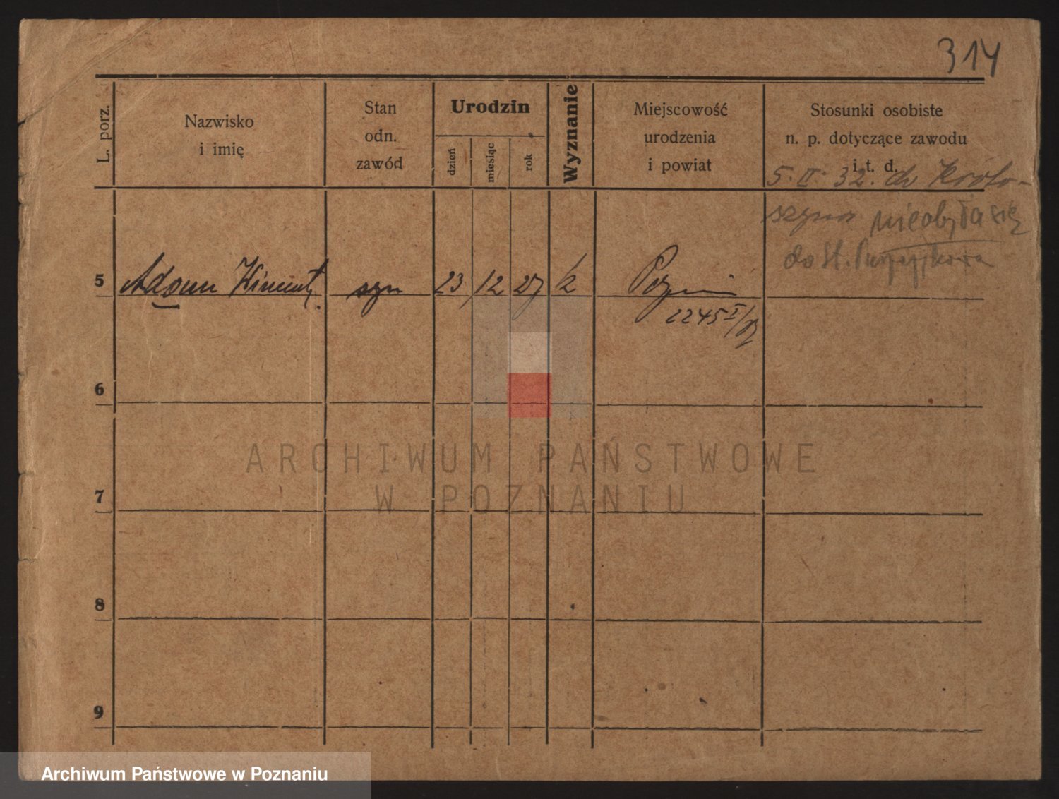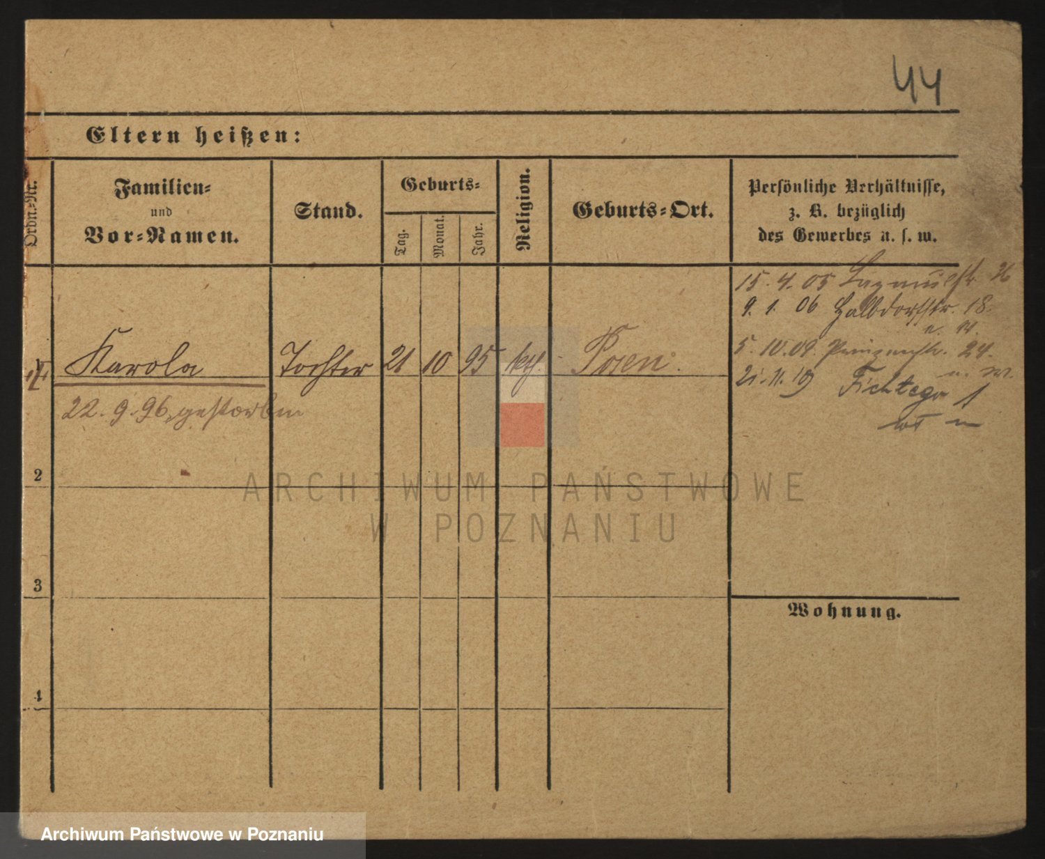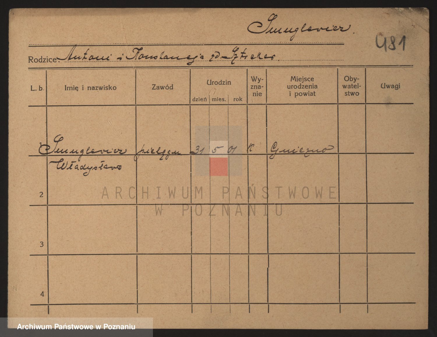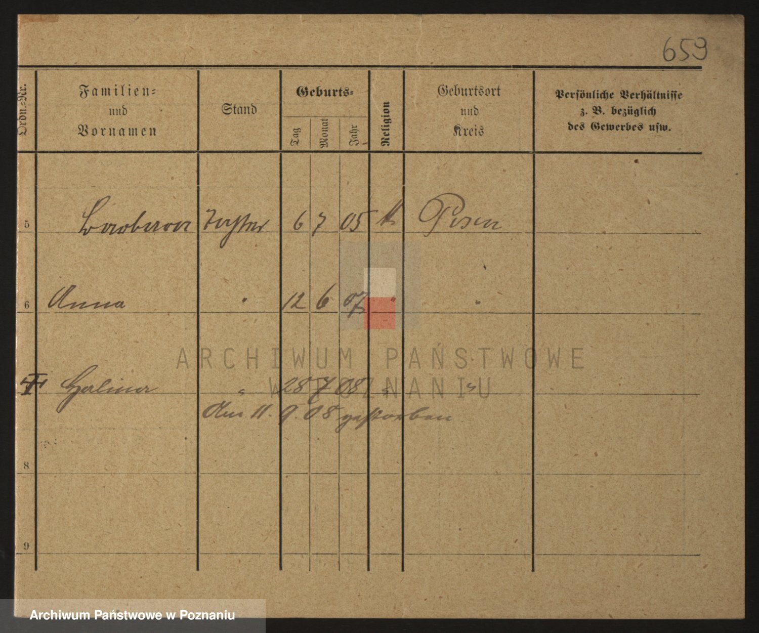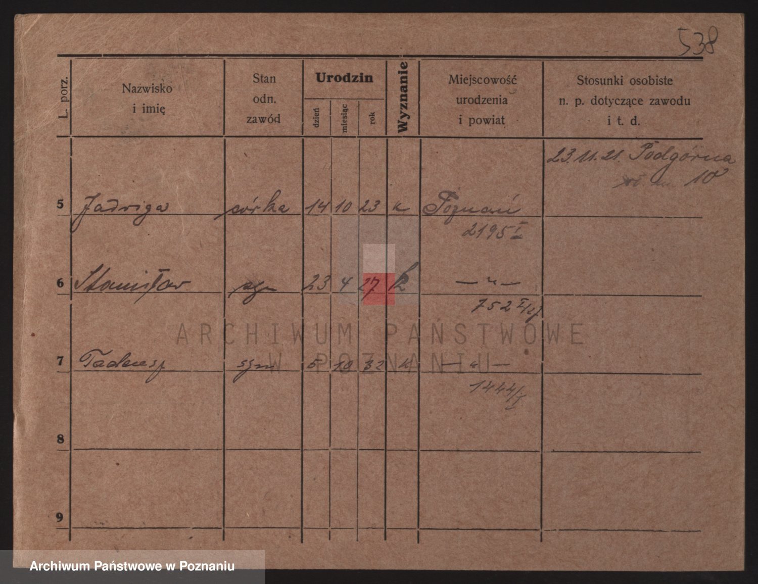 Podgląd karty osobowej dostępny jest po kliknięciu na nazwisko lub ikonkę karty. Można dokonywać powiększenia (ikony na górze) lub przechodzić między kolejnymi skanami (strzałki po bokach).