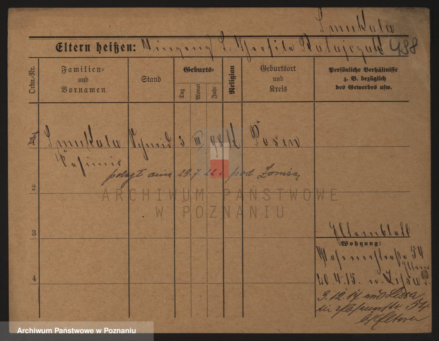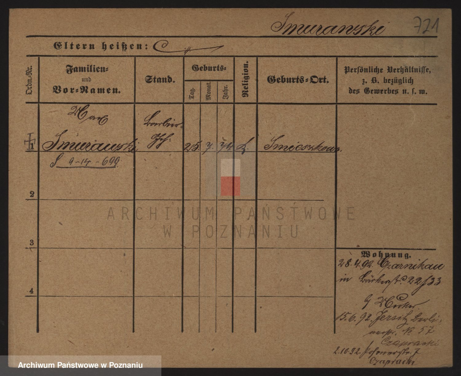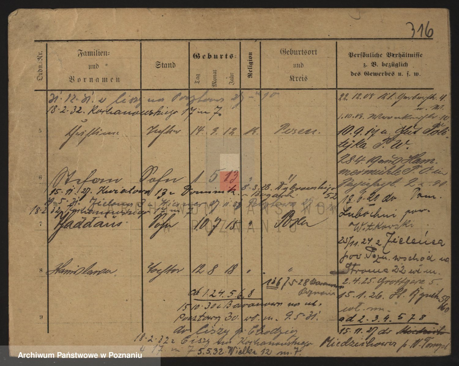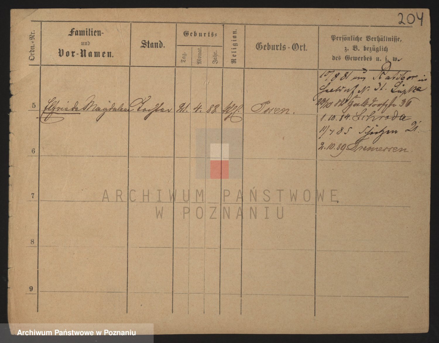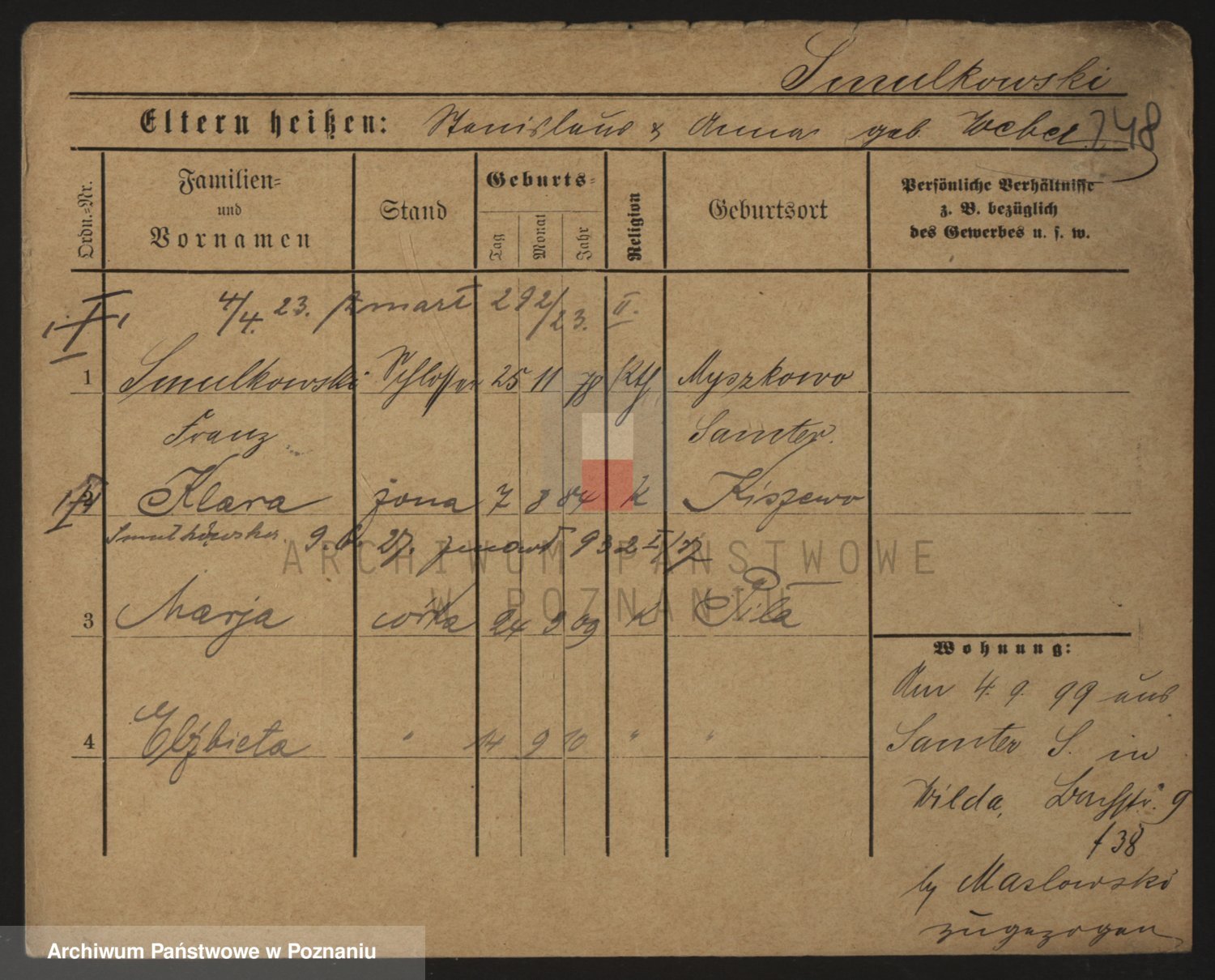 Podgląd karty osobowej dostępny jest po kliknięciu na nazwisko lub ikonkę karty. Można dokonywać powiększenia (ikony na górze) lub przechodzić między kolejnymi skanami (strzałki po bokach).