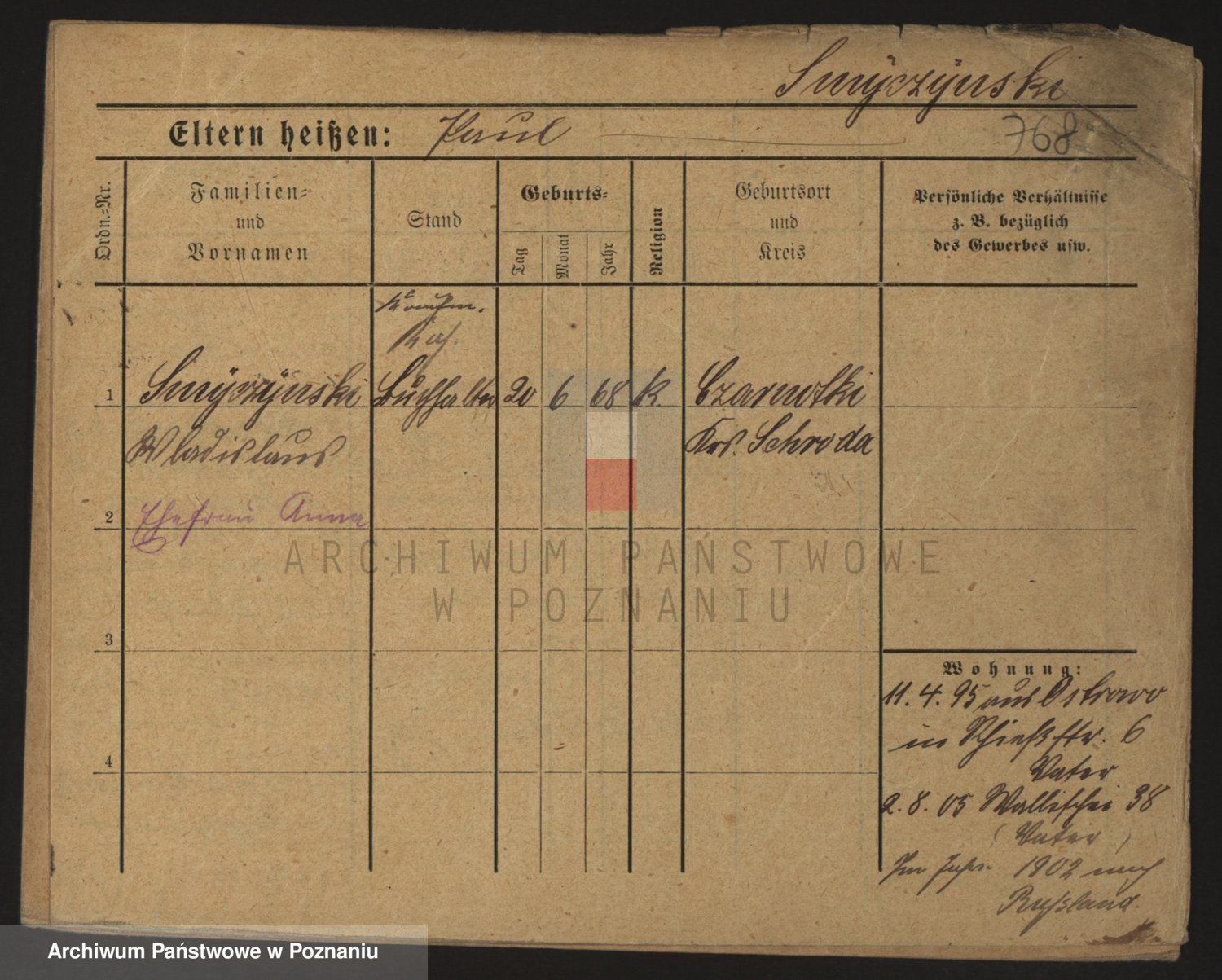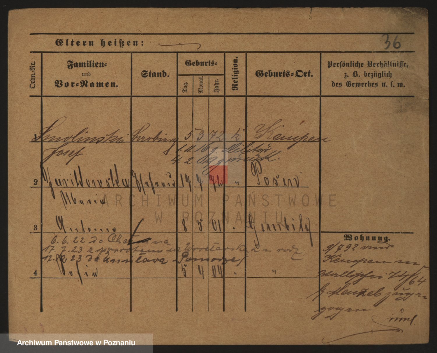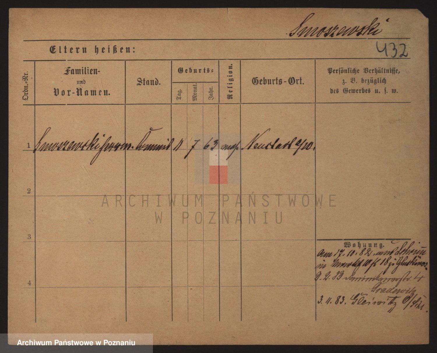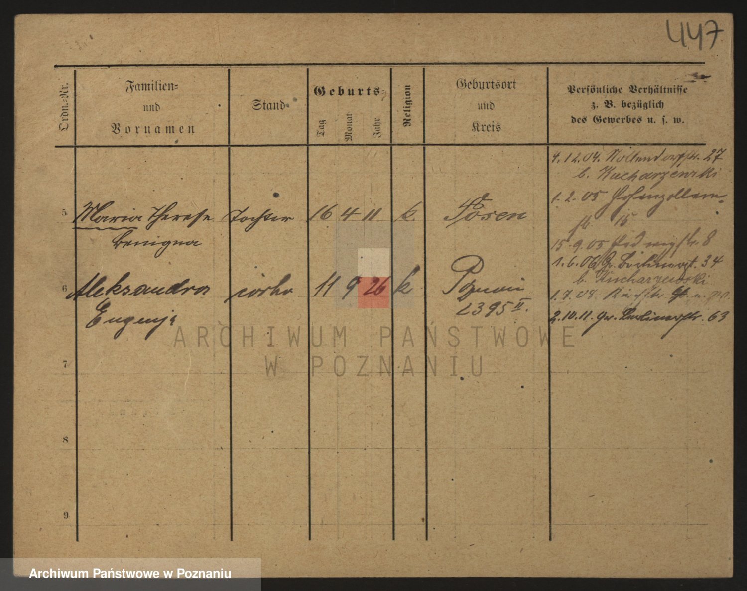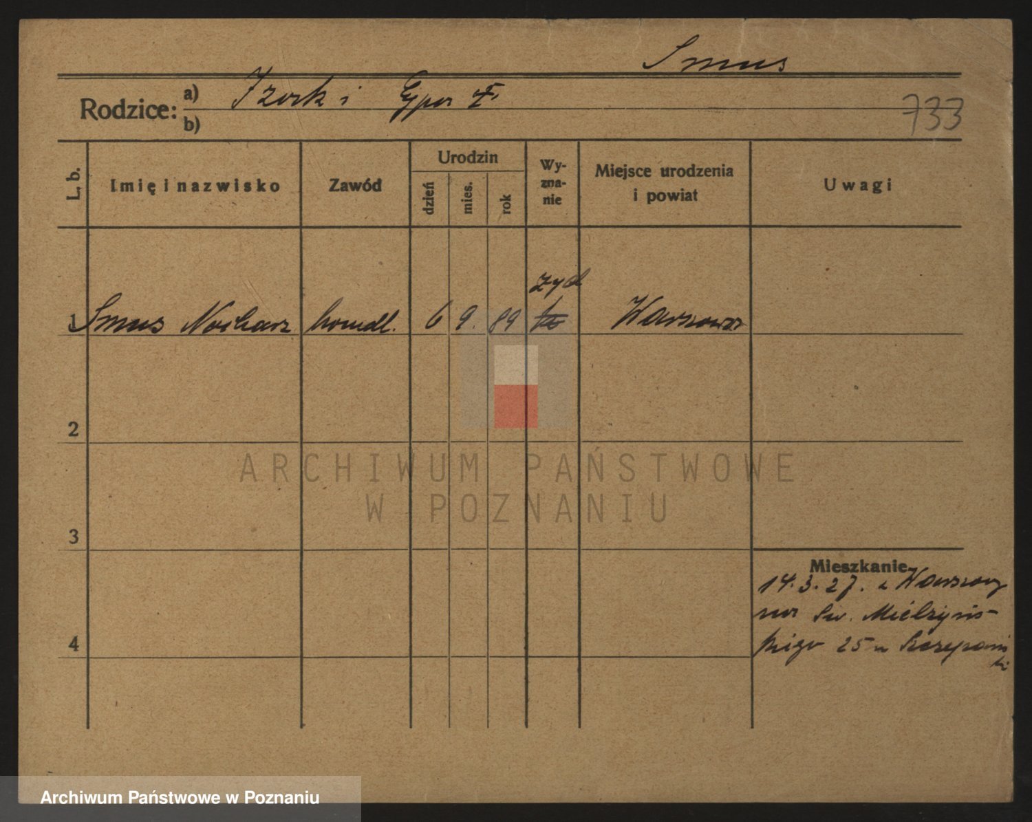 Podgląd karty osobowej dostępny jest po kliknięciu na nazwisko lub ikonkę karty. Można dokonywać powiększenia (ikony na górze) lub przechodzić między kolejnymi skanami (strzałki po bokach).