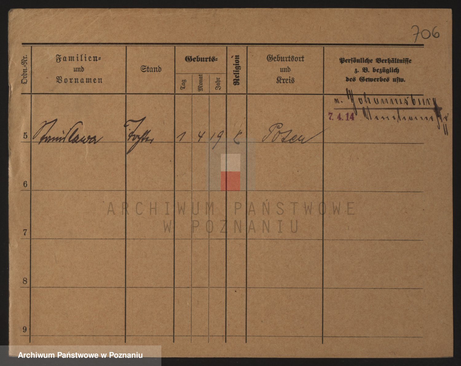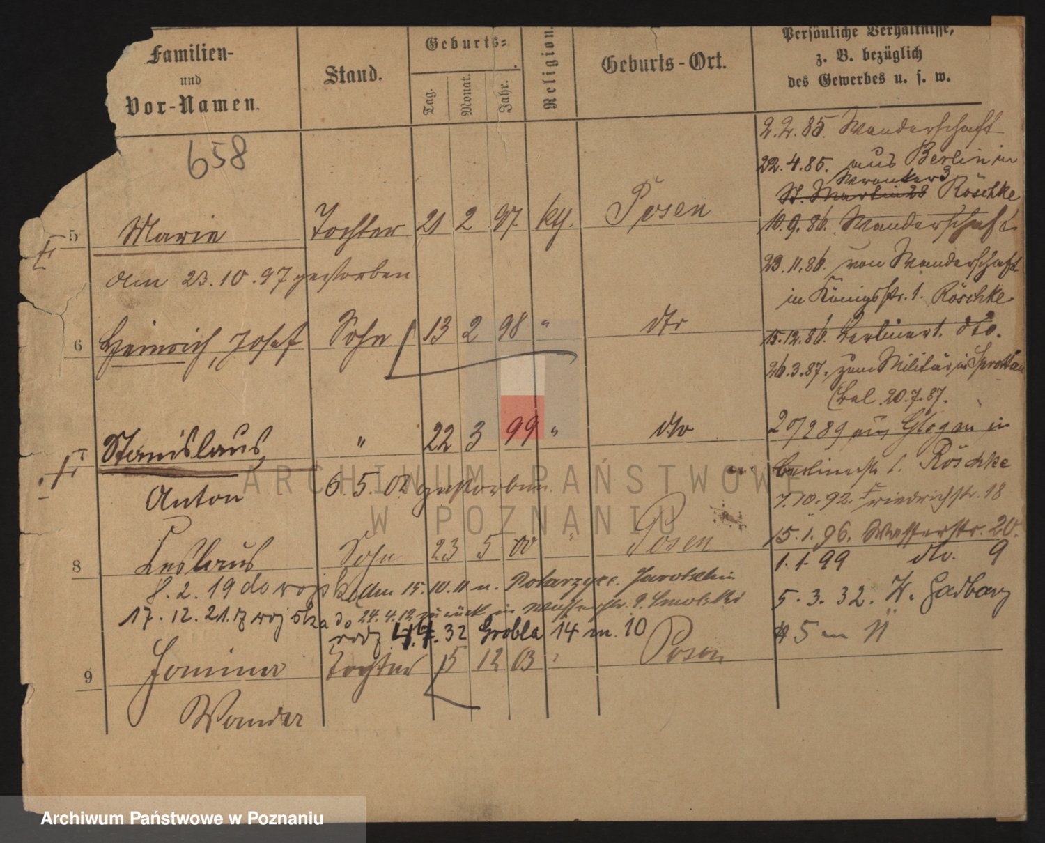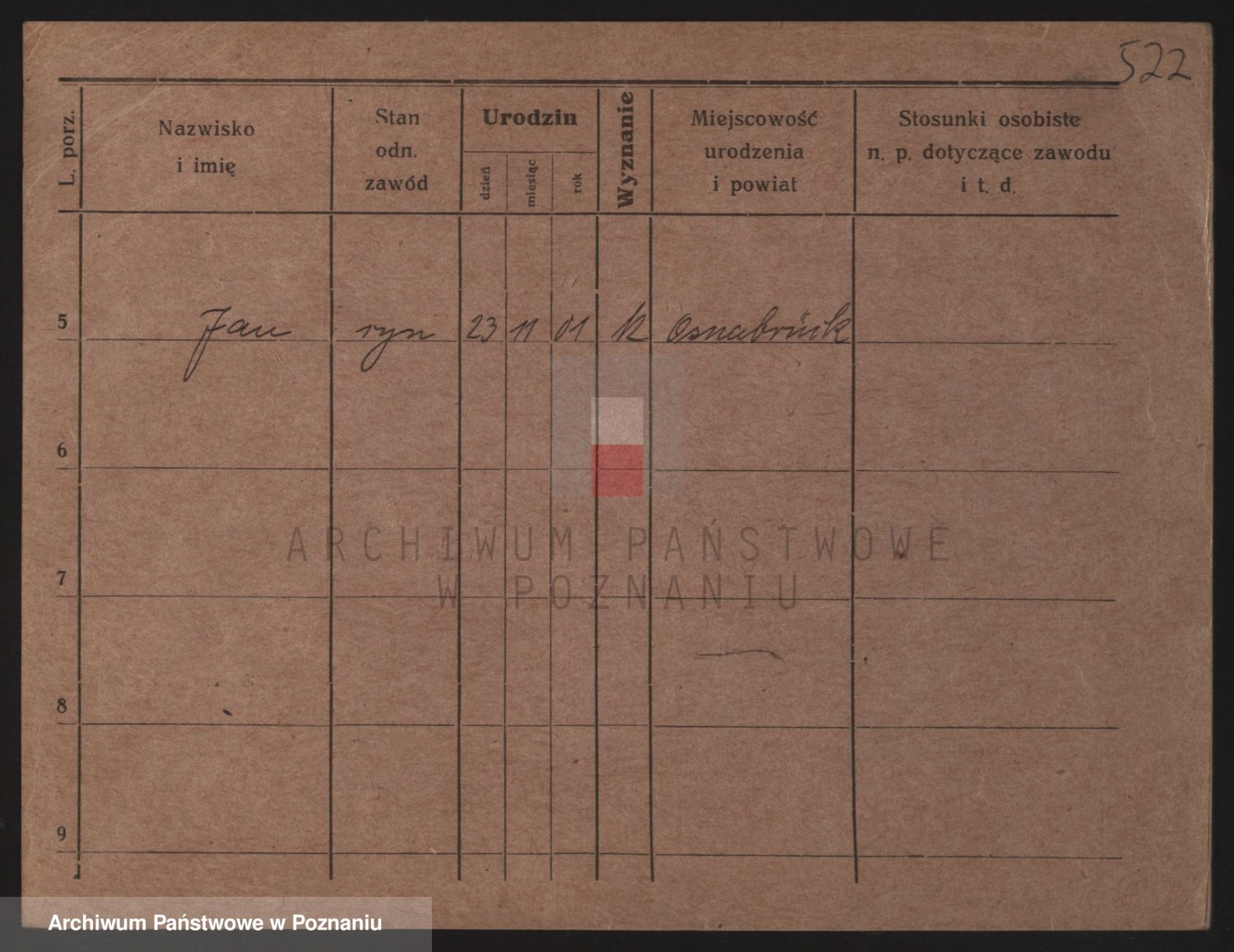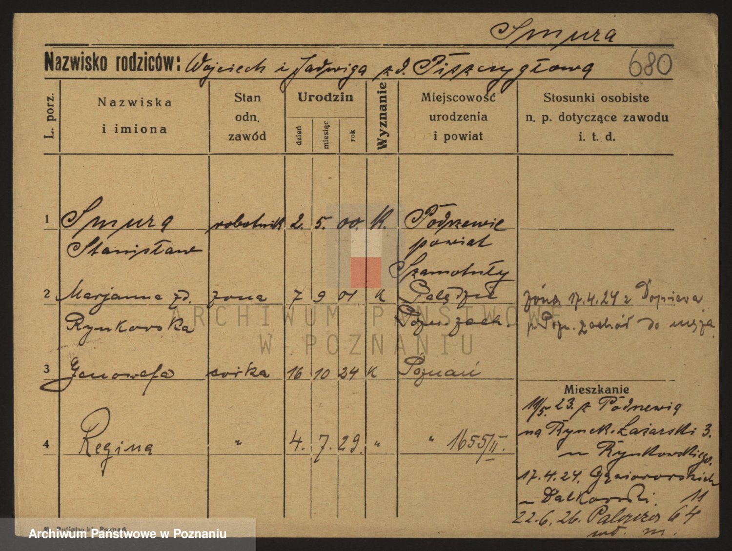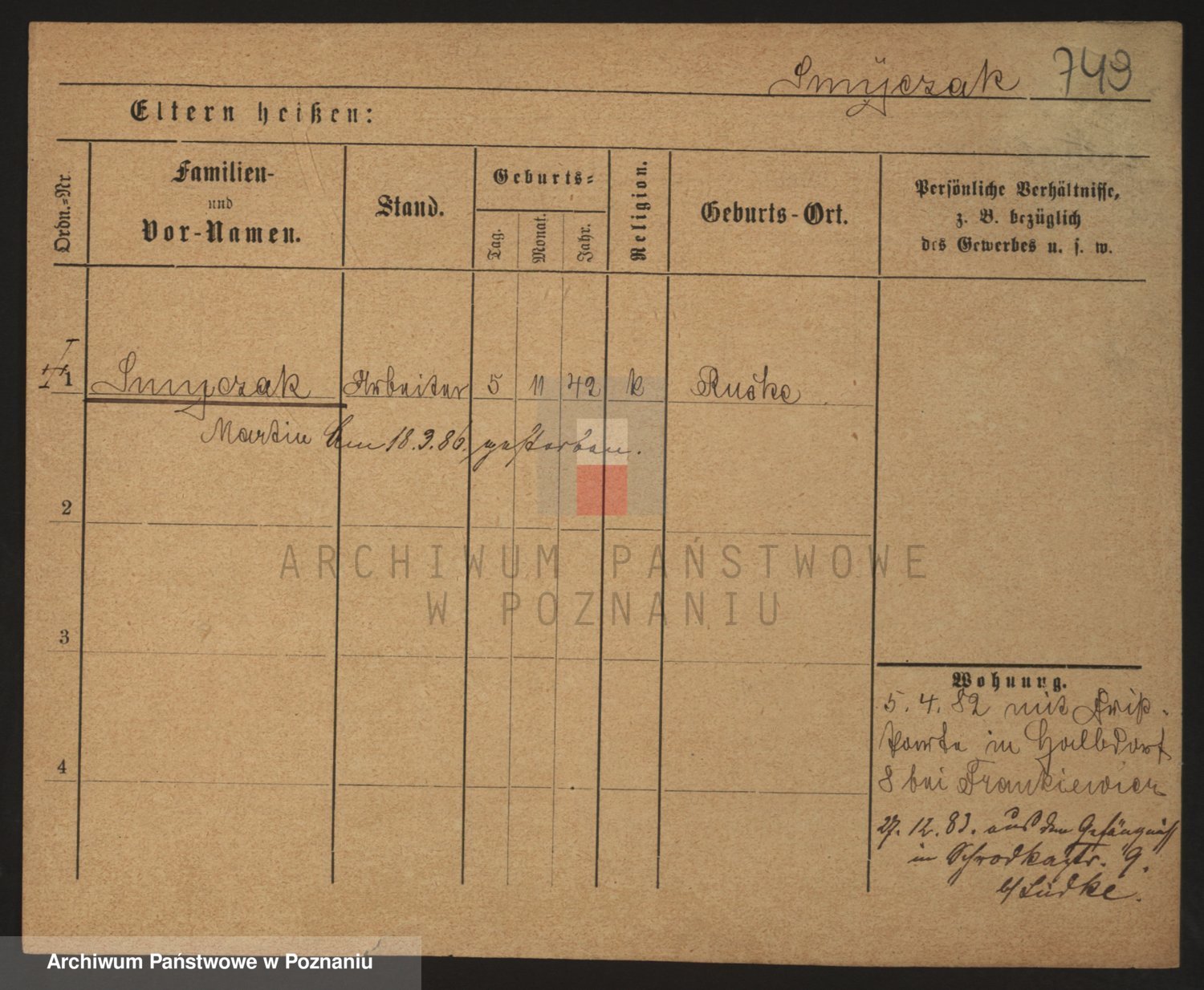 Podgląd karty osobowej dostępny jest po kliknięciu na nazwisko lub ikonkę karty. Można dokonywać powiększenia (ikony na górze) lub przechodzić między kolejnymi skanami (strzałki po bokach).