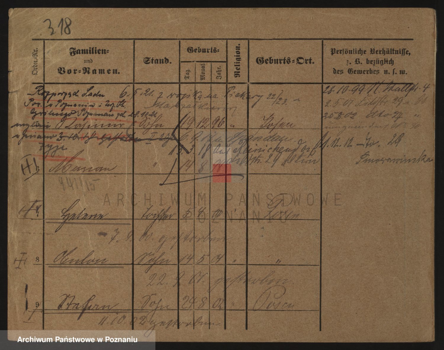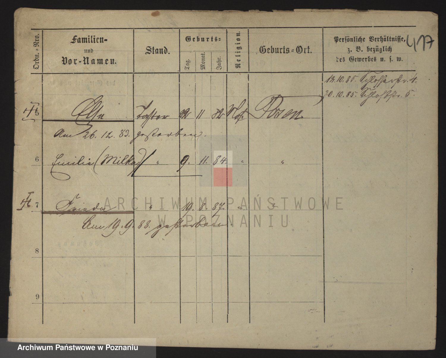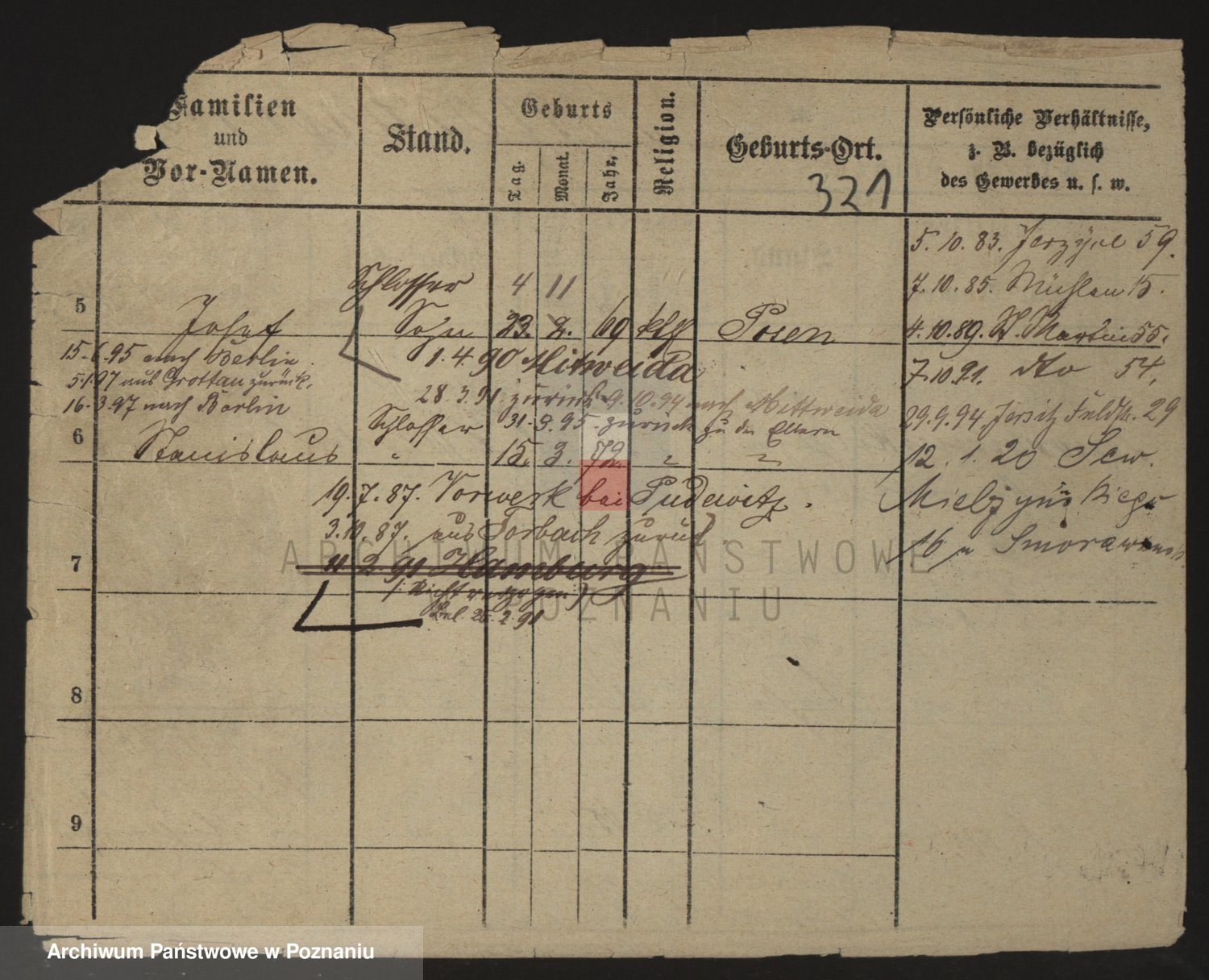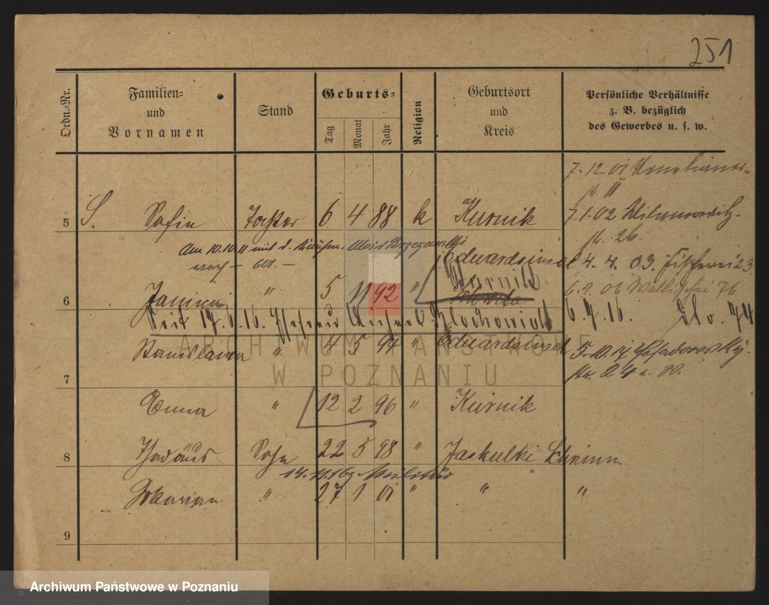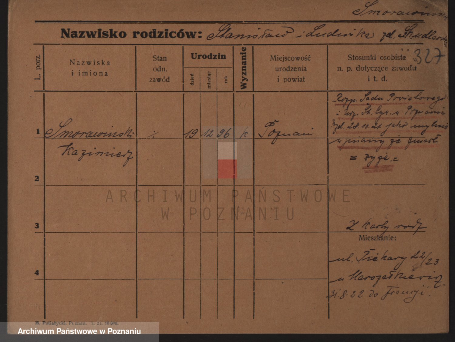 Podgląd karty osobowej dostępny jest po kliknięciu na nazwisko lub ikonkę karty. Można dokonywać powiększenia (ikony na górze) lub przechodzić między kolejnymi skanami (strzałki po bokach).