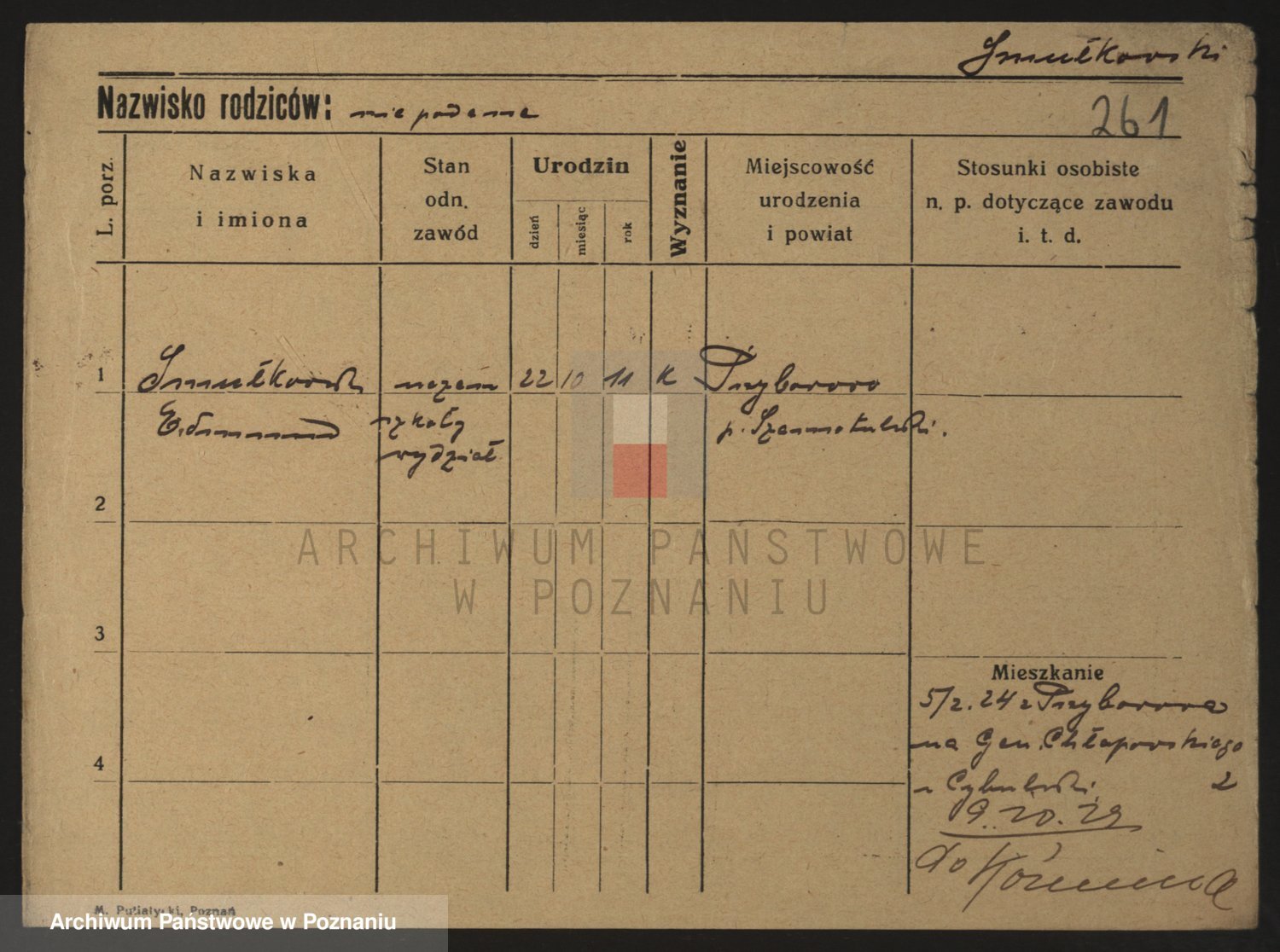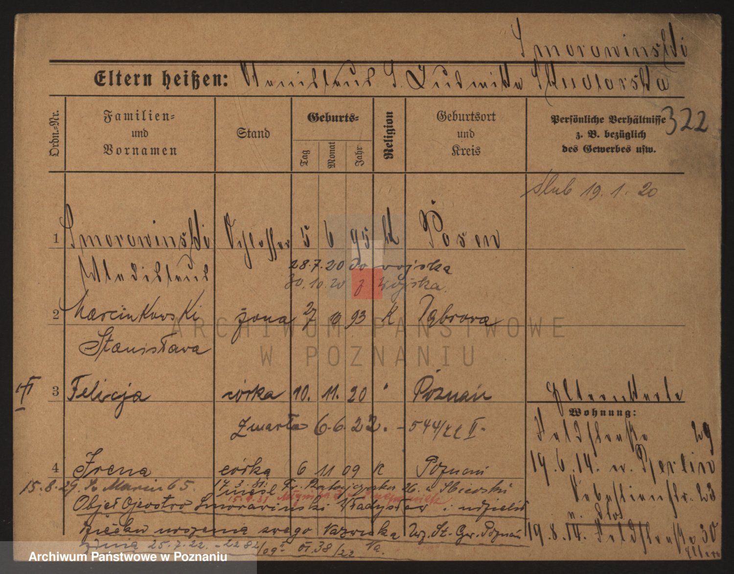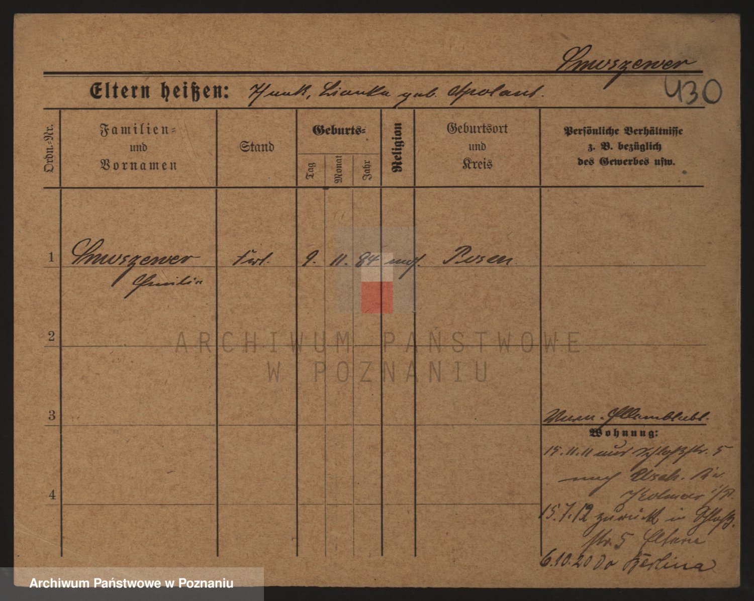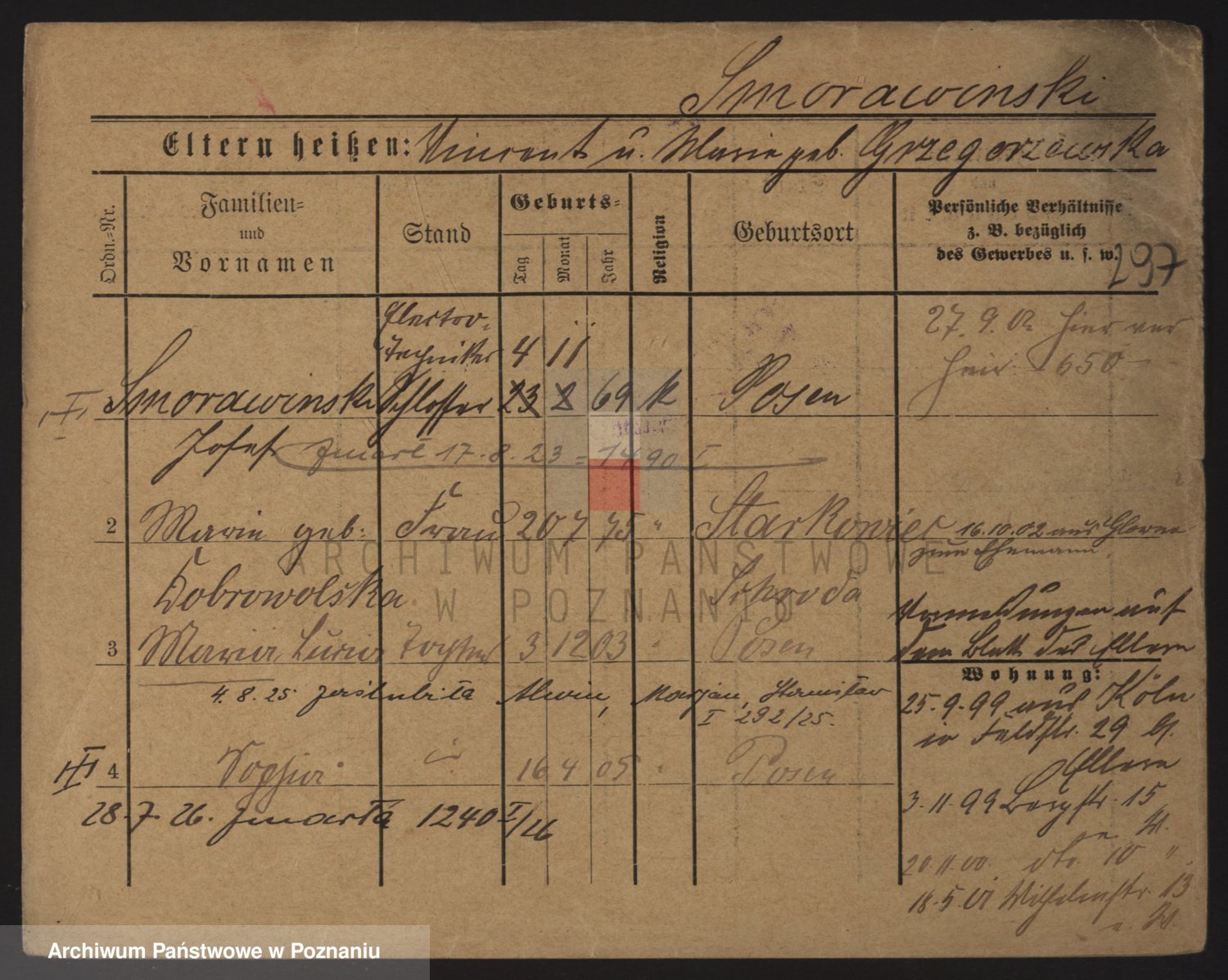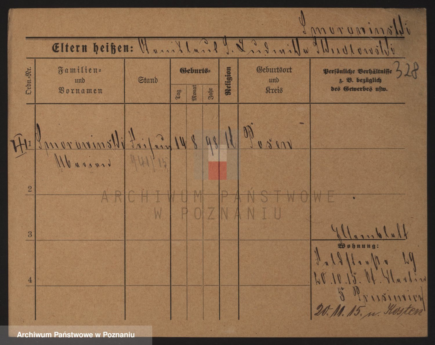 Podgląd karty osobowej dostępny jest po kliknięciu na nazwisko lub ikonkę karty. Można dokonywać powiększenia (ikony na górze) lub przechodzić między kolejnymi skanami (strzałki po bokach).