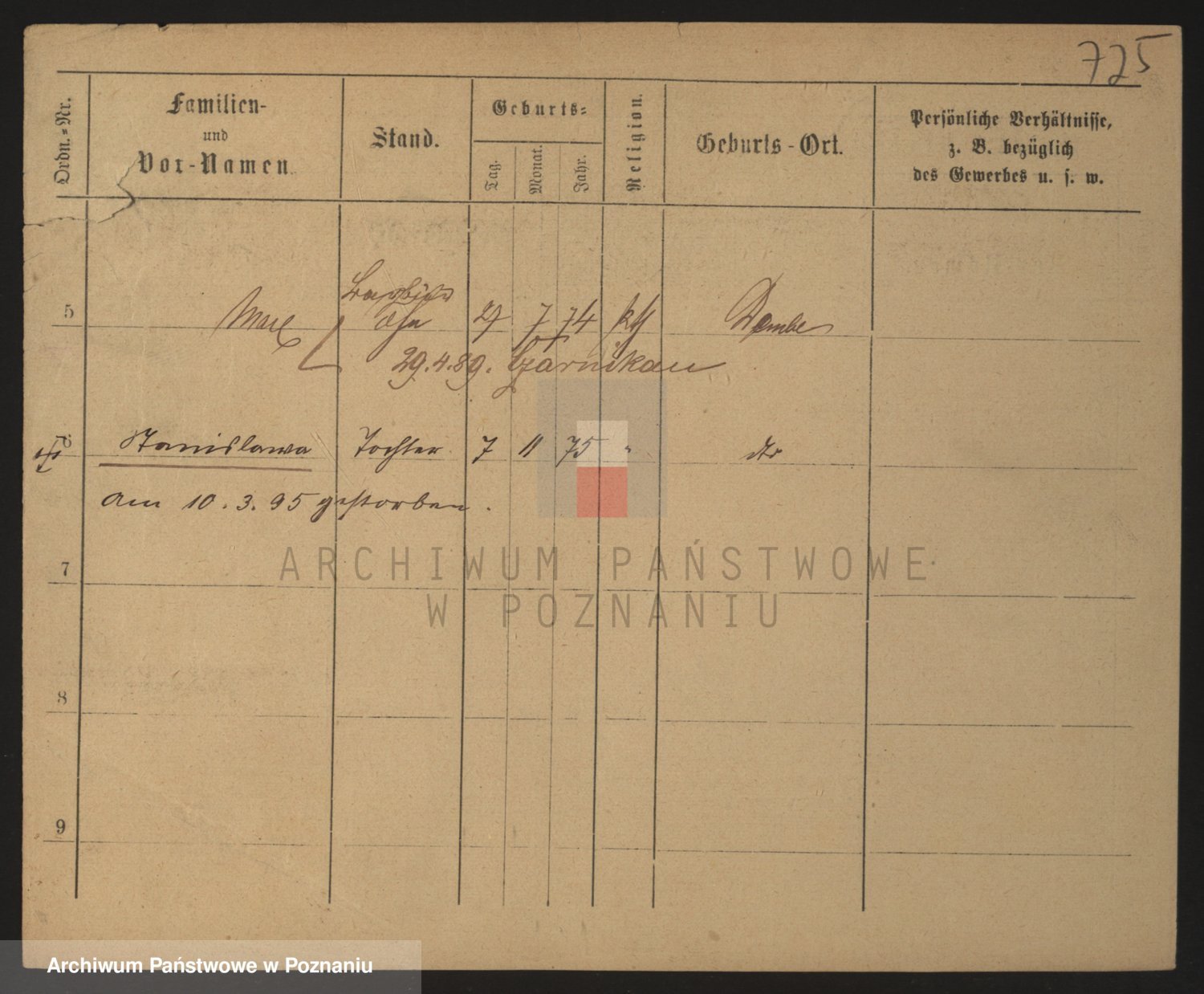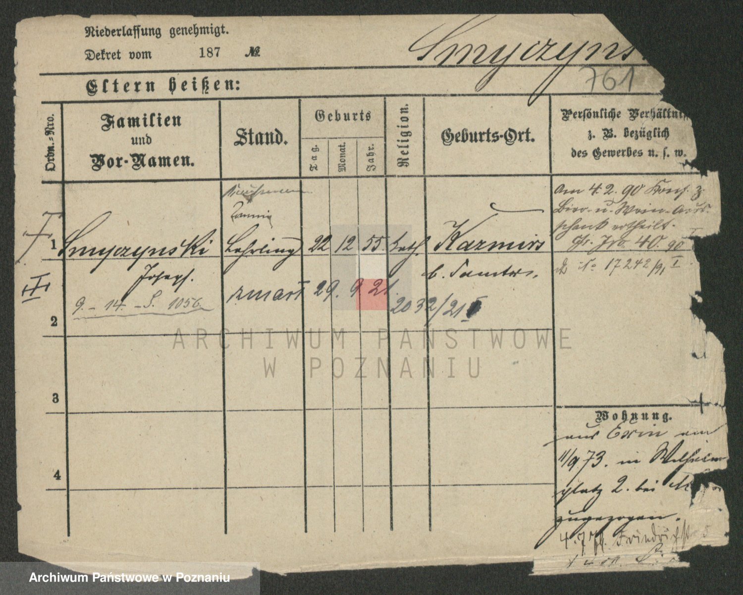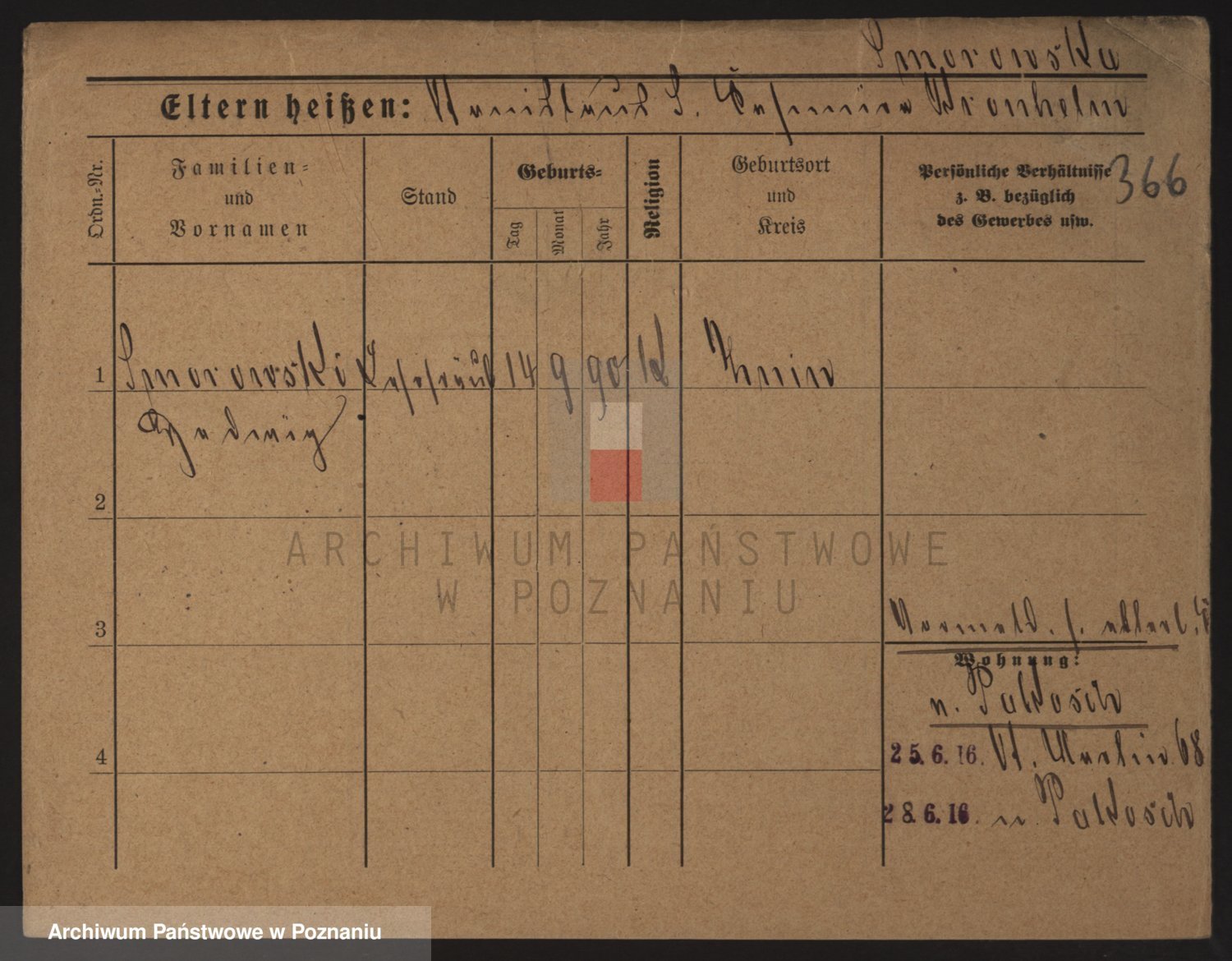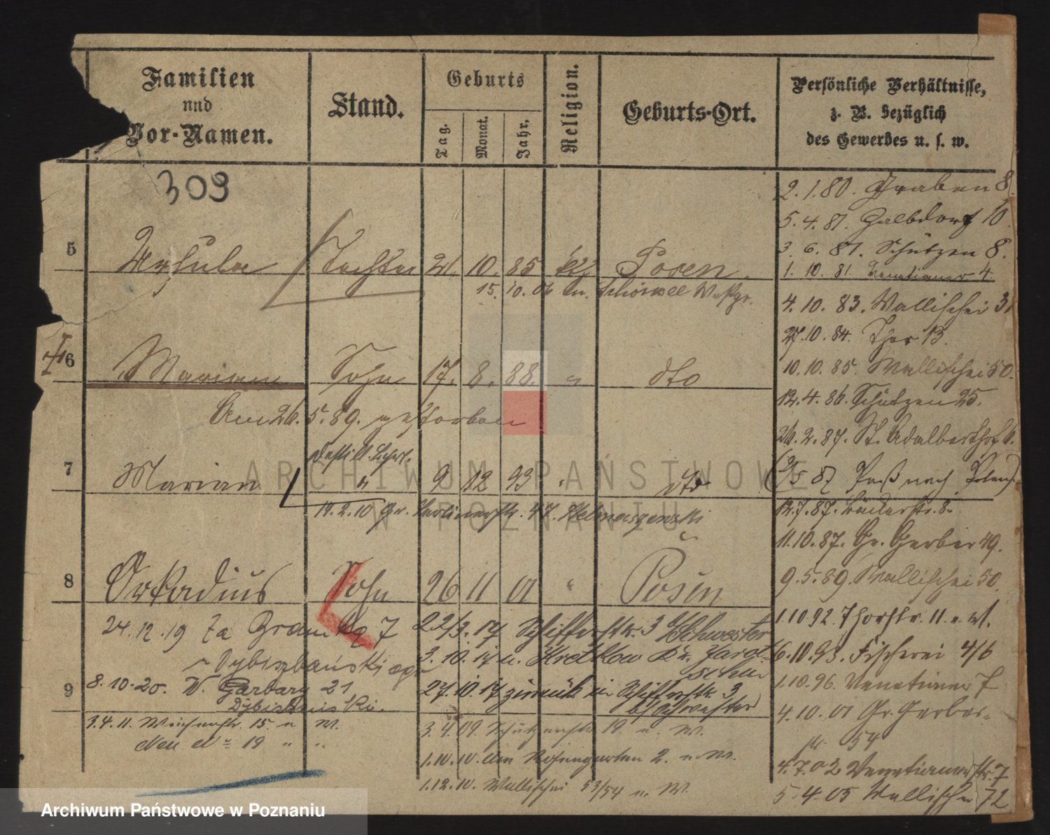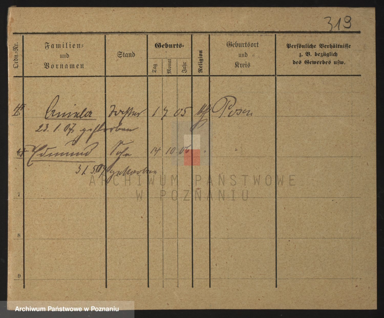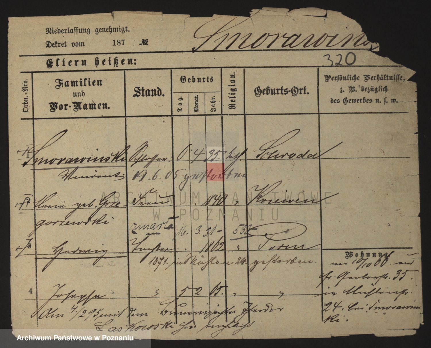 Podgląd karty osobowej dostępny jest po kliknięciu na nazwisko lub ikonkę karty. Można dokonywać powiększenia (ikony na górze) lub przechodzić między kolejnymi skanami (strzałki po bokach).