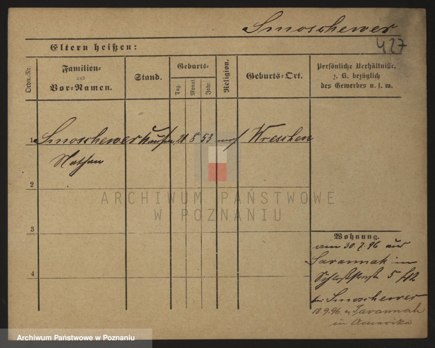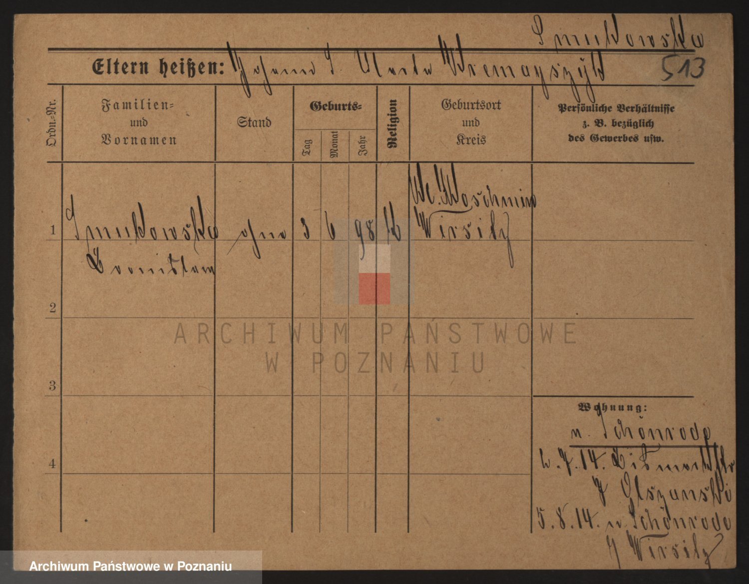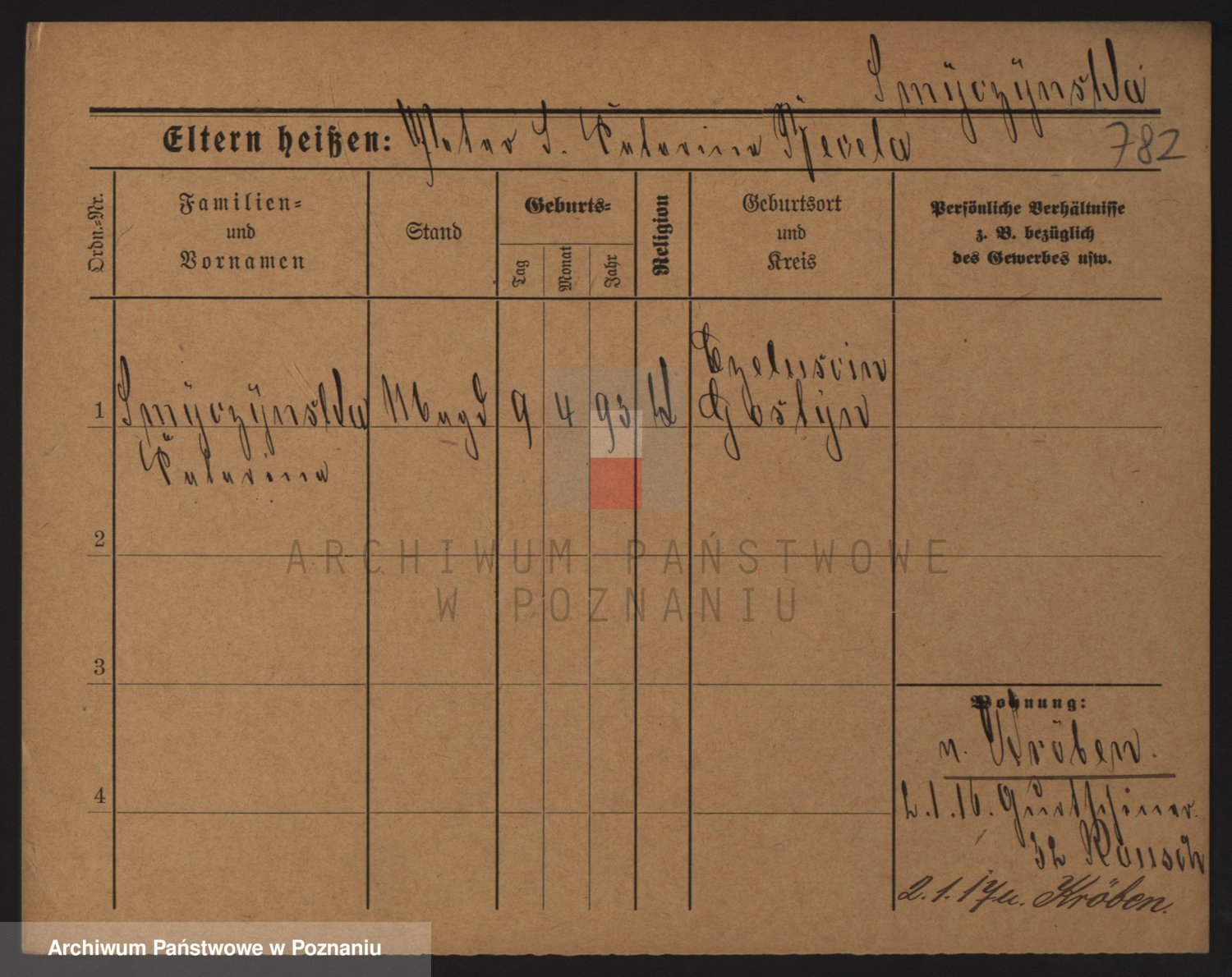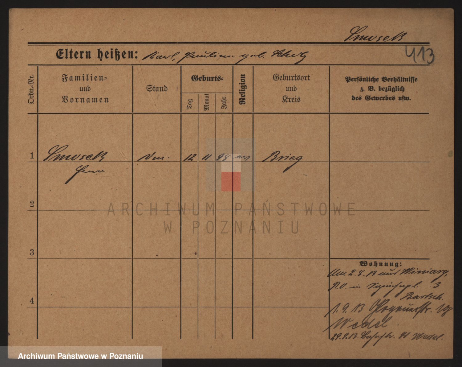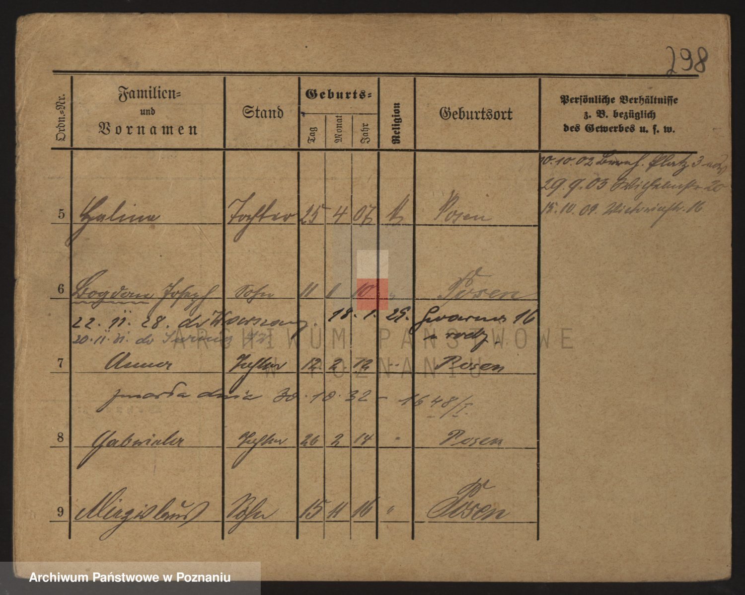 Podgląd karty osobowej dostępny jest po kliknięciu na nazwisko lub ikonkę karty. Można dokonywać powiększenia (ikony na górze) lub przechodzić między kolejnymi skanami (strzałki po bokach).