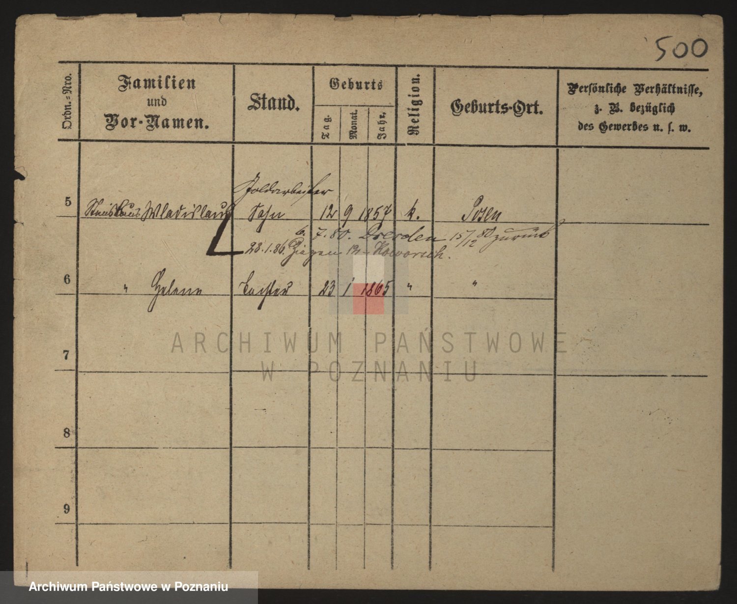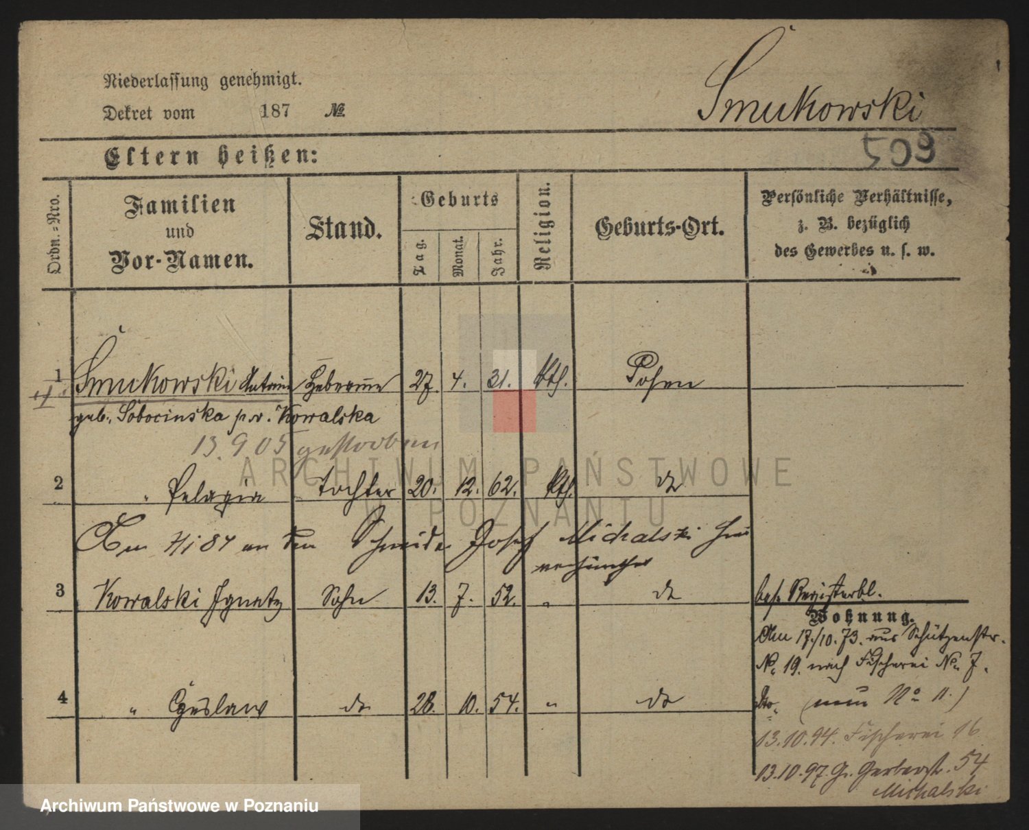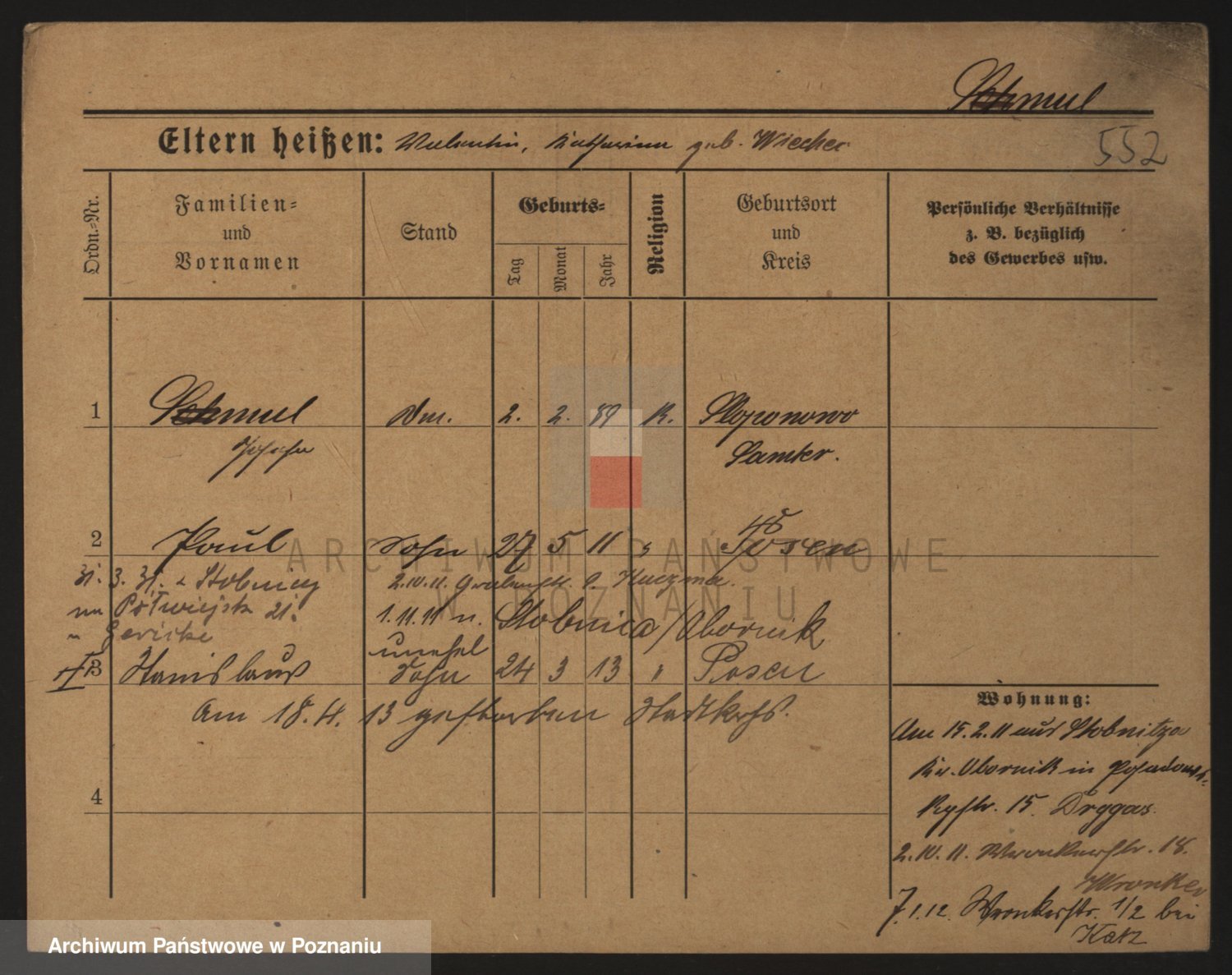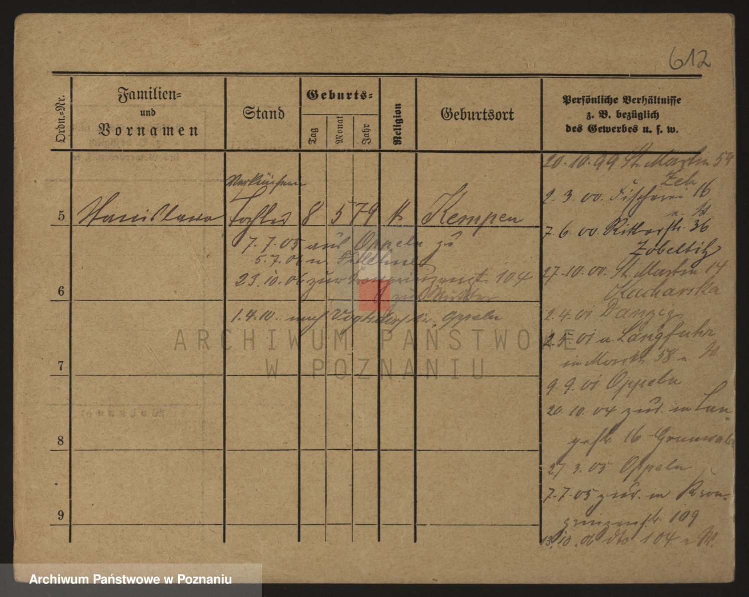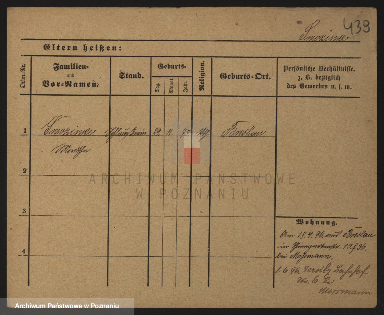 Podgląd karty osobowej dostępny jest po kliknięciu na nazwisko lub ikonkę karty. Można dokonywać powiększenia (ikony na górze) lub przechodzić między kolejnymi skanami (strzałki po bokach).