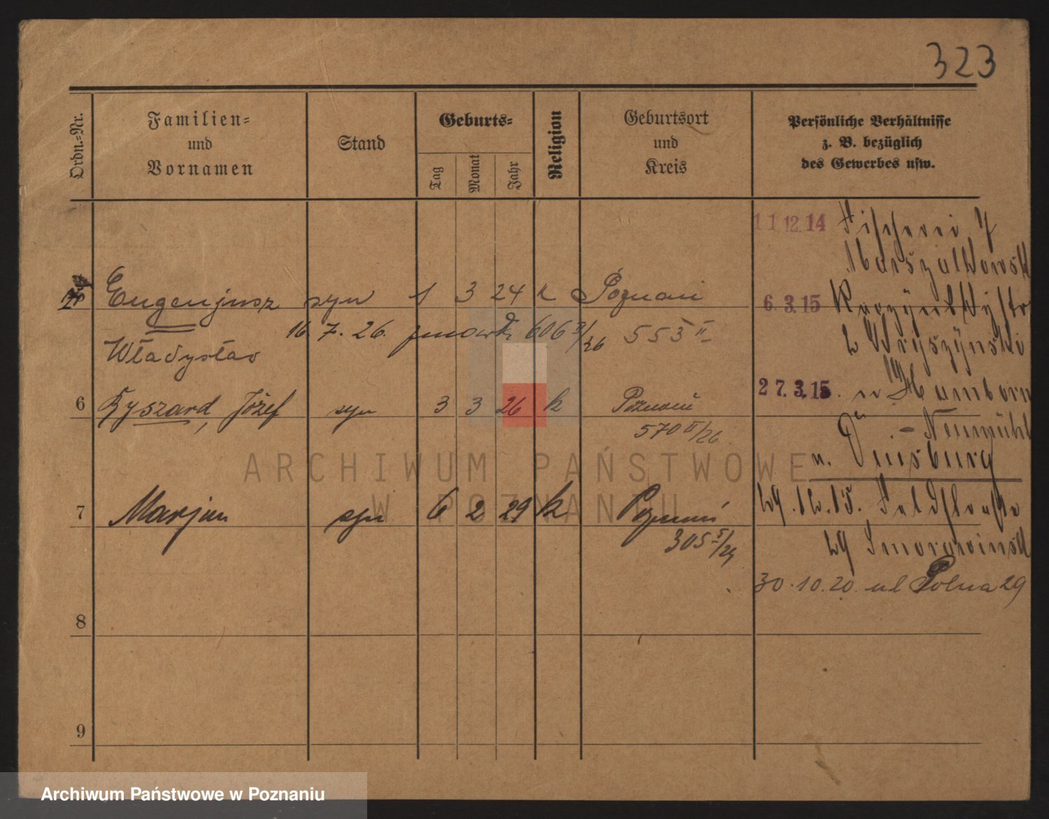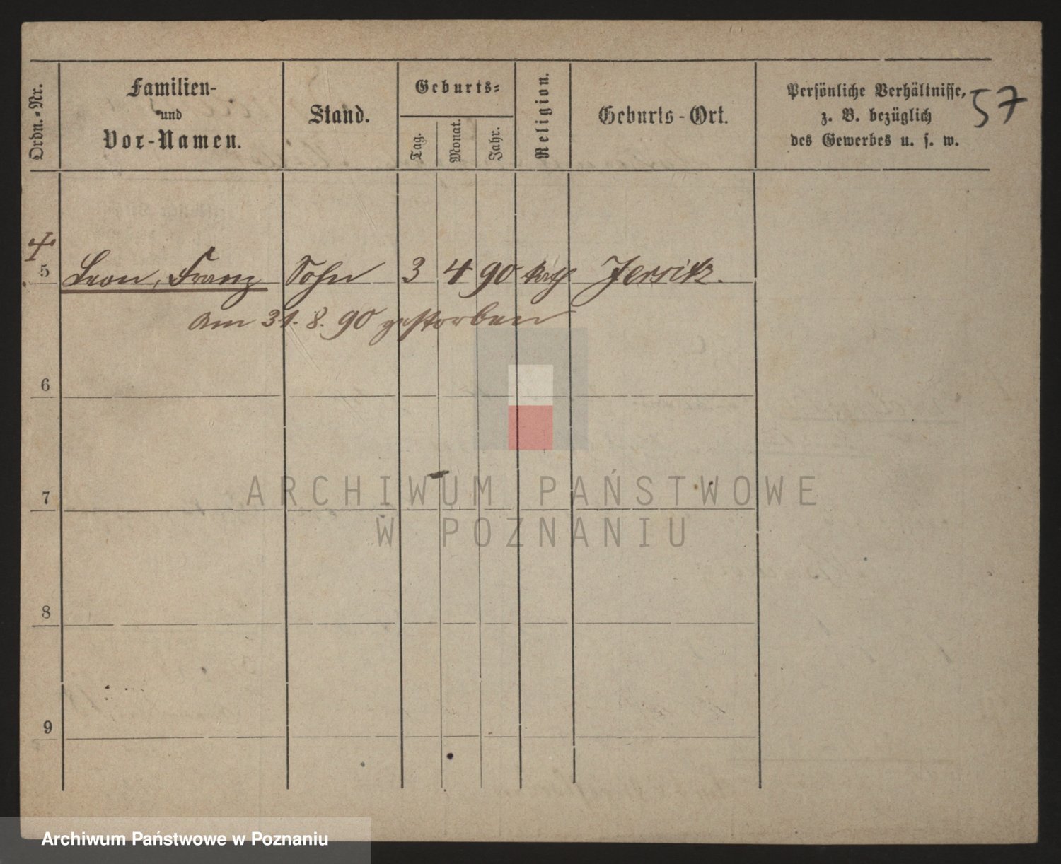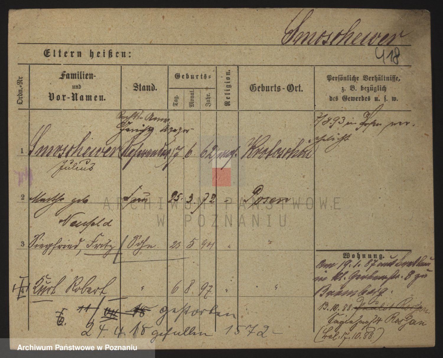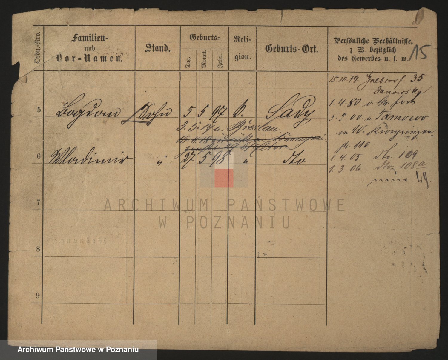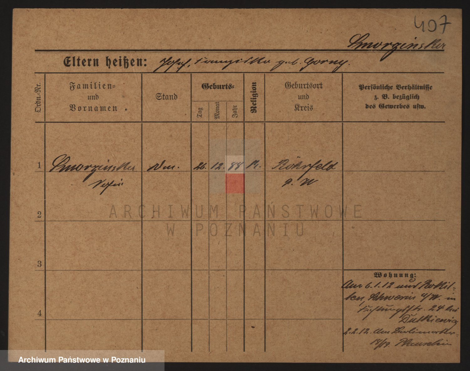 Podgląd karty osobowej dostępny jest po kliknięciu na nazwisko lub ikonkę karty. Można dokonywać powiększenia (ikony na górze) lub przechodzić między kolejnymi skanami (strzałki po bokach).