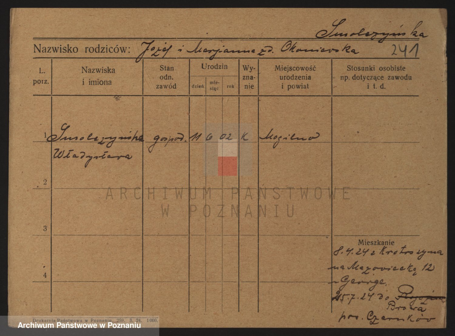 Smoliński z d. Kopka, Marja