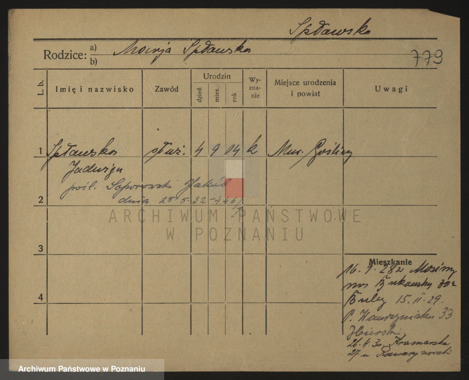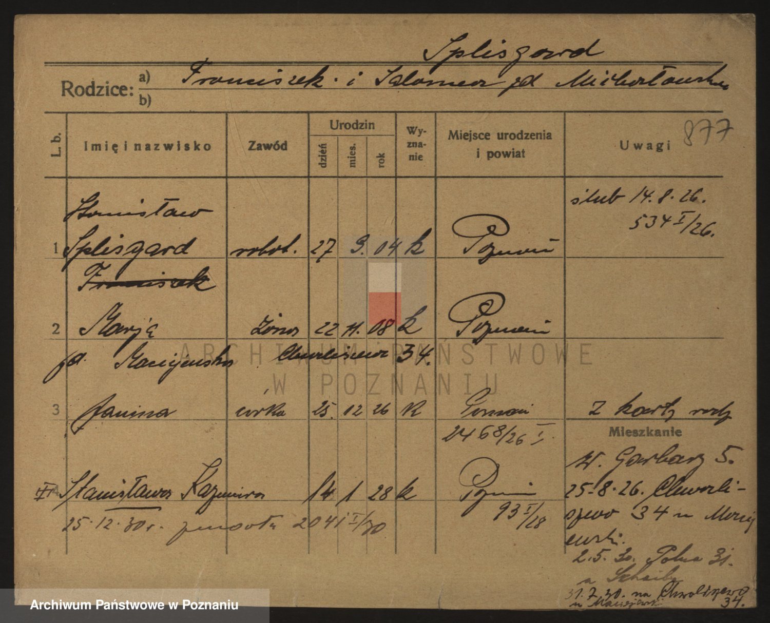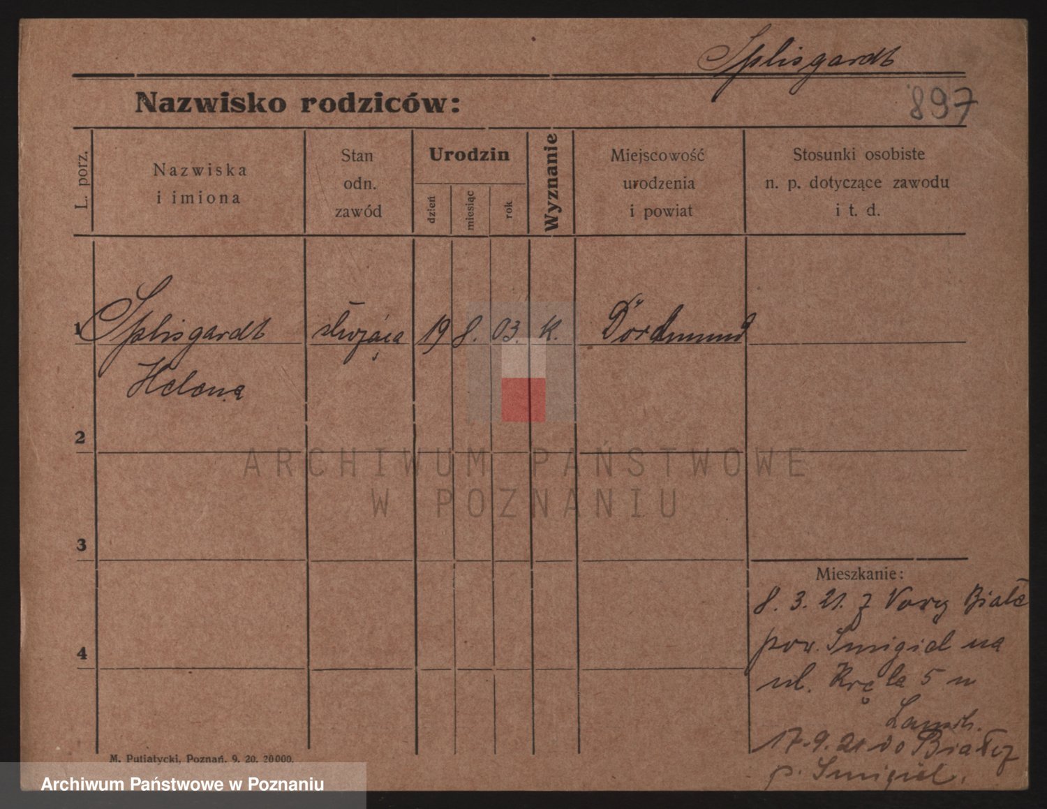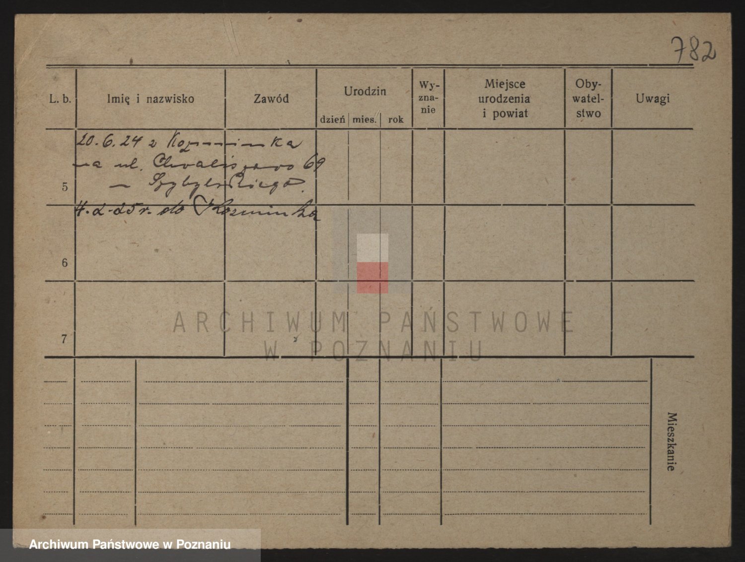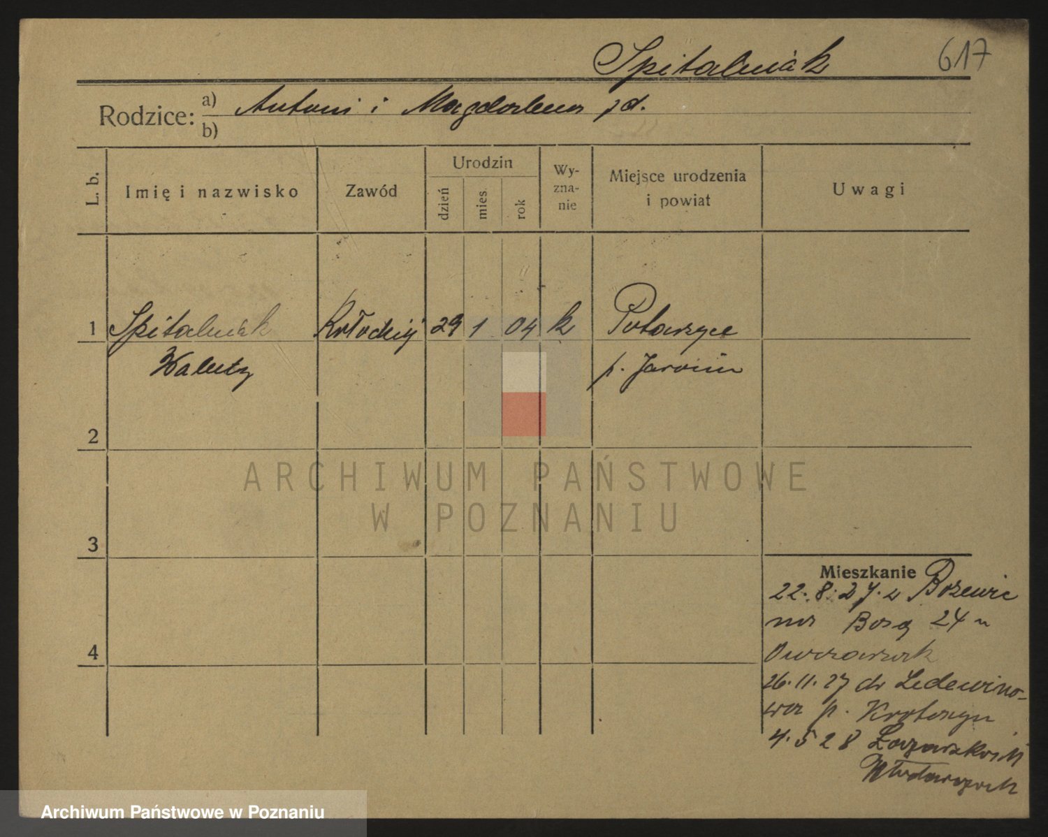 Podgląd karty osobowej dostępny jest po kliknięciu na nazwisko lub ikonkę karty. Można dokonywać powiększenia (ikony na górze) lub przechodzić między kolejnymi skanami (strzałki po bokach).