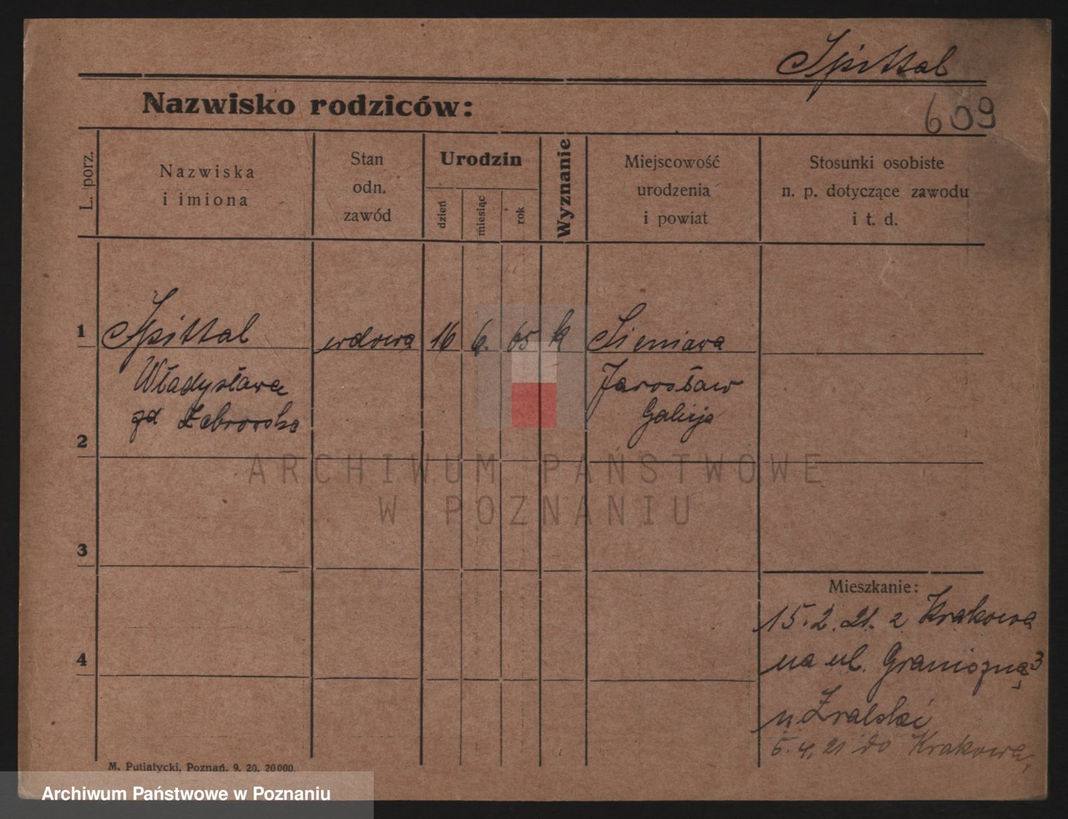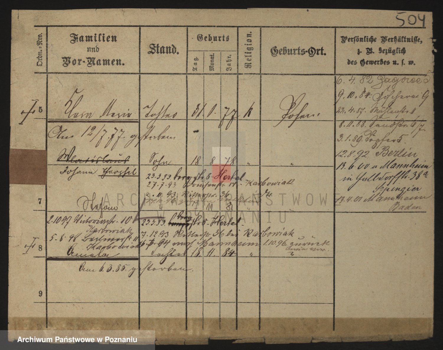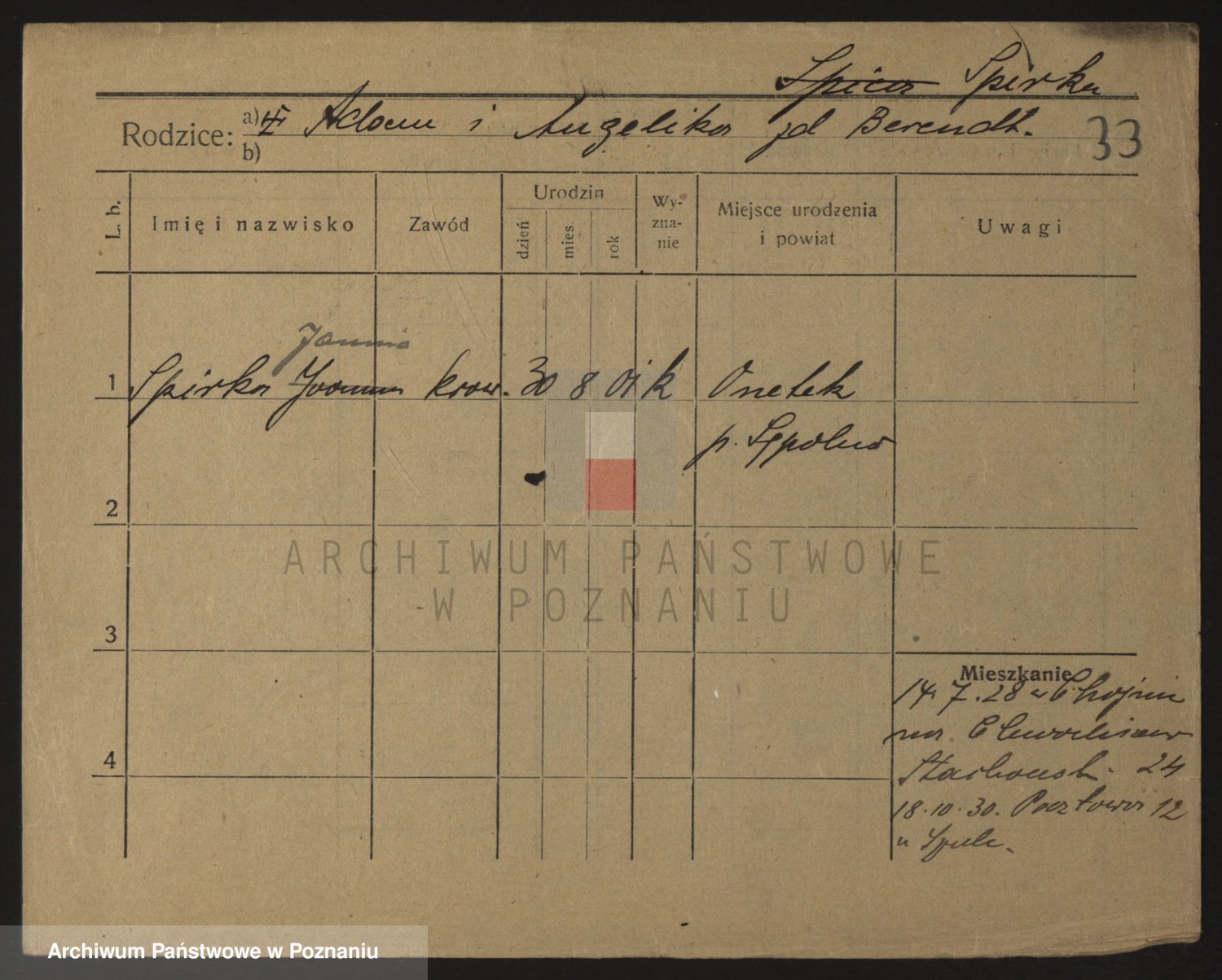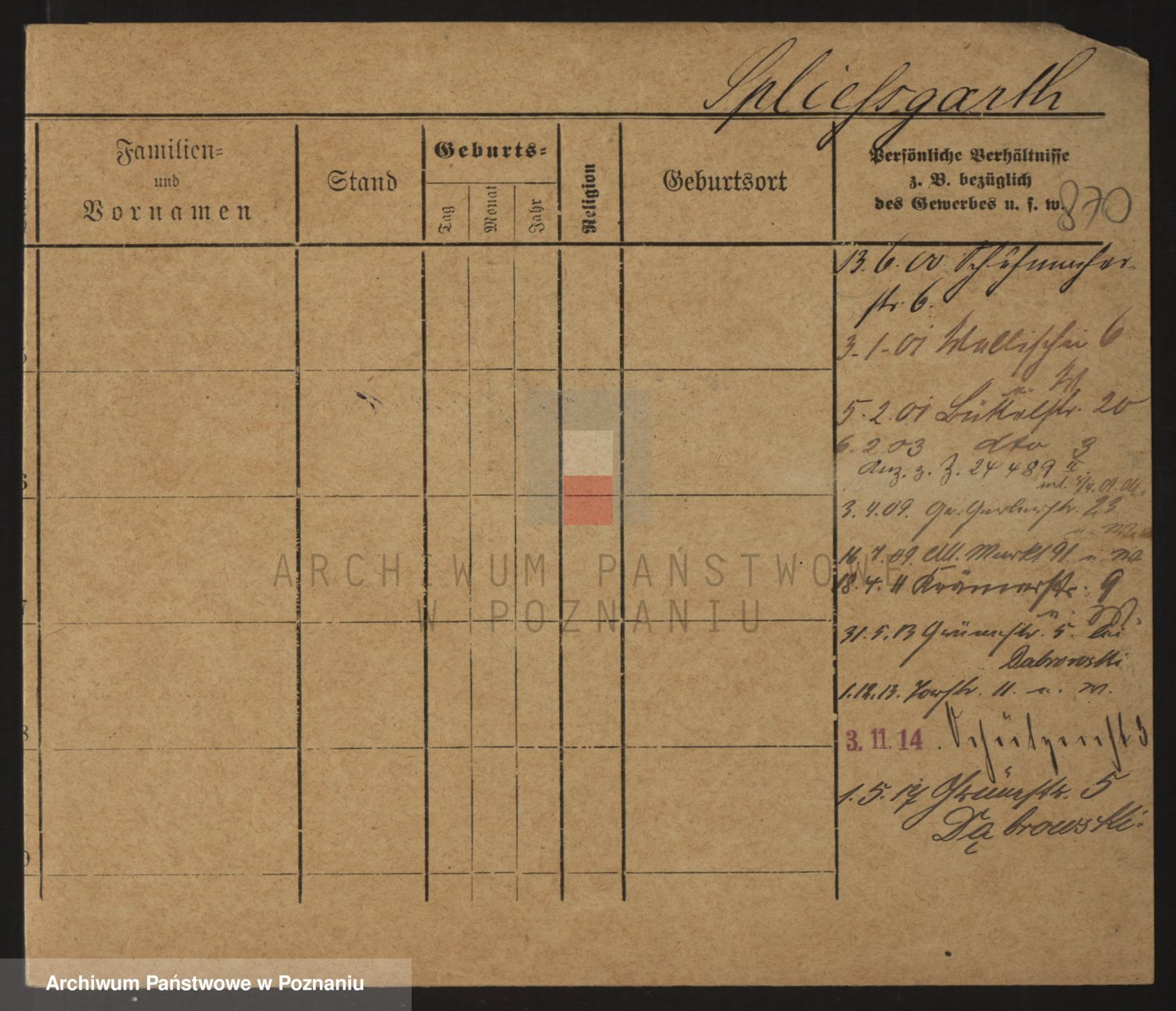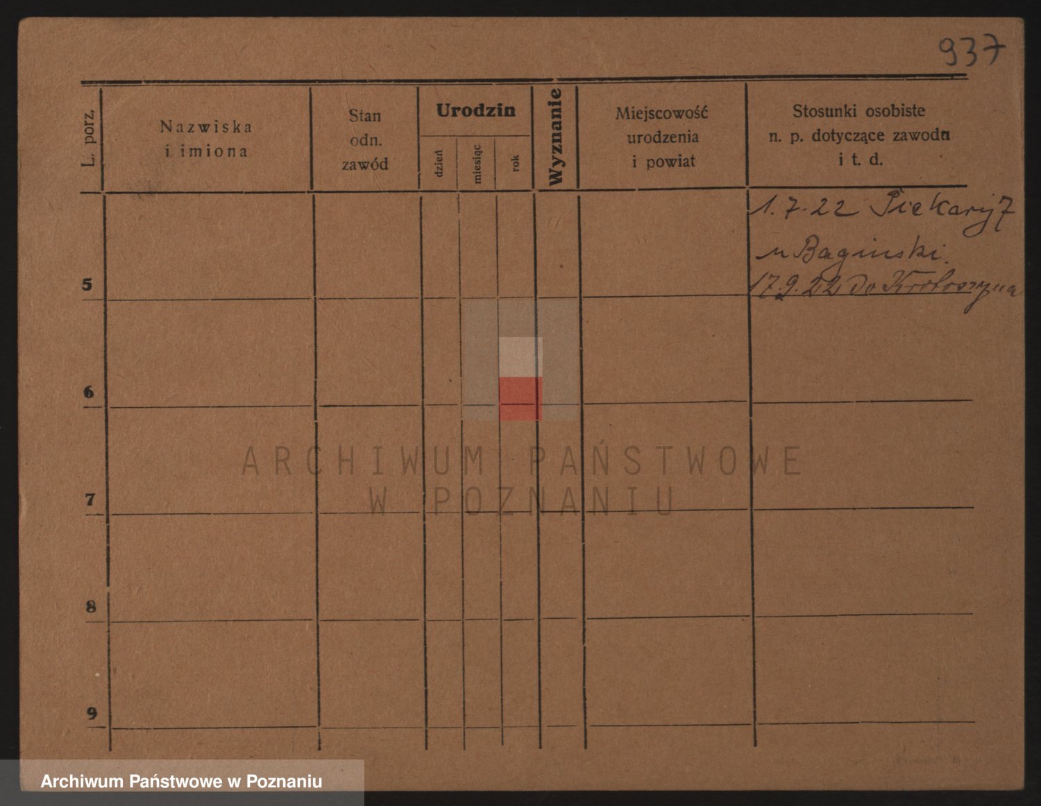 Podgląd karty osobowej dostępny jest po kliknięciu na nazwisko lub ikonkę karty. Można dokonywać powiększenia (ikony na górze) lub przechodzić między kolejnymi skanami (strzałki po bokach).