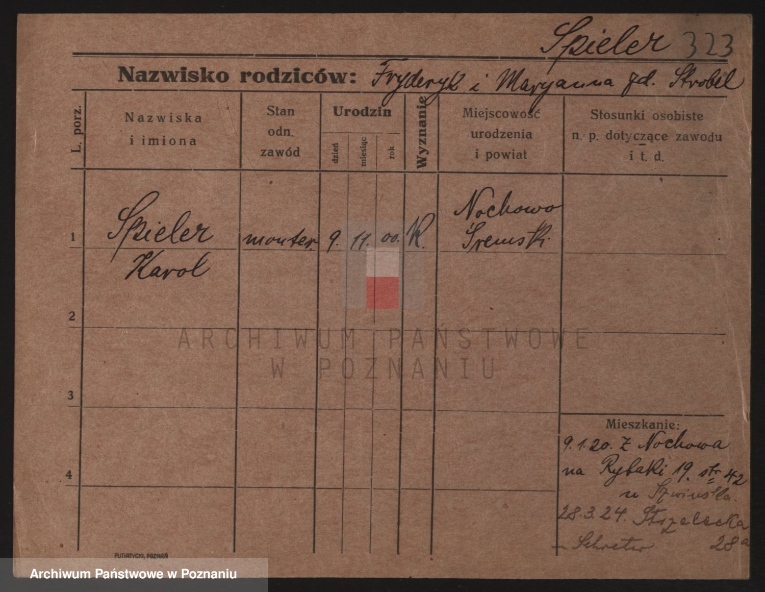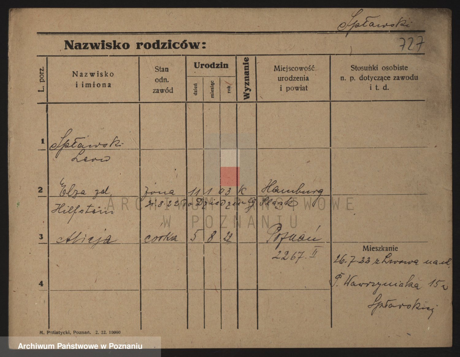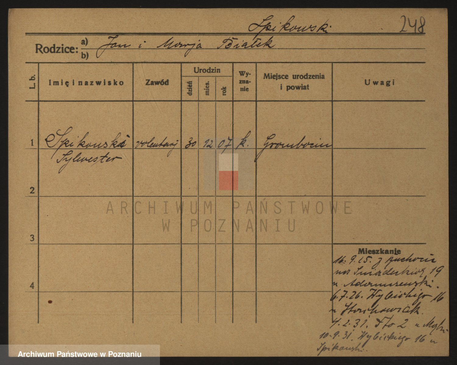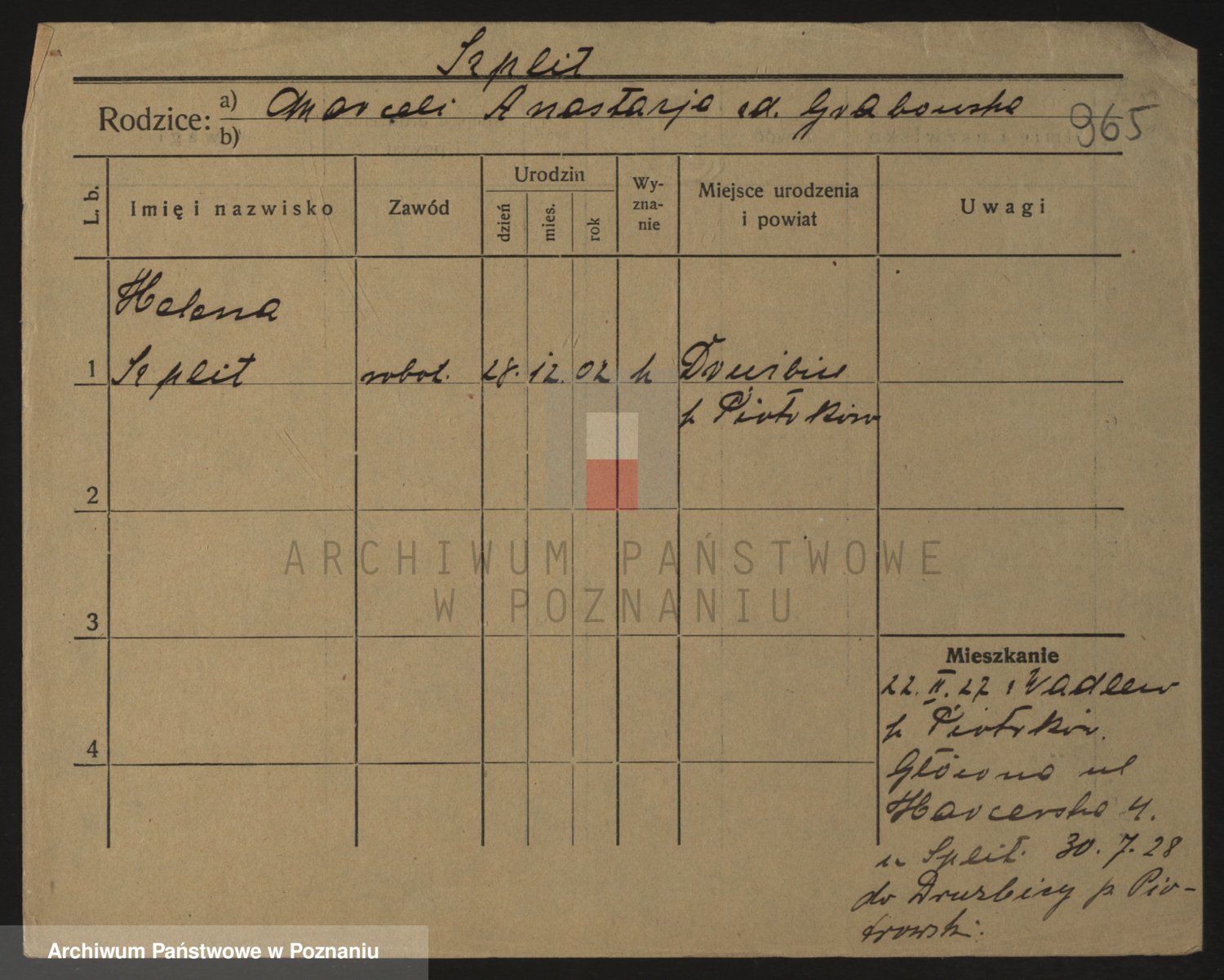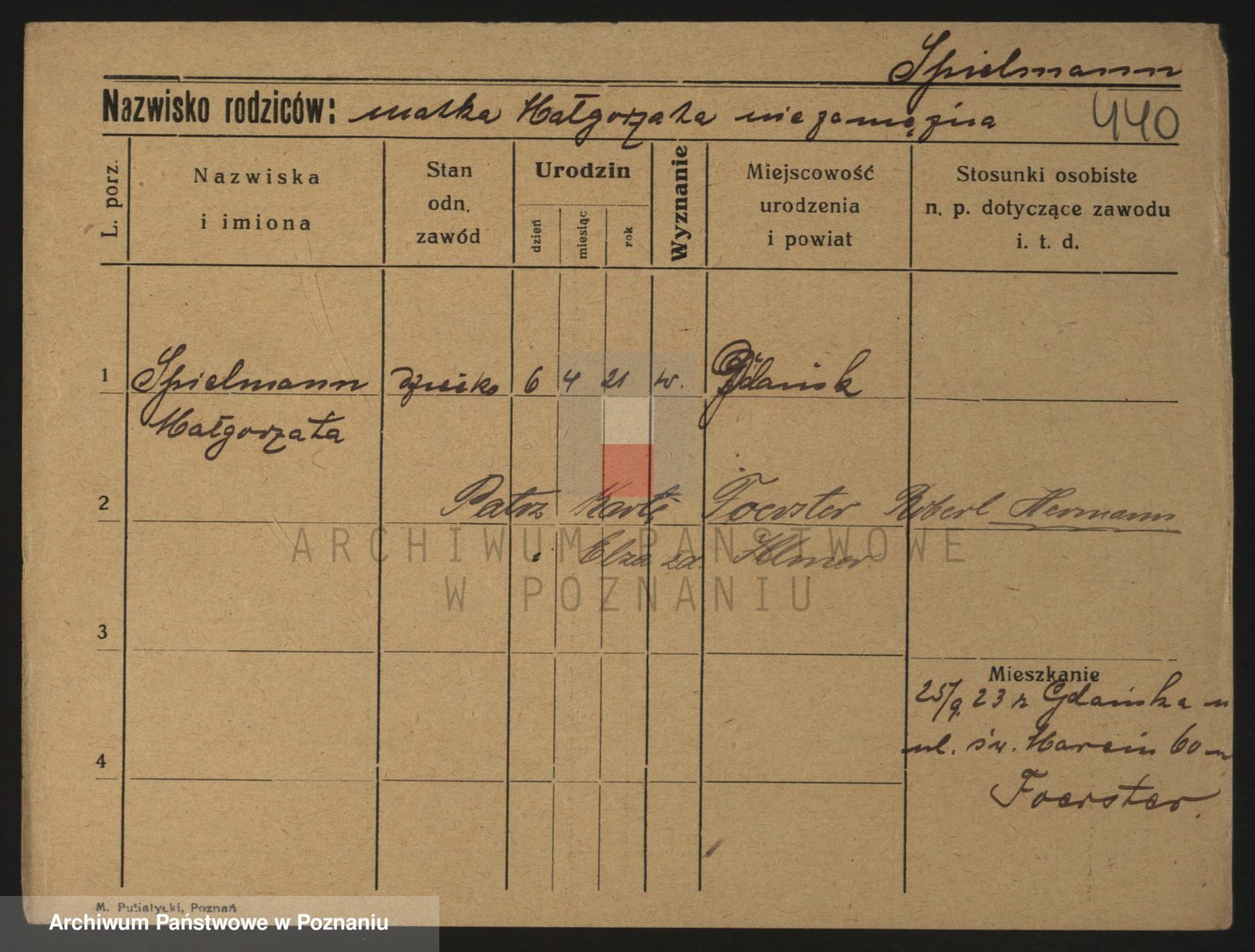 Podgląd karty osobowej dostępny jest po kliknięciu na nazwisko lub ikonkę karty. Można dokonywać powiększenia (ikony na górze) lub przechodzić między kolejnymi skanami (strzałki po bokach).