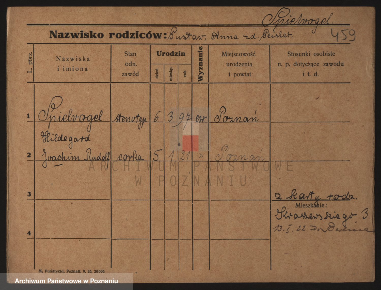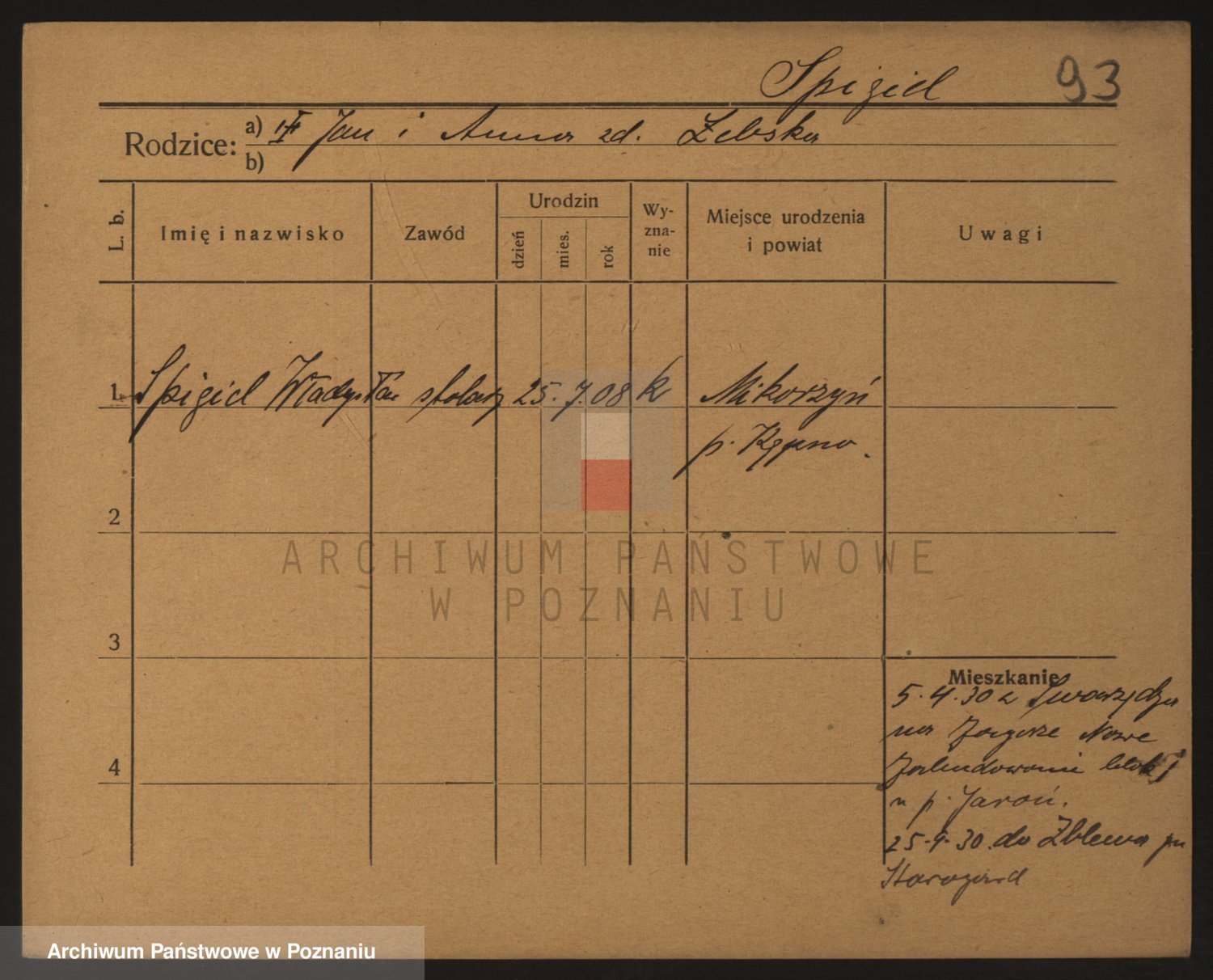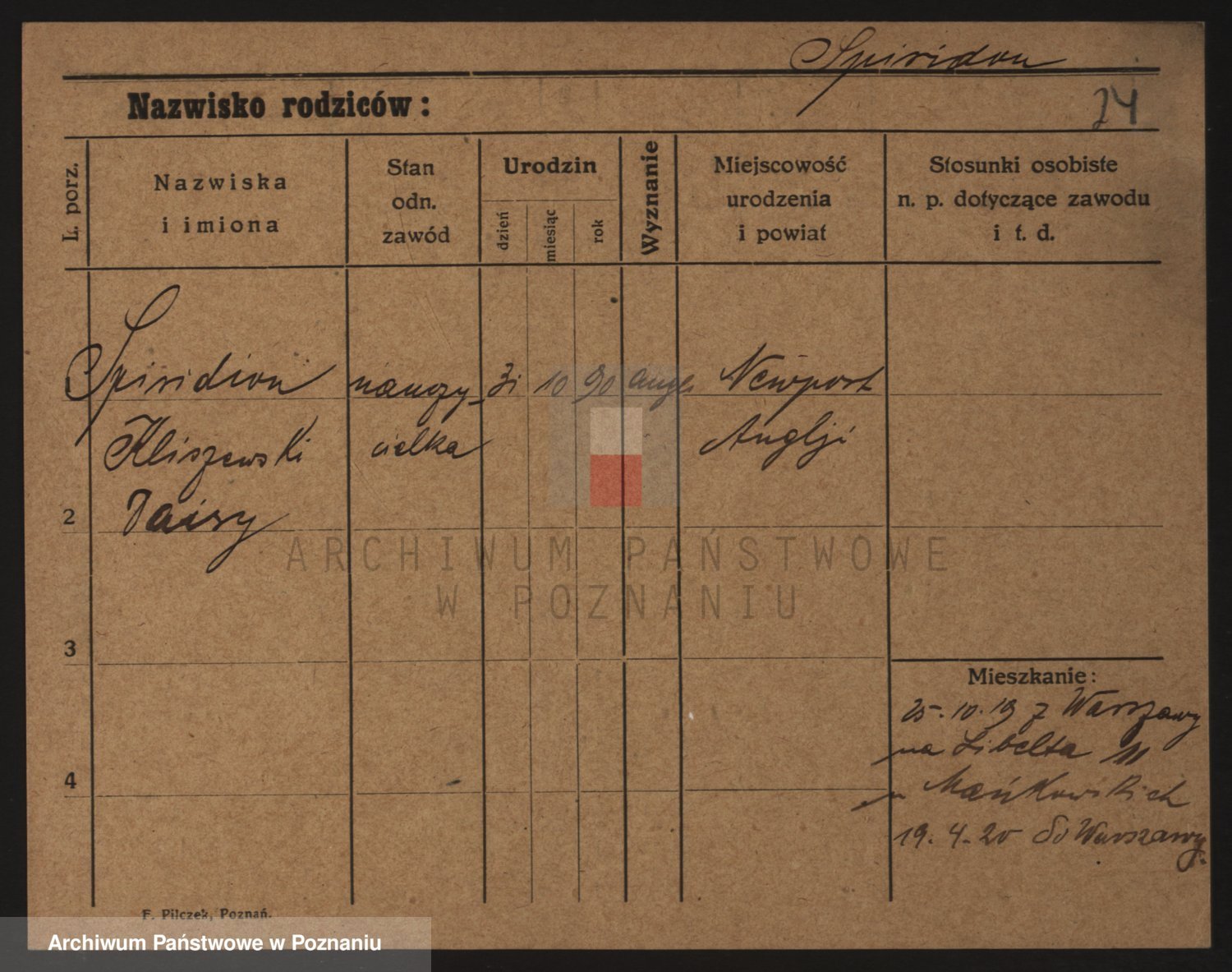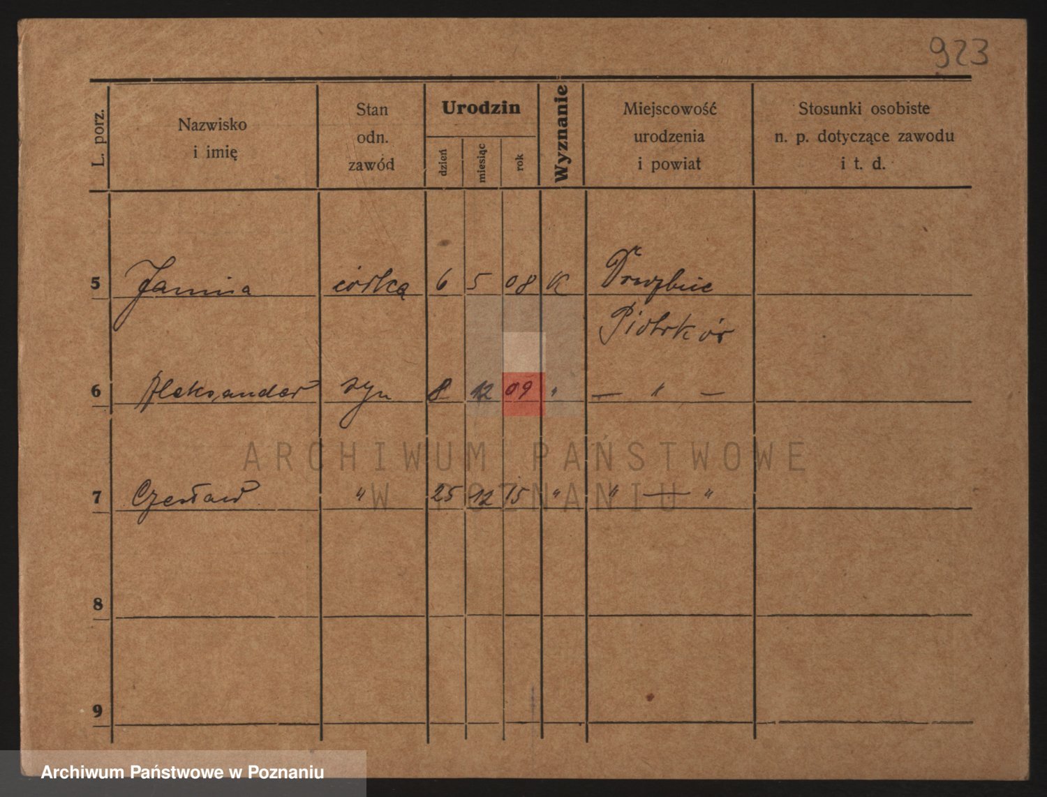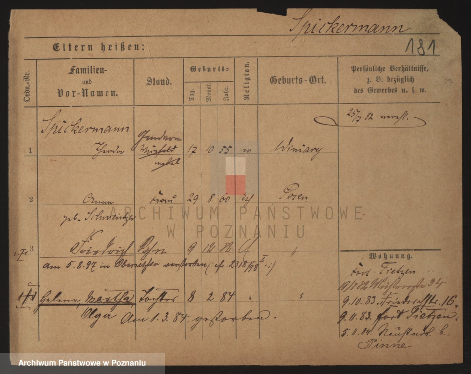 Podgląd karty osobowej dostępny jest po kliknięciu na nazwisko lub ikonkę karty. Można dokonywać powiększenia (ikony na górze) lub przechodzić między kolejnymi skanami (strzałki po bokach).