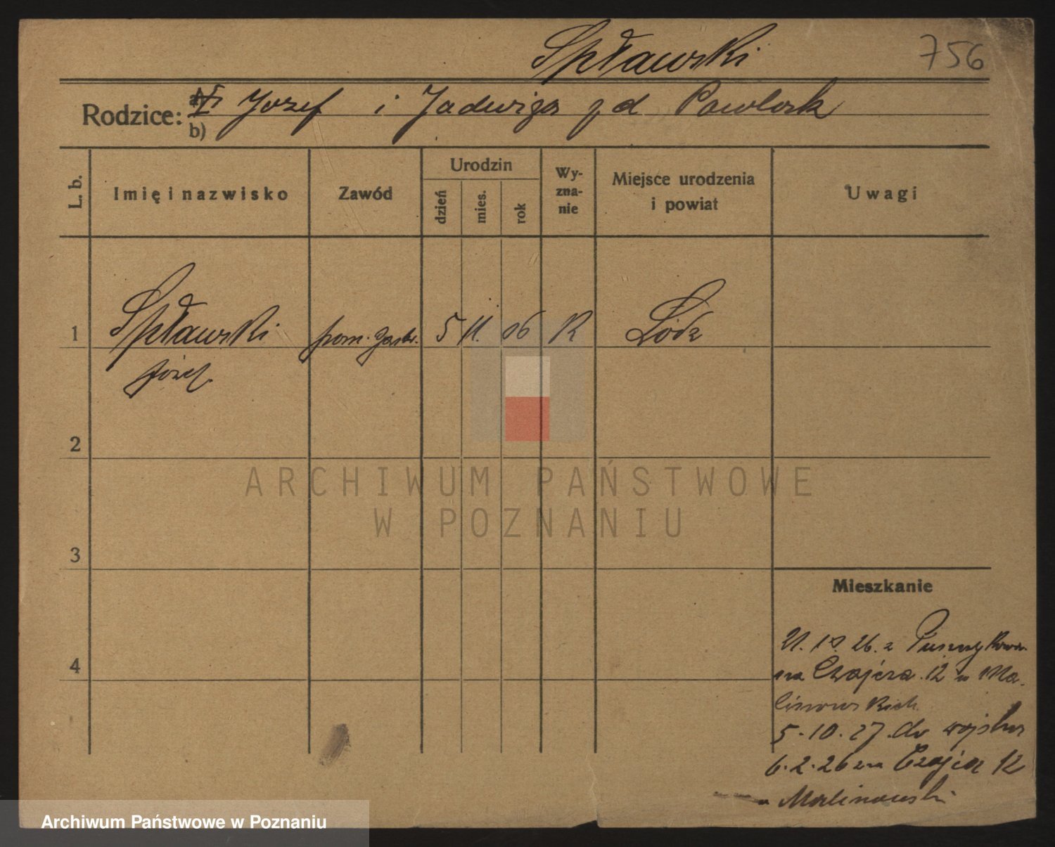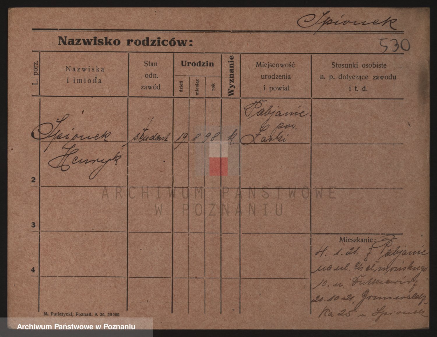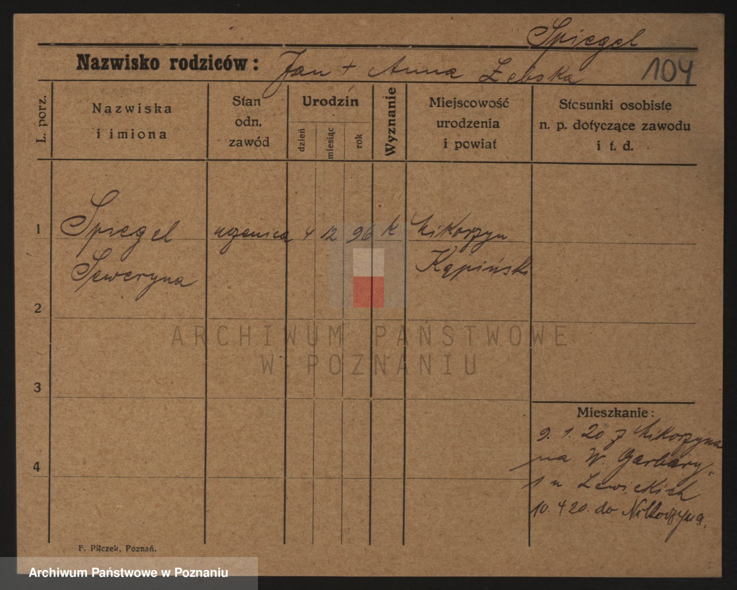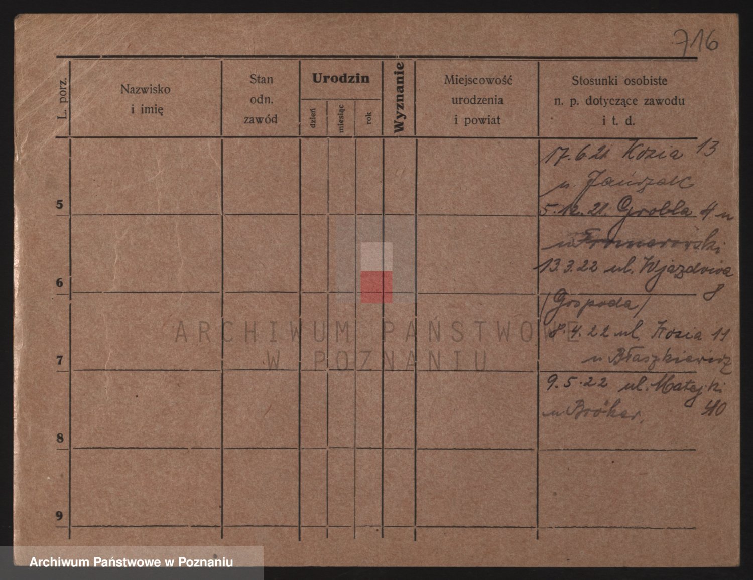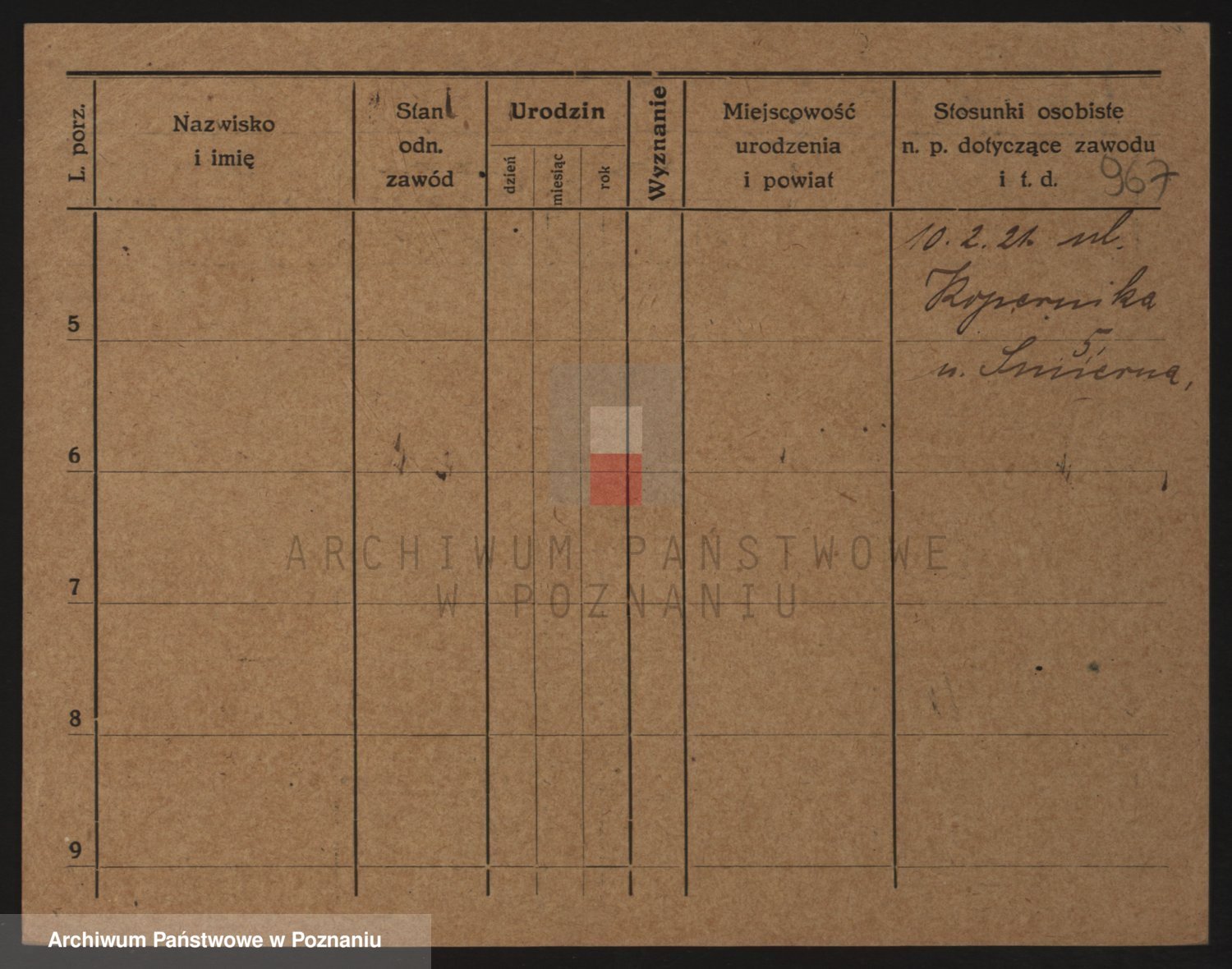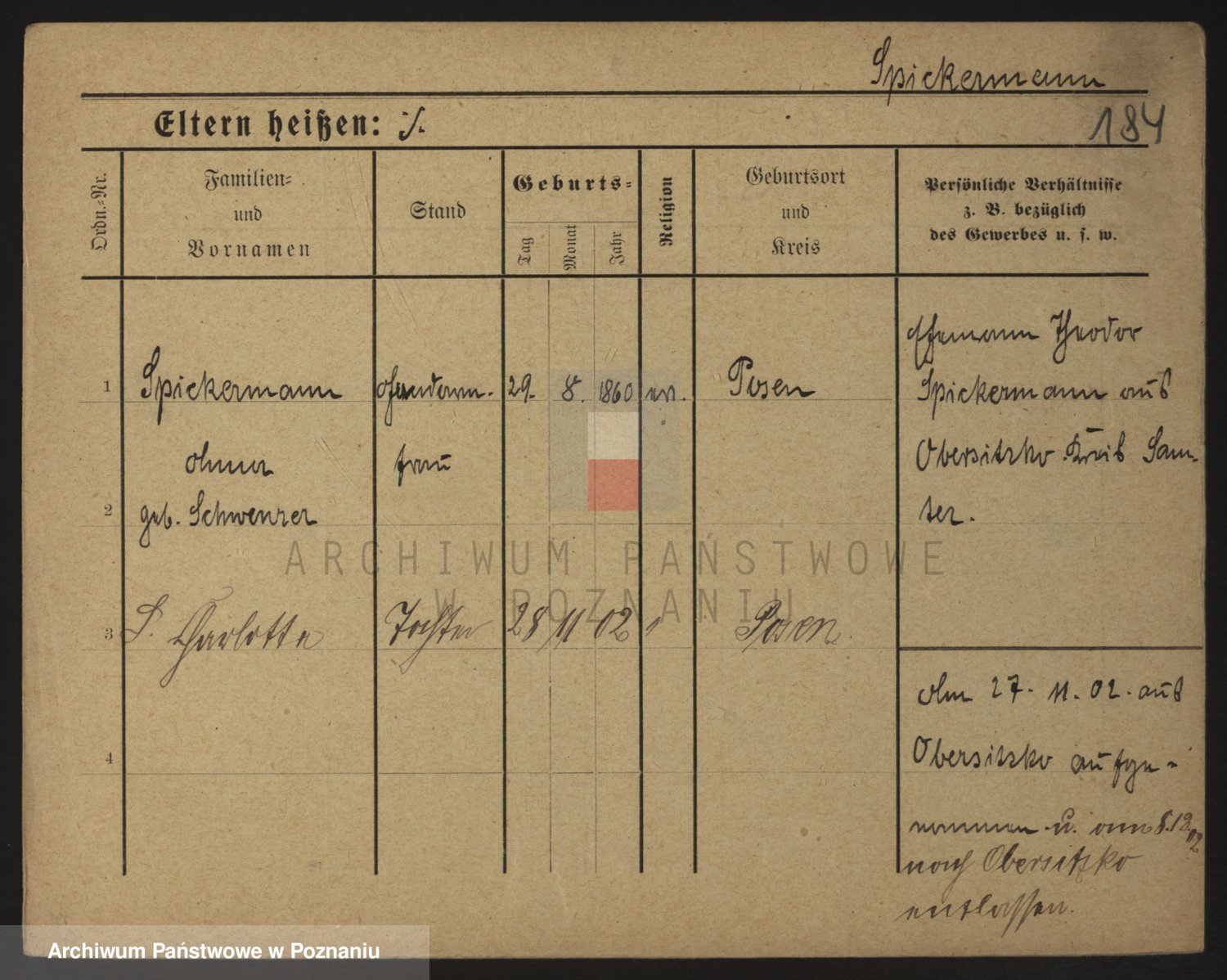 Podgląd karty osobowej dostępny jest po kliknięciu na nazwisko lub ikonkę karty. Można dokonywać powiększenia (ikony na górze) lub przechodzić między kolejnymi skanami (strzałki po bokach).